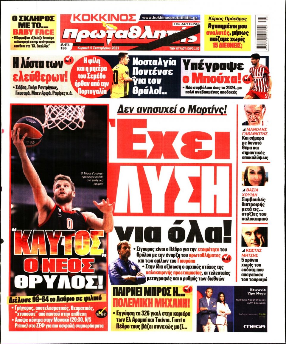 Οι αθλητικές εφημερίδες 5/9/2021 Σήφης Γαρυφαλάκης 07:54, Κυριακή 05 Σεπτεμβρίου 2021 Media Διαβάστε τα πρωτοσέλιδα των αθλητικών εφημερίδων… ΑΘΛΗΤΙΚΕΣ ΕΦΗΜΕΡΙΔΕΣ ΕΦΗΜΕΡΙΔΕΣ ΠΡΩΤΟΣΕΛΙΔΑ Μοιράσου το: σχολίασε κι εσύ (0 σχόλια) Ακολουθήστε το enikos.gr στο Google News και μάθετε πρώτοι όλες τις ειδήσεις Δείτε όλες τις τελευταίες ειδήσεις από την Ελλάδα και τον Κόσμο στο enikos.gr Ειδήσεις Ροή Ειδήσεων 3 ώρες πριν Χριστούγεννα στα μπλόκα: Επιμένουν στις κινητοποιήσεις τους οι αγρότες – Ανοίγουν τα διόδια το Σαββατοκύριακο 3 ώρες πριν Ουκρανία: Η άνευ προηγουμένου επίθεση σε ρωσικό τάνκερ στη Μεσόγειο και το μήνυμα προς στον Πούτιν – Το «μακρύ χέρι» του Κιέβου 2 ώρες πριν Πούτιν: Τα μηνύματα σε Ευρώπη και ΝΑΤΟ από το μαραθώνιο «σόου» του – Η απαίτηση για «σεβασμό» και η ειρήνη «με τους όρους» της Μόσχας 3 ώρες πριν Τραμπ: Δεν αποκλείει την πιθανότητα ενός πολέμου στη Βενεζουέλα – «Ο Μαδούρο ξέρει καλύτερα από τον καθένα τι ακριβώς θέλω» 4 ώρες πριν Συνεχίζει να προκαλεί ο Μίτσκοσκι: «Για μένα το όνομα Μακεδονία είναι ιερό» 2 ώρες πριν Ανακαλύφθηκαν αρχαία χρυσά νομίσματα 2.200 ετών που απεικονίζουν τον θεό Απόλλωνα – Η άγνωστη σύνδεση με τον Φίλιππο Β΄ της Μακεδονίας 3 ώρες πριν Ύπνος: Μια κρυφή κατάσταση του εγκεφάλου πριν από τον ύπνο μπορεί να είναι το “κλειδί” για υψηλή ευφυΐα και δημιουργικότητα 4 ώρες πριν Αριθμολογία: Οι άνθρωποι που έχουν γεννηθεί αυτές τις 4 ημερομηνίες, συχνά παρεξηγούνται – «Η καλοσύνη τους κρύβει τεράστια δύναμη» 5 ώρες πριν Ξεχάστε το καθάρισμα το Σαββατοκύριακο: Ο «κανόνας των 20 λεπτών» που θα σας λύσει τα χέρια 3 λεπτά πριν Συρία: Μαζικά πλήγματα των ΗΠΑ σε θέσεις του Ισλαμικού Κράτους – Χέγκσεθ: «Δεν είναι αρχή πολέμου, είναι μια δήλωση εκδίκησης» για το θάνατο των στρατιωτών μας 16 λεπτά πριν Ουκρανία: Ολοκληρώθηκαν οι συνομιλίες με τους Αμερικανούς κι Ευρωπαίους διαπραγματευτές 31 λεπτά πριν Μπαρτσελόνα – Μπασκόνια 134-124: Οι «μπλαουγκράνα» πήραν το ματς της χρονιάς ύστερα από τρεις παρατάσεις 46 λεπτά πριν Φαίη Σκορδά: «Παλιότερα τα κομπλιμέντα τα προσπερνούσα, τώρα τα έχω ανάγκη» 1 ώρα πριν Βασίλης Σπανούλης: Δεν εμφανίστηκε ούτε ένας δημοσιογράφος στην συνέντευξη Τύπου – «Καλησπέρα στον… κανέναν», δείτε βίντεο ENIKOS NETWORK Το ΕΚΑΒ τιμήθηκε από την Ακαδημία Αθηνών για τα 40 χρόνια προσφοράς του Έχετε πραγματικά μεγάλη καρδιά; 10 χαρακτηριστικά όσων έχουν καλοσύνη Αναστολή μέτρων αναγκαστικής εκτέλεσης για κτηνοτρόφους που πλήττονται από την ευλογιά των αιγοπροβάτων Πλήρης επάρκεια προϊόντων στις λαϊκές της Αττικής, παρά τις αγροτικές κινητοποιήσεις – Τι απαντούν οι πωλητές Χαρτογραφώντας το «σημείο χωρίς επιστροφή»: Για πρώτη φορά αποκαλύπτεται με λεπτομέρεια το ακανθώδες όριο της ατμόσφαιρας τ... Η Google καταργεί τη λειτουργία «dark web report» – Πώς θα μπορούν οι χρήστες να διαγράφουν τα δεδομένα τους περισσότερα 22:42 , Παρασκευή 19 Δεκεμβρίου 2025 Γιώργος Γιαννόπουλος για “Το σόι σου”: “Είναι ευτυχία και ευλογία αυτή η σειρά” «Είναι ευτυχία και ευλογία η συγκυρία αυτής της σειράς», θα πει ο Γιώργος Γιαννόπουλος -ο αγαπ... 20:37 , Παρασκευή 19 Δεκεμβρίου 2025 Don’t Forget The Lyrics: Η Έλλη Κοκκίνου υποδέχεται 4 παίκτες που θα κάνουν τα πάντα για να μη χάσουν ούτε… μισή λέξη από τους στίχους Το «Don’t Forget The Lyrics» επιστρέφει απόψε, Παρασκευή 19 Δεκεμβρίου, στις 21:00 με νέο επει... 19:31 , Παρασκευή 19 Δεκεμβρίου 2025 GNTM: Απόψε ο μεγάλος τελικός για τους 4 φιναλίστ Έπειτ