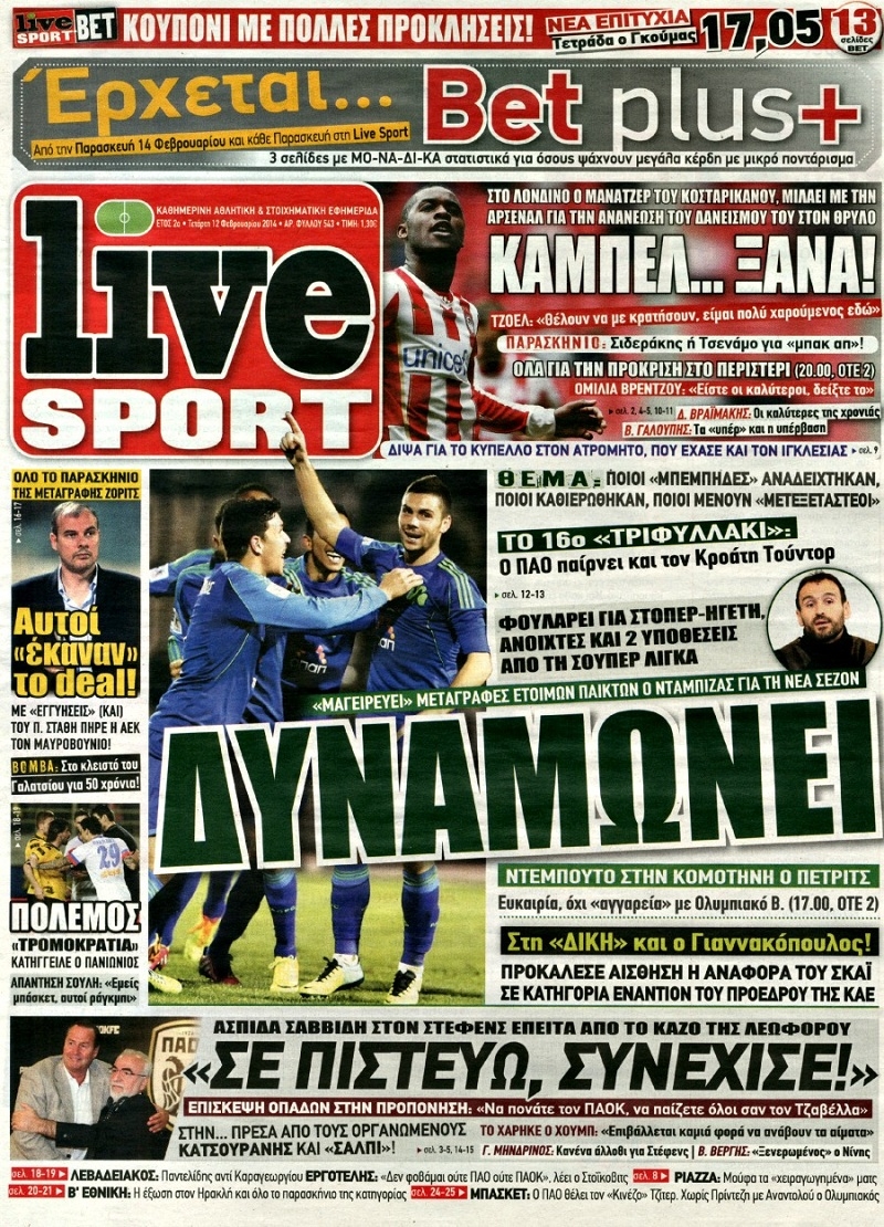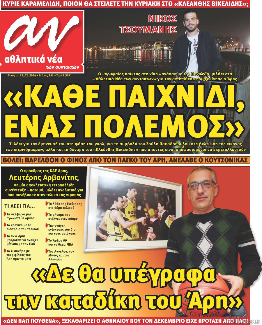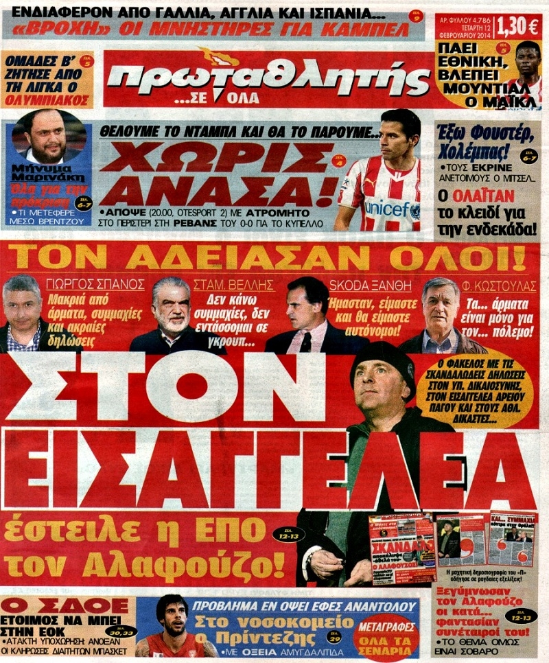 Οι αθλητικές εφημερίδες Enikos Newsroom 08:33, Τετάρτη 12 Φεβρουαρίου 2014 Media Οι αθλητικές εφημερίδες Διαβάστε τα πρωτοσέλιδα των αθλητικών εφημερίδων: ΑΘΛΗΤΙΚΕΣ ΕΦΗΜΕΡΙΔΕΣ ΕΦΗΜΕΡΙΔΕΣ ΠΡΩΤΟΣΕΛΙΔΑ Μοιράσου το: σχολίασε κι εσύ (0 σχόλια) Ακολουθήστε το enikos.gr στο Google News και μάθετε πρώτοι όλες τις ειδήσεις Δείτε όλες τις τελευταίες ειδήσεις από την Ελλάδα και τον Κόσμο στο enikos.gr Ειδήσεις Ροή Ειδήσεων 2 ώρες πριν Μεσόγειος: Η διαδρομή του ρωσικού τάνκερ «Qendil» και η στοχευμένη επίθεση της Ουκρανίας με drone – Ο Πούτιν προειδοποίησε για αντίποινα 2 ώρες πριν Αττική: Θρίλερ με νεκρό βρέφος 5 μηνών – Κοιμόταν στο ίδιο κρεβάτι με τους γονείς του 3 ώρες πριν Από το Ορμένιο ως τα Μάλγαρα κι από τη Σιάτιστα μέχρι τη Νίκαια: Μπλόκα σε όλη την Ελλάδα – Το Σάββατο ανοίγουν τα διόδια οι αγρότες 3 ώρες πριν «Έλληνας Εσκομπάρ»: Φωτογραφίες με τους 4 τόνους κοκαΐνης που κατασχέθηκαν από το σκάφος «Ουρανία» 4 ώρες πριν Πούτιν: Σαρκαστικά μηνύματα, παράπονα και απρόοπτα στη συνέντευξη Τύπου – Η πρόταση γάμου on air και οι ερωτήσεις για τα αγγούρια και τους… εξωγήινους 4 ώρες πριν Τα 5 ζώδια που ευνοούνται στην ερωτική ζωή τους την επόμενη εβδομάδα – «Η ενέργεια του Αιγόκερου φέρνει αγάπη και σταθερότητα» 8 ώρες πριν Ειδικός μοιράζεται 6 κόλπα για να διατηρείστε σε φόρμα με πάνω από 40 ώρες εργασίας την εβδομάδα: «Προπονηθείτε πριν από τη δουλειά, όχι μετά» 5 ώρες πριν Αυτό το έξυπνο μαθηματικό κόλπο θα μπορούσε να αλλάξει τον τρόπο με τον οποίο οι επιστήμονες μελετούν τους σεισμούς 3 ώρες πριν Κουίζ για την παλιά Αθήνα: Αναγνωρίζετε την περιοχή; Έχετε περάσει 100% από εκεί 8 δευτερόλεπτα πριν Αγρότες: Έκλεισαν την υψηλή γέφυρα της Χαλκίδας – ΒΙΝΤΕΟ 4 λεπτά πριν Ρούμπιο: Έχει υπάρξει πρόοδος στις συνομιλίες για την Ουκρανία – Τα τελευταία ζητήματα είναι τα πιο δύσκολα 11 λεπτά πριν Πούτιν: «Ναι, είμαι ερωτευμένος» – Βίντεο από τη σπάνια προσωπική παραδοχή του 15 λεπτά πριν Γαλλία – Shein: Υποχρεωτικός έλεγχος ηλικίας των πελατών μετά τον σάλο με τις ερωτικές κούκλες 21 λεπτά πριν Εμπλοκή και αερομαχίες με οπλισμένα τουρκικά F-16 στο Αιγαίο ENIKOS NETWORK Έχετε πραγματικά μεγάλη καρδιά; 10 χαρακτηριστικά όσων έχουν καλοσύνη «Η σούπερ» γρίπη εξαπλώνεται στην Ευρώπη-Στοιχεία από το ECDC για την αποτελεσματικότητα του εμβολίου Προκήρυξη ΑΣΕΠ για 397 μόνιμες προσλήψεις στο Δημόσιο: Βγήκαν τα προσωρινά αποτελέσματα – Πότε αρχίζει η υποβολή ενστάσεων Η απάντηση της κυβέρνησης στα αιτήματα των αγροτών: 16 έχουν ικανοποιηθεί, 4 βρίσκονται υπό επεξεργασία και 7 δεν είναι εφι... Χαρτογραφώντας το «σημείο χωρίς επιστροφή»: Για πρώτη φορά αποκαλύπτεται με λεπτομέρεια το ακανθώδες όριο της ατμόσφαιρας τ... Η Google καταργεί τη λειτουργία «dark web report» – Πώς θα μπορούν οι χρήστες να διαγράφουν τα δεδομένα τους περισσότερα 19:31 , Παρασκευή 19 Δεκεμβρίου 2025 GNTM: Απόψε ο μεγάλος τελικός για τους 4 φιναλίστ Έπειτα από μήνες γεμάτους μόδα, δημιουργία και έντονες αναμετρήσεις, το GNTM 2025 κορυφώνεται,... 18:11 , Παρασκευή 19 Δεκεμβρίου 2025 Το σόι σου: Ο Άρης έρχεται στην Ελλάδα για τις γιορτές των Χριστουγέννων – Τι θα δούμε στο αποψινό εορταστικό επεισόδιο Ένα απολαυστικό, εορταστικό επεισόδιο της σειράς “Το σόι σου”, γεμάτο ευτράπελα αλ... 15:15 , Παρασκευή 19 Δεκεμβρίου 2025 Την Κυριακή με τη Realnews: Ό,τι και αν αγοράσεις, σκανάρεις και κερδίζεις! Την Κυριακή με τη Realnews: Ό,τι και αν αγοράσεις, σκανάρεις και κερδίζεις! Με το PADU app, το... 08:00 , Παρασκ