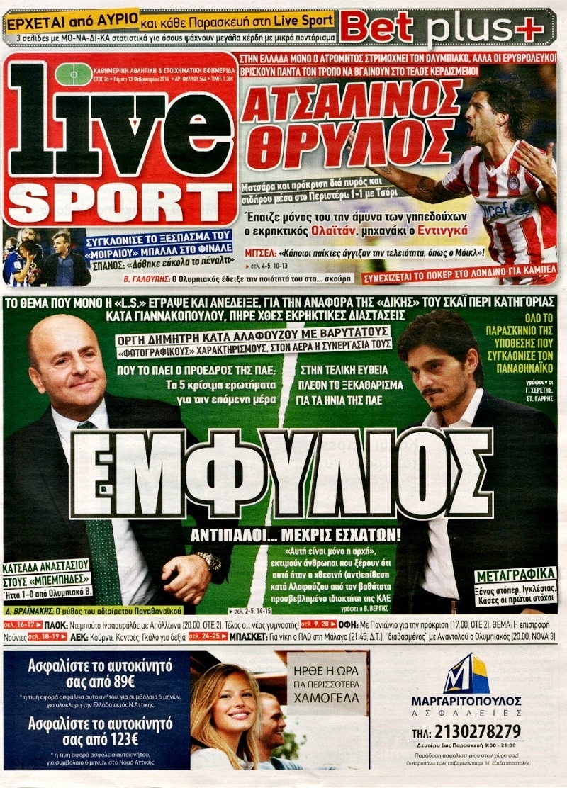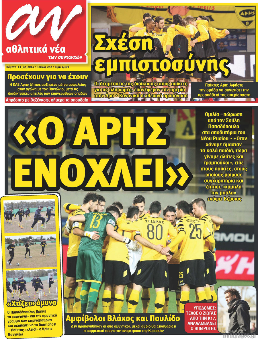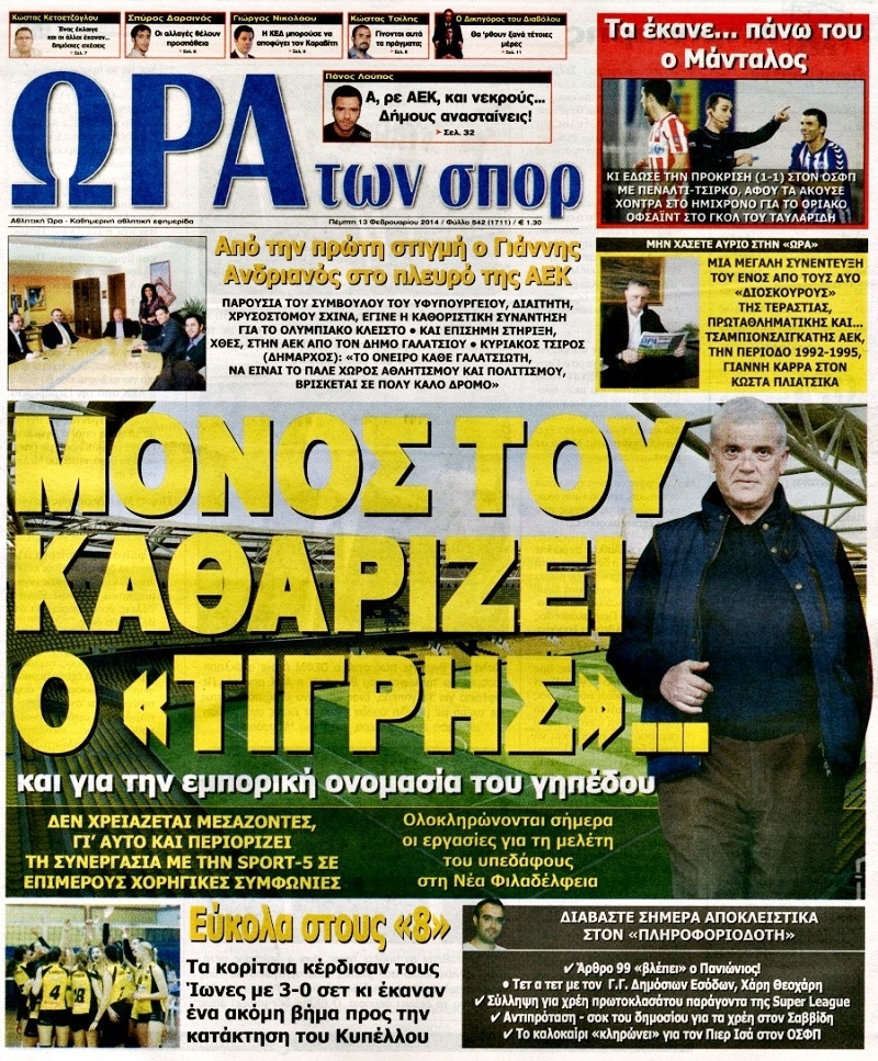 Οι αθλητικές εφημερίδες Enikos Newsroom 08:46, Πέμπτη 13 Φεβρουαρίου 2014 Media Οι αθλητικές εφημερίδες Διαβάστε τα πρωτοσέλιδα των αθλητικών εφημερίδων: ΑΘΛΗΤΙΚΕΣ ΕΦΗΜΕΡΙΔΕΣ ΕΦΗΜΕΡΙΔΕΣ ΠΡΩΤΟΣΕΛΙΔΑ Μοιράσου το: σχολίασε κι εσύ (0 σχόλια) Ακολουθήστε το enikos.gr στο Google News και μάθετε πρώτοι όλες τις ειδήσεις Δείτε όλες τις τελευταίες ειδήσεις από την Ελλάδα και τον Κόσμο στο enikos.gr Ειδήσεις Ροή Ειδήσεων 5 ώρες πριν Εκτός ευρωομάδας ΣΥΡΙΖΑ ο Νίκος Παππάς μετά την επίθεση στον δημοσιογράφο Νίκο Γιαννόπουλο – Η μήνυση και οι νέες δηλώσεις 5 ώρες πριν «Αγριεύουν» οι αγρότες: «Δεν συντρέχει λόγος συνάντησης με τον πρωθυπουργό» – Ώρα αποφάσεων στη σύσκεψη της Πέμπτης 5 ώρες πριν Κυψέλη: Χωρίς την οικογένειά της δίπλα της απολογήθηκε η 16χρονη – «Της είχε επιτεθεί κάποιος για να την βιάσει, φοβήθηκε και κυκλοφορούσε με μαχαίρι» 5 ώρες πριν Politico: Το πρόβλημα της Ευρώπης δεν είναι το Βέλγιο αλλά ο Ντόναλντ Τραμπ 7 ώρες πριν Αλεξανδρούπολη: Πολυοργανική ανεπάρκεια λόγω υποσιτισμού η αιτία θανάτου του 3χρονου αγοριού 5 ώρες πριν Μυστήριο με τεράστιες κυκλικές πέτρες 200 κιλών – Ανακαλύφθηκαν τυχαία κατά τη διάρκεια οδικών έργων και κανείς δεν ξέρει από πού προέρχονται 6 ώρες πριν Ύπνος: Ειδικός εξηγεί τον πραγματικό λόγο που ξυπνάτε στις 4 τα ξημερώματα – Ο ρόλος των ορμονών και του κιρκάδιου ρυθμού 7 ώρες πριν Αριθμολογία: Οι άνθρωποι που έχουν γεννηθεί αυτές τις 4 ημερομηνίες, είναι τρυφεροί και αγαπούν ανιδιοτελώς 19 ώρες πριν 20 χρόνια τα Χριστούγεννα ξεκινούν στα Public με μεγάλη ποικιλία σε δώρα! 9 λεπτά πριν Αλ Τσαντίρι Νιουζ: «Λύγισε» ο Δημήτρης Λάλος για τον Δημήτρη Ήμελλο – «Τον μνημονεύω, να ‘ναι καλά εκεί που είναι» 24 λεπτά πριν GNTM: Με δάκρυα τον αποχαιρέτησε η Ηλιάνα Παπαγεωργίου πριν από τον ημιτελικό – «Αισθάνομαι πολύ παράξενα» 38 λεπτά πριν Αμερικανικά στρατεύματα στον Ισημερινό για «προσωρινή» επιχείρηση κατά των ναρκωτικών 54 λεπτά πριν Βραζιλία: Το Κογκρέσο ενέκρινε σχέδιο νόμου για τη μείωση της ποινής του πρώην προέδρου Μπολσονάρου 1 ώρα πριν Ένταση στο περιφερειακό συμβούλιο Δυτικής Μακεδονίας: Φωνές, σπρωξιές και διακοπή – Δείτε βίντεο ENIKOS NETWORK Αϋπνία: Το κόλπο που θα σας βοηθήσει να κοιμηθείτε απόψε – Είναι απλό και έχει αποτέλεσμα 2,6 εκατομμύρια πολίτες έχουν ήδη εμβολιαστεί κατά της γρίπης ΕΛΣΤΑΤ: Τι δείχνουν τα νέα στοιχεία για τις ηλεκτρονικές παραγγελίες των επιχειρήσεων ΚΕΠΕ: Οι 3 διακριτές συμβολές των ΜμΕ και της μεταποίησης στην ελληνική οικονομία Χαρτογραφώντας το «σημείο χωρίς επιστροφή»: Για πρώτη φορά αποκαλύπτεται με λεπτομέρεια το ακανθώδες όριο της ατμόσφαιρας τ... Η Google καταργεί τη λειτουργία «dark web report» – Πώς θα μπορούν οι χρήστες να διαγράφουν τα δεδομένα τους περισσότερα 02:30 , Πέμπτη 18 Δεκεμβρίου 2025 Αλ Τσαντίρι Νιουζ: Η κόρη της Πάολα στο κοινό – Η ατάκα Λαζόπουλου που την έκανε να «κοκκινήσει» Γιορτινή διάθεση και ευχάριστες στιγμές γέμισε η αποψινή, τελευταία για το 2025, εκπομπή του «... 22:24 , Τετάρτη 17 Δεκεμβρίου 2025 Το Σπίτι Δίπλα Στο Ποτάμι: Σε κίνδυνο η υγεία του Απόστολου – Τι θα δούμε απόψε “Το Σπίτι Δίπλα στο Ποτάμι” ξετυλίγει το νήμα της ζωής των πέντε αδελφών με καταισ... 21:14 , Τετάρτη 17 Δεκεμβρίου 2025 Παιχνίδια Εκδίκησης: Θα καταφέρει ο Χρήστος να κλονίσει την εμπιστοσύνη της Μάγιας απέναντι στον Άγη; Τα «Παιχνίδια Εκδίκησης» έρχονται απόψε στις 22:30, στον Αντ1, με το τελευταίο επεισόδιο της χ... 20:57 , Τετάρτη 17 Δεκεμβρίου 2025