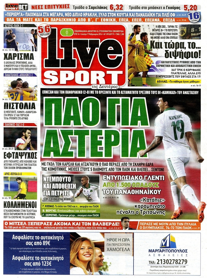 Οι αθλητικές εφημερίδες Enikos Newsroom 08:39, Δευτέρα 17 Φεβρουαρίου 2014 Media Οι αθλητικές εφημερίδες Διαβάστε τα πρωτοσέλιδα των αθλητικών εφημερίδων: ΑΘΛΗΤΙΚΕΣ ΕΦΗΜΕΡΙΔΕΣ ΕΦΗΜΕΡΙΔΕΣ ΠΡΩΤΟΣΕΛΙΔΑ Μοιράσου το: σχολίασε κι εσύ (0 σχόλια) Ακολουθήστε το enikos.gr στο Google News και μάθετε πρώτοι όλες τις ειδήσεις Δείτε όλες τις τελευταίες ειδήσεις από την Ελλάδα και τον Κόσμο στο enikos.gr Ειδήσεις Ροή Ειδήσεων 39 λεπτά πριν Νίκος Παππάς: Το παρασκήνιο της αποπομπής του – Οι μπουνιές, τα μηνύματα μετά την επίθεση και η διαγραφή από τον ΣΥΡΙΖΑ 2 ώρες πριν Φοροδιαφυγή: Ποιοι φορολογούμενοι κινδυνεύουν να πληρώσουν «τσουχτερά» πρόστιμα 1 ώρα πριν Φοινικούντα: Παραδόθηκε 30χρονος στην Καλαμάτα για τη διπλή δολοφονία 1 ώρα πριν Αγρότες: Ανυποχώρητοι στα μπλόκα – Στις Σέρρες σήμερα η κρίσιμη συνεδρίαση της Πανελλαδικής Επιτροπής 2 ώρες πριν Τα επίσημα χρονοδιαγράμματα που η Τουρκία θα παραλάβει τα Eurofighter 3 ώρες πριν Καούρα: Το μπαχαρικό που είναι «εξίσου αποτελεσματικό» με την ομεπραζόλη, σύμφωνα με ειδικούς 4 ώρες πριν Τα ζώδια σήμερα, Πέμπτη 18 Δεκεμβρίου: Λέοντες, η καρδιά σας θέλει να εκφραστεί 3 ώρες πριν Οπτική ψευδαίσθηση: Μόνο οι πιο έξυπνοι άνθρωποι θα βρουν 7 ξωτικά 15 δευτερόλεπτα 24 ώρες πριν 20 χρόνια τα Χριστούγεννα ξεκινούν στα Public με μεγάλη ποικιλία σε δώρα! 1 λεπτό πριν Η σύζυγός του παραπονιέται για τα χρήματα που της δίνει για ψώνια κάθε μήνα – «Λέει ότι νιώθει φτωχή και της είπα να βρει δουλειά» 10 λεπτά πριν Άστατος ο καιρός τα Χριστούγεννα: Βαρομετρικό χαμηλό από τον κόλπο της Σύρτης «ξεκλειδώνει» κακοκαιρίες – Πώς θα εξελιχθεί έως την Πρωτοχρονιά 14 λεπτά πριν Γρίπη: Η υπουργός Υγείας της Γαλλίας καλεί τους πολίτες να ξαναφορέσουν τις μάσκες τους 22 λεπτά πριν Μαρία Αλιφέρη: «Καλή σου ξεκούραση ακριβέ μου φίλε και αδελφέ» – Η συγκινητική ανάρτηση για τον Αλμπέρτο Εσκενάζυ 26 λεπτά πριν Οφειλές προς το Δημόσιο: Τι απαντά το υπουργείο στα σενάρια για νέα ρύθμιση ENIKOS NETWORK 5 ασκήσεις που εξαφανίζουν το «σωσίβιο» πιο γρήγορα από τους κοιλιακούς μετά τα 50 «Έκανα χρόνια μανικιούρ με τζελ μέχρι που κινδύνευσαν να πέσουν» – Πώς ήταν το σημάδι στο νύχι που την προειδοποίησε Οφειλές προς το Δημόσιο: «Φρένο» στα σενάρια για νέα ρύθμιση – Τι απαντά το υπουργείο Εθνικής Οικονομίας και Οικονομικών Φοροδιαφυγή: Ποιοι φορολογούμενοι κινδυνεύουν να πληρώσουν «τσουχτερά» πρόστιμα Χαρτογραφώντας το «σημείο χωρίς επιστροφή»: Για πρώτη φορά αποκαλύπτεται με λεπτομέρεια το ακανθώδες όριο της ατμόσφαιρας τ... Η Google καταργεί τη λειτουργία «dark web report» – Πώς θα μπορούν οι χρήστες να διαγράφουν τα δεδομένα τους περισσότερα 08:00 , Πέμπτη 18 Δεκεμβρίου 2025 Την Κυριακή με τη Realnews: Δωροεπιταγή 10€ Δωροεπιταγή αξίας 10€ για αγορές άνω των 60€ από τα πολυκαταστήματα FactoryOutlet H προσφορά ι... 07:50 , Πέμπτη 18 Δεκεμβρίου 2025 «Το σόι σου»: Backstage στα γυρίσματα για το εορταστικό επεισόδιο «Το σόι σου» φορά τα γιορτινά του για τα Χριστούγεννα και η Όλγα Λαφαζάνη, με την κάμερα του «... 07:36 , Πέμπτη 18 Δεκεμβρίου 2025 Οι αθλητικές μεταδόσεις 18/12/2025 – Πού θα δείτε τον αγώνα της ΑΕΚ με την Κραϊόβα για το Conference League Τα ματς ΑΕΚ – Ουνιβερσιτάτεα Κραϊόβα για το Conference League και Παναθηναϊκός – Χάποελ Τελ Αβ... 05:48 , Πέμπτη 18 Δεκεμβρίου 2025 Οι οικονομικές εφημερίδες 18/12/2025 Διαβάστε τα πρωτοσέλιδα από τις οικονομικές εφημερίδες, σήμερα 18/12/2025. ΤΕΛΕΥΤΑΙΕΣ ΕΙΔΗΣΕΙΣ 10 λεπτά πριν Άστατος ο καιρός τα Χριστούγεννα: Βαρομετρικό χαμηλ