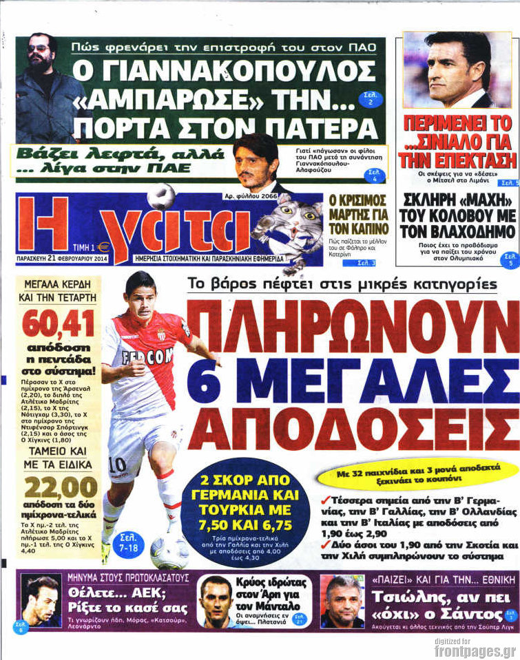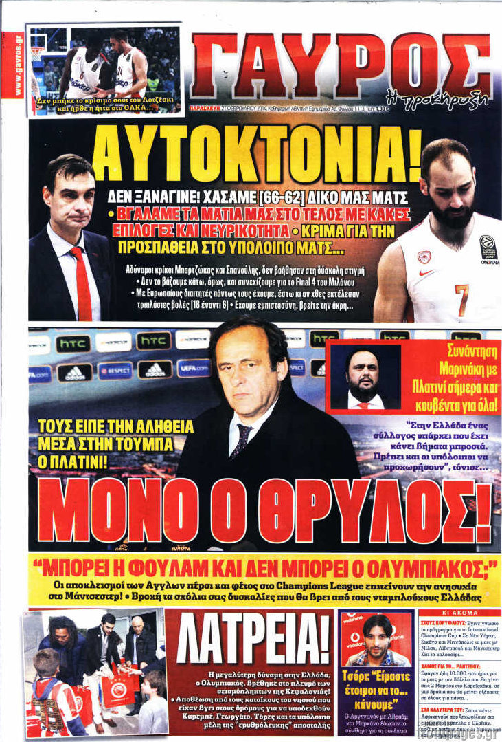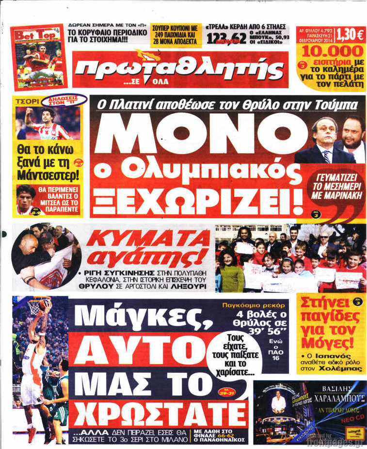 Οι αθλητικές εφημερίδες Enikos Newsroom 08:44, Παρασκευή 21 Φεβρουαρίου 2014 Media Οι αθλητικές εφημερίδες Διαβάστε τα πρωτοσέλιδα των αθλητικών εφημερίδων: ΑΘΛΗΤΙΚΕΣ ΕΦΗΜΕΡΙΔΕΣ ΕΦΗΜΕΡΙΔΕΣ ΠΡΩΤΟΣΕΛΙΔΑ Μοιράσου το: σχολίασε κι εσύ (0 σχόλια) Ακολουθήστε το enikos.gr στο Google News και μάθετε πρώτοι όλες τις ειδήσεις Δείτε όλες τις τελευταίες ειδήσεις από την Ελλάδα και τον Κόσμο στο enikos.gr Ειδήσεις Ροή Ειδήσεων 1 ώρα πριν Αυξάνουν την πίεση προς την κυβέρνηση οι αγρότες: Κλείνουν παρακαμπτήριους και ανοίγουν διόδια – Τι θα γίνει τις γιορτές 18 λεπτά πριν ΟΠΕΚΕΠΕ: Προφυλακιστέος ο φερόμενος αρχηγός και ο λογιστής της εγκληματικής οργάνωσης 1 ώρα πριν Φοινικούντα: Το Σάββατο απολογείται ο 30χρονος γιος γνωστού επιχειρηματία της Πλάκας που παραδόθηκε – Όσα είπε στους αστυνομικούς και ο ρόλος του στο έγκλημα 59 λεπτά πριν Μπορεί ο Μαδούρο να αντέξει τον αποκλεισμό του Τραμπ; Τι θα χρειαστεί η Ουάσινγκτον για να τον ανατρέψει 2 ώρες πριν Πρίγκιπας Ουίλιαμ – Κέιτ: Η νέα οικογενειακή φωτογραφία για τις Χριστουγεννιάτικες κάρτες του 2025 2 ώρες πριν Ύπνος: Η απλή βραδινή ρουτίνα για να προστατεύσετε τα μαλλιά σας από το κρύο κατά τη διάρκεια του χειμώνα 3 ώρες πριν Manifesting: Πώς να συναντήσετε τον σύντροφο της ζωής σας, ανάλογα με τον μήνα γέννησής σας 2 ημέρες πριν 20 χρόνια τα Χριστούγεννα ξεκινούν στα Public με μεγάλη ποικιλία σε δώρα! 1 ώρα πριν Αρχαιολόγοι ανακάλυψαν ρωμαϊκά τεχνουργήματα από μια πόλη που δεν υπήρξε ποτέ – Τα τρία εντυπωσιακά κτίρια και ο αμφορέας με τις… σαρδέλες 18 λεπτά πριν ΟΠΕΚΕΠΕ: Προφυλακιστέος ο φερόμενος αρχηγός και ο λογιστής της εγκληματικής οργάνωσης 28 λεπτά πριν Αθηνά Μαξίμου: Η τρυφερή ανάρτηση για τα γενέθλια του Αιμίλιου Χειλάκη – «Είναι η εκλεκτική συγγένειά μου, η επιλογή και η ευθύνη μου» 44 λεπτά πριν Παναθηναϊκός – Χάποελ Τελ Αβίβ 93-82: Με… φόρα από την Κωνσταντινούπολη 59 λεπτά πριν Μπορεί ο Μαδούρο να αντέξει τον αποκλεισμό του Τραμπ; Τι θα χρειαστεί η Ουάσινγκτον για να τον ανατρέψει 1 ώρα πριν Αρχαιολόγοι ανακάλυψαν ρωμαϊκά τεχνουργήματα από μια πόλη που δεν υπήρξε ποτέ – Τα τρία εντυπωσιακά κτίρια και ο αμφορέας με τις… σαρδέλες ENIKOS NETWORK Σε περίοδο αυξημένης δραστηριότητας η γρίπη στην Ελλάδα-Μέτρα προστασίας από τον ΕΟΔΥ Σκέφτεστε συνέχεια συζητήσεις που έχετε κάνει; Τι σημαίνει αυτό, σύμφωνα με ειδικό Στεγαστικό: Τι λέει η ΠΟΜΙΔΑ για τα νέα μέτρα που ανακοίνωσε ο Κυριάκος Μητσοτάκης Λαγκάρντ: Αισιόδοξη για την ανάπτυξη της Ευρωζώνης, αβέβαιη για τον πληθωρισμό Χαρτογραφώντας το «σημείο χωρίς επιστροφή»: Για πρώτη φορά αποκαλύπτεται με λεπτομέρεια το ακανθώδες όριο της ατμόσφαιρας τ... Η Google καταργεί τη λειτουργία «dark web report» – Πώς θα μπορούν οι χρήστες να διαγράφουν τα δεδομένα τους περισσότερα 17:45 , Πέμπτη 18 Δεκεμβρίου 2025 ROUK ZOUK: Εορταστικό επεισόδιο με καλεσμένους τους πρωταγωνιστές του «Γιατί ρε πατέρα» Το Σάββατο 20 Δεκεμβρίου στις 21:00, η Ζέτα Μακρυπούλια υποδέχεται εκλεκτούς ηθοποιούς που όλο... 17:20 , Πέμπτη 18 Δεκεμβρίου 2025 Άγιος έρωτας: Η Χριστίνα εξομολογείται στον πατέρα Νικόλαο, απόψε στις 21:00 στον Alpha Η Νότα αποφασίζει να εκδικηθεί τον Πέτρο και τον Στέφανο, για χάρη του Λούη, όμως τα πράγματα ... 16:50 , Πέμπτη 18 Δεκεμβρίου 2025 Να μ’ αγαπάς: Ζωή και Φωτεινή συμφιλιώνονται ως μάνα με κόρη, απόψε στις 20:00 Η ταυτότητα του Άγγελου αποκαλύπτεται στο νέο επεισόδιο της σειράς “Να μ’ αγαπάς... 15:52 , Πέμπτη 18 Δεκεμβρίου 2025 Το Σπίτι Δίπλα Στ