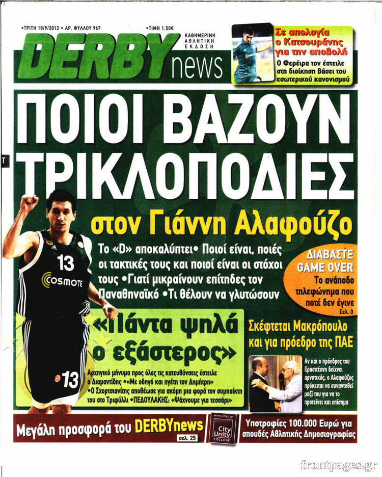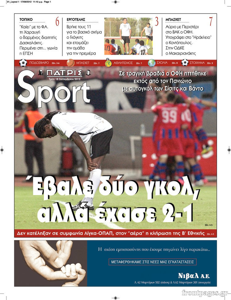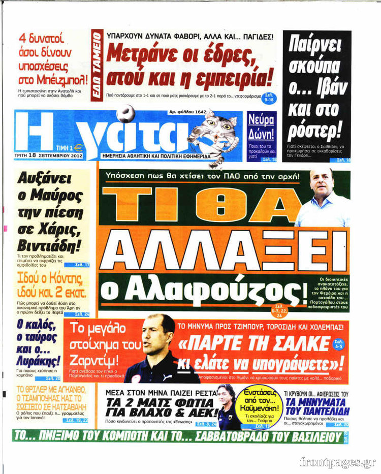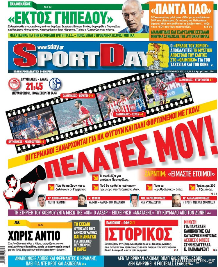 Διαβάστε τα σημερινά πρωτοσέλιδα των αθλητικών εφημερίδων.
