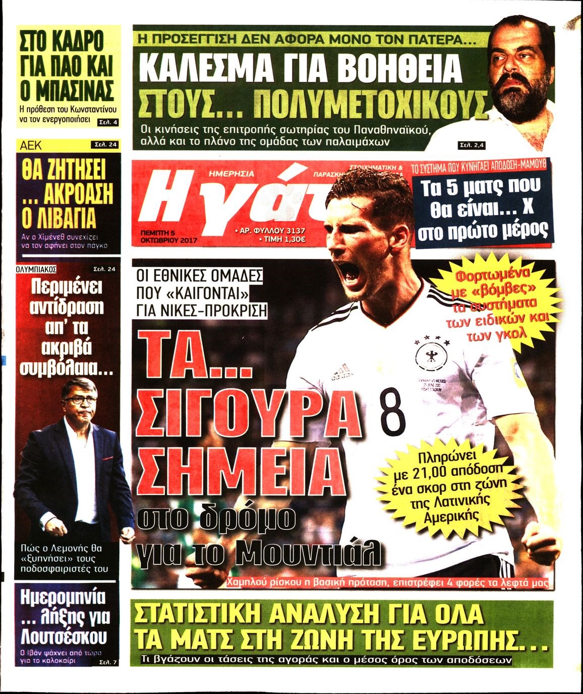 Οι αθλητικές εφημερίδες 5/10/2017 Enikos Newsroom 07:42, Πέμπτη 05 Οκτωβρίου 2017 Media Διαβάστε τα σημερινά πρωτοσέλιδα των αθλητικών εφημερίδων: ΑΘΛΗΤΙΚΕΣ ΕΦΗΜΕΡΙΔΕΣ ΠΡΩΤΟΣΕΛΙΔΑ Μοιράσου το: σχολίασε κι εσύ (0 σχόλια) Ακολουθήστε το enikos.gr στο Google News και μάθετε πρώτοι όλες τις ειδήσεις Δείτε όλες τις τελευταίες ειδήσεις από την Ελλάδα και τον Κόσμο στο enikos.gr Ειδήσεις Ροή Ειδήσεων 8 ώρες πριν Χριστούγεννα στα μπλόκα: Επιμένουν στις κινητοποιήσεις τους οι αγρότες – Ανοίγουν τα διόδια το Σαββατοκύριακο 8 ώρες πριν Ουκρανία: Η άνευ προηγουμένου επίθεση σε ρωσικό τάνκερ στη Μεσόγειο και το μήνυμα προς στον Πούτιν – Το «μακρύ χέρι» του Κιέβου 7 ώρες πριν Πούτιν: Τα μηνύματα σε Ευρώπη και ΝΑΤΟ από το μαραθώνιο «σόου» του – Η απαίτηση για «σεβασμό» και η ειρήνη «με τους όρους» της Μόσχας 8 ώρες πριν Τραμπ: Δεν αποκλείει την πιθανότητα ενός πολέμου στη Βενεζουέλα – «Ο Μαδούρο ξέρει καλύτερα από τον καθένα τι ακριβώς θέλω» 9 ώρες πριν Συνεχίζει να προκαλεί ο Μίτσκοσκι: «Για μένα το όνομα Μακεδονία είναι ιερό» 13 λεπτά πριν Αυγά: Πόσα μπορείτε να τρώτε την ημέρα με ασφάλεια για μέγιστη πρόσληψη πρωτεΐνης 42 λεπτά πριν Τα ζώδια σήμερα, Σάββατο 20 Δεκεμβρίου: Παρθένοι, το σύμπαν σας δίνει το κλειδί 7 ώρες πριν Ανακαλύφθηκαν αρχαία χρυσά νομίσματα 2.200 ετών που απεικονίζουν τον θεό Απόλλωνα – Η άγνωστη σύνδεση με τον Φίλιππο Β΄ της Μακεδονίας 8 ώρες πριν Ύπνος: Μια κρυφή κατάσταση του εγκεφάλου πριν από τον ύπνο μπορεί να είναι το “κλειδί” για υψηλή ευφυΐα και δημιουργικότητα 4 λεπτά πριν Σαρωτικοί οι έλεγχοι στους δρόμους ενόψει εορτών – Μπλόκα της τροχαίας σε κεντρικές αρτηρίες της Αττικής 13 λεπτά πριν Αυγά: Πόσα μπορείτε να τρώτε την ημέρα με ασφάλεια για μέγιστη πρόσληψη πρωτεΐνης 19 λεπτά πριν Σαν σήμερα 20 Δεκεμβρίου: Τα σημαντικότερα γεγονότα της ημέρας 24 λεπτά πριν Οι οικονομικές εφημερίδες 20/12/2025 29 λεπτά πριν Οι αθλητικές εφημερίδες 20/12/2025 ENIKOS NETWORK Το ΕΚΑΒ τιμήθηκε από την Ακαδημία Αθηνών για τα 40 χρόνια προσφοράς του Έχετε πραγματικά μεγάλη καρδιά; 10 χαρακτηριστικά όσων έχουν καλοσύνη Αναστολή μέτρων αναγκαστικής εκτέλεσης για κτηνοτρόφους που πλήττονται από την ευλογιά των αιγοπροβάτων Πλήρης επάρκεια προϊόντων στις λαϊκές της Αττικής, παρά τις αγροτικές κινητοποιήσεις – Τι απαντούν οι πωλητές Χαρτογραφώντας το «σημείο χωρίς επιστροφή»: Για πρώτη φορά αποκαλύπτεται με λεπτομέρεια το ακανθώδες όριο της ατμόσφαιρας τ... Η Google καταργεί τη λειτουργία «dark web report» – Πώς θα μπορούν οι χρήστες να διαγράφουν τα δεδομένα τους περισσότερα 05:48 , Σάββατο 20 Δεκεμβρίου 2025 Οι οικονομικές εφημερίδες 20/12/2025 Διαβάστε τα πρωτοσέλιδα από τις οικονομικές εφημερίδες, σήμερα 20/12/2025. 05:43 , Σάββατο 20 Δεκεμβρίου 2025 Οι αθλητικές εφημερίδες 20/12/2025 Διαβάστε τα πρωτοσέλιδα από τις αθλητικές εφημερίδες, σήμερα 20/12/2025. 05:38 , Σάββατο 20 Δεκεμβρίου 2025 Οι πολιτικές εφημερίδες 20/12/2025 Διαβάστε τα πρωτοσέλιδα από τις πολιτικές εφημερίδες, σήμερα 20/12/2025. 04:20 , Σάββατο 20 Δεκεμβρίου 2025 Αγγελική Νικολούλη: Τα συλλυπητήρια για την απώλεια της Ειρήνης Μαρινάκη Τα συλληπητήρια στον πρόεδρο του Mega, τον Βαγγέλη Μαρινάκη, για την απώλεια της μητέρας του Ε... ΤΕΛΕΥΤΑΙΕΣ ΕΙΔΗΣΕΙΣ 4 λεπτά πριν Σαρωτικοί οι έλεγχοι στους δρόμους ενόψει εορτών –... 13 λεπτά πριν Αυγά: Πόσα μπορείτε να τρώτε την ημέρα με ασφάλεια για... 19 λεπτά πριν Σαν σήμερα 20 Δεκεμβρίου: Τα σημαντικότερα γεγονότα... 24 λεπτά πριν Οι οικονομικές εφημερίδε