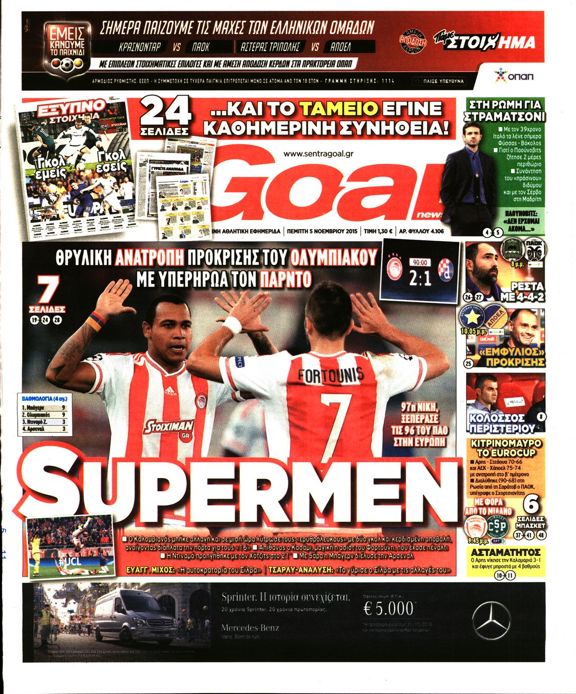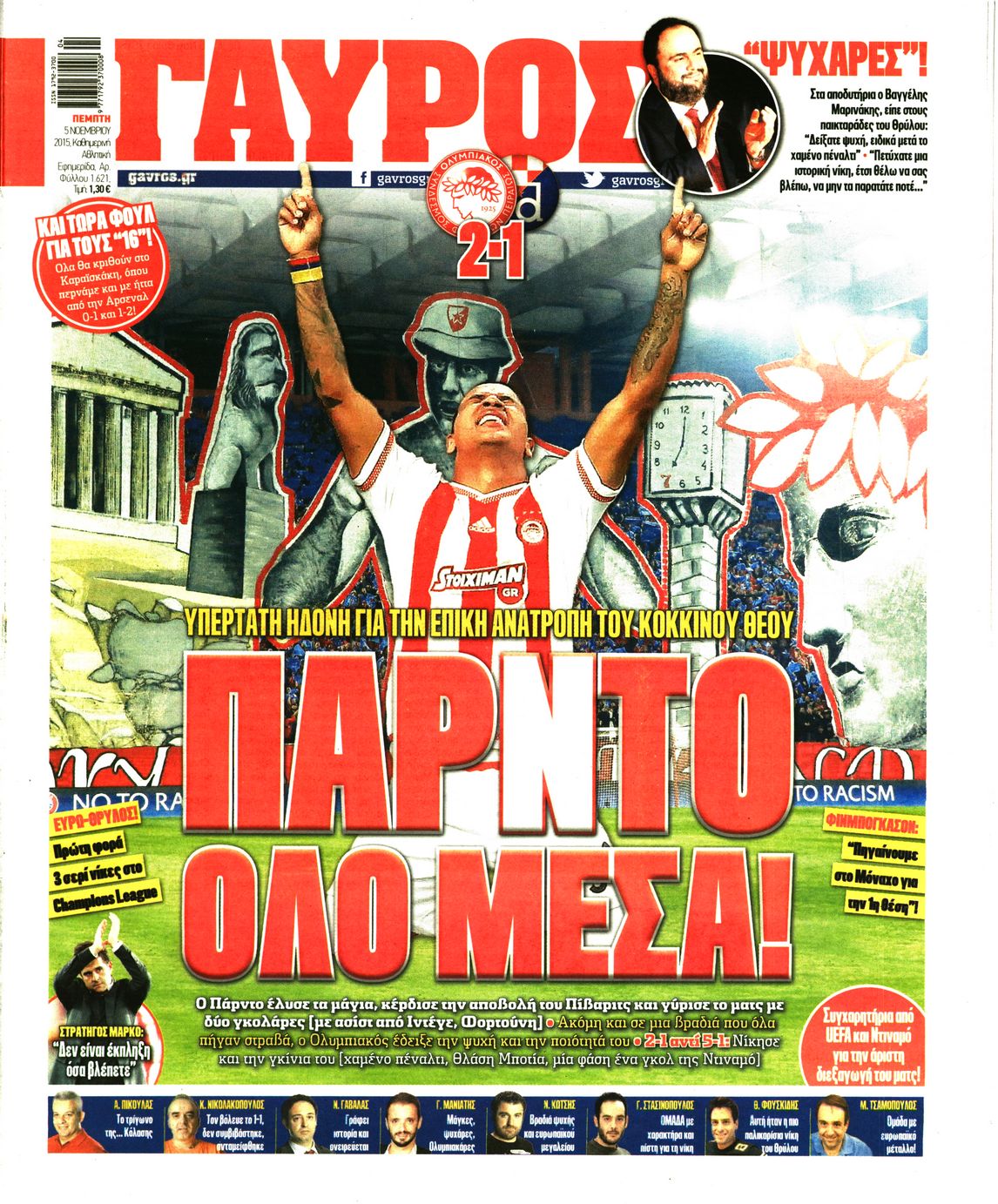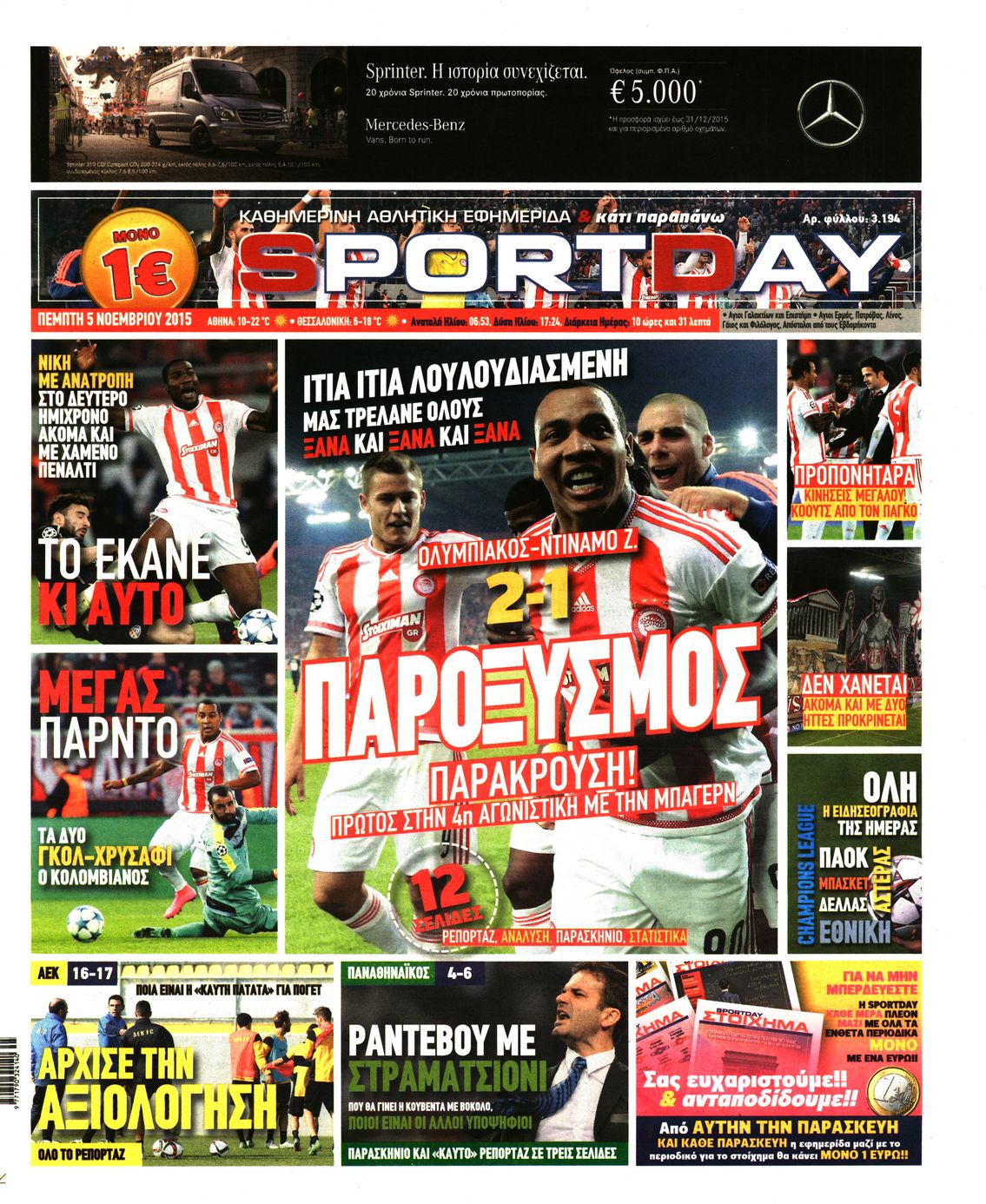 Οι αθλητικές εφημερίδες 5/11/2015 Enikos Newsroom 06:27, Πέμπτη 05 Νοεμβρίου 2015 Media Διαβάστε τα σημερινά πρωτοσέλιδα των αθλητικών εφημερίδων: ΑΘΛΗΤΙΚΕΣ ΕΦΗΜΕΡΙΔΕΣ ΠΡΩΤΟΣΕΛΙΔΑ Μοιράσου το: σχολίασε κι εσύ (0 σχόλια) Ακολουθήστε το enikos.gr στο Google News και μάθετε πρώτοι όλες τις ειδήσεις Δείτε όλες τις τελευταίες ειδήσεις από την Ελλάδα και τον Κόσμο στο enikos.gr Ειδήσεις Ροή Ειδήσεων 9 ώρες πριν Χριστούγεννα στα μπλόκα: Επιμένουν στις κινητοποιήσεις τους οι αγρότες – Ανοίγουν τα διόδια το Σαββατοκύριακο 2 ώρες πριν Σαρωτικοί οι έλεγχοι στους δρόμους ενόψει εορτών – Μπλόκα της τροχαίας σε κεντρικές αρτηρίες της Αττικής 9 ώρες πριν Πούτιν: Τα μηνύματα σε Ευρώπη και ΝΑΤΟ από το μαραθώνιο «σόου» του – Η απαίτηση για «σεβασμό» και η ειρήνη «με τους όρους» της Μόσχας 8 ώρες πριν ΗΠΑ: Η κυβέρνηση του Ντόναλντ Τραμπ άρχισε να δημοσιοποιεί τα αρχεία Έπσταϊν 8 ώρες πριν Άνω Λιόσια: Πυροβολισμοί σε επιχείρηση με χαλιά – Εντοπίστηκαν 10 κάλυκες 2 ώρες πριν Αυγά: Πόσα μπορείτε να τρώτε την ημέρα με ασφάλεια για μέγιστη πρόσληψη πρωτεΐνης 2 ώρες πριν Τα ζώδια σήμερα, Σάββατο 20 Δεκεμβρίου: Παρθένοι, το σύμπαν σας δίνει το κλειδί 9 ώρες πριν Ανακαλύφθηκαν αρχαία χρυσά νομίσματα 2.200 ετών που απεικονίζουν τον θεό Απόλλωνα – Η άγνωστη σύνδεση με τον Φίλιππο Β΄ της Μακεδονίας 1 ώρα πριν Οπτική ψευδαίσθηση: Μόνο αν είσαι ο Σέρλοκ Χολμς θα βρεις τον αριθμό «87» σε 7 δευτερόλεπτα 5 λεπτά πριν ΟΝΕΧ – MEGATUGS: Ξεκίνησε η ναυπήγηση ρυμουλκών στην Ελλάδα – Προθάλαμος πολεμικών πλοίων – Δείτε φωτογραφίες και βίντεο 14 λεπτά πριν Φοινικούντα: Σήμερα απολογείται ο 30χρονος γιος γνωστού επιχειρηματία της Πλάκας 21 λεπτά πριν Οι αθλητικές μεταδόσεις 20/12/2025 31 λεπτά πριν Εορτολόγιο: Ποιοι γιορτάζουν σήμερα 20 Δεκεμβρίου 38 λεπτά πριν Συρία: Μπαράζ αμερικανικών επιδρομών εναντίον του ISIS – «Πλήττουμε δυνατά οχυρά του ΙΚ» λέει ο Ντόναλντ Τραμπ ENIKOS NETWORK Πρέπει να αποδέχεστε ή να απορρίπτετε όλα τα cookies; Ένας ειδικός εξηγεί Η αγαπημένη λιχουδιά των πόνι που μπορεί να ενισχύσει όραση, εγκέφαλο και ανοσοποιητικό Αναστολή μέτρων αναγκαστικής εκτέλεσης για κτηνοτρόφους που πλήττονται από την ευλογιά των αιγοπροβάτων Πλήρης επάρκεια προϊόντων στις λαϊκές της Αττικής, παρά τις αγροτικές κινητοποιήσεις – Τι απαντούν οι πωλητές Χαρτογραφώντας το «σημείο χωρίς επιστροφή»: Για πρώτη φορά αποκαλύπτεται με λεπτομέρεια το ακανθώδες όριο της ατμόσφαιρας τ... Η Google καταργεί τη λειτουργία «dark web report» – Πώς θα μπορούν οι χρήστες να διαγράφουν τα δεδομένα τους περισσότερα 05:48 , Σάββατο 20 Δεκεμβρίου 2025 Οι οικονομικές εφημερίδες 20/12/2025 Διαβάστε τα πρωτοσέλιδα από τις οικονομικές εφημερίδες, σήμερα 20/12/2025. 05:43 , Σάββατο 20 Δεκεμβρίου 2025 Οι αθλητικές εφημερίδες 20/12/2025 Διαβάστε τα πρωτοσέλιδα από τις αθλητικές εφημερίδες, σήμερα 20/12/2025. 05:38 , Σάββατο 20 Δεκεμβρίου 2025 Οι πολιτικές εφημερίδες 20/12/2025 Διαβάστε τα πρωτοσέλιδα από τις πολιτικές εφημερίδες, σήμερα 20/12/2025. 04:20 , Σάββατο 20 Δεκεμβρίου 2025 Αγγελική Νικολούλη: Τα συλλυπητήρια για την απώλεια της Ειρήνης Μαρινάκη Τα συλληπητήρια στον πρόεδρο του Mega, τον Βαγγέλη Μαρινάκη, για την απώλεια της μητέρας του Ε... ΤΕΛΕΥΤΑΙΕΣ ΕΙΔΗΣΕΙΣ 5 λεπτά πριν ΟΝΕΧ – MEGATUGS: Ξεκίνησε η ναυπήγηση ρυμουλκών στην... 14 λεπτά πριν Φοινικούντα: Σήμερα απολογείται ο 30χρονος γιος... 21 λεπτά πριν Οι αθλητικές μεταδόσεις 20/12/2025 31 λεπτά πριν Εορτολόγιο: Ποιοι γιορτάζουν σήμερα 20 Δεκεμβρίου 38 λεπτά πριν Συρία: Μπαρ