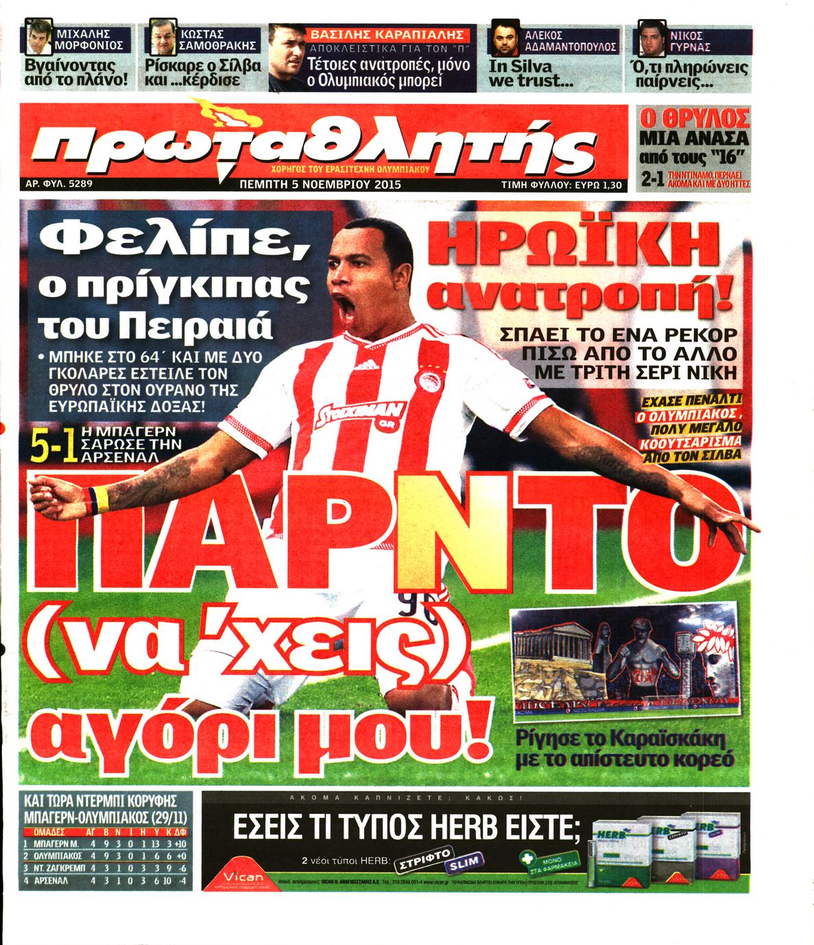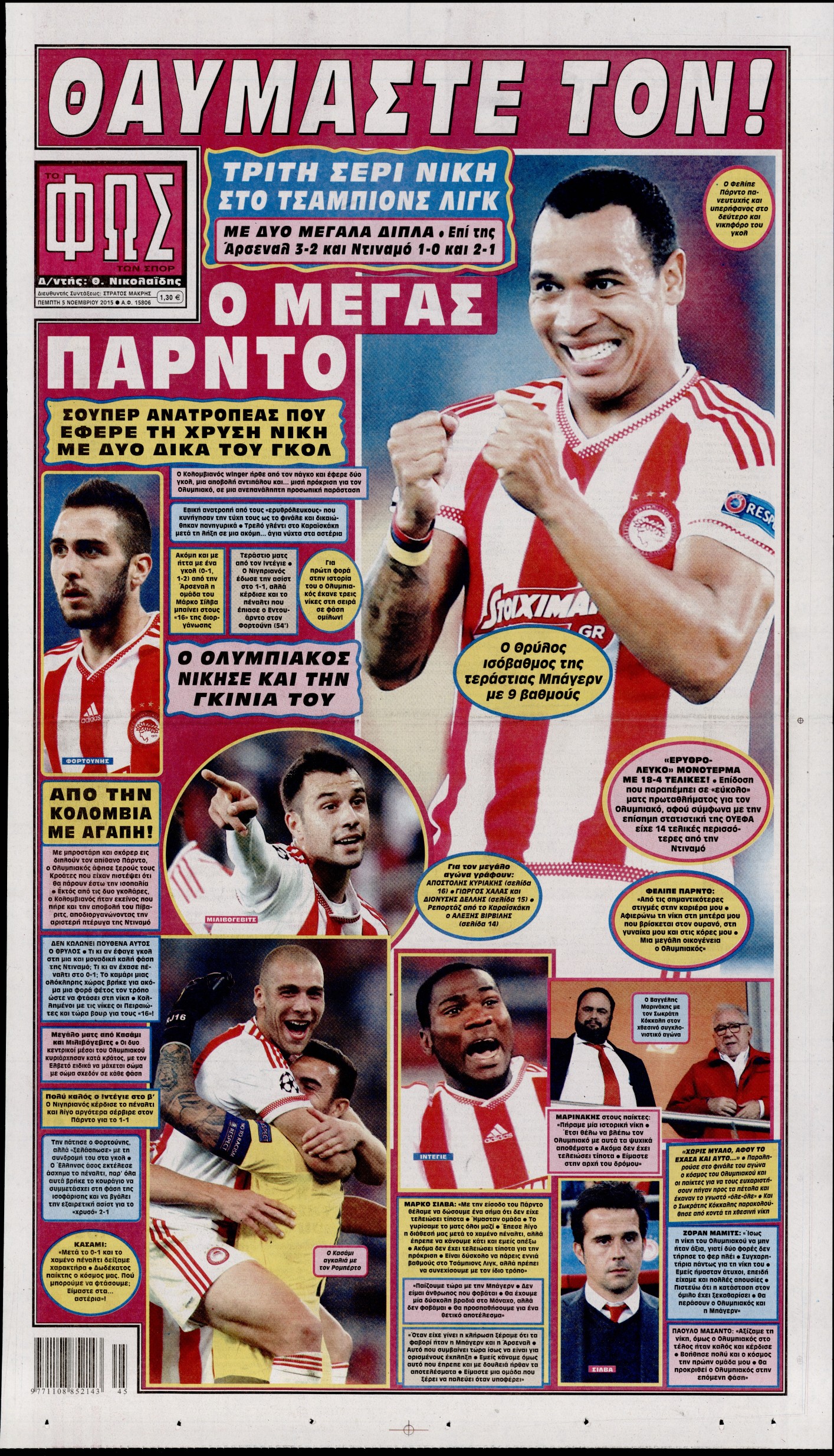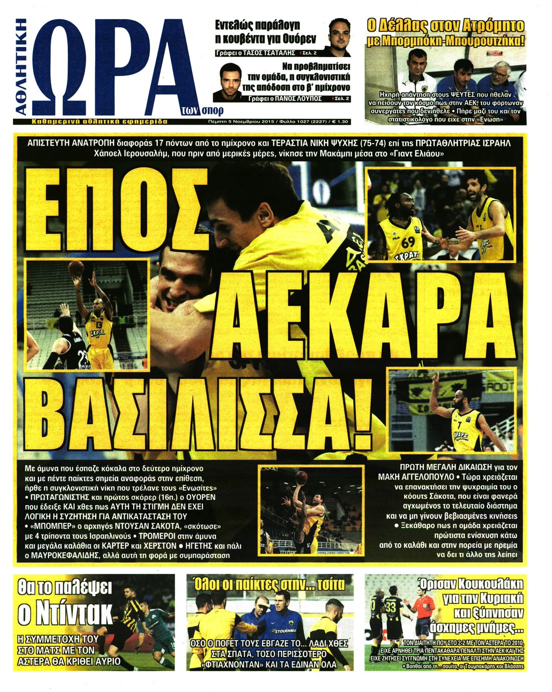 Οι αθλητικές εφημερίδες 5/11/2015 Enikos Newsroom 06:27, Πέμπτη 05 Νοεμβρίου 2015 Media Διαβάστε τα σημερινά πρωτοσέλιδα των αθλητικών εφημερίδων: ΑΘΛΗΤΙΚΕΣ ΕΦΗΜΕΡΙΔΕΣ ΠΡΩΤΟΣΕΛΙΔΑ Μοιράσου το: σχολίασε κι εσύ (0 σχόλια) Ακολουθήστε το enikos.gr στο Google News και μάθετε πρώτοι όλες τις ειδήσεις Δείτε όλες τις τελευταίες ειδήσεις από την Ελλάδα και τον Κόσμο στο enikos.gr Ειδήσεις Ροή Ειδήσεων 9 ώρες πριν Χριστούγεννα στα μπλόκα: Επιμένουν στις κινητοποιήσεις τους οι αγρότες – Ανοίγουν τα διόδια το Σαββατοκύριακο 2 ώρες πριν Σαρωτικοί οι έλεγχοι στους δρόμους ενόψει εορτών – Μπλόκα της τροχαίας σε κεντρικές αρτηρίες της Αττικής 9 ώρες πριν Πούτιν: Τα μηνύματα σε Ευρώπη και ΝΑΤΟ από το μαραθώνιο «σόου» του – Η απαίτηση για «σεβασμό» και η ειρήνη «με τους όρους» της Μόσχας 8 ώρες πριν ΗΠΑ: Η κυβέρνηση του Ντόναλντ Τραμπ άρχισε να δημοσιοποιεί τα αρχεία Έπσταϊν 8 ώρες πριν Άνω Λιόσια: Πυροβολισμοί σε επιχείρηση με χαλιά – Εντοπίστηκαν 10 κάλυκες 2 ώρες πριν Αυγά: Πόσα μπορείτε να τρώτε την ημέρα με ασφάλεια για μέγιστη πρόσληψη πρωτεΐνης 2 ώρες πριν Τα ζώδια σήμερα, Σάββατο 20 Δεκεμβρίου: Παρθένοι, το σύμπαν σας δίνει το κλειδί 9 ώρες πριν Ανακαλύφθηκαν αρχαία χρυσά νομίσματα 2.200 ετών που απεικονίζουν τον θεό Απόλλωνα – Η άγνωστη σύνδεση με τον Φίλιππο Β΄ της Μακεδονίας 1 ώρα πριν Οπτική ψευδαίσθηση: Μόνο αν είσαι ο Σέρλοκ Χολμς θα βρεις τον αριθμό «87» σε 7 δευτερόλεπτα 5 λεπτά πριν ΟΝΕΧ – MEGATUGS: Ξεκίνησε η ναυπήγηση ρυμουλκών στην Ελλάδα – Προθάλαμος πολεμικών πλοίων – Δείτε φωτογραφίες και βίντεο 14 λεπτά πριν Φοινικούντα: Σήμερα απολογείται ο 30χρονος γιος γνωστού επιχειρηματία της Πλάκας 21 λεπτά πριν Οι αθλητικές μεταδόσεις 20/12/2025 31 λεπτά πριν Εορτολόγιο: Ποιοι γιορτάζουν σήμερα 20 Δεκεμβρίου 38 λεπτά πριν Συρία: Μπαράζ αμερικανικών επιδρομών εναντίον του ISIS – «Πλήττουμε δυνατά οχυρά του ΙΚ» λέει ο Ντόναλντ Τραμπ ENIKOS NETWORK Πρέπει να αποδέχεστε ή να απορρίπτετε όλα τα cookies; Ένας ειδικός εξηγεί Η αγαπημένη λιχουδιά των πόνι που μπορεί να ενισχύσει όραση, εγκέφαλο και ανοσοποιητικό Αναστολή μέτρων αναγκαστικής εκτέλεσης για κτηνοτρόφους που πλήττονται από την ευλογιά των αιγοπροβάτων Πλήρης επάρκεια προϊόντων στις λαϊκές της Αττικής, παρά τις αγροτικές κινητοποιήσεις – Τι απαντούν οι πωλητές Χαρτογραφώντας το «σημείο χωρίς επιστροφή»: Για πρώτη φορά αποκαλύπτεται με λεπτομέρεια το ακανθώδες όριο της ατμόσφαιρας τ... Η Google καταργεί τη λειτουργία «dark web report» – Πώς θα μπορούν οι χρήστες να διαγράφουν τα δεδομένα τους περισσότερα 05:48 , Σάββατο 20 Δεκεμβρίου 2025 Οι οικονομικές εφημερίδες 20/12/2025 Διαβάστε τα πρωτοσέλιδα από τις οικονομικές εφημερίδες, σήμερα 20/12/2025. 05:43 , Σάββατο 20 Δεκεμβρίου 2025 Οι αθλητικές εφημερίδες 20/12/2025 Διαβάστε τα πρωτοσέλιδα από τις αθλητικές εφημερίδες, σήμερα 20/12/2025. 05:38 , Σάββατο 20 Δεκεμβρίου 2025 Οι πολιτικές εφημερίδες 20/12/2025 Διαβάστε τα πρωτοσέλιδα από τις πολιτικές εφημερίδες, σήμερα 20/12/2025. 04:20 , Σάββατο 20 Δεκεμβρίου 2025 Αγγελική Νικολούλη: Τα συλλυπητήρια για την απώλεια της Ειρήνης Μαρινάκη Τα συλληπητήρια στον πρόεδρο του Mega, τον Βαγγέλη Μαρινάκη, για την απώλεια της μητέρας του Ε... ΤΕΛΕΥΤΑΙΕΣ ΕΙΔΗΣΕΙΣ 5 λεπτά πριν ΟΝΕΧ – MEGATUGS: Ξεκίνησε η ναυπήγηση ρυμουλκών στην... 14 λεπτά πριν Φοινικούντα: Σήμερα απολογείται ο 30χρονος γιος... 21 λεπτά πριν Οι αθλητικές μεταδόσεις 20/12/2025 31 λεπτά πριν Εορτολόγιο: Ποιοι γιορτάζουν σήμερα 20 Δεκεμβρίου 38 λεπτά πριν Συρία: Μπαρ