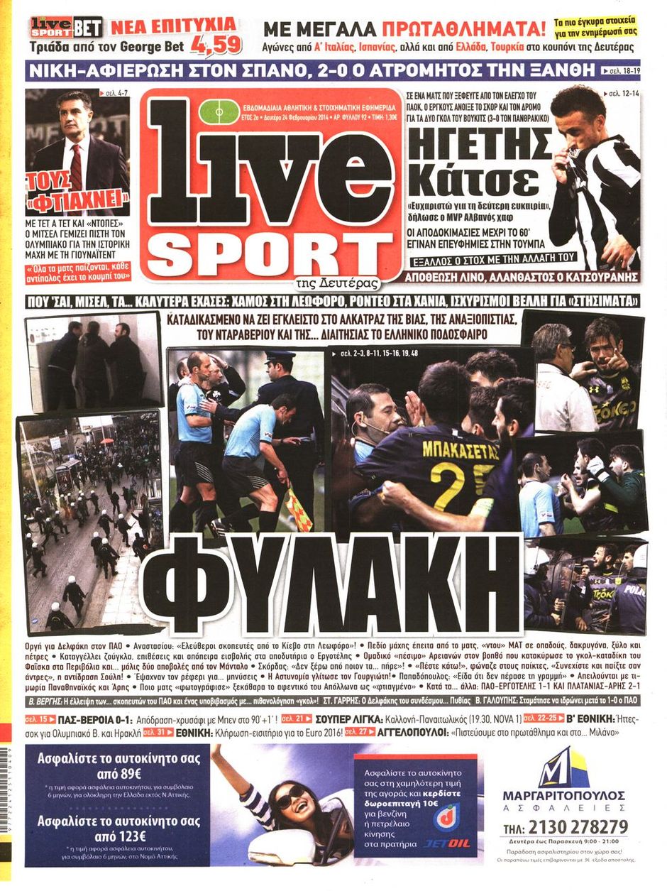 Οι αθλητικές εφημερίδες Enikos Newsroom 08:38, Δευτέρα 24 Φεβρουαρίου 2014 Media Οι αθλητικές εφημερίδες Διαβάστε τα πρωτοσέλιδα των αθλητικών εφημερίδων: ΑΘΛΗΤΙΚΕΣ ΕΦΗΜΕΡΙΔΕΣ ΕΦΗΜΕΡΙΔΕΣ ΠΡΩΤΟΣΕΛΙΔΑ Μοιράσου το: σχολίασε κι εσύ (0 σχόλια) Ακολουθήστε το enikos.gr στο Google News και μάθετε πρώτοι όλες τις ειδήσεις Δείτε όλες τις τελευταίες ειδήσεις από την Ελλάδα και τον Κόσμο στο enikos.gr Ειδήσεις Ροή Ειδήσεων 2 ώρες πριν Αυξάνουν την πίεση προς την κυβέρνηση οι αγρότες: Κλείνουν παρακαμπτήριους και ανοίγουν διόδια – Τι θα γίνει τις γιορτές 49 λεπτά πριν ΟΠΕΚΕΠΕ: Προφυλακιστέος ο φερόμενος αρχηγός και ο λογιστής της εγκληματικής οργάνωσης 2 ώρες πριν Φοινικούντα: Το Σάββατο απολογείται ο 30χρονος γιος γνωστού επιχειρηματία της Πλάκας που παραδόθηκε – Όσα είπε στους αστυνομικούς και ο ρόλος του στο έγκλημα 1 ώρα πριν Μπορεί ο Μαδούρο να αντέξει τον αποκλεισμό του Τραμπ; Τι θα χρειαστεί η Ουάσινγκτον για να τον ανατρέψει 3 ώρες πριν Πρίγκιπας Ουίλιαμ – Κέιτ: Η νέα οικογενειακή φωτογραφία για τις Χριστουγεννιάτικες κάρτες του 2025 3 ώρες πριν Ύπνος: Η απλή βραδινή ρουτίνα για να προστατεύσετε τα μαλλιά σας από το κρύο κατά τη διάρκεια του χειμώνα 4 ώρες πριν Manifesting: Πώς να συναντήσετε τον σύντροφο της ζωής σας, ανάλογα με τον μήνα γέννησής σας 2 ημέρες πριν 20 χρόνια τα Χριστούγεννα ξεκινούν στα Public με μεγάλη ποικιλία σε δώρα! 2 ώρες πριν Αρχαιολόγοι ανακάλυψαν ρωμαϊκά τεχνουργήματα από μια πόλη που δεν υπήρξε ποτέ – Τα τρία εντυπωσιακά κτίρια και ο αμφορέας με τις… σαρδέλες 28 λεπτά πριν ΑΕΚ – Κραϊόβα 3-2: Επική ανατροπή και πρόκριση στους «16» του Conference League η Ένωση 49 λεπτά πριν ΟΠΕΚΕΠΕ: Προφυλακιστέος ο φερόμενος αρχηγός και ο λογιστής της εγκληματικής οργάνωσης 59 λεπτά πριν Αθηνά Μαξίμου: Η τρυφερή ανάρτηση για τα γενέθλια του Αιμίλιου Χειλάκη – «Είναι η εκλεκτική συγγένειά μου, η επιλογή και η ευθύνη μου» 1 ώρα πριν Παναθηναϊκός – Χάποελ Τελ Αβίβ 93-82: Με… φόρα από την Κωνσταντινούπολη 1 ώρα πριν Μπορεί ο Μαδούρο να αντέξει τον αποκλεισμό του Τραμπ; Τι θα χρειαστεί η Ουάσινγκτον για να τον ανατρέψει ENIKOS NETWORK Σε περίοδο αυξημένης δραστηριότητας η γρίπη στην Ελλάδα-Μέτρα προστασίας από τον ΕΟΔΥ Σκέφτεστε συνέχεια συζητήσεις που έχετε κάνει; Τι σημαίνει αυτό, σύμφωνα με ειδικό Στεγαστικό: Τι λέει η ΠΟΜΙΔΑ για τα νέα μέτρα που ανακοίνωσε ο Κυριάκος Μητσοτάκης Λαγκάρντ: Αισιόδοξη για την ανάπτυξη της Ευρωζώνης, αβέβαιη για τον πληθωρισμό Χαρτογραφώντας το «σημείο χωρίς επιστροφή»: Για πρώτη φορά αποκαλύπτεται με λεπτομέρεια το ακανθώδες όριο της ατμόσφαιρας τ... Η Google καταργεί τη λειτουργία «dark web report» – Πώς θα μπορούν οι χρήστες να διαγράφουν τα δεδομένα τους περισσότερα 17:45 , Πέμπτη 18 Δεκεμβρίου 2025 ROUK ZOUK: Εορταστικό επεισόδιο με καλεσμένους τους πρωταγωνιστές του «Γιατί ρε πατέρα» Το Σάββατο 20 Δεκεμβρίου στις 21:00, η Ζέτα Μακρυπούλια υποδέχεται εκλεκτούς ηθοποιούς που όλο... 17:20 , Πέμπτη 18 Δεκεμβρίου 2025 Άγιος έρωτας: Η Χριστίνα εξομολογείται στον πατέρα Νικόλαο, απόψε στις 21:00 στον Alpha Η Νότα αποφασίζει να εκδικηθεί τον Πέτρο και τον Στέφανο, για χάρη του Λούη, όμως τα πράγματα ... 16:50 , Πέμπτη 18 Δεκεμβρίου 2025 Να μ’ αγαπάς: Ζωή και Φωτεινή συμφιλιώνονται ως μάνα με κόρη, απόψε στις 20:00 Η ταυτότητα του Άγγελου αποκαλύπτεται στο νέο επεισόδιο της σειράς “Να μ’ αγαπάς... 15:52 , Πέμπτη 18 Δεκεμβρίου 2025 Το Σπίτι Δίπλα Στο Ποτάμι: Το καθηλωτικό τελευταίο επεισόδιο για το 2025 απόψε στις 22:30 Κ