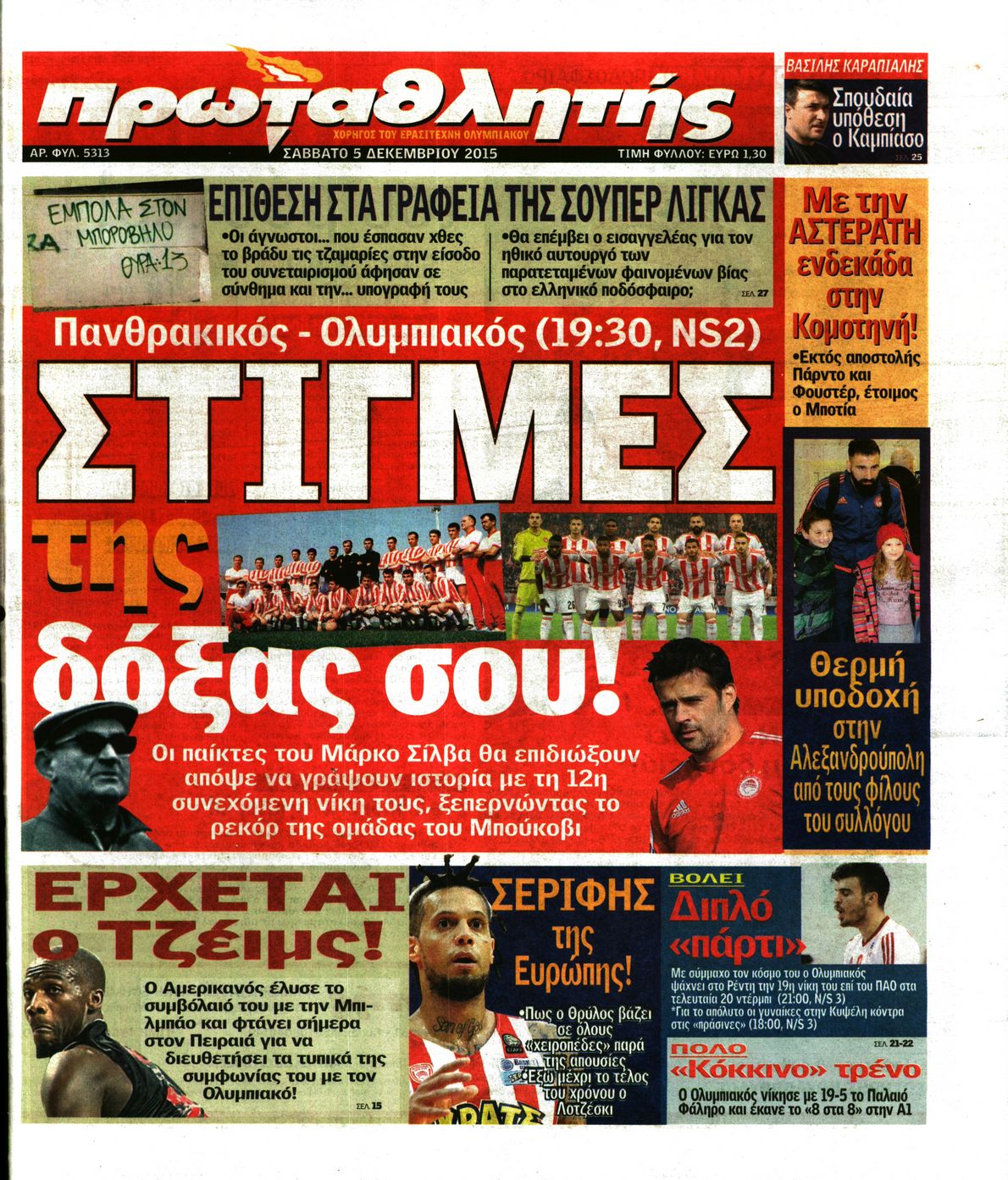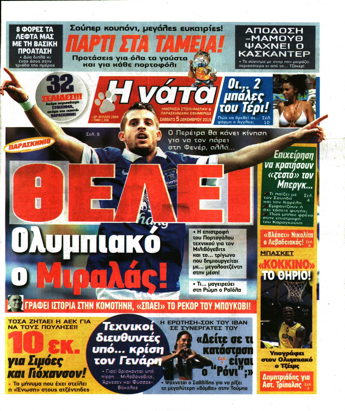 Οι αθλητικές εφημερίδες 5/12/2015 Enikos Newsroom 06:50, Σάββατο 05 Δεκεμβρίου 2015 Media Διαβάστε τα σημερινά πρωτοσέλιδα των αθλητικών εφημερίδων. ΑΘΛΗΤΙΚΕΣ ΕΦΗΜΕΡΙΔΕΣ ΕΦΗΜΕΡΙΔΕΣ Μοιράσου το: σχολίασε κι εσύ (0 σχόλια) Ακολουθήστε το enikos.gr στο Google News και μάθετε πρώτοι όλες τις ειδήσεις Δείτε όλες τις τελευταίες ειδήσεις από την Ελλάδα και τον Κόσμο στο enikos.gr Ειδήσεις Ροή Ειδήσεων 20 λεπτά πριν Αγρότες: «Όχι στον διάλογο, μας εμπαίζει η κυβέρνηση» – Αποφάσισαν κλιμάκωση των κινητοποιήσεων 48 λεπτά πριν Την πρώτη Belharra παρέλαβε η χώρα μας, υψώθηκε η ελληνική σημαία στη φρεγάτα «Κίμων» – Δένδιας: «Το ισχυρότερο Πολεμικό Ναυτικό που είχε ποτέ ο ελληνισμός» 3 ώρες πριν Γιώργος Μαζωνάκης: «Δεν ζήτησα χρήματα, παρά μόνο ηθική δικαίωση» – Οι πρώτες δηλώσεις του 21χρονου μετά την κατάθεση της μήνυσης 2 ώρες πριν Δίκη Βαλυράκη: Καταθέτει ο βασικός αυτόπτης μάρτυρας – «Δέχτηκα πιέσεις να μη μιλήσω, πήγα να ψωνίσω και αυτοκίνητο με χτύπησε στο πόδι» 7 ώρες πριν Συναγερμός και στην Ελλάδα για τη «σούπερ γρίπη»: Πόσο σοβαρή είναι και ποιοι θεωρούνται πιο ευάλωτοι – 3 ειδικοί μιλούν στο enikos.gr 1 ώρα πριν Τα 5 ζώδια που θα ευνοηθούν στα οικονομικά τους το 2026 – «Τραβούν το χρήμα σαν μαγνήτες» 6 ώρες πριν Αν κάνετε συνεχώς αυτά τα 8 πράγματα με τα κατοικίδιά σας, σας λείπει η ανθρώπινη επαφή 2 ώρες πριν Αυτό που κρύβεται κάτω από τη Γροιλανδία θα μπορούσε να ανατρέψει όσα γνωρίζουμε για την άνοδο της στάθμης των θαλασσών 1 ημέρα πριν 20 χρόνια τα Χριστούγεννα ξεκινούν στα Public με μεγάλη ποικιλία σε δώρα! 5 λεπτά πριν Μιχάλης Χουρδάκης: «Είμαι διαθέσιμος να συμβάλω στην προσωρινή κάλυψη του ιατρείου της Ψερίμου» – Η επιστολή στον Άδωνι Γεωργιάδη 10 λεπτά πριν Κουίζ για την παλιά Αθήνα: Αναγνωρίζετε την περιοχή; Είναι από τις πιο γνωστές 15 λεπτά πριν Λάμπρος Κωνσταντάρας για τα φετινά Χριστούγεννα: «Θα είναι πάρα πολύ δύσκολα, γιατί θα είναι τα πρώτα χωρίς τον πατέρα μου» 20 λεπτά πριν Αγρότες: «Όχι στον διάλογο, μας εμπαίζει η κυβέρνηση» – Αποφάσισαν κλιμάκωση των κινητοποιήσεων 24 λεπτά πριν Να μ’ αγαπάς: Ζωή και Φωτεινή συμφιλιώνονται ως μάνα με κόρη, απόψε στις 20:00 ENIKOS NETWORK 100 χρόνια ΠΙΣ: Ένας αιώνας προσφοράς στην Ιατρική και την κοινωνία Ένα ποτήρι την ημέρα από αυτόν τον χυμό μειώνει τη χοληστερίνη, τη φλεγμονή και την πίεση Κρατική επιχορήγηση έως 14.500 ευρώ: Ποιοι θα λάβουν από σήμερα την προκαταβολή στον τραπεζικό λογαριασμό τους Αυτόματη απόδοση ΦΠΑ: Τα δύο σενάρια που επεξεργάζεται η ΑΑΔΕ Χαρτογραφώντας το «σημείο χωρίς επιστροφή»: Για πρώτη φορά αποκαλύπτεται με λεπτομέρεια το ακανθώδες όριο της ατμόσφαιρας τ... Η Google καταργεί τη λειτουργία «dark web report» – Πώς θα μπορούν οι χρήστες να διαγράφουν τα δεδομένα τους περισσότερα 16:50 , Πέμπτη 18 Δεκεμβρίου 2025 Να μ’ αγαπάς: Ζωή και Φωτεινή συμφιλιώνονται ως μάνα με κόρη, απόψε στις 20:00 Η ταυτότητα του Άγγελου αποκαλύπτεται στο νέο επεισόδιο της σειράς “Να μ’ αγαπάς... 15:52 , Πέμπτη 18 Δεκεμβρίου 2025 Το Σπίτι Δίπλα Στο Ποτάμι: Το καθηλωτικό τελευταίο επεισόδιο για το 2025 απόψε στις 22:30 Καθηλώνει το σημερινό επεισόδιο της σειράς “Το Σπίτι Δίπλα Στο Ποτάμι” που έρχεται... 15:20 , Πέμπτη 18 Δεκεμβρίου 2025 Άγιος έρωτας – Η Ελευθερία Αρβανιτάκη τραγουδά και ο Γιάννης Τσορτέκης καθηλώνει με τον χορό του Ο Κλεάνθης χορεύει στους ήχους της Ελευθερίας Αρβανιτάκη στη σειρά “Άγιος Έρωτας“.... 08:00 , Πέμπτη 18 Δεκεμβρίου 2025 Την Κυριακή με τη Realnews: Δωροεπιταγή 10€