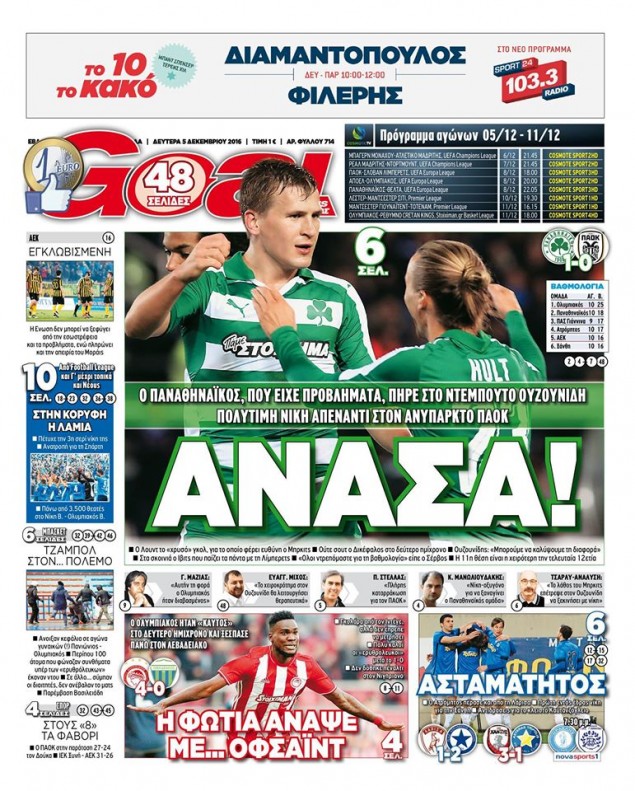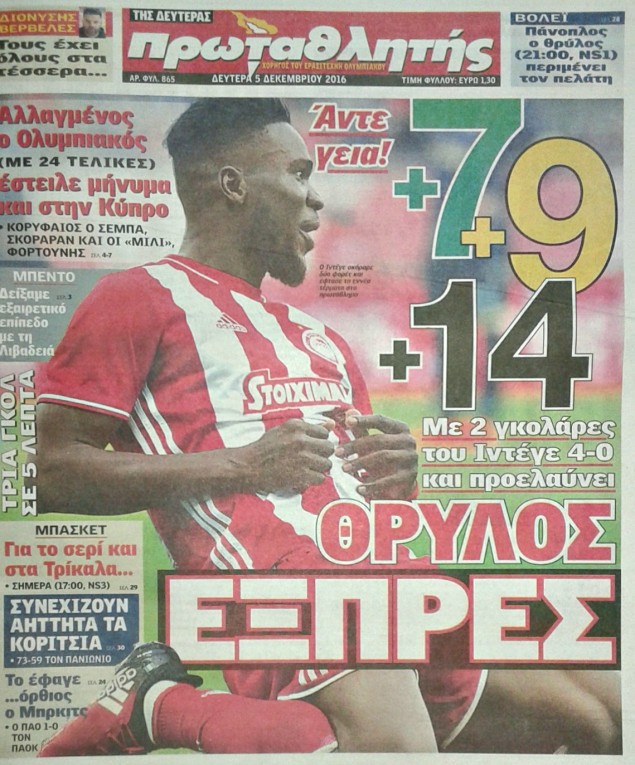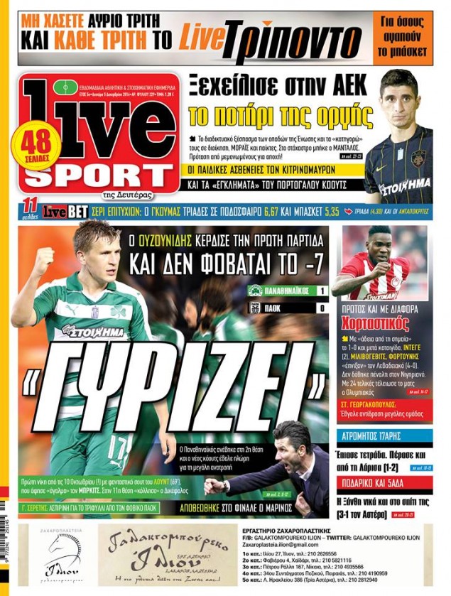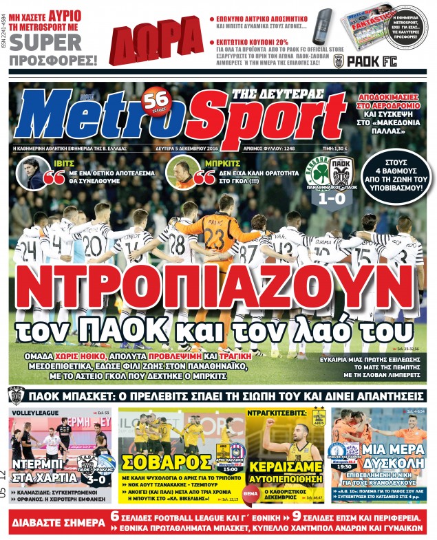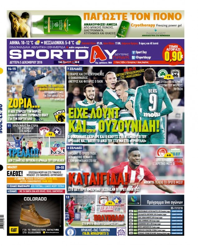 Οι αθλητικές εφημερίδες 5/12/2016 Κώστας Τεό 05:03, Δευτέρα 05 Δεκεμβρίου 2016 Media Διαβάστε τα σημερινά πρωτοσέλιδα των αθλητικών εφημερίδων: ΑΘΛΗΤΙΚΕΣ ΕΦΗΜΕΡΙΔΕΣ ΠΡΩΤΟΣΕΛΙΔΑ Μοιράσου το: σχολίασε κι εσύ (0 σχόλια) Ακολουθήστε το enikos.gr στο Google News και μάθετε πρώτοι όλες τις ειδήσεις Δείτε όλες τις τελευταίες ειδήσεις από την Ελλάδα και τον Κόσμο στο enikos.gr Ειδήσεις Ροή Ειδήσεων 7 ώρες πριν Μητσοτάκης: Αναγκαία η μεταρρύθμιση του πρωτογενούς τομέα – Τα 6 νέα μέτρα για το στεγαστικό και οι αναφορές σε «Ιθάκη» και «πολιτικούς του καναπέ» 6 ώρες πριν Δάνεια σε ελβετικό φράγκο: Τα βασικά σημεία της ρύθμισης – ανάσας για 40.000 δανειολήπτες – Αναλυτικός οδηγός με ερωτήσεις και απαντήσεις 6 ώρες πριν Κυψέλη: Εξιτήριο πήρε η 14χρονη μαθήτρια που μαχαιρώθηκε από την 16χρονη σε σχολείο – «Θέλω να βοηθήσω το παιδί, έχει μπλέξει με κακές παρέες» 6 ώρες πριν Τραμπ: Γιατί κατέθεσε τώρα την αγωγή κατά του BBC – Πώς η κίνησή του εξυπηρετεί το νέο δόγμα του για «αντίσταση» στην Ευρώπη, υπέρ των συντηρητικών 7 ώρες πριν ΟΠΕΚΕΠΕ – Παράνομες επιδοτήσεις: Ελεύθεροι με περιοριστικούς όρους και οι 7 κατηγορούμενοι που απολογήθηκαν σήμερα 6 ώρες πριν Ανακαλύφθηκε βυθισμένη πέτρινη κατασκευή ανοιχτά της Κριμαίας – Αποτελεί μέρος αρχαίας ελληνικής αποικίας 7 ώρες πριν Ύπνος: Αυτό μπορεί να είναι το χειρότερο λάθος για το βιολογικό ρολόι σας, σύμφωνα με ειδικό 8 ώρες πριν Αριθμολογία: Οι άνθρωποι που έχουν γεννηθεί αυτές τις 3 ημερομηνίες, προσελκύουν μεγάλη τύχη πριν από το τέλος του 2025 10 ώρες πριν Οι 7 συμπεριφορές που μαρτυρούν ότι ένας άνδρας επενδύει μακροπρόθεσμα σε μια σχέση 9 λεπτά πριν Παλαιστινιακό: «Η λύση των δύο κρατών είναι ο μόνος βιώσιμος δρόμος», τόνισε η Ελλάδα στο Συμβούλιο Ασφαλείας του ΟΗΕ 16 λεπτά πριν Ελένη Καρακάση: «Ένιωθα πολύ αδικημένη, δεν μπορούσα να ελέγξω τον εαυτό μου σε δύσκολες στιγμές» 24 λεπτά πριν Κλαούδια Σέινμπαουμ προς Ντόναλντ Τραμπ για φαιντανύλη: Να επιτεθούμε στα αίτια κατανάλωσης αντί να την κατατάσσουμε στα «όπλα μαζικής καταστροφής» 32 λεπτά πριν Ρωσία: Ουκρανική επίθεση με drones στο Κρασνοντάρ – Δύο τραυματίες, ζημιές σε σπίτια και διακοπή ρεύματος 41 λεπτά πριν Αντόνιο Ταγιάνι: Νομικά εμπόδια για τη χρήση των ρωσικών κεφαλαίων υπέρ της Ουκρανίας ENIKOS NETWORK Αίτημα ΙΣΑ για την εξαίρεση των προσωπικών γιατρών από τις κατ’ οίκον επισκέψεις Η σκανδιναβική μέθοδος στον ύπνο που μπορεί να σώσει έναν γάμο Πιερρακάκης: Ο προϋπολογισμός συμβάλλει ουσιαστικά στην ενίσχυση της αγοραστικής δύναμης της πλειονότητας των εργαζομένων e-ΕΦΚΑ: Παρατείνεται η προθεσμία για την υποβολή ΑΠΔ – Ποιους αφορά Σύγχρονος Νοστράδαμος: Προειδοποιεί για «μεγάλο γεγονός» τους επόμενους μήνες που θα συγκλονίσει τη Βρετανία και τον κόσμο Τεστ παρατηρητικότητας: Μπορείτε να βρείτε τις 3 διαφορές στις εικόνες με έναν πιγκουίνο σε 14 δευτερόλεπτα περισσότερα 20:06 , Τρίτη 16 Δεκεμβρίου 2025 Ο ΣΚΑΙ καταγγέλλει τον ΕΚΚΟΜΕΔ Επιστολή με την οποία καταγράφει την έντονη διαμαρτυρία του προς τον διευθύνοντα σύμβουλο του... 17:40 , Τρίτη 16 Δεκεμβρίου 2025 Eurovision: Στις 4 Ιανουαρίου αποκαλύπτονται τα 28 τραγούδια του ελληνικού τελικού Η αγωνία τελειώνει, η γιορτή της Eurovision αρχίζει στην ΕΡΤ από τις πρώτες ημέρες της νέας χρ... 17:09 , Τρίτη 16 Δεκεμβρίου 2025 Alter Ego Media: Βαθύτατη θλίψη και ειλικρινή συλλυπητήρια για την απώλεια της Ειρήνης Μαρινάκη Τη βαθύτατη θλίψη και τα ειλικρινή συλλυπητήριά της 
