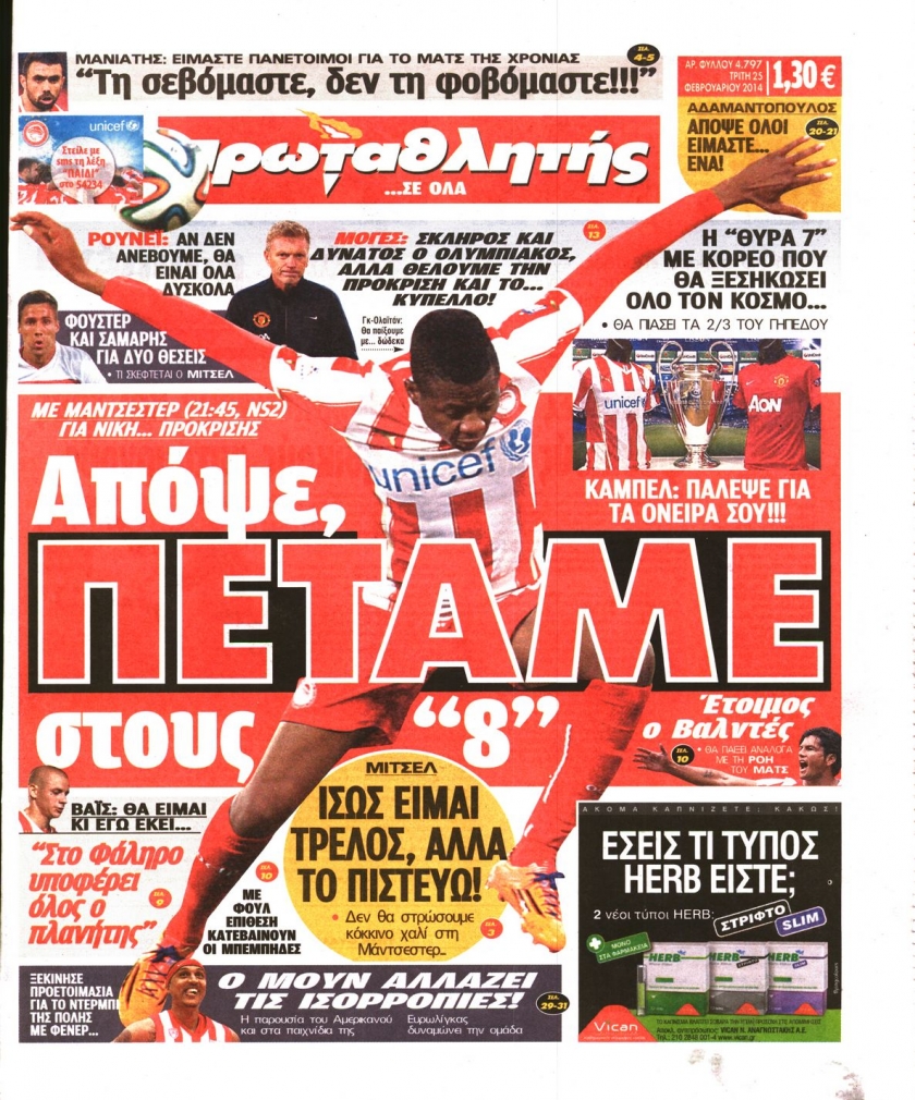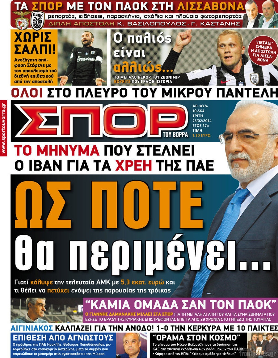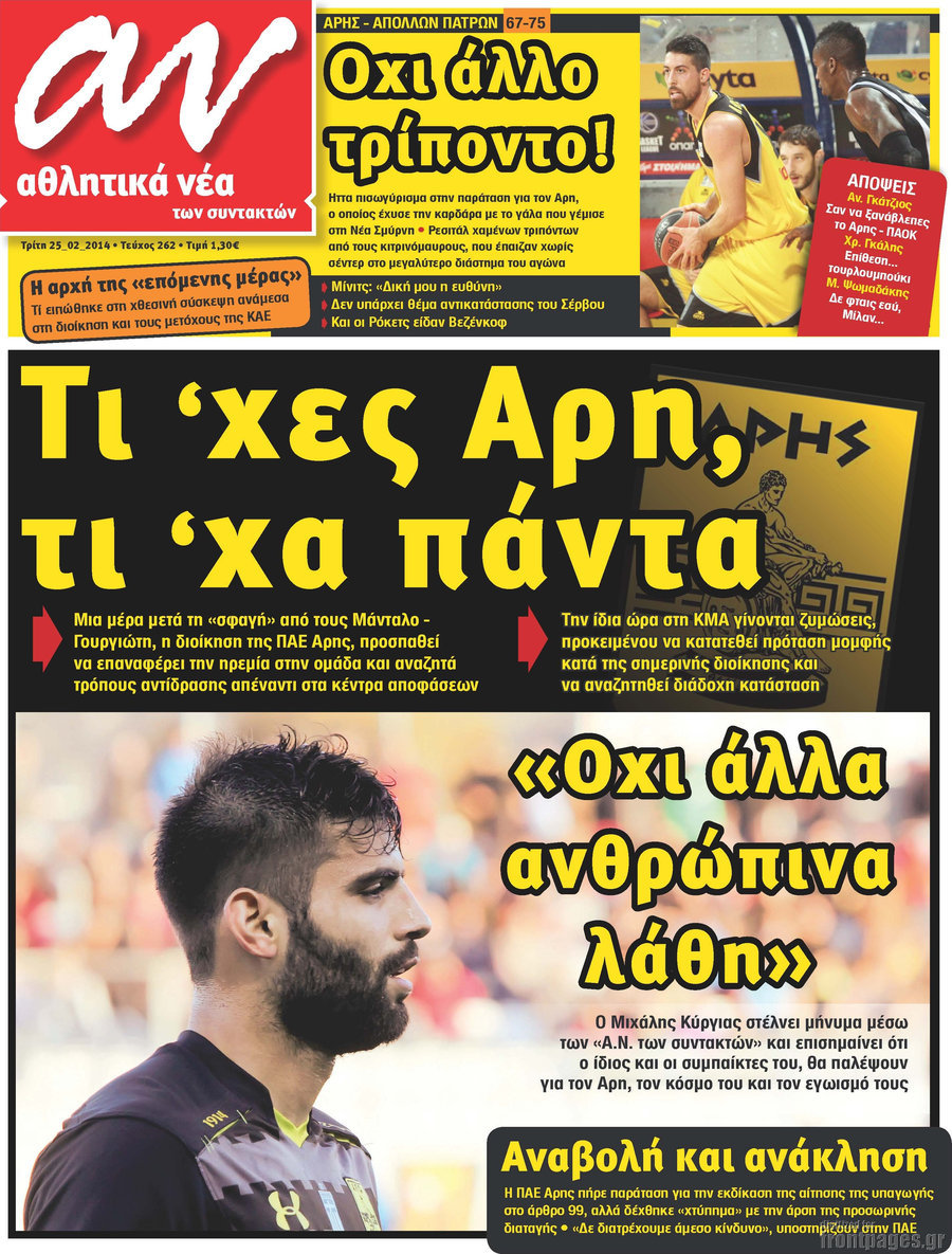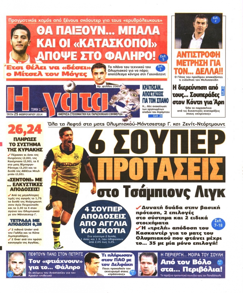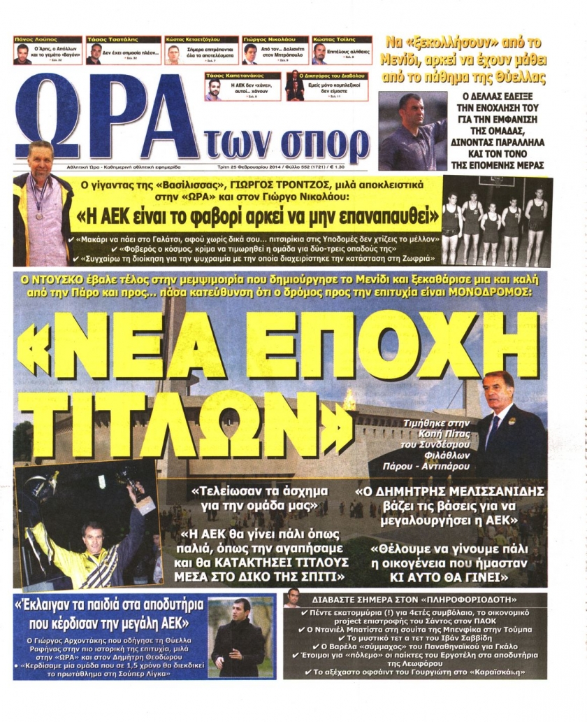 Οι αθλητικές εφημερίδες Enikos Newsroom 08:43, Τρίτη 25 Φεβρουαρίου 2014 Media Οι αθλητικές εφημερίδες Διαβάστε τα πρωτοσέλιδα των αθλητικών εφημερίδων: ΑΘΛΗΤΙΚΕΣ ΕΦΗΜΕΡΙΔΕΣ ΕΦΗΜΕΡΙΔΕΣ ΠΡΩΤΟΣΕΛΙΔΑ Μοιράσου το: σχολίασε κι εσύ (0 σχόλια) Ακολουθήστε το enikos.gr στο Google News και μάθετε πρώτοι όλες τις ειδήσεις Δείτε όλες τις τελευταίες ειδήσεις από την Ελλάδα και τον Κόσμο στο enikos.gr Ειδήσεις Ροή Ειδήσεων 5 ώρες πριν Αυξάνουν την πίεση προς την κυβέρνηση οι αγρότες: Κλείνουν παρακαμπτήριους και ανοίγουν διόδια – Τι θα γίνει τις γιορτές 4 ώρες πριν ΟΠΕΚΕΠΕ: Προφυλακιστέος ο φερόμενος αρχηγός και ο λογιστής της εγκληματικής οργάνωσης 24 λεπτά πριν Ευρωπαϊκή Ένωση: Χωρίς συμφωνία, για την μακροπρόθεσμη χρηματοδότηση της Ουκρανίας, ολοκληρώθηκε η Σύνοδος Κορυφής στις Βρυξέλλες 3 ώρες πριν ΑΕΚ – Κραϊόβα 3-2: Επική ανατροπή και πρόκριση στους «16» του Conference League η Ένωση 5 ώρες πριν Φοινικούντα: Το Σάββατο απολογείται ο 30χρονος γιος γνωστού επιχειρηματία της Πλάκας που παραδόθηκε – Όσα είπε στους αστυνομικούς και ο ρόλος του στο έγκλημα 4 ώρες πριν Αρχαιολόγοι ανακάλυψαν ρωμαϊκά τεχνουργήματα από μια πόλη που δεν υπήρξε ποτέ – Τα τρία εντυπωσιακά κτίρια και ο αμφορέας με τις… σαρδέλες 5 ώρες πριν Ύπνος: Η απλή βραδινή ρουτίνα για να προστατεύσετε τα μαλλιά σας από το κρύο κατά τη διάρκεια του χειμώνα 6 ώρες πριν Manifesting: Πώς να συναντήσετε τον σύντροφο της ζωής σας, ανάλογα με τον μήνα γέννησής σας 2 ημέρες πριν 20 χρόνια τα Χριστούγεννα ξεκινούν στα Public με μεγάλη ποικιλία σε δώρα! 24 λεπτά πριν Ευρωπαϊκή Ένωση: Χωρίς συμφωνία, για την μακροπρόθεσμη χρηματοδότηση της Ουκρανίας, ολοκληρώθηκε η Σύνοδος Κορυφής στις Βρυξέλλες 39 λεπτά πριν GNTM: «Κλείδωσαν» οι τέσσερις φιναλίστ – Μεγάλη ανατροπή στις τελευταίες αποχωρήσεις 53 λεπτά πριν Γιώργος Μαζωνάκης: Αποθεώθηκε στην πρεμιέρα του στην «Ακτή Πειραιώς» λίγες ώρες μετά τις καταγγελίες – «Είμαι αληθινός», είπε με νόημα 1 ώρα πριν Πόλεμος στην Ουκρανία: Ρωσικά drones έπληξαν την Οδησσό – Μία νεκρή και ζημιές σε ενεργειακές υποδομές 1 ώρα πριν ΑΕΚ-Κραϊόβα: Τα highlights της μυθικής ανατροπής της «Ένωσης» ENIKOS NETWORK Σε περίοδο αυξημένης δραστηριότητας η γρίπη στην Ελλάδα-Μέτρα προστασίας από τον ΕΟΔΥ Σκέφτεστε συνέχεια συζητήσεις που έχετε κάνει; Τι σημαίνει αυτό, σύμφωνα με ειδικό Στεγαστικό: Τι λέει η ΠΟΜΙΔΑ για τα νέα μέτρα που ανακοίνωσε ο Κυριάκος Μητσοτάκης Λαγκάρντ: Αισιόδοξη για την ανάπτυξη της Ευρωζώνης, αβέβαιη για τον πληθωρισμό Χαρτογραφώντας το «σημείο χωρίς επιστροφή»: Για πρώτη φορά αποκαλύπτεται με λεπτομέρεια το ακανθώδες όριο της ατμόσφαιρας τ... Η Google καταργεί τη λειτουργία «dark web report» – Πώς θα μπορούν οι χρήστες να διαγράφουν τα δεδομένα τους περισσότερα 02:50 , Παρασκευή 19 Δεκεμβρίου 2025 GNTM: «Κλείδωσαν» οι τέσσερις φιναλίστ – Μεγάλη ανατροπή στις τελευταίες αποχωρήσεις Για προτελευταία φορά εμφανίστηκαν στο πλατό του GNTM οι φιναλίστ του φετινού κύκλου, το βράδυ... 17:45 , Πέμπτη 18 Δεκεμβρίου 2025 ROUK ZOUK: Εορταστικό επεισόδιο με καλεσμένους τους πρωταγωνιστές του «Γιατί ρε πατέρα» Το Σάββατο 20 Δεκεμβρίου στις 21:00, η Ζέτα Μακρυπούλια υποδέχεται εκλεκτούς ηθοποιούς που όλο... 17:20 , Πέμπτη 18 Δεκεμβρίου 2025 Άγιος έρωτας: Η Χριστίνα εξομολογείται στον πατέρα Νικόλαο, απόψε στις 21:00 στον Alpha Η Νότα αποφασίζει να εκδικηθεί τον Πέτρο και τον Στέφανο, για χάρη του Λούη, όμως τα πράγματα ... 16:50 , Πέμπτη 18 Δεκεμβρίου 2025 Να μ’ αγαπάς: Ζωή και 
