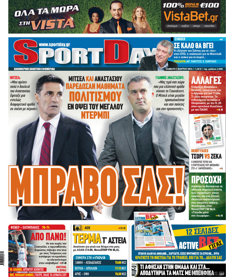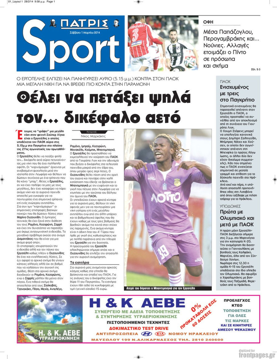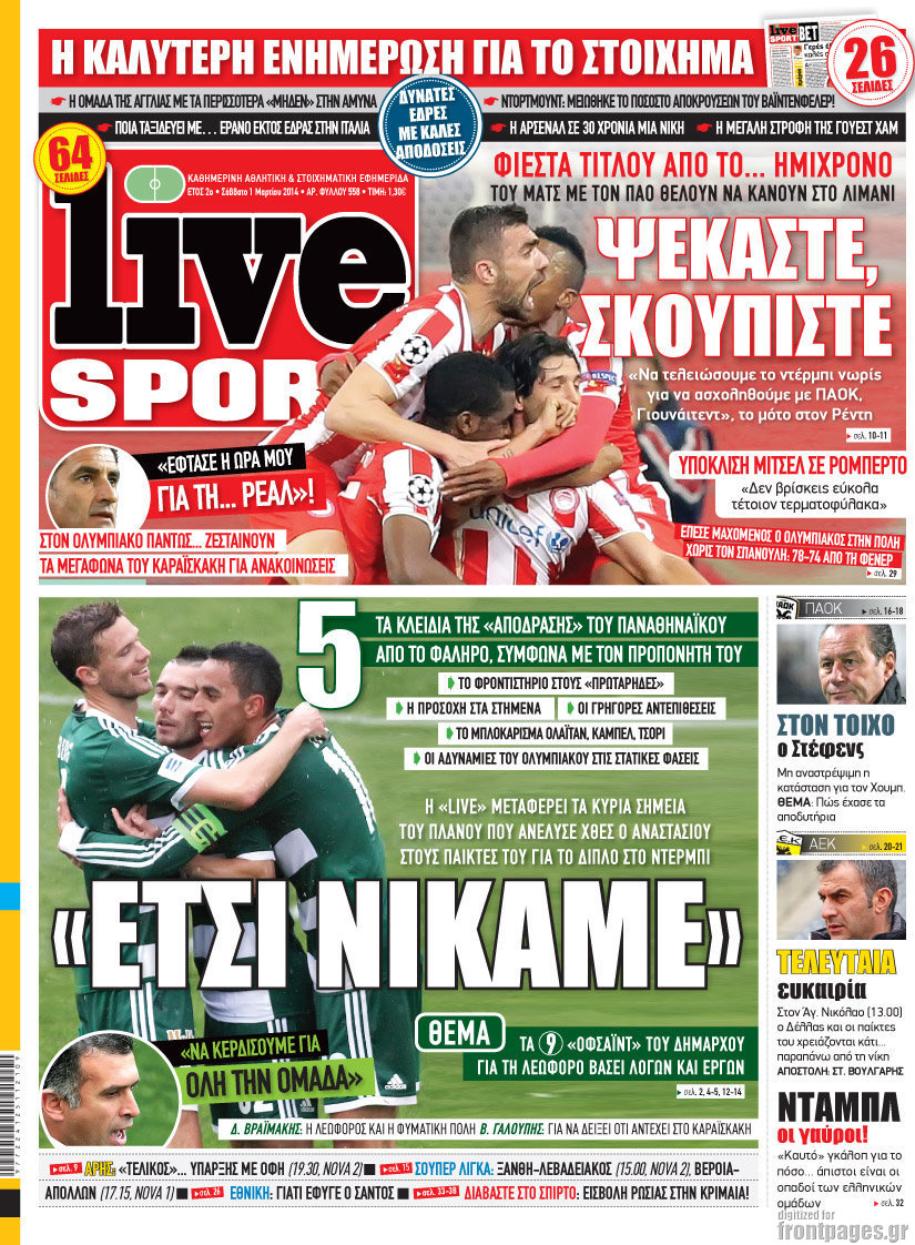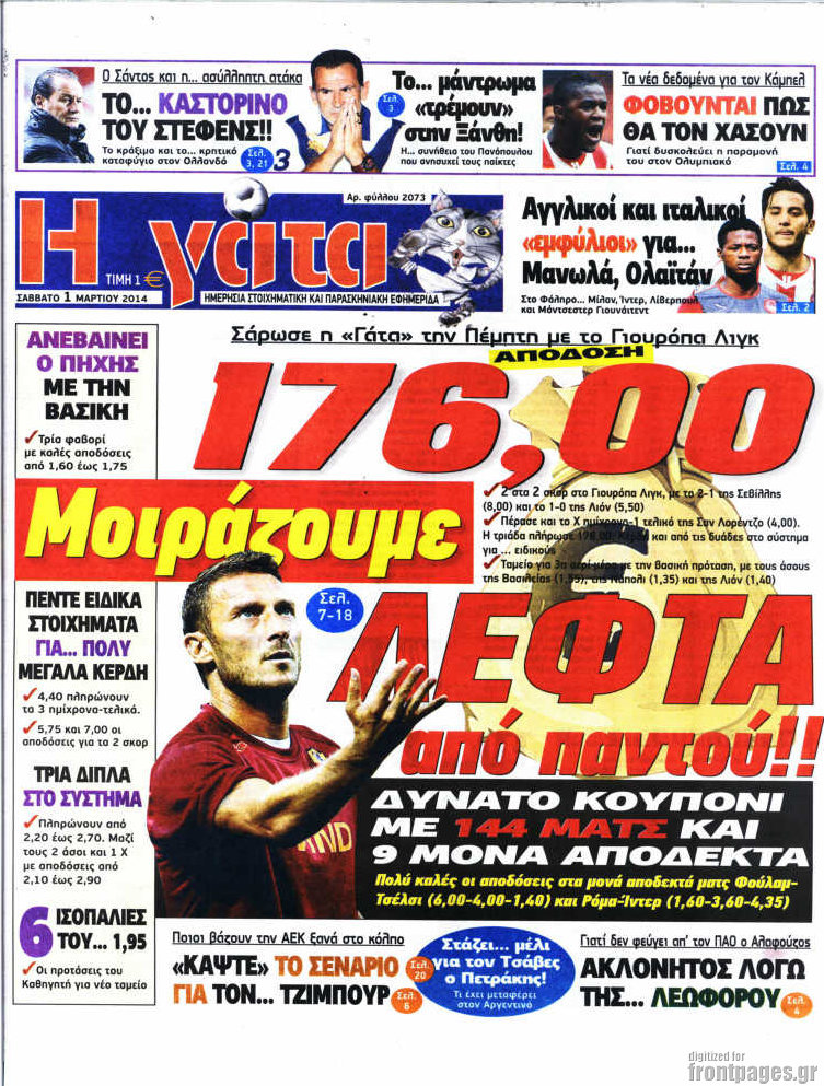 Οι αθλητικές εφημερίδες Enikos Newsroom 08:25, Σάββατο 01 Μαρτίου 2014 Media Οι αθλητικές εφημερίδες ΑΘΛΗΤΙΚΕΣ ΕΦΗΜΕΡΙΔΕΣ ΕΦΗΜΕΡΙΔΕΣ Μοιράσου το: σχολίασε κι εσύ (0 σχόλια) Ακολουθήστε το enikos.gr στο Google News και μάθετε πρώτοι όλες τις ειδήσεις Δείτε όλες τις τελευταίες ειδήσεις από την Ελλάδα και τον Κόσμο στο enikos.gr Ειδήσεις Ροή Ειδήσεων 43 λεπτά πριν Φοροδιαφυγή: Ποιοι φορολογούμενοι κινδυνεύουν να πληρώσουν «τσουχτερά» πρόστιμα 4 λεπτά πριν Φοινικούντα: Παραδόθηκε 30χρονος στην Καλαμάτα για τη διπλή δολοφονία 21 λεπτά πριν Αγρότες: Ανυποχώρητοι στα μπλόκα – Στις Σέρρες σήμερα η κρίσιμη συνεδρίαση της Πανελλαδικής Επιτροπής 33 λεπτά πριν Τα επίσημα χρονοδιαγράμματα που η Τουρκία θα παραλάβει τα Eurofighter 9 ώρες πριν «Θύελλα» αντιδράσεων για τον Νίκο Παππά μετά την επίθεση στον δημοσιογράφο Νίκο Γιαννόπουλο – Η μήνυση, οι δηλώσεις και η έξοδος από την ευρωομάδα του ΣΥΡΙΖΑ 2 ώρες πριν Καούρα: Το μπαχαρικό που είναι «εξίσου αποτελεσματικό» με την ομεπραζόλη, σύμφωνα με ειδικούς 3 ώρες πριν Τα ζώδια σήμερα, Πέμπτη 18 Δεκεμβρίου: Λέοντες, η καρδιά σας θέλει να εκφραστεί 2 ώρες πριν Οπτική ψευδαίσθηση: Μόνο οι πιο έξυπνοι άνθρωποι θα βρουν 7 ξωτικά 15 δευτερόλεπτα 23 ώρες πριν 20 χρόνια τα Χριστούγεννα ξεκινούν στα Public με μεγάλη ποικιλία σε δώρα! 1 λεπτό πριν Την Κυριακή με τη Realnews: Δωροεπιταγή 10€ 4 λεπτά πριν Φοινικούντα: Παραδόθηκε 30χρονος στην Καλαμάτα για τη διπλή δολοφονία 7 λεπτά πριν Έδεσσα: Χωρίς τις αισθήσεις ανασύρθηκε ηλικιωμένη έπειτα από φωτιά σε μονοκατοικία 11 λεπτά πριν «Το σόι σου»: Backstage στα γυρίσματα για το εορταστικό επεισόδιο 18 λεπτά πριν e-ΕΦΚΑ και ΔΥΠΑ: Προτελευταία ημέρα πληρωμών σήμερα ENIKOS NETWORK Ουρική αρθρίτιδα: Μεγάλη μελέτη αποκαλύπτει τι μπορεί να προκαλεί τη νόσο Τι σημαίνει όταν ο σκύλος σας σάς φέρνει τυχαία αντικείμενα, σύμφωνα με εκπαιδεύτρια Οφειλές προς το Δημόσιο: «Φρένο» στα σενάρια για νέα ρύθμιση – Τι απαντά το υπουργείο Εθνικής Οικονομίας και Οικονομικών Φοροδιαφυγή: Ποιοι φορολογούμενοι κινδυνεύουν να πληρώσουν «τσουχτερά» πρόστιμα Χαρτογραφώντας το «σημείο χωρίς επιστροφή»: Για πρώτη φορά αποκαλύπτεται με λεπτομέρεια το ακανθώδες όριο της ατμόσφαιρας τ... Η Google καταργεί τη λειτουργία «dark web report» – Πώς θα μπορούν οι χρήστες να διαγράφουν τα δεδομένα τους περισσότερα 07:50 , Πέμπτη 18 Δεκεμβρίου 2025 «Το σόι σου»: Backstage στα γυρίσματα για το εορταστικό επεισόδιο «Το σόι σου» φορά τα γιορτινά του για τα Χριστούγεννα και η Όλγα Λαφαζάνη, με την κάμερα του «... 07:36 , Πέμπτη 18 Δεκεμβρίου 2025 Οι αθλητικές μεταδόσεις 18/12/2025 – Πού θα δείτε τον αγώνα της ΑΕΚ με την Κραϊόβα για το Conference League Τα ματς ΑΕΚ – Ουνιβερσιτάτεα Κραϊόβα για το Conference League και Παναθηναϊκός – Χάποελ Τελ Αβ... 05:48 , Πέμπτη 18 Δεκεμβρίου 2025 Οι οικονομικές εφημερίδες 18/12/2025 Διαβάστε τα πρωτοσέλιδα από τις οικονομικές εφημερίδες, σήμερα 18/12/2025. 05:43 , Πέμπτη 18 Δεκεμβρίου 2025 Οι αθλητικές εφημερίδες 18/12/2025 Διαβάστε τα πρωτοσέλιδα από τις αθλητικές εφημερίδες, σήμερα 18/12/2025. ΤΕΛΕΥΤΑΙΕΣ ΕΙΔΗΣΕΙΣ 4 λεπτά πριν Φοινικούντα: Παραδόθηκε 30χρονος στην Καλαμάτα για τη... 7 λεπτά πριν Έδεσσα: Χωρίς τις αισθήσεις ανασύρθηκε ηλικιωμένη... 11 λεπτά πριν «Το σόι σου»: Backstage στα γυρίσματα για το εορταστικό... 18 λεπτά πριν e-ΕΦΚΑ και ΔΥΠΑ: Προτελευταία ημέρα πληρωμών σήμερα 21 λεπτά πριν Αγρότες: Ανυποχώρητοι στα μπλόκα – Στις Σέρρες... 25 λεπτά πριν Οι αθλητικές μεταδόσεις 18/12/2025 – Πού θα δείτε τον... 29 λεπτά πριν Σοβα
