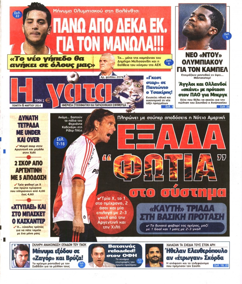 Οι αθλητικές εφημερίδες Enikos Newsroom 08:25, Πέμπτη 06 Μαρτίου 2014 Media Οι αθλητικές εφημερίδες Διαβάστε τα πρωτοσέλιδα των αθλητικών εφημερίδων: ΑΘΛΗΤΙΚΕΣ ΕΦΗΜΕΡΙΔΕΣ ΕΦΗΜΕΡΙΔΕΣ ΠΡΩΤΟΣΕΛΙΔΑ Μοιράσου το: σχολίασε κι εσύ (0 σχόλια) Ακολουθήστε το enikos.gr στο Google News και μάθετε πρώτοι όλες τις ειδήσεις Δείτε όλες τις τελευταίες ειδήσεις από την Ελλάδα και τον Κόσμο στο enikos.gr Ειδήσεις Ροή Ειδήσεων 8 ώρες πριν Μητσοτάκης: Αναγκαία η μεταρρύθμιση του πρωτογενούς τομέα – Τα 6 νέα μέτρα για το στεγαστικό και οι αναφορές σε «Ιθάκη» και «πολιτικούς του καναπέ» 7 ώρες πριν Δάνεια σε ελβετικό φράγκο: Τα βασικά σημεία της ρύθμισης – ανάσας για 40.000 δανειολήπτες – Αναλυτικός οδηγός με ερωτήσεις και απαντήσεις 7 ώρες πριν Κυψέλη: Εξιτήριο πήρε η 14χρονη μαθήτρια που μαχαιρώθηκε από την 16χρονη σε σχολείο – «Θέλω να βοηθήσω το παιδί, έχει μπλέξει με κακές παρέες» 7 ώρες πριν Τραμπ: Γιατί κατέθεσε τώρα την αγωγή κατά του BBC – Πώς η κίνησή του εξυπηρετεί το νέο δόγμα του για «αντίσταση» στην Ευρώπη, υπέρ των συντηρητικών 8 ώρες πριν ΟΠΕΚΕΠΕ – Παράνομες επιδοτήσεις: Ελεύθεροι με περιοριστικούς όρους και οι 7 κατηγορούμενοι που απολογήθηκαν σήμερα 7 ώρες πριν Ανακαλύφθηκε βυθισμένη πέτρινη κατασκευή ανοιχτά της Κριμαίας – Αποτελεί μέρος αρχαίας ελληνικής αποικίας 8 ώρες πριν Ύπνος: Αυτό μπορεί να είναι το χειρότερο λάθος για το βιολογικό ρολόι σας, σύμφωνα με ειδικό 9 ώρες πριν Αριθμολογία: Οι άνθρωποι που έχουν γεννηθεί αυτές τις 3 ημερομηνίες, προσελκύουν μεγάλη τύχη πριν από το τέλος του 2025 11 ώρες πριν Οι 7 συμπεριφορές που μαρτυρούν ότι ένας άνδρας επενδύει μακροπρόθεσμα σε μια σχέση 8 λεπτά πριν Τα ζώδια σήμερα, Τετάρτη 17 Δεκεμβρίου: Κριοί, η αυτοπεποίθησή σας ενισχύεται 16 λεπτά πριν Εφημερεύοντα φαρμακεία σε Αθήνα και Θεσσαλονίκη (17/12) 21 λεπτά πριν Κόστα Ρίκα: Το Κογκρέσο απέρριψε το αίτημα για άρση της ασυλίας του προέδρου Τσάβες 29 λεπτά πριν Κολομβία: Νεκροί τέσσερις αστυνομικοί σε βομβιστικές επιθέσεις ανταρτών 37 λεπτά πριν Στάση εργασίας 11:00 – 17:00 σήμερα στα λεωφορεία του ΟΑΣΑ – Ποιες γραμμές θα λειτουργήσουν ENIKOS NETWORK Αίτημα ΙΣΑ για την εξαίρεση των προσωπικών γιατρών από τις κατ’ οίκον επισκέψεις Η σκανδιναβική μέθοδος στον ύπνο που μπορεί να σώσει έναν γάμο Πιερρακάκης: Ο προϋπολογισμός συμβάλλει ουσιαστικά στην ενίσχυση της αγοραστικής δύναμης της πλειονότητας των εργαζομένων e-ΕΦΚΑ: Παρατείνεται η προθεσμία για την υποβολή ΑΠΔ – Ποιους αφορά Σύγχρονος Νοστράδαμος: Προειδοποιεί για «μεγάλο γεγονός» τους επόμενους μήνες που θα συγκλονίσει τη Βρετανία και τον κόσμο Τεστ παρατηρητικότητας: Μπορείτε να βρείτε τις 3 διαφορές στις εικόνες με έναν πιγκουίνο σε 14 δευτερόλεπτα περισσότερα 20:06 , Τρίτη 16 Δεκεμβρίου 2025 Ο ΣΚΑΙ καταγγέλλει τον ΕΚΚΟΜΕΔ Επιστολή με την οποία καταγράφει την έντονη διαμαρτυρία του προς τον διευθύνοντα σύμβουλο του... 17:40 , Τρίτη 16 Δεκεμβρίου 2025 Eurovision: Στις 4 Ιανουαρίου αποκαλύπτονται τα 28 τραγούδια του ελληνικού τελικού Η αγωνία τελειώνει, η γιορτή της Eurovision αρχίζει στην ΕΡΤ από τις πρώτες ημέρες της νέας χρ... 17:09 , Τρίτη 16 Δεκεμβρίου 2025 Alter Ego Media: Βαθύτατη θλίψη και ειλικρινή συλλυπητήρια για την απώλεια της Ειρήνης Μαρινάκη Τη βαθύτατη θλίψη και τα ειλικρινή συλλυπητήριά της εκφράζει η Alter Ego Media για τον θάνατο ... 13:00 , Τρίτη 16 Δεκεμβρίου 2025 «Στο Παρά Πέντε – 20 Χρόνια Μετά»: Κυκλοφόρησε το τρέιλερ του επετειακού επεισοδίου της θρυλικής σειρά