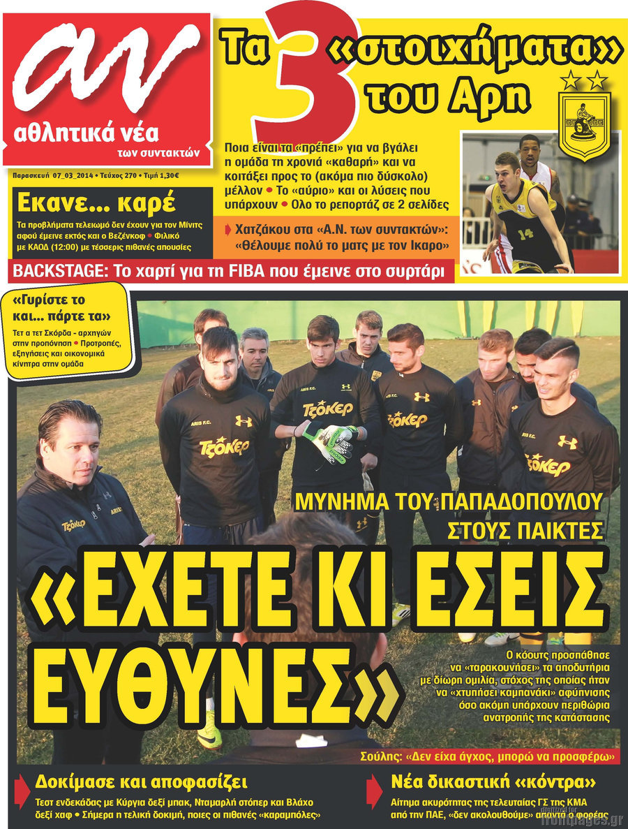 Οι αθλητικές εφημερίδες Enikos Newsroom 08:37, Παρασκευή 07 Μαρτίου 2014 Media Οι αθλητικές εφημερίδες Διαβάστε τα πρωτοσέλιδα των αθλητικών εφημερίδων: ΑΘΛΗΤΙΚΕΣ ΕΦΗΜΕΡΙΔΕΣ ΕΦΗΜΕΡΙΔΕΣ ΠΡΩΤΟΣΕΛΙΔΑ Μοιράσου το: σχολίασε κι εσύ (0 σχόλια) Ακολουθήστε το enikos.gr στο Google News και μάθετε πρώτοι όλες τις ειδήσεις Δείτε όλες τις τελευταίες ειδήσεις από την Ελλάδα και τον Κόσμο στο enikos.gr Ειδήσεις Ροή Ειδήσεων 2 ώρες πριν Πούτιν: «Ανοησίες» και «υστερίες» οι ισχυρισμοί της Ευρώπης για πιθανή σύγκρουση με τη Ρωσία – «Κάνουν πλύση εγκεφάλου» 6 ώρες πριν Έρευνα MRB: Η πρόθεση ψήφου και τα σημαντικότερα προβλήματα – Οι «λέξεις» που εκφράζουν τους πολίτες 3 ώρες πριν Αμοργός: «Θα προσπαθήσω να το κάνω κάθε μέρα» – Ποιος είναι ο αγρότης που έστησε μόνος του το πρώτο μπλόκο στο νησί 52 λεπτά πριν Τραγωδία στην Αλεξανδρούπολη: Παιδάκι 3 ετών μεταφέρθηκε νεκρό από τη μητέρα του στο νοσοκομείο 2 ώρες πριν Συνάντηση Μητσοτάκη με την Κ.Ο. της ΝΔ: Οι αφίξεις των βουλευτών, τα γλυκά και τα «πηγαδάκια» 6 ώρες πριν Τα 4 ζώδια που ξαναβρίσκουν τον εαυτό τους – «Μπαίνετε επιτέλους στην ουσία των πραγμάτων» 7 ώρες πριν 20 χρόνια τα Χριστούγεννα ξεκινούν στα Public με μεγάλη ποικιλία σε δώρα! 5 ώρες πριν «Δεν είχα κλάψει από τότε που διαγνώστηκα με καρκίνο, ώσπου ένα τηλεφώνημα με έκανε να λυγίσω» – Η συγκλονιστική εξομολόγηση ενός άνδρα 4 ώρες πριν Τα 7 σπάνια χαρακτηριστικά που κάνουν κάποιους ανθρώπους ακαταμάχητους 7 λεπτά πριν Νέο επεισόδιο στην Εξεταστική ανάμεσα σε Κωνσταντοπούλου και Συρεγγέλα – Διακόπηκε προσωρινά η συνεδρίαση 13 λεπτά πριν Εξαφάνιση 33χρονου γιατρού στην Κρήτη: Για απάτη κατηγορείται ο ιδιωτικός ερευνητής που συνελήφθη 19 λεπτά πριν Εξεταστική για ΟΠΕΚΕΠΕ-Μυλωνάκης: Διαχρονικές, διακομματικές οι παθογένειες – Τι είπε για Μπουκώρο και Βάρρα 25 λεπτά πριν Παναθηναϊκός: Θέλει τον Κέπα της Άρσεναλ δανεικό για 6 μήνες 31 λεπτά πριν Το Λαϊκό Λαχείο στον ρυθμό των Χριστουγέννων: Μοιράζει μέχρι και 1.000.000 ευρώ στην ειδική κλήρωση της Παρασκευής 19 Δεκεμβρίου ENIKOS NETWORK 5 πράγματα που αποφεύγει γαστρεντερολόγος για να μειώσει τον κίνδυνο καρκίνου του εντέρου Ανησυχητική αύξηση της υπέρτασης στα παιδιά – Πώς θα τα προστατέψουμε; Συντάξεις Ιανουαρίου 2026: Σε ποιους θα πιστωθούν την Πέμπτη τα χρήματα και τι αυξήσεις θα δοθούν – Δείτε αναλυτικά παραδεί... ΕΛΕΤΑΕΝ: Πόσα χρήματα θα δοθούν σε δήμους και νοικοκυριά από τις ΑΠΕ Σύγχρονος Νοστράδαμος: Προειδοποιεί για «μεγάλο γεγονός» τους επόμενους μήνες που θα συγκλονίσει τη Βρετανία και τον κόσμο Τεστ παρατηρητικότητας: Μπορείτε να βρείτε τις 3 διαφορές στις εικόνες με έναν πιγκουίνο σε 14 δευτερόλεπτα περισσότερα 12:35 , Τετάρτη 17 Δεκεμβρίου 2025 Μίρκα Παπακωνσταντίνου: «Δεν ήμουν αισιόδοξη για τα νούμερα – Είμαι ρεαλίστρια» Στα γυρίσματα του εορταστικού επεισοδίου της αγαπημένης σειράς “Το Σόι Σου”, βρέθηκε η κάμερα ... 12:12 , Τετάρτη 17 Δεκεμβρίου 2025 Ακούστε την εκπομπή του Νίκου Χατζηνικολάου 17/12/2025 Ακούστε την εκπομπή του Νίκου Χατζηνικολάου στον ραδιοφωνικό σταθμό RealFm 97,8, την Τετάρτη 1... 11:35 , Τετάρτη 17 Δεκεμβρίου 2025 Home Alone: Το σπίτι της ταινίας θα ανακαινιστεί – Επιστροφή στην αισθητική της δεκαετίας του ’90 Οι νέοι ιδιοκτήτες του πραγματικού σπιτιού που παρουσιάζεται στην κλασική ταινία του 1990 «Hom... 11:25 , Τετάρτη 17 Δεκεμβρίου 2025 Grand Hotel: Απόψε το τελευταίο επεισόδιο της χρονιάς – Όλα τα μυστικά μένουν εδώ Το τελευταίο επεισόδιο της χρο