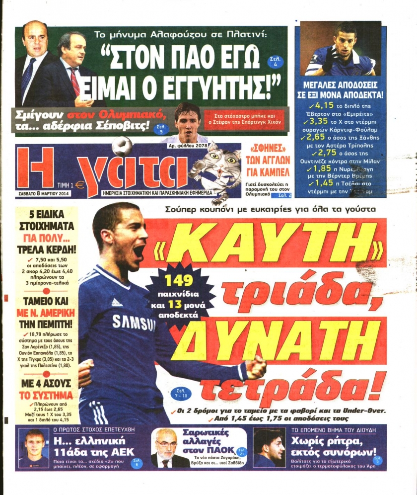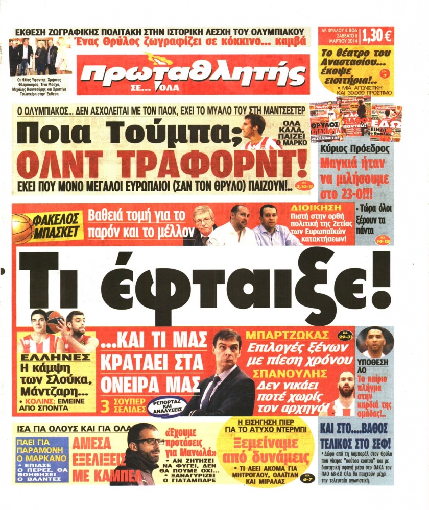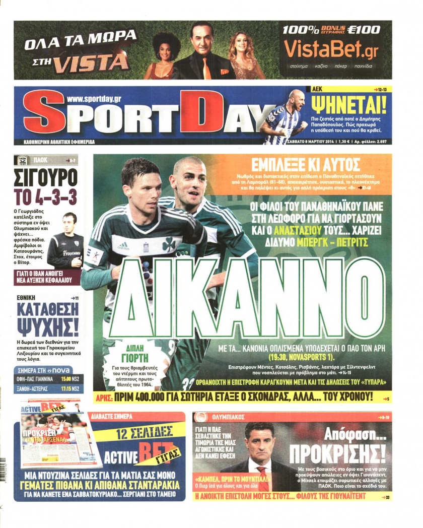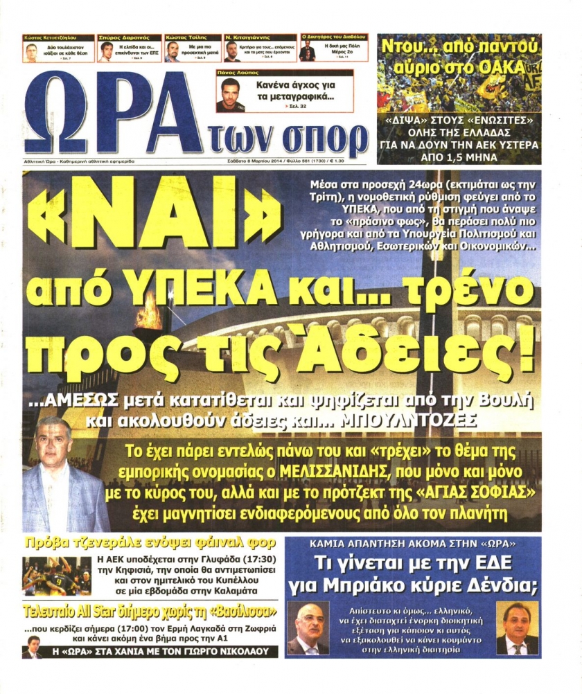 Οι αθλητικές εφημερίδες Enikos Newsroom 08:14, Σάββατο 08 Μαρτίου 2014 Media Οι αθλητικές εφημερίδες Διαβάστε τα πρωτοσέλιδα των αθλητικών εφημερίδων: ΑΘΛΗΤΙΚΕΣ ΕΦΗΜΕΡΙΔΕΣ ΕΦΗΜΕΡΙΔΕΣ ΠΡΩΤΟΣΕΛΙΔΑ Μοιράσου το: σχολίασε κι εσύ (0 σχόλια) Ακολουθήστε το enikos.gr στο Google News και μάθετε πρώτοι όλες τις ειδήσεις Δείτε όλες τις τελευταίες ειδήσεις από την Ελλάδα και τον Κόσμο στο enikos.gr Ειδήσεις Ροή Ειδήσεων 7 λεπτά πριν Υπόθεση Έπσταϊν: Το Υπουργείο Δικαιοσύνης δημοσιοποίησε μια σειρά από εξαιρετικά επεξεργασμένα αρχεία – «Λείπουν τα πιο σημαντικά έγγραφα», λένε οι Δημοκρατικοί 9 ώρες πριν Χριστούγεννα στα μπλόκα: Επιμένουν στις κινητοποιήσεις τους οι αγρότες – Ανοίγουν τα διόδια το Σαββατοκύριακο 2 ώρες πριν Σαρωτικοί οι έλεγχοι στους δρόμους ενόψει εορτών – Μπλόκα της τροχαίας σε κεντρικές αρτηρίες της Αττικής 9 ώρες πριν Πούτιν: Τα μηνύματα σε Ευρώπη και ΝΑΤΟ από το μαραθώνιο «σόου» του – Η απαίτηση για «σεβασμό» και η ειρήνη «με τους όρους» της Μόσχας 8 ώρες πριν Άνω Λιόσια: Πυροβολισμοί σε επιχείρηση με χαλιά – Εντοπίστηκαν 10 κάλυκες 2 ώρες πριν Αυγά: Πόσα μπορείτε να τρώτε την ημέρα με ασφάλεια για μέγιστη πρόσληψη πρωτεΐνης 2 ώρες πριν Τα ζώδια σήμερα, Σάββατο 20 Δεκεμβρίου: Παρθένοι, το σύμπαν σας δίνει το κλειδί 9 ώρες πριν Ανακαλύφθηκαν αρχαία χρυσά νομίσματα 2.200 ετών που απεικονίζουν τον θεό Απόλλωνα – Η άγνωστη σύνδεση με τον Φίλιππο Β΄ της Μακεδονίας 2 ώρες πριν Οπτική ψευδαίσθηση: Μόνο αν είσαι ο Σέρλοκ Χολμς θα βρεις τον αριθμό «87» σε 7 δευτερόλεπτα 7 λεπτά πριν Υπόθεση Έπσταϊν: Το Υπουργείο Δικαιοσύνης δημοσιοποίησε μια σειρά από εξαιρετικά επεξεργασμένα αρχεία – «Λείπουν τα πιο σημαντικά έγγραφα», λένε οι Δημοκρατικοί 10 λεπτά πριν Καιρός: Αλλαγή σκηνικού σήμερα με βροχές και πτώση της θερμοκρασίας – Οι προβλέψεις των μετεωρολόγων για τα Χριστούγεννα 17 λεπτά πριν ΟΝΕΧ – MEGATUGS: Ξεκίνησε η ναυπήγηση ρυμουλκών στην Ελλάδα – Προθάλαμος πολεμικών πλοίων – Δείτε φωτογραφίες και βίντεο 26 λεπτά πριν Φοινικούντα: Σήμερα απολογείται ο 30χρονος γιος γνωστού επιχειρηματία της Πλάκας 34 λεπτά πριν Οι αθλητικές μεταδόσεις 20/12/2025 ENIKOS NETWORK Πρέπει να αποδέχεστε ή να απορρίπτετε όλα τα cookies; Ένας ειδικός εξηγεί Η αγαπημένη λιχουδιά των πόνι που μπορεί να ενισχύσει όραση, εγκέφαλο και ανοσοποιητικό Αναστολή μέτρων αναγκαστικής εκτέλεσης για κτηνοτρόφους που πλήττονται από την ευλογιά των αιγοπροβάτων Πλήρης επάρκεια προϊόντων στις λαϊκές της Αττικής, παρά τις αγροτικές κινητοποιήσεις – Τι απαντούν οι πωλητές Χαρτογραφώντας το «σημείο χωρίς επιστροφή»: Για πρώτη φορά αποκαλύπτεται με λεπτομέρεια το ακανθώδες όριο της ατμόσφαιρας τ... Η Google καταργεί τη λειτουργία «dark web report» – Πώς θα μπορούν οι χρήστες να διαγράφουν τα δεδομένα τους περισσότερα 05:48 , Σάββατο 20 Δεκεμβρίου 2025 Οι οικονομικές εφημερίδες 20/12/2025 Διαβάστε τα πρωτοσέλιδα από τις οικονομικές εφημερίδες, σήμερα 20/12/2025. 05:43 , Σάββατο 20 Δεκεμβρίου 2025 Οι αθλητικές εφημερίδες 20/12/2025 Διαβάστε τα πρωτοσέλιδα από τις αθλητικές εφημερίδες, σήμερα 20/12/2025. 05:38 , Σάββατο 20 Δεκεμβρίου 2025 Οι πολιτικές εφημερίδες 20/12/2025 Διαβάστε τα πρωτοσέλιδα από τις πολιτικές εφημερίδες, σήμερα 20/12/2025. 04:20 , Σάββατο 20 Δεκεμβρίου 2025 Αγγελική Νικολούλη: Τα συλλυπητήρια για την απώλεια της Ειρήνης Μαρινάκη Τα συλληπητήρια στον πρόεδρο του Mega, τον Βαγγέλη Μαρινάκη, για την απώλεια της μητέρας του Ε... ΤΕΛΕΥΤΑΙΕΣ ΕΙΔΗΣΕΙΣ 7 λεπτά πριν Υπόθε