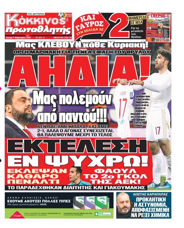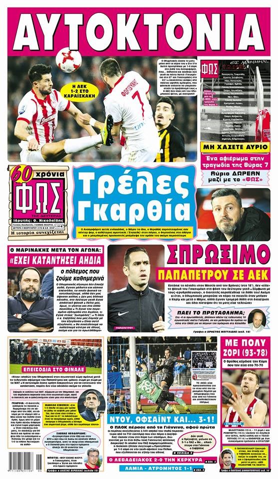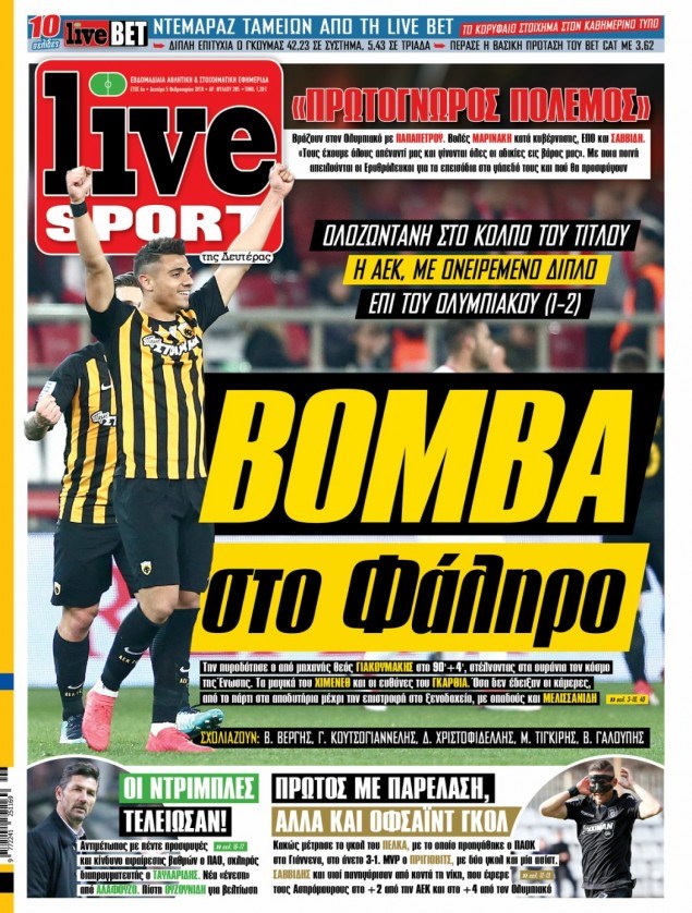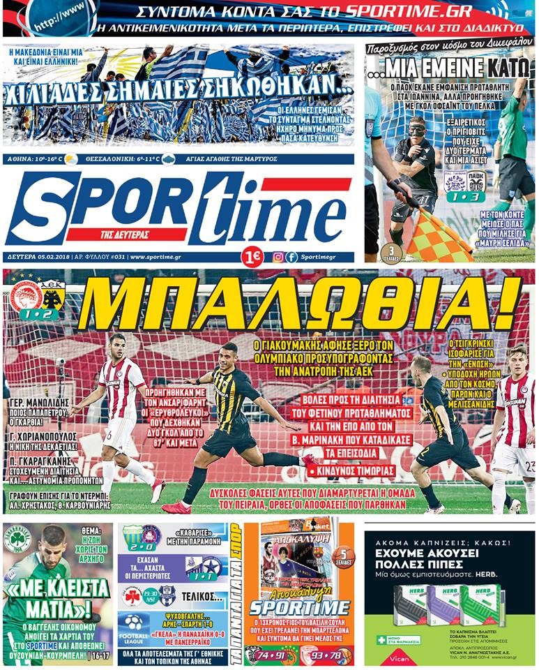 Οι αθλητικές εφημερίδες 5/2/2018 Κώστας Τεό 06:33, Δευτέρα 05 Φεβρουαρίου 2018 Media Διαβάστε τα σημερινά πρωτοσέλιδα των αθλητικών εφημερίδων: ΑΘΛΗΤΙΚΕΣ ΕΦΗΜΕΡΙΔΕΣ ΠΡΩΤΟΣΕΛΙΔΑ Μοιράσου το: σχολίασε κι εσύ (0 σχόλια) Ακολουθήστε το enikos.gr στο Google News και μάθετε πρώτοι όλες τις ειδήσεις Δείτε όλες τις τελευταίες ειδήσεις από την Ελλάδα και τον Κόσμο στο enikos.gr Ειδήσεις Ροή Ειδήσεων 3 ώρες πριν Χριστούγεννα στα μπλόκα: Επιμένουν στις κινητοποιήσεις τους οι αγρότες – Ανοίγουν τα διόδια το Σαββατοκύριακο 3 ώρες πριν Ουκρανία: Η άνευ προηγουμένου επίθεση σε ρωσικό τάνκερ στη Μεσόγειο και το μήνυμα προς στον Πούτιν – Το «μακρύ χέρι» του Κιέβου 2 ώρες πριν Πούτιν: Τα μηνύματα σε Ευρώπη και ΝΑΤΟ από το μαραθώνιο «σόου» του – Η απαίτηση για «σεβασμό» και η ειρήνη «με τους όρους» της Μόσχας 3 ώρες πριν Τραμπ: Δεν αποκλείει την πιθανότητα ενός πολέμου στη Βενεζουέλα – «Ο Μαδούρο ξέρει καλύτερα από τον καθένα τι ακριβώς θέλω» 4 ώρες πριν Συνεχίζει να προκαλεί ο Μίτσκοσκι: «Για μένα το όνομα Μακεδονία είναι ιερό» 2 ώρες πριν Ανακαλύφθηκαν αρχαία χρυσά νομίσματα 2.200 ετών που απεικονίζουν τον θεό Απόλλωνα – Η άγνωστη σύνδεση με τον Φίλιππο Β΄ της Μακεδονίας 3 ώρες πριν Ύπνος: Μια κρυφή κατάσταση του εγκεφάλου πριν από τον ύπνο μπορεί να είναι το “κλειδί” για υψηλή ευφυΐα και δημιουργικότητα 4 ώρες πριν Αριθμολογία: Οι άνθρωποι που έχουν γεννηθεί αυτές τις 4 ημερομηνίες, συχνά παρεξηγούνται – «Η καλοσύνη τους κρύβει τεράστια δύναμη» 5 ώρες πριν Ξεχάστε το καθάρισμα το Σαββατοκύριακο: Ο «κανόνας των 20 λεπτών» που θα σας λύσει τα χέρια 19 λεπτά πριν Συρία: Μαζικά πλήγματα των ΗΠΑ σε θέσεις του Ισλαμικού Κράτους – Χέγκσεθ: «Δεν είναι αρχή πολέμου, είναι μια δήλωση εκδίκησης» για το θάνατο των στρατιωτών μας 32 λεπτά πριν Ουκρανία: Ολοκληρώθηκαν οι συνομιλίες με τους Αμερικανούς κι Ευρωπαίους διαπραγματευτές 47 λεπτά πριν Μπαρτσελόνα – Μπασκόνια 134-124: Οι «μπλαουγκράνα» πήραν το ματς της χρονιάς ύστερα από τρεις παρατάσεις 1 ώρα πριν Φαίη Σκορδά: «Παλιότερα τα κομπλιμέντα τα προσπερνούσα, τώρα τα έχω ανάγκη» 1 ώρα πριν Βασίλης Σπανούλης: Δεν εμφανίστηκε ούτε ένας δημοσιογράφος στην συνέντευξη Τύπου – «Καλησπέρα στον… κανέναν», δείτε βίντεο ENIKOS NETWORK Το ΕΚΑΒ τιμήθηκε από την Ακαδημία Αθηνών για τα 40 χρόνια προσφοράς του Έχετε πραγματικά μεγάλη καρδιά; 10 χαρακτηριστικά όσων έχουν καλοσύνη Αναστολή μέτρων αναγκαστικής εκτέλεσης για κτηνοτρόφους που πλήττονται από την ευλογιά των αιγοπροβάτων Πλήρης επάρκεια προϊόντων στις λαϊκές της Αττικής, παρά τις αγροτικές κινητοποιήσεις – Τι απαντούν οι πωλητές Χαρτογραφώντας το «σημείο χωρίς επιστροφή»: Για πρώτη φορά αποκαλύπτεται με λεπτομέρεια το ακανθώδες όριο της ατμόσφαιρας τ... Η Google καταργεί τη λειτουργία «dark web report» – Πώς θα μπορούν οι χρήστες να διαγράφουν τα δεδομένα τους περισσότερα 22:42 , Παρασκευή 19 Δεκεμβρίου 2025 Γιώργος Γιαννόπουλος για “Το σόι σου”: “Είναι ευτυχία και ευλογία αυτή η σειρά” «Είναι ευτυχία και ευλογία η συγκυρία αυτής της σειράς», θα πει ο Γιώργος Γιαννόπουλος -ο αγαπ... 20:37 , Παρασκευή 19 Δεκεμβρίου 2025 Don’t Forget The Lyrics: Η Έλλη Κοκκίνου υποδέχεται 4 παίκτες που θα κάνουν τα πάντα για να μη χάσουν ούτε… μισή λέξη από τους στίχους Το «Don’t Forget The Lyrics» επιστρέφει απόψε, Παρασκευή 19 Δεκεμβρίου, στις 21:00 με νέο επει... 19:31 , Παρασκευή 19 Δεκεμβρίου 2025 GNTM: Απόψε ο μεγάλος τελικός για τους 4 φιναλίστ Έπειτα από μήνες γ