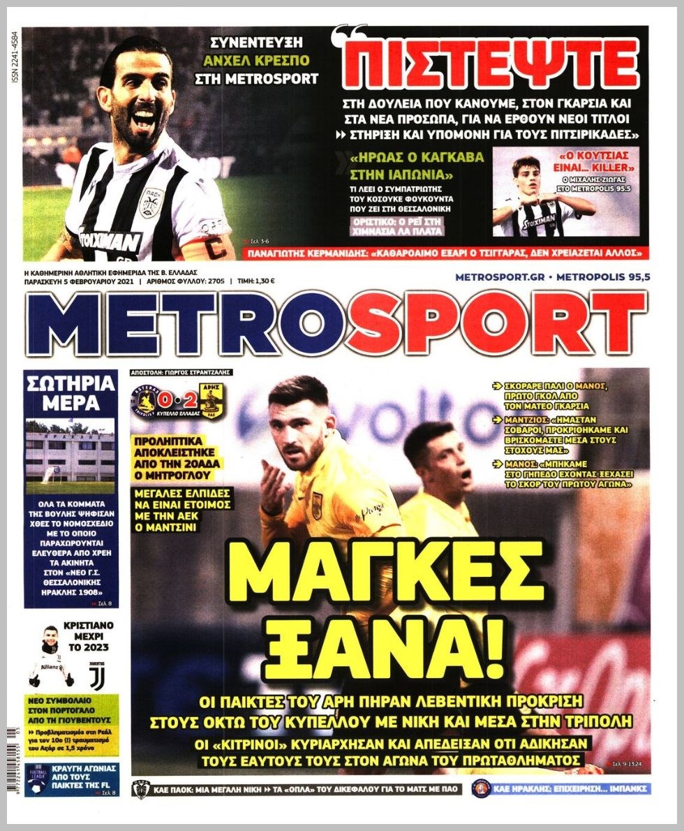 Οι αθλητικές εφημερίδες 5/2/2021 Διονύσης Νίκκας 06:49, Παρασκευή 05 Φεβρουαρίου 2021 Media Διαβάστε τα πρωτοσέλιδα των αθλητικών εφημερίδων… ΑΘΛΗΤΙΚΕΣ ΕΦΗΜΕΡΙΔΕΣ Μοιράσου το: σχολίασε κι εσύ (0 σχόλια) Ακολουθήστε το enikos.gr στο Google News και μάθετε πρώτοι όλες τις ειδήσεις Δείτε όλες τις τελευταίες ειδήσεις από την Ελλάδα και τον Κόσμο στο enikos.gr Ειδήσεις Ροή Ειδήσεων 4 ώρες πριν Μεσόγειος: Η διαδρομή του ρωσικού τάνκερ «Qendil» και η στοχευμένη επίθεση της Ουκρανίας με drone – Ο Πούτιν προειδοποίησε για αντίποινα 49 λεπτά πριν Αγρότες: Έκλεισαν για μία ώρα την παρακαμπτήρια της Ιόνιας Οδού στη θέση Χαλίκι 2 ώρες πριν Εμπλοκή και αερομαχίες με οπλισμένα τουρκικά F-16 στο Αιγαίο 2 ώρες πριν Πούτιν: «Ναι, είμαι ερωτευμένος» – Βίντεο από τη σπάνια προσωπική παραδοχή του 52 λεπτά πριν Ανδρέας Λυκουρέντζος: Υπέβαλε την παραίτησή του ο πρόεδρος του ΕΛΓΑ, αλλά δεν έγινε δεκτή – Όλο το παρασκήνιο 1 ώρα πριν Αριθμολογία: Οι άνθρωποι που έχουν γεννηθεί αυτές τις 4 ημερομηνίες, συχνά παρεξηγούνται – «Η καλοσύνη τους κρύβει τεράστια δύναμη» 3 ώρες πριν Μήπως έχετε χάσει τον εαυτό σας στη σχέση σας; 7 «αθόρυβες» υποχωρήσεις που μάλλον κάνατε, χωρίς να το συνειδητοποιήσετε 2 ώρες πριν Ξεχάστε το καθάρισμα το Σαββατοκύριακο: Ο «κανόνας των 20 λεπτών» που θα σας λύσει τα χέρια 5 ώρες πριν Κουίζ για την παλιά Αθήνα: Αναγνωρίζετε την περιοχή; Έχετε περάσει 100% από εκεί 3 λεπτά πριν Ύπνος: Μια κρυφή κατάσταση του εγκεφάλου πριν από τον ύπνο μπορεί να είναι το “κλειδί” για υψηλή ευφυΐα και δημιουργικότητα 8 λεπτά πριν ΕΕ: «Κάποια στιγμή θα χρησιμοποιήσουμε τα ρωσικά περιουσιακά στοιχεία» δήλωσε ο πρόεδρος του ΕΛΚ 12 λεπτά πριν Conference League: Καλύτερη επίθεση η ΑΕΚ στη διοργάνωση και 2η σε προσπάθειες στην εστία – Ξεχωρίζουν Πινέδα, Ελίασον και Ρότα 14 λεπτά πριν Έγκυος η Άννα Κορακάκη: «Η οικογένειά μας μεγαλώνει…» – Η αποκάλυψη για το φύλο του μωρού 21 λεπτά πριν Τραγωδία στο Βελεστίνο: Πέθανε ο αντιδήμαρχος Γιάννης Παπαϊωάννου ENIKOS NETWORK Το ΕΚΑΒ τιμήθηκε από την Ακαδημία Αθηνών για τα 40 χρόνια προσφοράς του Έχετε πραγματικά μεγάλη καρδιά; 10 χαρακτηριστικά όσων έχουν καλοσύνη Όμιλος ΔΕΗ: Νέα ορόσημα και ενισχυμένη διαφάνεια στην ετήσια Έκθεση Βιώσιμης Ανάπτυξης Έρχονται νέες προσλήψεις σε Δήμο – Όλες οι λεπτομέρειες Χαρτογραφώντας το «σημείο χωρίς επιστροφή»: Για πρώτη φορά αποκαλύπτεται με λεπτομέρεια το ακανθώδες όριο της ατμόσφαιρας τ... Η Google καταργεί τη λειτουργία «dark web report» – Πώς θα μπορούν οι χρήστες να διαγράφουν τα δεδομένα τους περισσότερα 20:37 , Παρασκευή 19 Δεκεμβρίου 2025 Don’t Forget The Lyrics: Η Έλλη Κοκκίνου υποδέχεται 4 παίκτες που θα κάνουν τα πάντα για να μη χάσουν ούτε… μισή λέξη από τους στίχους Το «Don’t Forget The Lyrics» επιστρέφει απόψε, Παρασκευή 19 Δεκεμβρίου, στις 21:00 με νέο επει... 19:31 , Παρασκευή 19 Δεκεμβρίου 2025 GNTM: Απόψε ο μεγάλος τελικός για τους 4 φιναλίστ Έπειτα από μήνες γεμάτους μόδα, δημιουργία και έντονες αναμετρήσεις, το GNTM 2025 κορυφώνεται,... 18:11 , Παρασκευή 19 Δεκεμβρίου 2025 Το σόι σου: Ο Άρης έρχεται στην Ελλάδα για τις γιορτές των Χριστουγέννων – Τι θα δούμε στο αποψινό εορταστικό επεισόδιο Ένα απολαυστικό, εορταστικό επεισόδιο της σειράς “Το σόι σου”, γεμάτο ευτράπελα αλ... 15:15 , Παρασκευή 19 Δεκεμβρίου 2025 Την Κυριακή με τη Realnews: Ό,τι και αν αγοράσεις, σκανάρεις και κερδίζεις! Την Κυριακή με τη Realnews: Ό,τι και αν αγοράσεις, σκανάρεις και κερδίζεις! Με το PADU app, το... ΤΕΛΕΥΤΑΙΕΣ ΕΙΔΗΣΕΙΣ