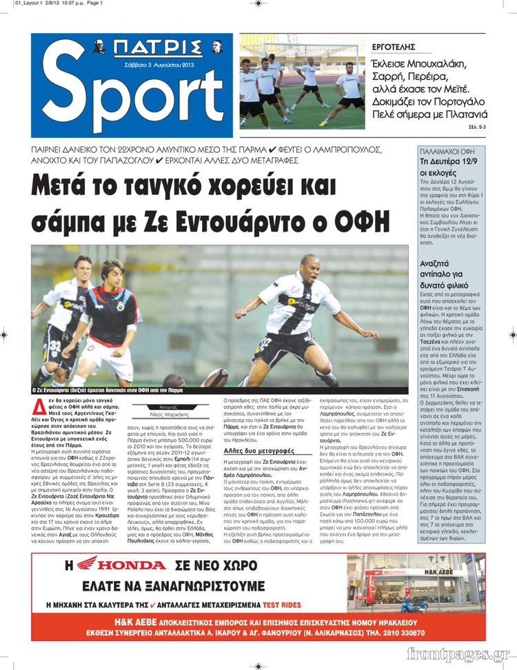 Oι αθλητικές εφημερίδες Enikos Newsroom 09:06, Σάββατο 03 Αυγούστου 2013 Media Oι αθλητικές εφημερίδες ΑΘΛΗΤΙΚΕΣ ΕΦΗΜΕΡΙΔΕΣ ΕΦΗΜΕΡΙΔΕΣ Μοιράσου το: σχολίασε κι εσύ (0 σχόλια) Ακολουθήστε το enikos.gr στο Google News και μάθετε πρώτοι όλες τις ειδήσεις Δείτε όλες τις τελευταίες ειδήσεις από την Ελλάδα και τον Κόσμο στο enikos.gr Ειδήσεις Ροή Ειδήσεων 54 λεπτά πριν Αυξάνουν την πίεση προς την κυβέρνηση οι αγρότες: Κλείνουν παρακαμπτήριους και ανοίγουν διόδια – Τι θα γίνει τις γιορτές 44 λεπτά πριν Φοινικούντα: Το Σάββατο απολογείται ο 30χρονος γιος γνωστού επιχειρηματία της Πλάκας που παραδόθηκε – Όσα είπε στους αστυνομικούς και ο ρόλος του στο έγκλημα 27 λεπτά πριν Μπορεί ο Μαδούρο να αντέξει τον αποκλεισμό του Τραμπ; Τι θα χρειαστεί η Ουάσινγκτον για να τον ανατρέψει 2 ώρες πριν Δημοσκόπηση Metron Analysis: Στις 10 μονάδες η διαφορά ΝΔ-ΠΑΣΟΚ, στην 3η θέση η Πλεύση Ελευθερίας – 8 στους 10 στηρίζουν τον αγώνα των αγροτών 2 ώρες πριν Πρίγκιπας Ουίλιαμ – Κέιτ: Η νέα οικογενειακή φωτογραφία για τις Χριστουγεννιάτικες κάρτες του 2025 2 ώρες πριν Ύπνος: Η απλή βραδινή ρουτίνα για να προστατεύσετε τα μαλλιά σας από το κρύο κατά τη διάρκεια του χειμώνα 3 ώρες πριν Manifesting: Πώς να συναντήσετε τον σύντροφο της ζωής σας, ανάλογα με τον μήνα γέννησής σας 2 ημέρες πριν 20 χρόνια τα Χριστούγεννα ξεκινούν στα Public με μεγάλη ποικιλία σε δώρα! 30 λεπτά πριν Αρχαιολόγοι ανακάλυψαν ρωμαϊκά τεχνουργήματα από μια πόλη που δεν υπήρξε ποτέ – Τα τρία εντυπωσιακά κτίρια και ο αμφορέας με τις… σαρδέλες 11 λεπτά πριν Παναθηναϊκός – Χάποελ Τελ Αβίβ 93-82: Με… φόρα από την Κωνσταντινούπολη 27 λεπτά πριν Μπορεί ο Μαδούρο να αντέξει τον αποκλεισμό του Τραμπ; Τι θα χρειαστεί η Ουάσινγκτον για να τον ανατρέψει 30 λεπτά πριν Αρχαιολόγοι ανακάλυψαν ρωμαϊκά τεχνουργήματα από μια πόλη που δεν υπήρξε ποτέ – Τα τρία εντυπωσιακά κτίρια και ο αμφορέας με τις… σαρδέλες 32 λεπτά πριν Στο ΟΑΚΑ για το «Παναθηναϊκός – Χάποελ» η Κίμπερλι Γκίλφοϊλ – ΦΩΤΟ 39 λεπτά πριν Ούρσουλα φον ντερ Λάιεν: Μετατίθεται για τον Ιανουάριο η υπογραφή της εμπορικής συμφωνίας «ΕΕ-MERCOSUR» ENIKOS NETWORK Σε περίοδο αυξημένης δραστηριότητας η γρίπη στην Ελλάδα-Μέτρα προστασίας από τον ΕΟΔΥ Σκέφτεστε συνέχεια συζητήσεις που έχετε κάνει; Τι σημαίνει αυτό, σύμφωνα με ειδικό Στεγαστικό: Τι λέει η ΠΟΜΙΔΑ για τα νέα μέτρα που ανακοίνωσε ο Κυριάκος Μητσοτάκης Λαγκάρντ: Αισιόδοξη για την ανάπτυξη της Ευρωζώνης, αβέβαιη για τον πληθωρισμό Χαρτογραφώντας το «σημείο χωρίς επιστροφή»: Για πρώτη φορά αποκαλύπτεται με λεπτομέρεια το ακανθώδες όριο της ατμόσφαιρας τ... Η Google καταργεί τη λειτουργία «dark web report» – Πώς θα μπορούν οι χρήστες να διαγράφουν τα δεδομένα τους περισσότερα 17:45 , Πέμπτη 18 Δεκεμβρίου 2025 ROUK ZOUK: Εορταστικό επεισόδιο με καλεσμένους τους πρωταγωνιστές του «Γιατί ρε πατέρα» Το Σάββατο 20 Δεκεμβρίου στις 21:00, η Ζέτα Μακρυπούλια υποδέχεται εκλεκτούς ηθοποιούς που όλο... 17:20 , Πέμπτη 18 Δεκεμβρίου 2025 Άγιος έρωτας: Η Χριστίνα εξομολογείται στον πατέρα Νικόλαο, απόψε στις 21:00 στον Alpha Η Νότα αποφασίζει να εκδικηθεί τον Πέτρο και τον Στέφανο, για χάρη του Λούη, όμως τα πράγματα ... 16:50 , Πέμπτη 18 Δεκεμβρίου 2025 Να μ’ αγαπάς: Ζωή και Φωτεινή συμφιλιώνονται ως μάνα με κόρη, απόψε στις 20:00 Η ταυτότητα του Άγγελου αποκαλύπτεται στο νέο επεισόδιο της σειράς “Να μ’ αγαπάς... 15:52 , Πέμπτη 18 Δεκεμβρίου 2025 Το Σπίτι Δίπλα Στο Ποτάμι: Το καθηλωτικό τελευταίο επεισόδιο για το 2025 απόψε στις 22:30 Κ