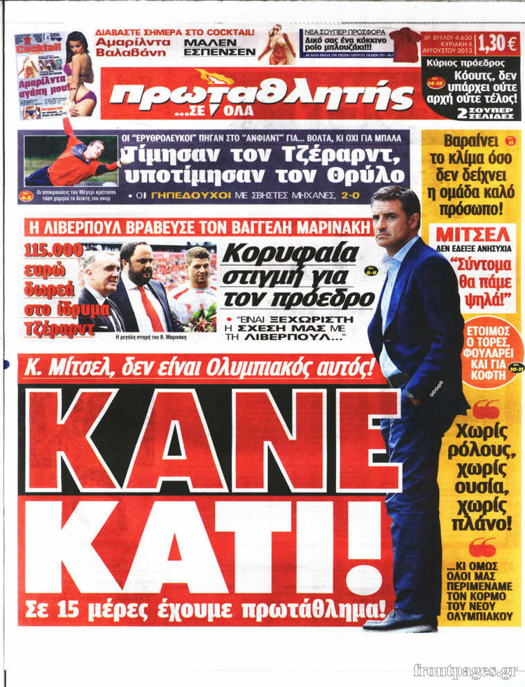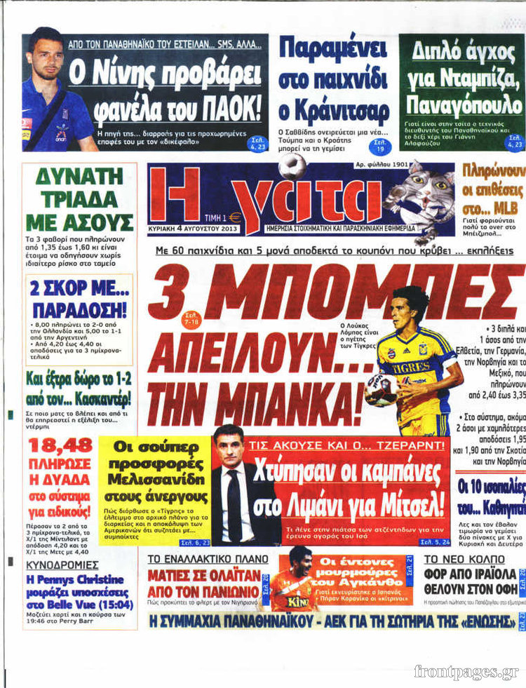Oι αθλητικές εφημερίδες Enikos Newsroom 10:06, Κυριακή 04 Αυγούστου 2013 Media Oι αθλητικές εφημερίδες ΑΘΛΗΤΙΚΕΣ ΕΦΗΜΕΡΙΔΕΣ ΕΦΗΜΕΡΙΔΕΣ Μοιράσου το: σχολίασε κι εσύ (0 σχόλια) Ακολουθήστε το enikos.gr στο Google News και μάθετε πρώτοι όλες τις ειδήσεις Δείτε όλες τις τελευταίες ειδήσεις από την Ελλάδα και τον Κόσμο στο enikos.gr Ειδήσεις Ροή Ειδήσεων 3 ώρες πριν Ακίλα Σάλεχ: «Άκυρο» το τουρκολιβυκό μνημόνιο λέει ο πρόεδρος της λιβυκής Βουλής – Ανοίγει ο διάλογος με Ελλάδα, Αίγυπτο και Τουρκία 7 ώρες πριν Αγρότες: Την Τρίτη η απόφαση για διάλογο ή κλιμάκωση των κινητοποιήσεών τους – Πώς χαρακτηρίζουν τις ανακοινώσεις Τσιάρα και οι επόμενες κινήσεις 7 ώρες πριν Τραμπ για Ουκρανία: «Είμαστε πιο κοντά σε συμφωνία από ποτέ» – «Πολυεθνική δύναμη» προτείνουν οι Ευρωπαίοι 7 ώρες πριν Κυψέλη: Η 16χρονη που μαχαίρωσε την 14χρονη είχε συλληφθεί 3 φορές στο παρελθόν – Έβριζε καθηγητές, έβαζε φωτιές σε κάδους και εκβίαζε συμμαθητές της 6 ώρες πριν Τρομοκρατική επίθεση στο Σίδνεϊ: Θλίψη για τα 15 θύματα – Οργή στην εβραϊκή κοινότητα που προειδοποιούσε επί δύο χρόνια 7 ώρες πριν Επιστήμονες ίσως έλυσαν το μυστήριο γύρω από τα Χόμπιτ – Νέα έρευνα αποκαλύπτει πώς εξαφανίστηκαν 8 ώρες πριν Ύπνος: Η αρχαία μορφή άσκησης που αποδεικνύεται αποτελεσματική στην αντιμετώπιση της αϋπνίας, σύμφωνα με μελέτη 9 ώρες πριν Αριθμολογία: Ο τυχερός σας αριθμός, ανάλογα με τον μήνα γέννησής σας 10 ώρες πριν Πώς να μην μαραίνονται γρήγορα τα κομμένα λουλούδια: Το λάθος στην τοποθέτηση του βάζου που πρέπει να αποφεύγετε 3 λεπτά πριν Οι αθλητικές εφημερίδες 16/12/2025 8 λεπτά πριν Οι πολιτικές εφημερίδες 16/12/2025 16 λεπτά πριν Τα ζώδια σήμερα, Τρίτη 16 Δεκεμβρίου: Ιχθύες, δεν χρειάζεται να έχετε όλες τις απαντήσεις 24 λεπτά πριν Εφημερεύοντα φαρμακεία σε Αθήνα και Θεσσαλονίκη (16/12) 31 λεπτά πριν Οκτώ νεκροί σε πλήγματα των ΗΠΑ κατά τριών σκαφών που φέρεται να μετέφεραν ναρκωτικά στον Ανατολικό Ειρηνικό ENIKOS NETWORK Πότε το χρόνιο ροχαλητό να αποτελέσει ένδειξη κινδύνου για την καρδιά; Τι λένε οι ειδικοί Μάριος Θεμιστοκλέους: Το ΕΣΥ ενισχύεται, εκσυγχρονίζεται, αλλάζει ΕΒΕΠ για αγροτικές κινητοποιήσεις: Κάθε επιπλέον εβδομάδα προσθέτει περίπου 200 εκατ. ευρώ ζημιά Τι προβλέπει το νομοσχέδιο του υπουργείου Εθνικής Άμυνας – Oι αλλαγές στους μισθούς Σύγχρονος Νοστράδαμος: Προειδοποιεί για «μεγάλο γεγονός» τους επόμενους μήνες που θα συγκλονίσει τη Βρετανία και τον κόσμο Τεστ παρατηρητικότητας: Μπορείτε να βρείτε τις 3 διαφορές στις εικόνες με έναν πιγκουίνο σε 14 δευτερόλεπτα περισσότερα 05:43 , Τρίτη 16 Δεκεμβρίου 2025 Οι αθλητικές εφημερίδες 16/12/2025 Διαβάστε τα πρωτοσέλιδα από τις αθλητικές εφημερίδες, σήμερα 16/12/2025. 05:38 , Τρίτη 16 Δεκεμβρίου 2025 Οι πολιτικές εφημερίδες 16/12/2025 Διαβάστε τα πρωτοσέλιδα από τις πολιτικές εφημερίδες, σήμερα 16/12/2025. 21:35 , Δευτέρα 15 Δεκεμβρίου 2025 Το Σπίτι Δίπλα Στο Ποτάμι: Η Ιουλία και ο Φωκάς μετακομίζουν στη Ρόδο – Δύο νέοι χαρακτήρες μπαίνουν στη σειρά Δύο νέοι, κομβικοί χαρακτήρες κάνουν την εμφάνισή τους αυτή την εβδομάδα στην αγαπημένη σειρά ... 19:46 , Δευτέρα 15 Δεκεμβρίου 2025 Άγιος έρωτας: Η Χριστίνα λέει την αλήθεια στον Αντρέα Ο Βασίλης δέχεται επίθεση από τους συμμαθητές του, η Αναστασία είναι συντετριμμένη με την απώλ... ΤΕΛΕΥΤΑΙΕΣ ΕΙΔΗΣΕΙΣ 3 λεπτά πριν Οι αθλητικές εφημερίδες 16/12/2025 8 λεπτά πριν Οι πολιτικές εφημερίδες 16/12/2025 16 λεπτά πριν Τα ζώδια σήμερα, Τρίτη 16 Δεκεμβρίου: Ιχθύες, δεν... 24 λεπτά πριν 