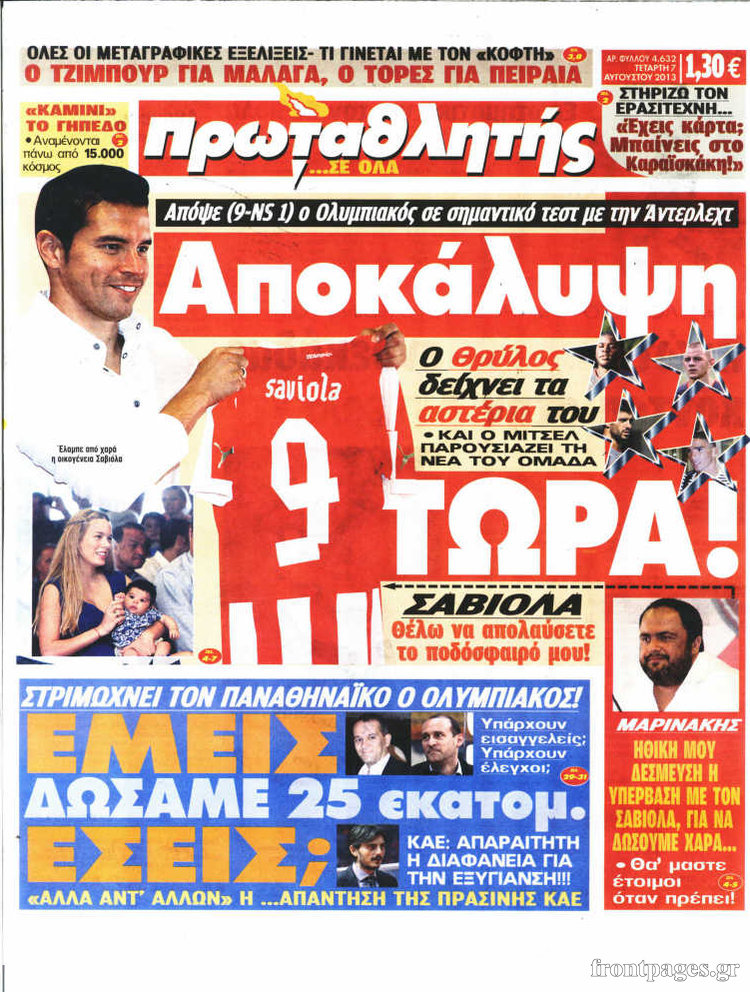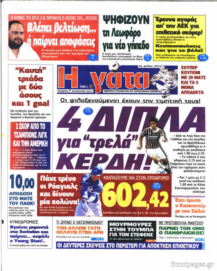 Οι αθλητικές εφημερίδες Enikos Newsroom 08:11, Τετάρτη 07 Αυγούστου 2013 Media Οι αθλητικές εφημερίδες ΑΘΛΗΤΙΚΕΣ ΕΦΗΜΕΡΙΔΕΣ ΕΦΗΜΕΡΙΔΕΣ Μοιράσου το: σχολίασε κι εσύ (0 σχόλια) Ακολουθήστε το enikos.gr στο Google News και μάθετε πρώτοι όλες τις ειδήσεις Δείτε όλες τις τελευταίες ειδήσεις από την Ελλάδα και τον Κόσμο στο enikos.gr Ειδήσεις Ροή Ειδήσεων 1 ώρα πριν Ευρωπαϊκή Ένωση: Συμφωνία για δάνειο 90 δισ. ευρώ στην Ουκρανία τη διετία 2026-2027 6 ώρες πριν ΟΠΕΚΕΠΕ: Προφυλακιστέος ο φερόμενος αρχηγός και ο λογιστής της εγκληματικής οργάνωσης 7 ώρες πριν Αυξάνουν την πίεση προς την κυβέρνηση οι αγρότες: Κλείνουν παρακαμπτήριους και ανοίγουν διόδια – Τι θα γίνει τις γιορτές 7 ώρες πριν Φοινικούντα: Το Σάββατο απολογείται ο 30χρονος γιος γνωστού επιχειρηματία της Πλάκας που παραδόθηκε – Όσα είπε στους αστυνομικούς και ο ρόλος του στο έγκλημα 5 ώρες πριν ΑΕΚ – Κραϊόβα 3-2: Επική ανατροπή και πρόκριση στους «16» του Conference League η Ένωση 6 ώρες πριν Αρχαιολόγοι ανακάλυψαν ρωμαϊκά τεχνουργήματα από μια πόλη που δεν υπήρξε ποτέ – Τα τρία εντυπωσιακά κτίρια και ο αμφορέας με τις… σαρδέλες 7 ώρες πριν Ύπνος: Η απλή βραδινή ρουτίνα για να προστατεύσετε τα μαλλιά σας από το κρύο κατά τη διάρκεια του χειμώνα 8 ώρες πριν Manifesting: Πώς να συναντήσετε τον σύντροφο της ζωής σας, ανάλογα με τον μήνα γέννησής σας 2 ημέρες πριν 20 χρόνια τα Χριστούγεννα ξεκινούν στα Public με μεγάλη ποικιλία σε δώρα! 7 λεπτά πριν Εφημερεύοντα φαρμακεία σε Αθήνα και Θεσσαλονίκη (19/12) 14 λεπτά πριν Η TikTok στις ΗΠΑ πωλείται σε Oracle, Silver Lake και MGX – Οι λεπτομέρειες του «deal» 22 λεπτά πριν Αλεξάντερ Λουκασένκο: Η Λευκορωσία βρίσκεται κοντά στην αποκατάσταση των σχέσεών της με τις ΗΠΑ 38 λεπτά πριν Αυστραλία: Κήρυξε την Κυριακή (21/12) ημέρα εθνικού πένθους για τη φονική επίθεση στην παραλία Μπόνταϊ 42 λεπτά πριν Κυριάκος Μητσοτάκης μετά την Σύνοδο Κορυφής στις Βρυξέλλες: «Η Ευρώπη στέκεται έμπρακτα στο πλευρό της Ουκρανίας» ENIKOS NETWORK Σε περίοδο αυξημένης δραστηριότητας η γρίπη στην Ελλάδα-Μέτρα προστασίας από τον ΕΟΔΥ Σκέφτεστε συνέχεια συζητήσεις που έχετε κάνει; Τι σημαίνει αυτό, σύμφωνα με ειδικό Στεγαστικό: Τι λέει η ΠΟΜΙΔΑ για τα νέα μέτρα που ανακοίνωσε ο Κυριάκος Μητσοτάκης Λαγκάρντ: Αισιόδοξη για την ανάπτυξη της Ευρωζώνης, αβέβαιη για τον πληθωρισμό Χαρτογραφώντας το «σημείο χωρίς επιστροφή»: Για πρώτη φορά αποκαλύπτεται με λεπτομέρεια το ακανθώδες όριο της ατμόσφαιρας τ... Η Google καταργεί τη λειτουργία «dark web report» – Πώς θα μπορούν οι χρήστες να διαγράφουν τα δεδομένα τους περισσότερα 02:50 , Παρασκευή 19 Δεκεμβρίου 2025 GNTM: «Κλείδωσαν» οι τέσσερις φιναλίστ – Μεγάλη ανατροπή στις τελευταίες αποχωρήσεις Για προτελευταία φορά εμφανίστηκαν στο πλατό του GNTM οι φιναλίστ του φετινού κύκλου, το βράδυ... 17:45 , Πέμπτη 18 Δεκεμβρίου 2025 ROUK ZOUK: Εορταστικό επεισόδιο με καλεσμένους τους πρωταγωνιστές του «Γιατί ρε πατέρα» Το Σάββατο 20 Δεκεμβρίου στις 21:00, η Ζέτα Μακρυπούλια υποδέχεται εκλεκτούς ηθοποιούς που όλο... 17:20 , Πέμπτη 18 Δεκεμβρίου 2025 Άγιος έρωτας: Η Χριστίνα εξομολογείται στον πατέρα Νικόλαο, απόψε στις 21:00 στον Alpha Η Νότα αποφασίζει να εκδικηθεί τον Πέτρο και τον Στέφανο, για χάρη του Λούη, όμως τα πράγματα ... 16:50 , Πέμπτη 18 Δεκεμβρίου 2025 Να μ’ αγαπάς: Ζωή και Φωτεινή συμφιλιώνονται ως μάνα με κόρη, απόψε στις 20:00 Η ταυτότητα του Άγγελου αποκαλύπτεται στο νέο επεισόδιο της σειράς “Να μ’ αγαπάς... ΤΕΛΕΥΤΑΙΕΣ ΕΙΔΗΣΕΙΣ 7 λεπτά πριν Εφημερεύοντα φαρμ