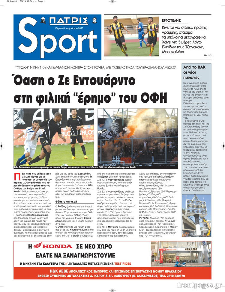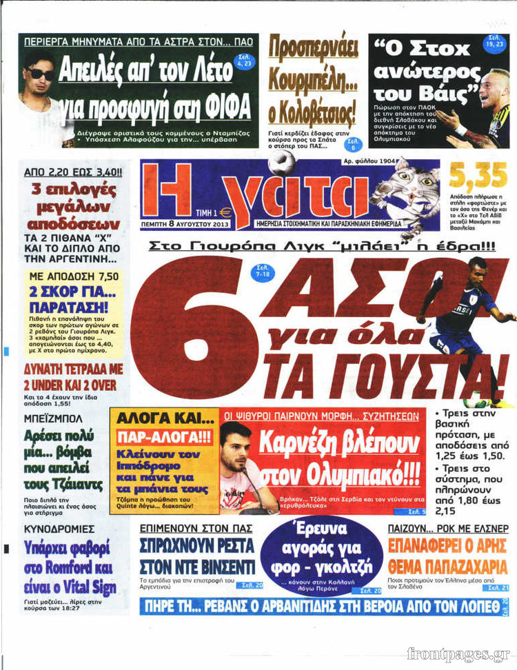 Oι αθλητικές εφημερίδες Enikos Newsroom 08:50, Πέμπτη 08 Αυγούστου 2013 Media Oι αθλητικές εφημερίδες ΑΘΛΗΤΙΚΕΣ ΕΦΗΜΕΡΙΔΕΣ ΕΦΗΜΕΡΙΔΕΣ Μοιράσου το: σχολίασε κι εσύ (0 σχόλια) Ακολουθήστε το enikos.gr στο Google News και μάθετε πρώτοι όλες τις ειδήσεις Δείτε όλες τις τελευταίες ειδήσεις από την Ελλάδα και τον Κόσμο στο enikos.gr Ειδήσεις Ροή Ειδήσεων 5 ώρες πριν Εκτός ευρωομάδας ΣΥΡΙΖΑ ο Νίκος Παππάς μετά την επίθεση στον δημοσιογράφο Νίκο Γιαννόπουλο – Η μήνυση και οι νέες δηλώσεις 6 ώρες πριν «Αγριεύουν» οι αγρότες: «Δεν συντρέχει λόγος συνάντησης με τον πρωθυπουργό» – Ώρα αποφάσεων στη σύσκεψη της Πέμπτης 6 ώρες πριν Κυψέλη: Χωρίς την οικογένειά της δίπλα της απολογήθηκε η 16χρονη – «Της είχε επιτεθεί κάποιος για να την βιάσει, φοβήθηκε και κυκλοφορούσε με μαχαίρι» 5 ώρες πριν Politico: Το πρόβλημα της Ευρώπης δεν είναι το Βέλγιο αλλά ο Ντόναλντ Τραμπ 7 ώρες πριν Αλεξανδρούπολη: Πολυοργανική ανεπάρκεια λόγω υποσιτισμού η αιτία θανάτου του 3χρονου αγοριού 6 ώρες πριν Μυστήριο με τεράστιες κυκλικές πέτρες 200 κιλών – Ανακαλύφθηκαν τυχαία κατά τη διάρκεια οδικών έργων και κανείς δεν ξέρει από πού προέρχονται 7 ώρες πριν Ύπνος: Ειδικός εξηγεί τον πραγματικό λόγο που ξυπνάτε στις 4 τα ξημερώματα – Ο ρόλος των ορμονών και του κιρκάδιου ρυθμού 8 ώρες πριν Αριθμολογία: Οι άνθρωποι που έχουν γεννηθεί αυτές τις 4 ημερομηνίες, είναι τρυφεροί και αγαπούν ανιδιοτελώς 19 ώρες πριν 20 χρόνια τα Χριστούγεννα ξεκινούν στα Public με μεγάλη ποικιλία σε δώρα! 10 λεπτά πριν Κτηνοτρόφοι: Με δάκρυα στα μάτια ζουν τον εφιάλτη των άδειων στάβλων – «Καταστράφηκαν οι ζωές μας» 25 λεπτά πριν Νέο αμερικανικό πλήγμα σε σκάφος που φέρεται να μετέφερε ναρκωτικά στον Ειρηνικό – Τέσσερις νεκροί 40 λεπτά πριν Αλ Τσαντίρι Νιουζ: «Λύγισε» ο Δημήτρης Λάλος για τον Δημήτρη Ήμελλο – «Τον μνημονεύω, να ‘ναι καλά εκεί που είναι» 55 λεπτά πριν GNTM: Με δάκρυα τον αποχαιρέτησε η Ηλιάνα Παπαγεωργίου πριν από τον ημιτελικό – «Αισθάνομαι πολύ παράξενα» 1 ώρα πριν Αμερικανικά στρατεύματα στον Ισημερινό για «προσωρινή» επιχείρηση κατά των ναρκωτικών ENIKOS NETWORK Αϋπνία: Το κόλπο που θα σας βοηθήσει να κοιμηθείτε απόψε – Είναι απλό και έχει αποτέλεσμα 2,6 εκατομμύρια πολίτες έχουν ήδη εμβολιαστεί κατά της γρίπης ΕΛΣΤΑΤ: Τι δείχνουν τα νέα στοιχεία για τις ηλεκτρονικές παραγγελίες των επιχειρήσεων ΚΕΠΕ: Οι 3 διακριτές συμβολές των ΜμΕ και της μεταποίησης στην ελληνική οικονομία Χαρτογραφώντας το «σημείο χωρίς επιστροφή»: Για πρώτη φορά αποκαλύπτεται με λεπτομέρεια το ακανθώδες όριο της ατμόσφαιρας τ... Η Google καταργεί τη λειτουργία «dark web report» – Πώς θα μπορούν οι χρήστες να διαγράφουν τα δεδομένα τους περισσότερα 02:30 , Πέμπτη 18 Δεκεμβρίου 2025 Αλ Τσαντίρι Νιουζ: Η κόρη της Πάολα στο κοινό – Η ατάκα Λαζόπουλου που την έκανε να «κοκκινήσει» Γιορτινή διάθεση και ευχάριστες στιγμές γέμισε η αποψινή, τελευταία για το 2025, εκπομπή του «... 22:24 , Τετάρτη 17 Δεκεμβρίου 2025 Το Σπίτι Δίπλα Στο Ποτάμι: Σε κίνδυνο η υγεία του Απόστολου – Τι θα δούμε απόψε “Το Σπίτι Δίπλα στο Ποτάμι” ξετυλίγει το νήμα της ζωής των πέντε αδελφών με καταισ... 21:14 , Τετάρτη 17 Δεκεμβρίου 2025 Παιχνίδια Εκδίκησης: Θα καταφέρει ο Χρήστος να κλονίσει την εμπιστοσύνη της Μάγιας απέναντι στον Άγη; Τα «Παιχνίδια Εκδίκησης» έρχονται απόψε στις 22:30, στον Αντ1, με το τελευταίο επεισόδιο της χ... 20:57 , Τετάρτη 17 Δεκεμβρίου 2025 Άγιος Έρωτας: Η Χλόη καταθέτει εναντίον του πατέρα της και ο Χάρη