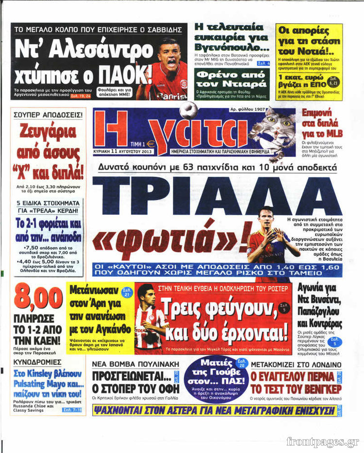 Οι αθλητικές εφημερίδες Enikos Newsroom 07:46, Κυριακή 11 Αυγούστου 2013 Media Οι αθλητικές εφημερίδες ΑΘΛΗΤΙΚΕΣ ΕΦΗΜΕΡΙΔΕΣ ΕΦΗΜΕΡΙΔΕΣ Μοιράσου το: σχολίασε κι εσύ (0 σχόλια) Ακολουθήστε το enikos.gr στο Google News και μάθετε πρώτοι όλες τις ειδήσεις Δείτε όλες τις τελευταίες ειδήσεις από την Ελλάδα και τον Κόσμο στο enikos.gr Ειδήσεις Ροή Ειδήσεων 3 ώρες πριν Ακίλα Σάλεχ: «Άκυρο» το τουρκολιβυκό μνημόνιο λέει ο πρόεδρος της λιβυκής Βουλής – Ανοίγει ο διάλογος με Ελλάδα, Αίγυπτο και Τουρκία 7 ώρες πριν Αγρότες: Την Τρίτη η απόφαση για διάλογο ή κλιμάκωση των κινητοποιήσεών τους – Πώς χαρακτηρίζουν τις ανακοινώσεις Τσιάρα και οι επόμενες κινήσεις 7 ώρες πριν Τραμπ για Ουκρανία: «Είμαστε πιο κοντά σε συμφωνία από ποτέ» – «Πολυεθνική δύναμη» προτείνουν οι Ευρωπαίοι 7 ώρες πριν Κυψέλη: Η 16χρονη που μαχαίρωσε την 14χρονη είχε συλληφθεί 3 φορές στο παρελθόν – Έβριζε καθηγητές, έβαζε φωτιές σε κάδους και εκβίαζε συμμαθητές της 6 ώρες πριν Τρομοκρατική επίθεση στο Σίδνεϊ: Θλίψη για τα 15 θύματα – Οργή στην εβραϊκή κοινότητα που προειδοποιούσε επί δύο χρόνια 7 ώρες πριν Επιστήμονες ίσως έλυσαν το μυστήριο γύρω από τα Χόμπιτ – Νέα έρευνα αποκαλύπτει πώς εξαφανίστηκαν 8 ώρες πριν Ύπνος: Η αρχαία μορφή άσκησης που αποδεικνύεται αποτελεσματική στην αντιμετώπιση της αϋπνίας, σύμφωνα με μελέτη 9 ώρες πριν Αριθμολογία: Ο τυχερός σας αριθμός, ανάλογα με τον μήνα γέννησής σας 10 ώρες πριν Πώς να μην μαραίνονται γρήγορα τα κομμένα λουλούδια: Το λάθος στην τοποθέτηση του βάζου που πρέπει να αποφεύγετε 4 λεπτά πριν Οι αθλητικές εφημερίδες 16/12/2025 9 λεπτά πριν Οι πολιτικές εφημερίδες 16/12/2025 17 λεπτά πριν Τα ζώδια σήμερα, Τρίτη 16 Δεκεμβρίου: Ιχθύες, δεν χρειάζεται να έχετε όλες τις απαντήσεις 25 λεπτά πριν Εφημερεύοντα φαρμακεία σε Αθήνα και Θεσσαλονίκη (16/12) 31 λεπτά πριν Οκτώ νεκροί σε πλήγματα των ΗΠΑ κατά τριών σκαφών που φέρεται να μετέφεραν ναρκωτικά στον Ανατολικό Ειρηνικό ENIKOS NETWORK Πότε το χρόνιο ροχαλητό να αποτελέσει ένδειξη κινδύνου για την καρδιά; Τι λένε οι ειδικοί Μάριος Θεμιστοκλέους: Το ΕΣΥ ενισχύεται, εκσυγχρονίζεται, αλλάζει ΕΒΕΠ για αγροτικές κινητοποιήσεις: Κάθε επιπλέον εβδομάδα προσθέτει περίπου 200 εκατ. ευρώ ζημιά Τι προβλέπει το νομοσχέδιο του υπουργείου Εθνικής Άμυνας – Oι αλλαγές στους μισθούς Σύγχρονος Νοστράδαμος: Προειδοποιεί για «μεγάλο γεγονός» τους επόμενους μήνες που θα συγκλονίσει τη Βρετανία και τον κόσμο Τεστ παρατηρητικότητας: Μπορείτε να βρείτε τις 3 διαφορές στις εικόνες με έναν πιγκουίνο σε 14 δευτερόλεπτα περισσότερα 05:43 , Τρίτη 16 Δεκεμβρίου 2025 Οι αθλητικές εφημερίδες 16/12/2025 Διαβάστε τα πρωτοσέλιδα από τις αθλητικές εφημερίδες, σήμερα 16/12/2025. 05:38 , Τρίτη 16 Δεκεμβρίου 2025 Οι πολιτικές εφημερίδες 16/12/2025 Διαβάστε τα πρωτοσέλιδα από τις πολιτικές εφημερίδες, σήμερα 16/12/2025. 21:35 , Δευτέρα 15 Δεκεμβρίου 2025 Το Σπίτι Δίπλα Στο Ποτάμι: Η Ιουλία και ο Φωκάς μετακομίζουν στη Ρόδο – Δύο νέοι χαρακτήρες μπαίνουν στη σειρά Δύο νέοι, κομβικοί χαρακτήρες κάνουν την εμφάνισή τους αυτή την εβδομάδα στην αγαπημένη σειρά ... 19:46 , Δευτέρα 15 Δεκεμβρίου 2025 Άγιος έρωτας: Η Χριστίνα λέει την αλήθεια στον Αντρέα Ο Βασίλης δέχεται επίθεση από τους συμμαθητές του, η Αναστασία είναι συντετριμμένη με την απώλ... ΤΕΛΕΥΤΑΙΕΣ ΕΙΔΗΣΕΙΣ 4 λεπτά πριν Οι αθλητικές εφημερίδες 16/12/2025 9 λεπτά πριν Οι πολιτικές εφημερίδες 16/12/2025 17 λεπτά πριν Τα ζώδια σήμερα, Τρίτη 16 Δεκεμβρίου: Ιχθύες, δεν... 25 λεπτά πρι