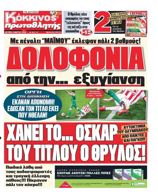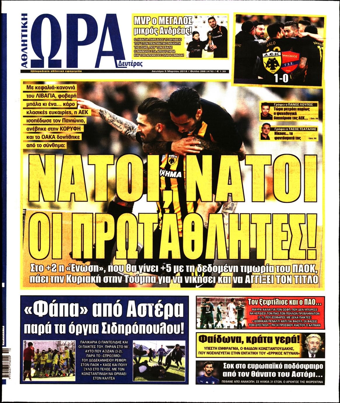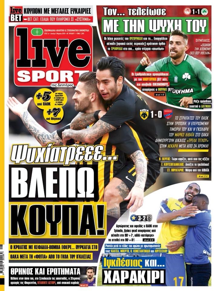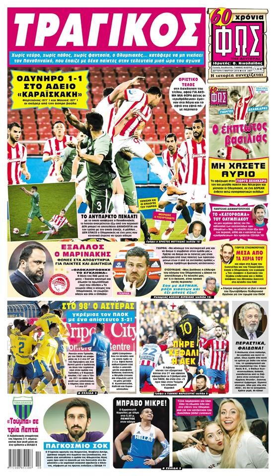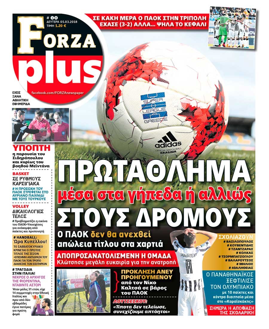 Οι αθλητικές εφημερίδες 5/3/2018 Κώστας Τεό 07:14, Δευτέρα 05 Μαρτίου 2018 Media Διαβάστε τα σημερινά πρωτοσέλιδα των αθλητικών εφημερίδων: ΑΘΛΗΤΙΚΕΣ ΕΦΗΜΕΡΙΔΕΣ ΠΡΩΤΟΣΕΛΙΔΑ Μοιράσου το: σχολίασε κι εσύ (0 σχόλια) Ακολουθήστε το enikos.gr στο Google News και μάθετε πρώτοι όλες τις ειδήσεις Δείτε όλες τις τελευταίες ειδήσεις από την Ελλάδα και τον Κόσμο στο enikos.gr Ειδήσεις Ροή Ειδήσεων 4 ώρες πριν Από το Ορμένιο ως τα Μάλγαρα κι από τη Σιάτιστα μέχρι τη Νίκαια: Μπλόκα σε όλη την Ελλάδα – Το Σάββατο ανοίγουν τα διόδια οι αγρότες 1 ώρα πριν Εμπλοκή και αερομαχίες με οπλισμένα τουρκικά F-16 στο Αιγαίο 3 ώρες πριν Αττική: Θρίλερ με νεκρό βρέφος 5 μηνών – Κοιμόταν στο ίδιο κρεβάτι με τους γονείς του 1 ώρα πριν Πούτιν: «Ναι, είμαι ερωτευμένος» – Βίντεο από τη σπάνια προσωπική παραδοχή του 3 ώρες πριν Μεσόγειος: Η διαδρομή του ρωσικού τάνκερ «Qendil» και η στοχευμένη επίθεση της Ουκρανίας με drone – Ο Πούτιν προειδοποίησε για αντίποινα 5 ώρες πριν Τα 5 ζώδια που ευνοούνται στην ερωτική ζωή τους την επόμενη εβδομάδα – «Η ενέργεια του Αιγόκερου φέρνει αγάπη και σταθερότητα» 6 ώρες πριν Αυτό το έξυπνο μαθηματικό κόλπο θα μπορούσε να αλλάξει τον τρόπο με τον οποίο οι επιστήμονες μελετούν τους σεισμούς 2 ώρες πριν Μήπως έχετε χάσει τον εαυτό σας στη σχέση σας; 7 «αθόρυβες» υποχωρήσεις που μάλλον κάνατε, χωρίς να το συνειδητοποιήσετε 4 ώρες πριν Κουίζ για την παλιά Αθήνα: Αναγνωρίζετε την περιοχή; Έχετε περάσει 100% από εκεί 7 λεπτά πριν Μπαράκ Ομπάμα: Τα βιβλία, οι ταινίες και τα τραγούδια που ξεχώρισε το 2025 – Πλήρης λίστα 12 λεπτά πριν Don’t Forget The Lyrics: Η Έλλη Κοκκίνου υποδέχεται 4 παίκτες που θα κάνουν τα πάντα για να μη χάσουν ούτε… μισή λέξη από τους στίχους 18 λεπτά πριν Πλεύρης στον ΑΝΤ1: Η βασική πολιτική που ψηφίστηκε από τους υπουργούς Μετανάστευσης είναι η δημιουργία κέντρων κράτησης μεταναστών στην Αφρική – ΒΙΝΤΕΟ 22 λεπτά πριν Η εξομολόγηση της Νίκης Σερέτη: «Δεν κρύβω ότι ήταν πάρα πολύ δύσκολο όλο αυτό που βίωσα» 28 λεπτά πριν Αγρότες: Κλειστό ξανά το ρεύμα εισόδου στα Μάλγαρα – Άνοιξαν τον κόμβο της Χαλκηδόνας ENIKOS NETWORK Έχετε πραγματικά μεγάλη καρδιά; 10 χαρακτηριστικά όσων έχουν καλοσύνη «Η σούπερ» γρίπη εξαπλώνεται στην Ευρώπη-Στοιχεία από το ECDC για την αποτελεσματικότητα του εμβολίου Επίδομα παιδιού: Πότε ανοίγει ξανά η πλατφόρμα για τις αιτήσεις Προκήρυξη ΑΣΕΠ για 397 μόνιμες προσλήψεις στο Δημόσιο: Βγήκαν τα προσωρινά αποτελέσματα – Πότε αρχίζει η υποβολή ενστάσεων Χαρτογραφώντας το «σημείο χωρίς επιστροφή»: Για πρώτη φορά αποκαλύπτεται με λεπτομέρεια το ακανθώδες όριο της ατμόσφαιρας τ... Η Google καταργεί τη λειτουργία «dark web report» – Πώς θα μπορούν οι χρήστες να διαγράφουν τα δεδομένα τους περισσότερα 20:37 , Παρασκευή 19 Δεκεμβρίου 2025 Don’t Forget The Lyrics: Η Έλλη Κοκκίνου υποδέχεται 4 παίκτες που θα κάνουν τα πάντα για να μη χάσουν ούτε… μισή λέξη από τους στίχους Το «Don’t Forget The Lyrics» επιστρέφει απόψε, Παρασκευή 19 Δεκεμβρίου, στις 21:00 με νέο επει... 19:31 , Παρασκευή 19 Δεκεμβρίου 2025 GNTM: Απόψε ο μεγάλος τελικός για τους 4 φιναλίστ Έπειτα από μήνες γεμάτους μόδα, δημιουργία και έντονες αναμετρήσεις, το GNTM 2025 κορυφώνεται,... 18:11 , Παρασκευή 19 Δεκεμβρίου 2025 Το σόι σου: Ο Άρης έρχεται στην Ελλάδα για τις γιορτές των Χριστουγέννων – Τι θα δούμε στο αποψινό εορταστικό επεισόδιο Ένα απολαυστικό, εορταστικό επεισόδιο της σειράς “Το σόι σου”, γεμάτο ευτράπελα αλ... 15:15 , Παρασκευή 19 Δεκεμβρίου 2025 Την Κυριακ