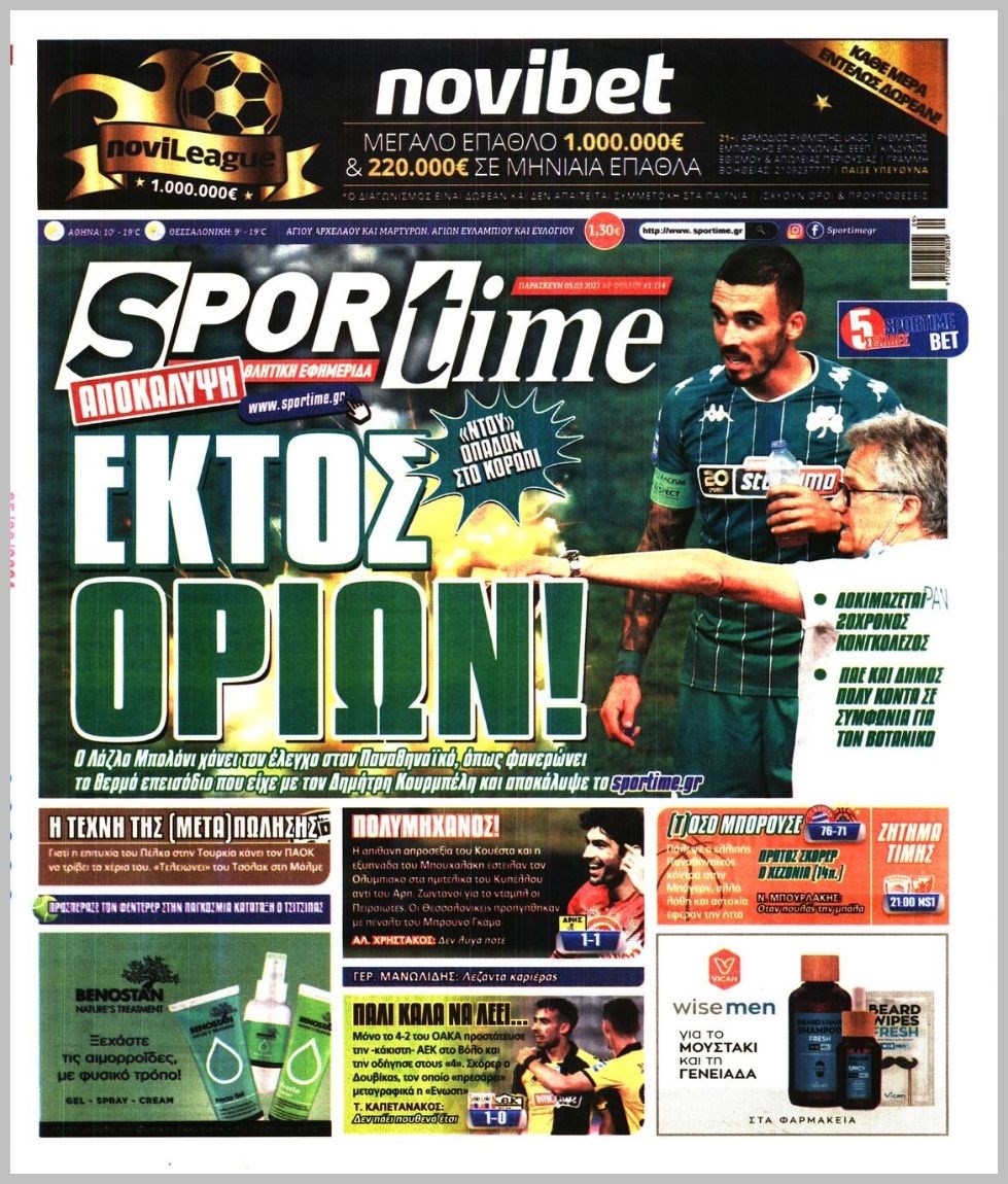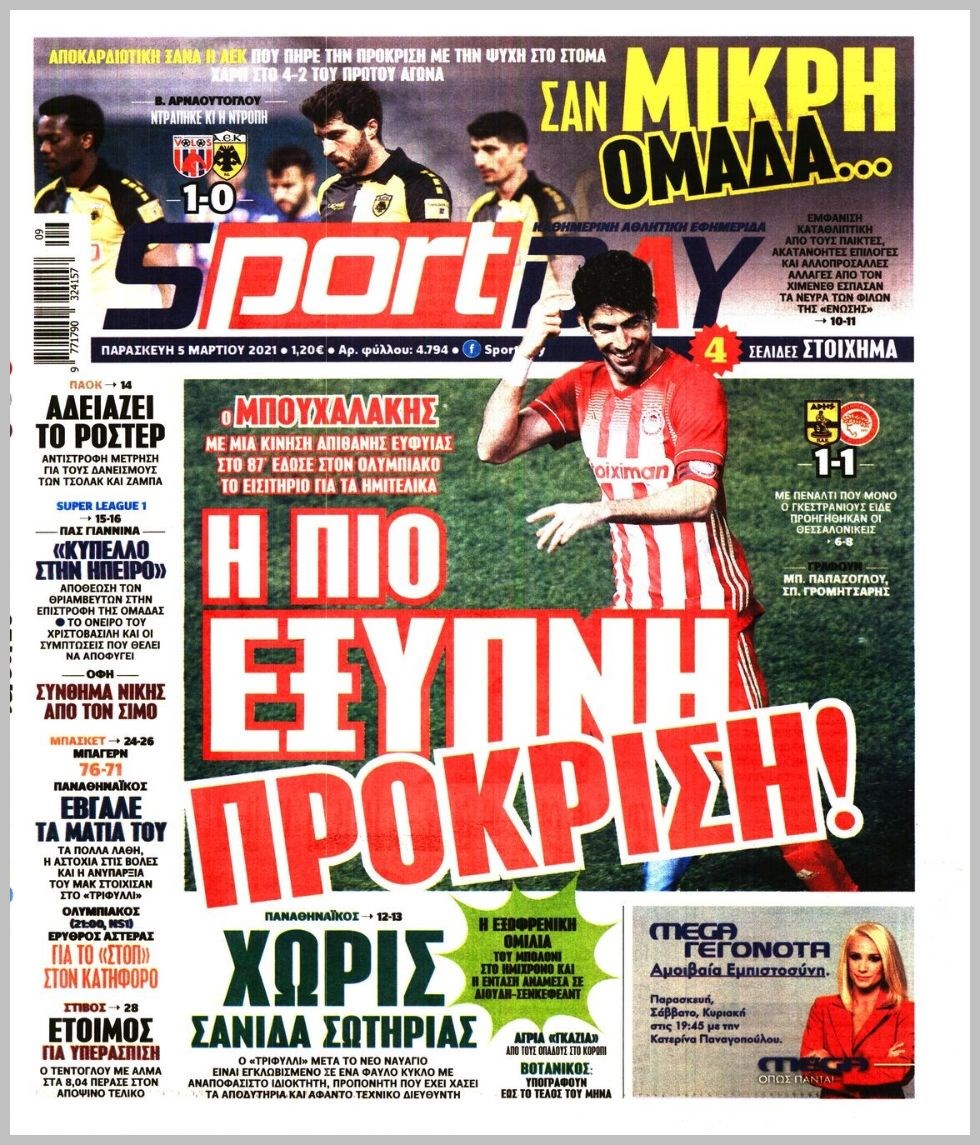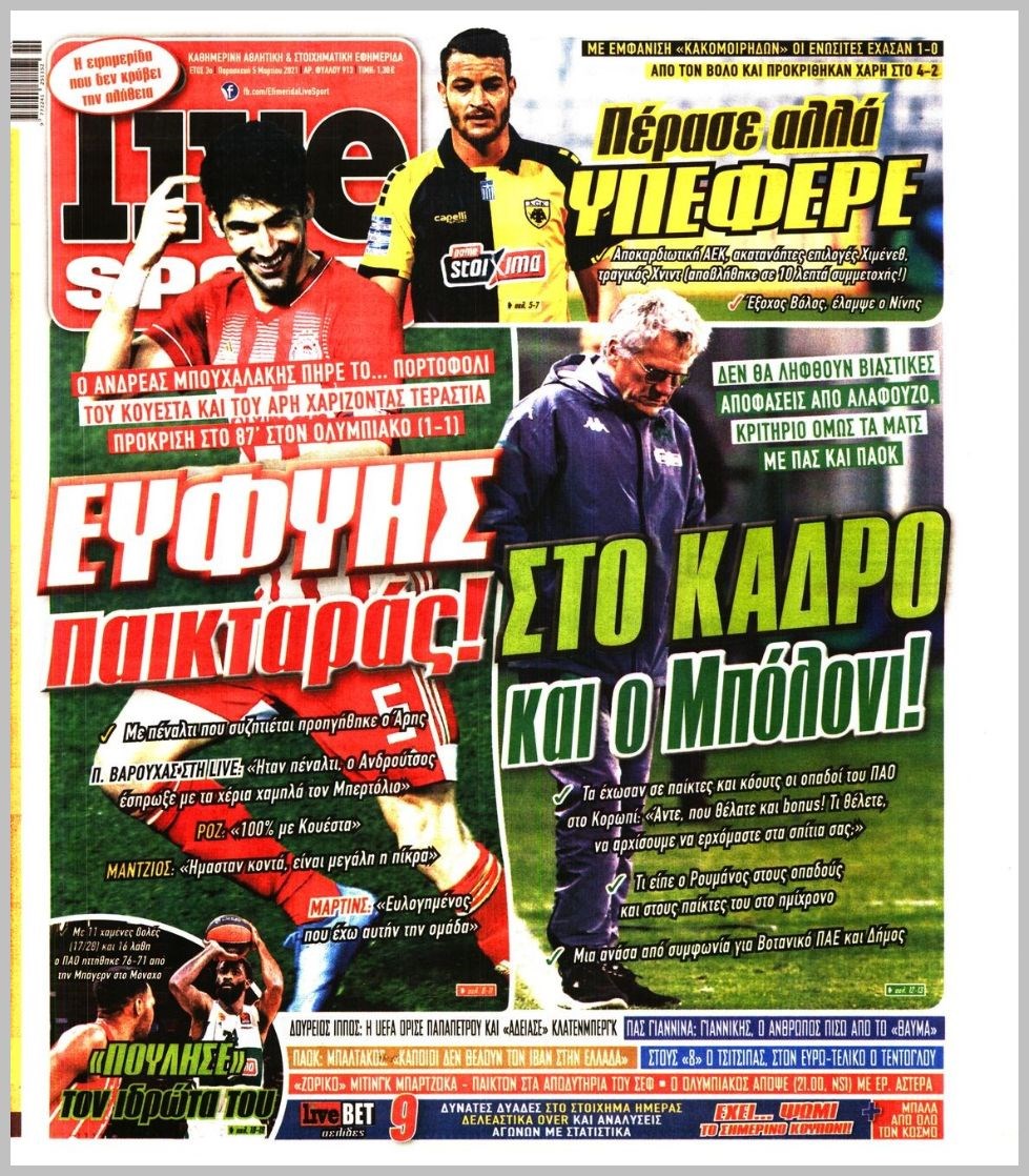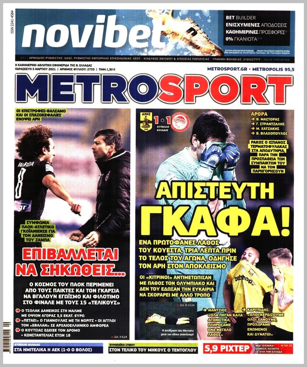 Οι αθλητικές εφημερίδες 5/3/2021 Διονύσης Νίκκας 06:29, Παρασκευή 05 Μαρτίου 2021 Media Διαβάστε τα πρωτοσέλιδα των αθλητικών εφημερίδων… ΑΘΛΗΤΙΚΕΣ ΕΦΗΜΕΡΙΔΕΣ Μοιράσου το: σχολίασε κι εσύ (0 σχόλια) Ακολουθήστε το enikos.gr στο Google News και μάθετε πρώτοι όλες τις ειδήσεις Δείτε όλες τις τελευταίες ειδήσεις από την Ελλάδα και τον Κόσμο στο enikos.gr Ειδήσεις Ροή Ειδήσεων 3 ώρες πριν ΣΥΡΙΖΑ: Διαγράφεται ο ευρωβουλευτής Νίκος Παππάς μετά την μήνυση δημοσιογράφου για ξυλοδαρμό 2 ώρες πριν Τουρκία: Επιδιώκει την επιστροφή των S-400 στη Ρωσία – Οι αμερικανικές πιέσεις 2 ώρες πριν ΟΠΕΚΕΠΕ: Ελεύθερες με όρους η σύζυγος και η αδελφή του φερόμενου αρχηγού – Τι υποστήριξαν 4 ώρες πριν Πώς στήθηκε η επιχείρηση «Ίπαλλος» που οδήγησε στη σύλληψη του «Έλληνα Εσκομπάρ» – «Ο πόλεμος ενάντια στους εμπόρους ναρκωτικών θα συνεχιστεί» 4 ώρες πριν Κυψέλη: Στη φυλακή η 16χρονη που μαχαίρωσε συμμαθήτριά της 59 λεπτά πριν Οι άνθρωποι που θυμούνται τα όνειρά τους, συνήθως μοιράζονται αυτά τα 6 σπάνια χαρακτηριστικά 4 ώρες πριν Τα 3 ζώδια που θα δουν τη ζωή τους να αλλάζει ριζικά το 2026 – «Όλα γίνονται καλύτερα σταδιακά» 5 ώρες πριν Ο σπάνιος σεισμός που έλυσε τα χέρια των επιστημόνων – Αποκάλυψε ακριβώς όσα αναζητούσαν 11 ώρες πριν 20 χρόνια τα Χριστούγεννα ξεκινούν στα Public με μεγάλη ποικιλία σε δώρα! 3 λεπτά πριν Στη ΜΕΘ του νοσοκομείου Ζακύνθου ο Μητροπολίτης Δωδώνης 7 λεπτά πριν Δημοσκόπηση Opinion Poll: Στις 12,9 μονάδες η διαφορά ΝΔ-ΠΑΣΟΚ – Τι λένε οι πολίτες για αγρότες, ΟΠΕΚΕΠΕ, Τσίπρα και Σαμαρά 14 λεπτά πριν ΠΑΣΟΚ: Καταδικάζουμε τον ξυλοδαρμό και την τραμπούκικη συμπεριφορά του ευρωβουλευτή Νίκου Παππά σε βάρος του δημοσιογράφου Νίκου Γιαννόπουλου 19 λεπτά πριν Εξεταστική για ΟΠΕΚΕΠΕ – Σκέρτσος: Διαχρονικά τα θέματα του οργανισμού – Δεν έγινε καμία αναφορά μου σε ποινικές διαδικασίες 25 λεπτά πριν Συγκλονιστικό βίντεο: Τρόμος για τουρίστες που σώθηκαν την τελευταία στιγμή από λεωφορείο που κατρακυλούσε σε φαράγγι ENIKOS NETWORK Αϋπνία: Το κόλπο που θα σας βοηθήσει να κοιμηθείτε απόψε – Είναι απλό και έχει αποτέλεσμα 2,6 εκατομμύρια πολίτες έχουν ήδη εμβολιαστεί κατά της γρίπης Προκήρυξη ΑΣΕΠ για 4.276 μόνιμες προσλήψεις στο Δημόσιο: Βγήκαν τα προσωρινά αποτελέσματα – Ποιοι μπορούν να υποβάλουν ένσ... Υπουργείο Εργασίας: Ο οδικός χάρτης για την ενίσχυση του πλαισίου των Συλλογικών Διαπραγματεύσεων – Οι 5 άξονες του σχεδίου... Χαρτογραφώντας το «σημείο χωρίς επιστροφή»: Για πρώτη φορά αποκαλύπτεται με λεπτομέρεια το ακανθώδες όριο της ατμόσφαιρας τ... Η Google καταργεί τη λειτουργία «dark web report» – Πώς θα μπορούν οι χρήστες να διαγράφουν τα δεδομένα τους περισσότερα 12:35 , Τετάρτη 17 Δεκεμβρίου 2025 Μίρκα Παπακωνσταντίνου: «Δεν ήμουν αισιόδοξη για τα νούμερα – Είμαι ρεαλίστρια» Στα γυρίσματα του εορταστικού επεισοδίου της αγαπημένης σειράς “Το Σόι Σου”, βρέθηκε η κάμερα ... 12:12 , Τετάρτη 17 Δεκεμβρίου 2025 Ακούστε την εκπομπή του Νίκου Χατζηνικολάου 17/12/2025 Ακούστε την εκπομπή του Νίκου Χατζηνικολάου στον ραδιοφωνικό σταθμό RealFm 97,8, την Τετάρτη 1... 11:35 , Τετάρτη 17 Δεκεμβρίου 2025 Home Alone: Το σπίτι της ταινίας θα ανακαινιστεί – Επιστροφή στην αισθητική της δεκαετίας του ’90 Οι νέοι ιδιοκτήτες του πραγματικού σπιτιού που παρουσιάζεται στην κλασική ταινία του 1990 «Hom... 11:25 , Τετάρτη 17 Δεκεμβρίου 2025 Grand Hotel: Απόψε το τελευταίο επεισόδιο της χρονιάς – Όλα τα μυστικά μένουν εδώ Το τελευταίο επεισόδιο της χρονιάς της σειράς 