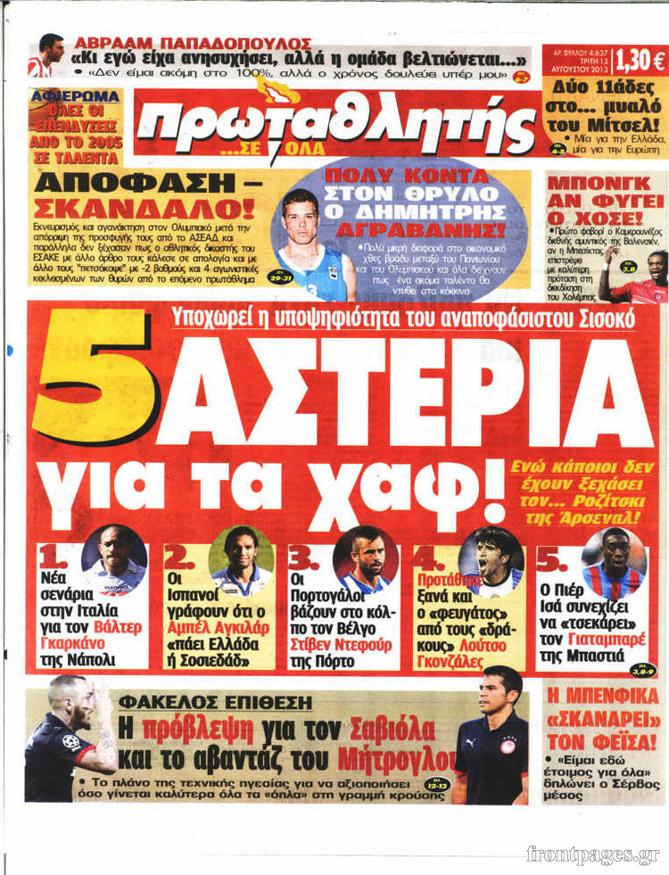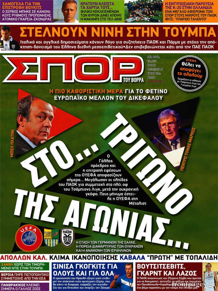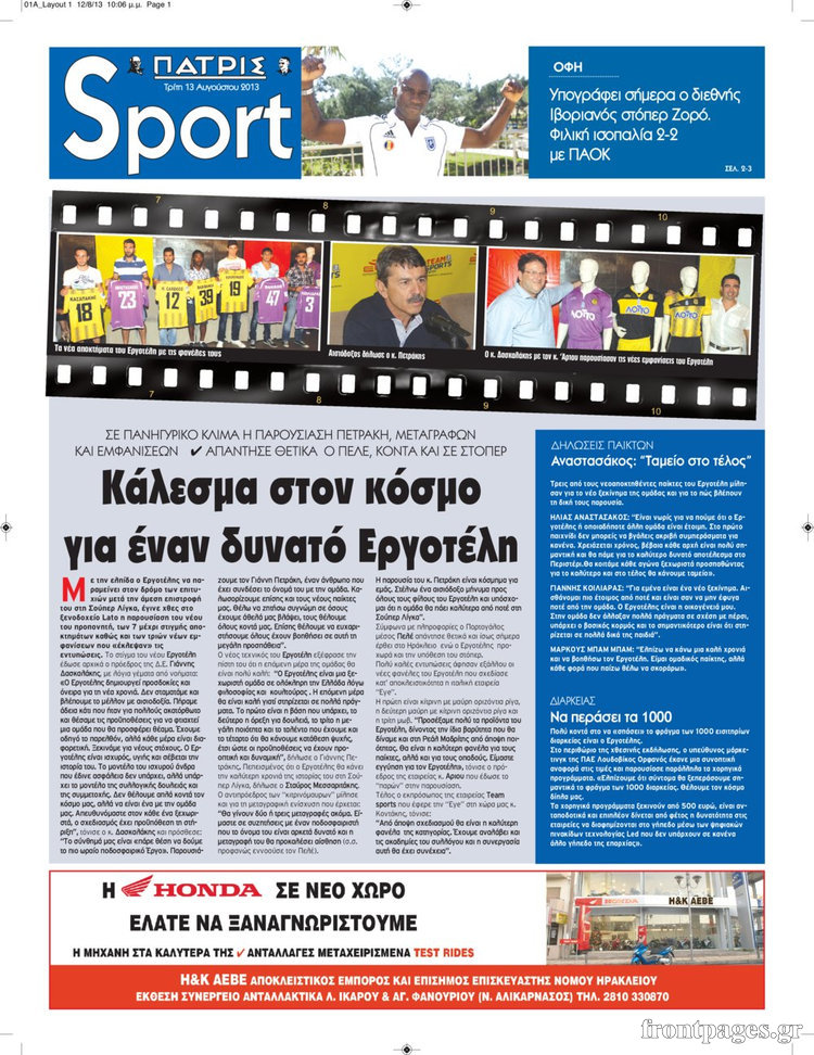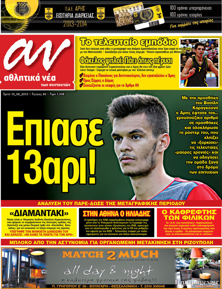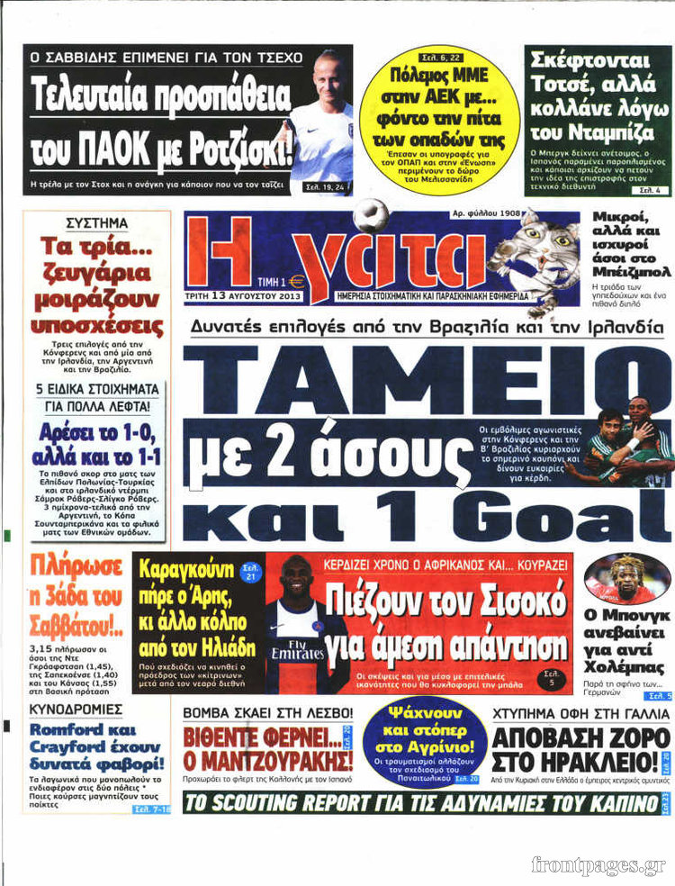 Οι αθλητικές εφημερίδες Enikos Newsroom 09:58, Τρίτη 13 Αυγούστου 2013 Media Οι αθλητικές εφημερίδες ΑΘΛΗΤΙΚΕΣ ΕΦΗΜΕΡΙΔΕΣ ΕΦΗΜΕΡΙΔΕΣ Μοιράσου το: σχολίασε κι εσύ (0 σχόλια) Ακολουθήστε το enikos.gr στο Google News και μάθετε πρώτοι όλες τις ειδήσεις Δείτε όλες τις τελευταίες ειδήσεις από την Ελλάδα και τον Κόσμο στο enikos.gr Ειδήσεις Ροή Ειδήσεων 2 ώρες πριν Χριστούγεννα στα μπλόκα: Επιμένουν στις κινητοποιήσεις τους οι αγρότες – Ανοίγουν τα διόδια το Σαββατοκύριακο 2 ώρες πριν Ουκρανία: Η άνευ προηγουμένου επίθεση σε ρωσικό τάνκερ στη Μεσόγειο και το μήνυμα προς στον Πούτιν – Το «μακρύ χέρι» του Κιέβου 2 ώρες πριν Πούτιν: Τα μηνύματα σε Ευρώπη και ΝΑΤΟ από το μαραθώνιο «σόου» του – Η απαίτηση για «σεβασμό» και η ειρήνη «με τους όρους» της Μόσχας 3 ώρες πριν Τραμπ: Δεν αποκλείει την πιθανότητα ενός πολέμου στη Βενεζουέλα – «Ο Μαδούρο ξέρει καλύτερα από τον καθένα τι ακριβώς θέλω» 3 ώρες πριν Συνεχίζει να προκαλεί ο Μίτσκοσκι: «Για μένα το όνομα Μακεδονία είναι ιερό» 2 ώρες πριν Ανακαλύφθηκαν αρχαία χρυσά νομίσματα 2.200 ετών που απεικονίζουν τον θεό Απόλλωνα – Η άγνωστη σύνδεση με τον Φίλιππο Β΄ της Μακεδονίας 3 ώρες πριν Ύπνος: Μια κρυφή κατάσταση του εγκεφάλου πριν από τον ύπνο μπορεί να είναι το “κλειδί” για υψηλή ευφυΐα και δημιουργικότητα 4 ώρες πριν Αριθμολογία: Οι άνθρωποι που έχουν γεννηθεί αυτές τις 4 ημερομηνίες, συχνά παρεξηγούνται – «Η καλοσύνη τους κρύβει τεράστια δύναμη» 5 ώρες πριν Ξεχάστε το καθάρισμα το Σαββατοκύριακο: Ο «κανόνας των 20 λεπτών» που θα σας λύσει τα χέρια 16 λεπτά πριν Φαίη Σκορδά: «Παλιότερα τα κομπλιμέντα τα προσπερνούσα, τώρα τα έχω ανάγκη» 32 λεπτά πριν Βασίλης Σπανούλης: Δεν εμφανίστηκε ούτε ένας δημοσιογράφος στην συνέντευξη Τύπου – «Καλησπέρα στον… κανέναν», δείτε βίντεο 43 λεπτά πριν Πόλεμος στην Ουκρανία: Εφτά νεκροί από ρωσική πυραυλική επίθεση στο λιμάνι της Οδησσού 47 λεπτά πριν ΗΠΑ: Η κυβέρνηση του Ντόναλντ Τραμπ άρχισε να δημοσιοποιεί τα αρχεία Έπσταϊν 59 λεπτά πριν Σάμος: Άνοιξε το μπλόκο των αγροτών στον κόμβο Κοκκαρίου – Σε νέα συνεδρίαση θα καθορίσουν την στάση τους ENIKOS NETWORK Το ΕΚΑΒ τιμήθηκε από την Ακαδημία Αθηνών για τα 40 χρόνια προσφοράς του Έχετε πραγματικά μεγάλη καρδιά; 10 χαρακτηριστικά όσων έχουν καλοσύνη Αναστολή μέτρων αναγκαστικής εκτέλεσης για κτηνοτρόφους που πλήττονται από την ευλογιά των αιγοπροβάτων Πλήρης επάρκεια προϊόντων στις λαϊκές της Αττικής, παρά τις αγροτικές κινητοποιήσεις – Τι απαντούν οι πωλητές Χαρτογραφώντας το «σημείο χωρίς επιστροφή»: Για πρώτη φορά αποκαλύπτεται με λεπτομέρεια το ακανθώδες όριο της ατμόσφαιρας τ... Η Google καταργεί τη λειτουργία «dark web report» – Πώς θα μπορούν οι χρήστες να διαγράφουν τα δεδομένα τους περισσότερα 22:42 , Παρασκευή 19 Δεκεμβρίου 2025 Γιώργος Γιαννόπουλος για “Το σόι σου”: “Είναι ευτυχία και ευλογία αυτή η σειρά” «Είναι ευτυχία και ευλογία η συγκυρία αυτής της σειράς», θα πει ο Γιώργος Γιαννόπουλος -ο αγαπ... 20:37 , Παρασκευή 19 Δεκεμβρίου 2025 Don’t Forget The Lyrics: Η Έλλη Κοκκίνου υποδέχεται 4 παίκτες που θα κάνουν τα πάντα για να μη χάσουν ούτε… μισή λέξη από τους στίχους Το «Don’t Forget The Lyrics» επιστρέφει απόψε, Παρασκευή 19 Δεκεμβρίου, στις 21:00 με νέο επει... 19:31 , Παρασκευή 19 Δεκεμβρίου 2025 GNTM: Απόψε ο μεγάλος τελικός για τους 4 φιναλίστ Έπειτα από μήνες γεμάτους μόδα, δημιουργία και έντονες αναμετρήσεις, το GNTM 2025 κορυφώνεται,... 18:11 , Παρασκευή 19 Δεκεμβρίου 2025 Το σόι σου: Ο Άρης έρ