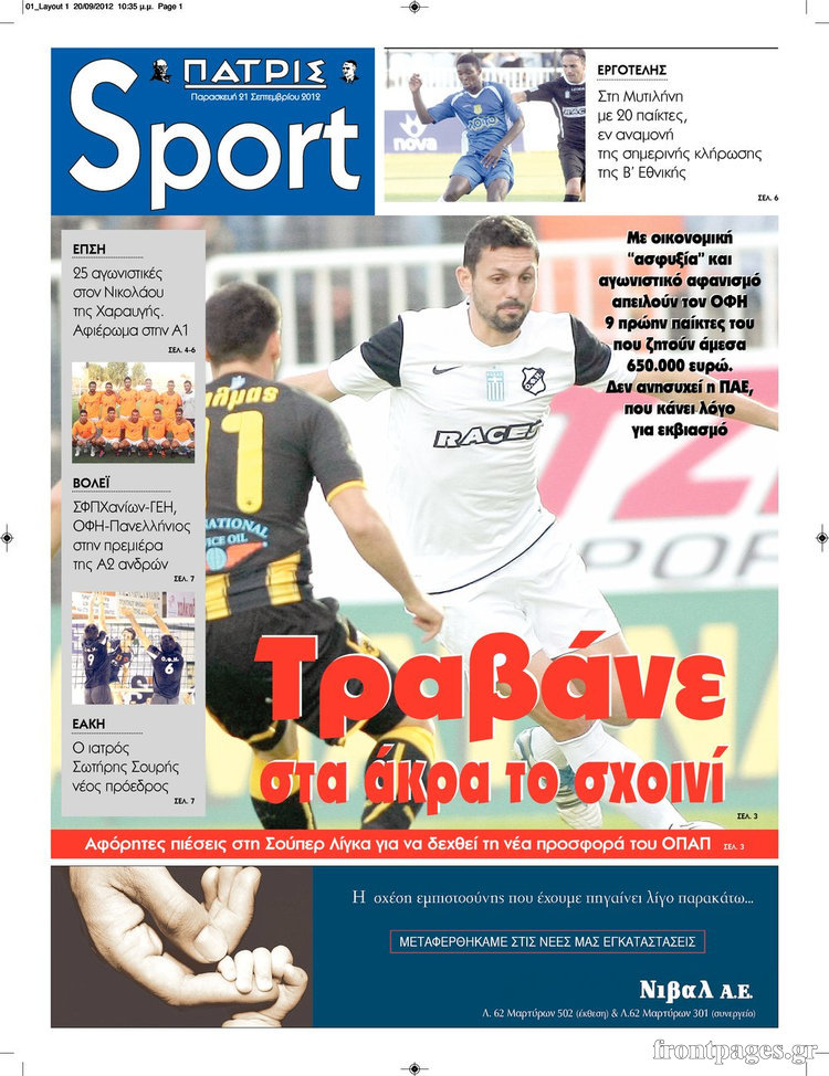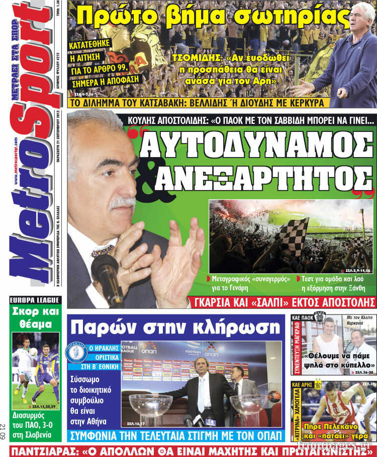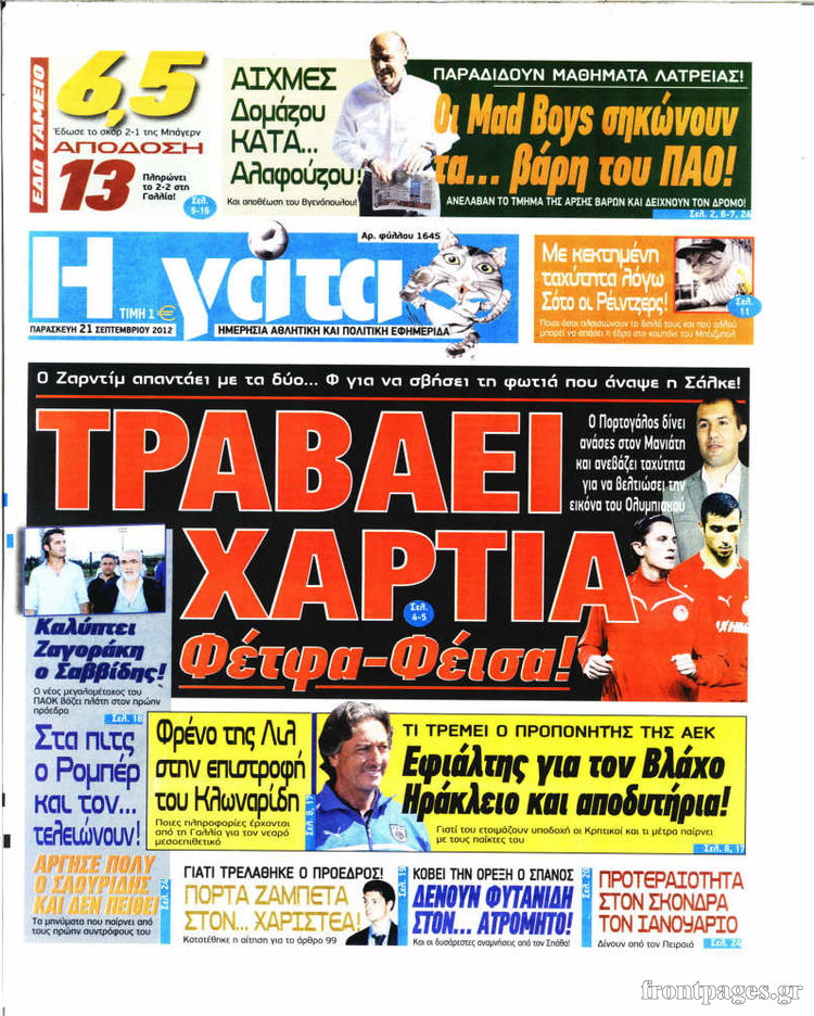 Διαβάστε τα σημερινά πρωτοσέλιδα των αθλητικών εφημερίδων.