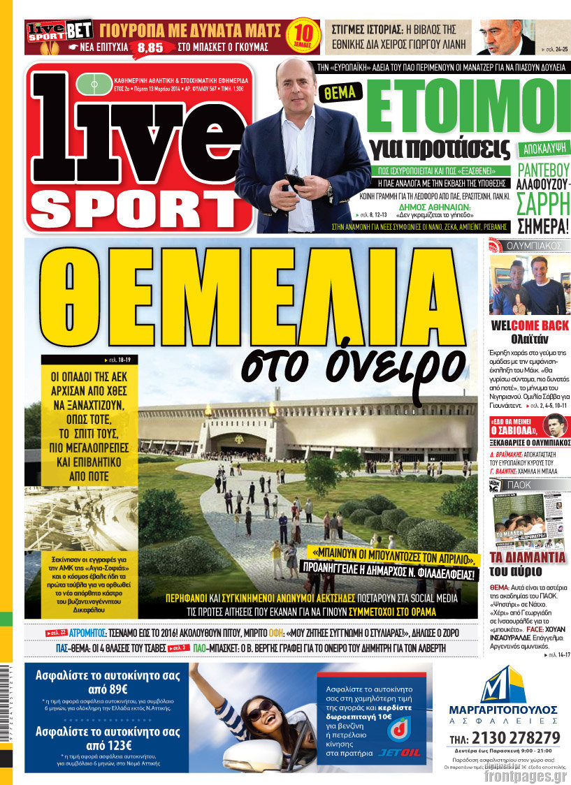 Οι αθλητικές εφημερίδες Enikos Newsroom 09:06, Πέμπτη 13 Μαρτίου 2014 Media Οι αθλητικές εφημερίδες Διαβάστε τα πρωτοσέλιδα των αθλητικών εφημερίδων: ΑΘΛΗΤΙΚΕΣ ΕΦΗΜΕΡΙΔΕΣ ΠΡΩΤΟΣΕΛΙΔΑ Μοιράσου το: σχολίασε κι εσύ (0 σχόλια) Ακολουθήστε το enikos.gr στο Google News και μάθετε πρώτοι όλες τις ειδήσεις Δείτε όλες τις τελευταίες ειδήσεις από την Ελλάδα και τον Κόσμο στο enikos.gr Ειδήσεις Ροή Ειδήσεων 8 ώρες πριν Μητσοτάκης: Αναγκαία η μεταρρύθμιση του πρωτογενούς τομέα – Τα 6 νέα μέτρα για το στεγαστικό και οι αναφορές σε «Ιθάκη» και «πολιτικούς του καναπέ» 8 ώρες πριν Δάνεια σε ελβετικό φράγκο: Τα βασικά σημεία της ρύθμισης – ανάσας για 40.000 δανειολήπτες – Αναλυτικός οδηγός με ερωτήσεις και απαντήσεις 7 ώρες πριν Κυψέλη: Εξιτήριο πήρε η 14χρονη μαθήτρια που μαχαιρώθηκε από την 16χρονη σε σχολείο – «Θέλω να βοηθήσω το παιδί, έχει μπλέξει με κακές παρέες» 7 ώρες πριν Τραμπ: Γιατί κατέθεσε τώρα την αγωγή κατά του BBC – Πώς η κίνησή του εξυπηρετεί το νέο δόγμα του για «αντίσταση» στην Ευρώπη, υπέρ των συντηρητικών 8 ώρες πριν ΟΠΕΚΕΠΕ – Παράνομες επιδοτήσεις: Ελεύθεροι με περιοριστικούς όρους και οι 7 κατηγορούμενοι που απολογήθηκαν σήμερα 7 ώρες πριν Ανακαλύφθηκε βυθισμένη πέτρινη κατασκευή ανοιχτά της Κριμαίας – Αποτελεί μέρος αρχαίας ελληνικής αποικίας 8 ώρες πριν Ύπνος: Αυτό μπορεί να είναι το χειρότερο λάθος για το βιολογικό ρολόι σας, σύμφωνα με ειδικό 9 ώρες πριν Αριθμολογία: Οι άνθρωποι που έχουν γεννηθεί αυτές τις 3 ημερομηνίες, προσελκύουν μεγάλη τύχη πριν από το τέλος του 2025 11 ώρες πριν Οι 7 συμπεριφορές που μαρτυρούν ότι ένας άνδρας επενδύει μακροπρόθεσμα σε μια σχέση 2 λεπτά πριν Υγεία του εντέρου: Προσθέστε 1 superfood στα scrambled eggs για καλύτερη πέψη και ευεξία 9 λεπτά πριν Σαν σήμερα 17 Δεκεμβρίου: Τα σημαντικότερα γεγονότα της ημέρας 14 λεπτά πριν Οι οικονομικές εφημερίδες 17/12/2025 19 λεπτά πριν Οι αθλητικές εφημερίδες 17/12/2025 24 λεπτά πριν Οι πολιτικές εφημερίδες 17/12/2025 ENIKOS NETWORK Αίτημα ΙΣΑ για την εξαίρεση των προσωπικών γιατρών από τις κατ’ οίκον επισκέψεις Η σκανδιναβική μέθοδος στον ύπνο που μπορεί να σώσει έναν γάμο Πιερρακάκης: Ο προϋπολογισμός συμβάλλει ουσιαστικά στην ενίσχυση της αγοραστικής δύναμης της πλειονότητας των εργαζομένων e-ΕΦΚΑ: Παρατείνεται η προθεσμία για την υποβολή ΑΠΔ – Ποιους αφορά Σύγχρονος Νοστράδαμος: Προειδοποιεί για «μεγάλο γεγονός» τους επόμενους μήνες που θα συγκλονίσει τη Βρετανία και τον κόσμο Τεστ παρατηρητικότητας: Μπορείτε να βρείτε τις 3 διαφορές στις εικόνες με έναν πιγκουίνο σε 14 δευτερόλεπτα περισσότερα 05:48 , Τετάρτη 17 Δεκεμβρίου 2025 Οι οικονομικές εφημερίδες 17/12/2025 Διαβάστε τα πρωτοσέλιδα από τις οικονομικές εφημερίδες, σήμερα 17/12/2025. 05:43 , Τετάρτη 17 Δεκεμβρίου 2025 Οι αθλητικές εφημερίδες 17/12/2025 Διαβάστε τα πρωτοσέλιδα από τις αθλητικές εφημερίδες, σήμερα 17/12/2025. 05:38 , Τετάρτη 17 Δεκεμβρίου 2025 Οι πολιτικές εφημερίδες 17/12/2025 Διαβάστε τα πρωτοσέλιδα από τις πολιτικές εφημερίδες, σήμερα 17/12/2025. 20:06 , Τρίτη 16 Δεκεμβρίου 2025 Ο ΣΚΑΙ καταγγέλλει τον ΕΚΚΟΜΕΔ Επιστολή με την οποία καταγράφει την έντονη διαμαρτυρία του προς τον διευθύνοντα σύμβουλο του... ΤΕΛΕΥΤΑΙΕΣ ΕΙΔΗΣΕΙΣ 2 λεπτά πριν Υγεία του εντέρου: Προσθέστε 1 superfood στα scrambled eggs για... 9 λεπτά πριν Σαν σήμερα 17 Δεκεμβρίου: Τα σημαντικότερα γεγονότα... 14 λεπτά πριν Οι οικονομικές εφημερίδες 17/12/2025 19 λεπτά πριν Οι αθλητικές εφημερίδες 17/12/2025 24 λεπτά πριν Οι πολιτικές εφημερίδες 17/12/2025 32 λεπτά πριν 