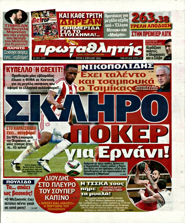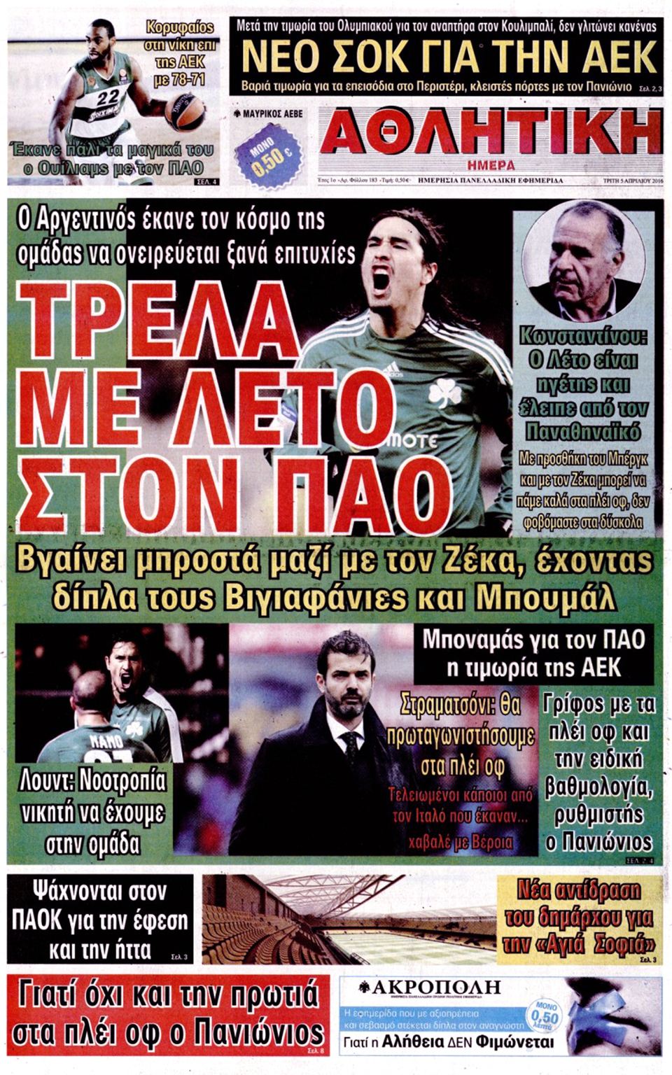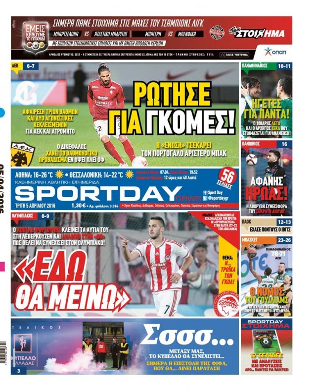 Οι αθλητικές εφημερίδες 5/4/2016 Enikos Newsroom 04:44, Τρίτη 05 Απριλίου 2016 Media Διαβάστε τα σημερινά πρωτοσέλιδα των αθλητικών εφημερίδων: ΑΘΛΗΤΙΚΕΣ ΕΦΗΜΕΡΙΔΕΣ ΠΡΩΤΟΣΕΛΙΔΑ Μοιράσου το: σχολίασε κι εσύ (0 σχόλια) Ακολουθήστε το enikos.gr στο Google News και μάθετε πρώτοι όλες τις ειδήσεις Δείτε όλες τις τελευταίες ειδήσεις από την Ελλάδα και τον Κόσμο στο enikos.gr Ειδήσεις Ροή Ειδήσεων 4 ώρες πριν Αγρότες: «Όχι στον διάλογο, μας εμπαίζει η κυβέρνηση» – Αποφάσισαν κλιμάκωση των κινητοποιήσεων, τι θα γίνει τα Χριστούγεννα 47 λεπτά πριν Αθήνα: Εξαρθρώθηκε εγκληματική οργάνωση που διακινούσε ναρκωτικά σε μορφή σοκολάτας – Δύο τράπερ ανάμεσα στους 4 συλληφθέντες – ΒΙΝΤΕΟ 56 λεπτά πριν Στη φυλακή ο «Έλληνας Εσκομπάρ» και τρεις συνεργοί του για το φορτίο με την κοκαΐνη – Τι υποστήριξε στην απολογία του 2 ώρες πριν Γιώργος Μαζωνάκης: «Έχει υποστεί ένα σωρό εκβιαστικές πρακτικές – Του είπαν ότι θα του βάλουν τον συγκεκριμένο άνθρωπο να τον καταγγείλει» 34 λεπτά πριν Γεωργιάδης για Κωνσταντοπούλου: «Έχει καταφέρει να ξεπεράσει ακόμη και τον εαυτό της – Το ερώτημα είναι “γιατί τώρα;”» 5 ώρες πριν Τα 5 ζώδια που θα ευνοηθούν στα οικονομικά τους το 2026 – «Τραβούν το χρήμα σαν μαγνήτες» 2 ώρες πριν Γάμος: 11 ψυχρές αλλά ευγενικές φράσεις, που λέει ένας άνδρας όταν σκέφτεται τον χωρισμό 42 λεπτά πριν Σφουγγάρισμα: Η συνήθεια που θα σας βοηθήσει να διατηρήσετε το σπίτι σας καθαρό και τακτοποιημένο 1 ημέρα πριν 20 χρόνια τα Χριστούγεννα ξεκινούν στα Public με μεγάλη ποικιλία σε δώρα! 3 λεπτά πριν ΗΠΑ: Νέες φωτογραφίες από τον φάκελο Επστάιν έδωσαν στην δημοσιότητα οι Δημοκρατικοί 9 λεπτά πριν ΕΦΕΤ: Συμβουλές για ασφαλή κατανάλωση τροφίμων κατά την εορταστική περίοδο των Χριστουγέννων 17 λεπτά πριν Φάμελλος: Η κινητοποίηση των αγροτών είναι για το συμφέρον όλων των κοινωνικών ομάδων – Πρέπει να φύγετε το συντομότερο 21 λεπτά πριν Primeira Liga: 8ος πιο ακριβός παίκτης στην Πορτογαλία ο Παυλίδης με αξία 35 εκατ. ευρώ – 27ος ο Ιωαννίδης, 45ος ο Βαγιαννίδης 26 λεπτά πριν Λένα Μαντά: «Με τον πατέρα μου δεν έχω ούτε μία καλή ανάμνηση» ENIKOS NETWORK Σκέφτεστε συνέχεια συζητήσεις που έχετε κάνει; Τι σημαίνει αυτό, σύμφωνα με ειδικό Ξεκίνησε η «επέλαση» της γρίπης στην Ελλάδα-Ποιοι κινδυνεύουν Servicers: Μικρή μείωση στα κόκκινα δάνεια που διαχειρίζονται – Αναλυτικά τα στοιχεία ΑΑΔΕ: “Αλλάζει πρόσωπο” το Φορολογικό Μητρώο για πολίτες και επιχειρήσεις – Όλες οι λεπτομέρειες Χαρτογραφώντας το «σημείο χωρίς επιστροφή»: Για πρώτη φορά αποκαλύπτεται με λεπτομέρεια το ακανθώδες όριο της ατμόσφαιρας τ... Η Google καταργεί τη λειτουργία «dark web report» – Πώς θα μπορούν οι χρήστες να διαγράφουν τα δεδομένα τους περισσότερα 17:45 , Πέμπτη 18 Δεκεμβρίου 2025 ROUK ZOUK: Εορταστικό επεισόδιο με καλεσμένους τους πρωταγωνιστές του «Γιατί ρε πατέρα» Το Σάββατο 20 Δεκεμβρίου στις 21:00, η Ζέτα Μακρυπούλια υποδέχεται εκλεκτούς ηθοποιούς που όλο... 17:20 , Πέμπτη 18 Δεκεμβρίου 2025 Άγιος έρωτας: Η Χριστίνα εξομολογείται στον πατέρα Νικόλαο, απόψε στις 21:00 στον Alpha Η Νότα αποφασίζει να εκδικηθεί τον Πέτρο και τον Στέφανο, για χάρη του Λούη, όμως τα πράγματα ... 16:50 , Πέμπτη 18 Δεκεμβρίου 2025 Να μ’ αγαπάς: Ζωή και Φωτεινή συμφιλιώνονται ως μάνα με κόρη, απόψε στις 20:00 Η ταυτότητα του Άγγελου αποκαλύπτεται στο νέο επεισόδιο της σειράς “Να μ’ αγαπάς... 15:52 , Πέμπτη 18 Δεκεμβρίου 2025 Το Σπίτι Δίπλα Στο Ποτάμι: Το καθηλωτικό τελευταίο επεισόδιο για το 2025 απόψε στις 22:30 Καθη