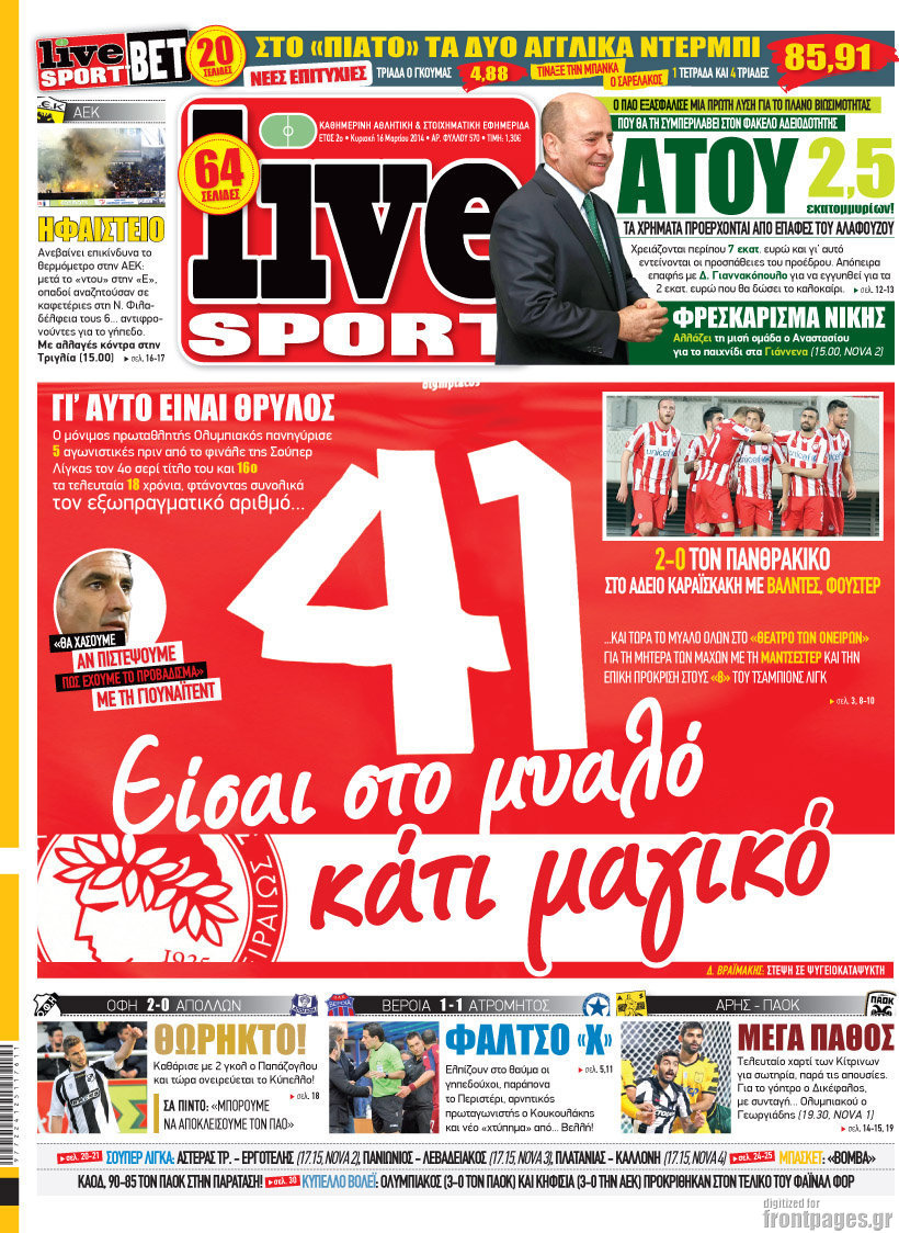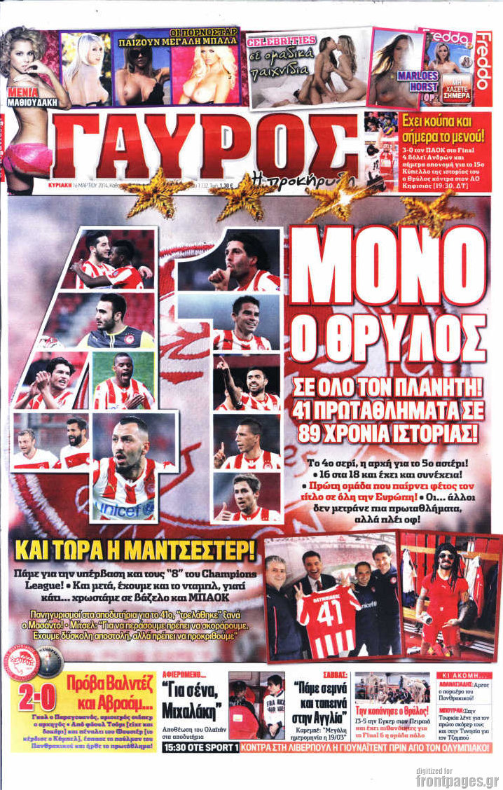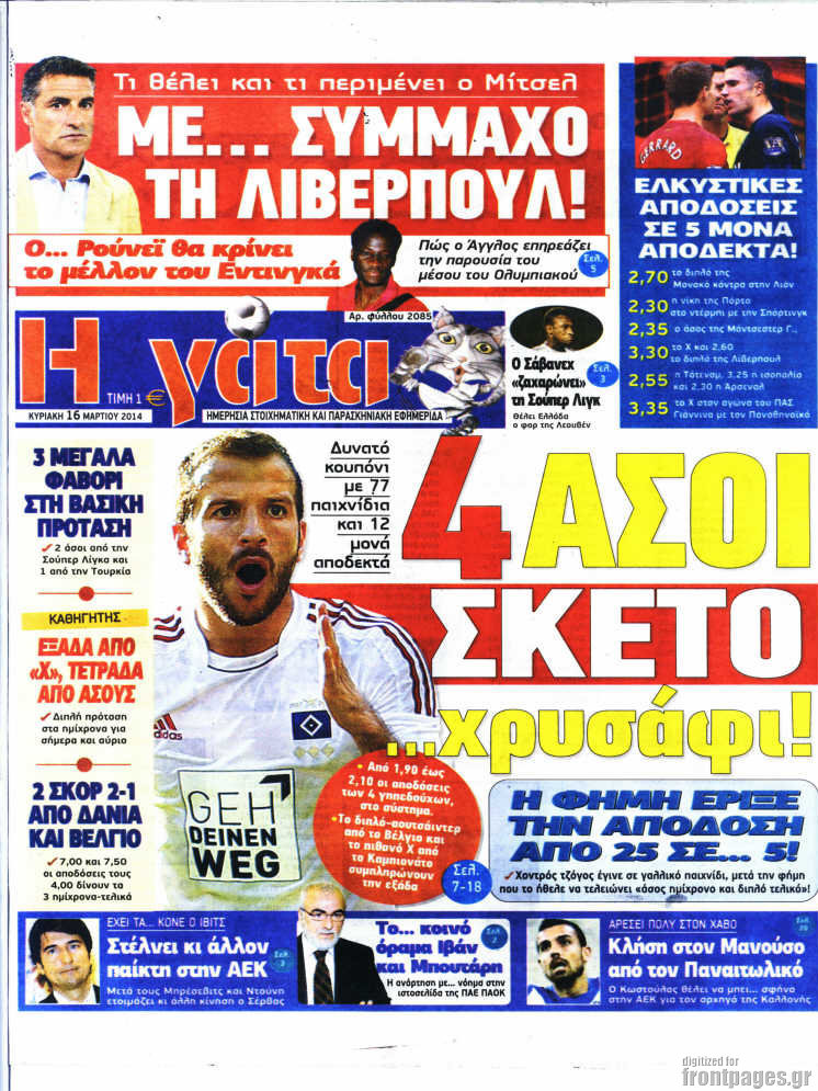 Οι αθλητικές εφημερίδες Enikos Newsroom 08:49, Κυριακή 16 Μαρτίου 2014 Media Οι αθλητικές εφημερίδες ΑΘΛΗΤΙΚΕΣ ΕΦΗΜΕΡΙΔΕΣ Μοιράσου το: σχολίασε κι εσύ (0 σχόλια) Ακολουθήστε το enikos.gr στο Google News και μάθετε πρώτοι όλες τις ειδήσεις Δείτε όλες τις τελευταίες ειδήσεις από την Ελλάδα και τον Κόσμο στο enikos.gr Ειδήσεις Ροή Ειδήσεων 3 ώρες πριν ΣΥΡΙΖΑ: Διαγράφεται ο ευρωβουλευτής Νίκος Παππάς μετά την μήνυση δημοσιογράφου για ξυλοδαρμό 13 λεπτά πριν Δημοσκόπηση Opinion Poll: Στις 12,9 μονάδες η διαφορά ΝΔ-ΠΑΣΟΚ – Τι λένε οι πολίτες για αγρότες, ΟΠΕΚΕΠΕ, Τσίπρα και Σαμαρά 2 ώρες πριν ΟΠΕΚΕΠΕ: Ελεύθερες με όρους η σύζυγος και η αδελφή του φερόμενου αρχηγού – Τι υποστήριξαν 4 ώρες πριν Πώς στήθηκε η επιχείρηση «Ίπαλλος» που οδήγησε στη σύλληψη του «Έλληνα Εσκομπάρ» – «Ο πόλεμος ενάντια στους εμπόρους ναρκωτικών θα συνεχιστεί» 4 ώρες πριν Κυψέλη: Στη φυλακή η 16χρονη που μαχαίρωσε συμμαθήτριά της 1 ώρα πριν Οι άνθρωποι που θυμούνται τα όνειρά τους, συνήθως μοιράζονται αυτά τα 6 σπάνια χαρακτηριστικά 4 ώρες πριν Τα 3 ζώδια που θα δουν τη ζωή τους να αλλάζει ριζικά το 2026 – «Όλα γίνονται καλύτερα σταδιακά» 5 ώρες πριν Ο σπάνιος σεισμός που έλυσε τα χέρια των επιστημόνων – Αποκάλυψε ακριβώς όσα αναζητούσαν 11 ώρες πριν 20 χρόνια τα Χριστούγεννα ξεκινούν στα Public με μεγάλη ποικιλία σε δώρα! 23 δευτερόλεπτα πριν «Η αξιοπρέπεια δεν είναι διαπραγματεύσιμη» έγραψε στα social media o 21χρονος που αναμένεται να καταγγείλει τον πασίγνωστο τραγουδιστή 5 λεπτά πριν Καθρέφτες μπάνιου: Το απλό κόλπο με την οδοντόκρεμα για να μην θολώνουν 10 λεπτά πριν Στη ΜΕΘ του νοσοκομείου Ζακύνθου ο Μητροπολίτης Δωδώνης 13 λεπτά πριν Δημοσκόπηση Opinion Poll: Στις 12,9 μονάδες η διαφορά ΝΔ-ΠΑΣΟΚ – Τι λένε οι πολίτες για αγρότες, ΟΠΕΚΕΠΕ, Τσίπρα και Σαμαρά 20 λεπτά πριν ΠΑΣΟΚ: Καταδικάζουμε τον ξυλοδαρμό και την τραμπούκικη συμπεριφορά του ευρωβουλευτή Νίκου Παππά σε βάρος του δημοσιογράφου Νίκου Γιαννόπουλου ENIKOS NETWORK Αϋπνία: Το κόλπο που θα σας βοηθήσει να κοιμηθείτε απόψε – Είναι απλό και έχει αποτέλεσμα 2,6 εκατομμύρια πολίτες έχουν ήδη εμβολιαστεί κατά της γρίπης Ελληνικά ομόλογα: Τι λέει η S&P Global Προκήρυξη ΑΣΕΠ για 4.276 μόνιμες προσλήψεις στο Δημόσιο: Βγήκαν τα προσωρινά αποτελέσματα – Ποιοι μπορούν να υποβάλουν ένσ... Χαρτογραφώντας το «σημείο χωρίς επιστροφή»: Για πρώτη φορά αποκαλύπτεται με λεπτομέρεια το ακανθώδες όριο της ατμόσφαιρας τ... Η Google καταργεί τη λειτουργία «dark web report» – Πώς θα μπορούν οι χρήστες να διαγράφουν τα δεδομένα τους περισσότερα 12:35 , Τετάρτη 17 Δεκεμβρίου 2025 Μίρκα Παπακωνσταντίνου: «Δεν ήμουν αισιόδοξη για τα νούμερα – Είμαι ρεαλίστρια» Στα γυρίσματα του εορταστικού επεισοδίου της αγαπημένης σειράς “Το Σόι Σου”, βρέθηκε η κάμερα ... 12:12 , Τετάρτη 17 Δεκεμβρίου 2025 Ακούστε την εκπομπή του Νίκου Χατζηνικολάου 17/12/2025 Ακούστε την εκπομπή του Νίκου Χατζηνικολάου στον ραδιοφωνικό σταθμό RealFm 97,8, την Τετάρτη 1... 11:35 , Τετάρτη 17 Δεκεμβρίου 2025 Home Alone: Το σπίτι της ταινίας θα ανακαινιστεί – Επιστροφή στην αισθητική της δεκαετίας του ’90 Οι νέοι ιδιοκτήτες του πραγματικού σπιτιού που παρουσιάζεται στην κλασική ταινία του 1990 «Hom... 11:25 , Τετάρτη 17 Δεκεμβρίου 2025 Grand Hotel: Απόψε το τελευταίο επεισόδιο της χρονιάς – Όλα τα μυστικά μένουν εδώ Το τελευταίο επεισόδιο της χρονιάς της σειράς «Grand Hotel» θα προβληθεί απόψε στις 21:00. Ο Ά... ΤΕΛΕΥΤΑΙΕΣ ΕΙΔΗΣΕΙΣ 5 λεπτά πριν Καθρέφτες μπάνιου: Το απλό κόλπο με την οδοντόκρεμα... 10 λεπτά