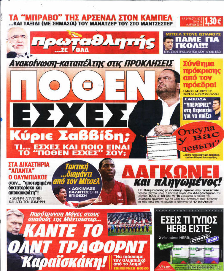 Οι αθλητικές εφημερίδες Enikos Newsroom 08:43, Τρίτη 18 Μαρτίου 2014 Media Οι αθλητικές εφημερίδες Διαβάστε τα πρωτοσέλιδα των αθλητικών εφημερίδων: ΑΘΛΗΤΙΚΕΣ ΕΦΗΜΕΡΙΔΕΣ ΕΦΗΜΕΡΙΔΕΣ ΠΡΩΤΟΣΕΛΙΔΑ Μοιράσου το: σχολίασε κι εσύ (0 σχόλια) Ακολουθήστε το enikos.gr στο Google News και μάθετε πρώτοι όλες τις ειδήσεις Δείτε όλες τις τελευταίες ειδήσεις από την Ελλάδα και τον Κόσμο στο enikos.gr Ειδήσεις Ροή Ειδήσεων 3 ώρες πριν ΣΥΡΙΖΑ: Διαγράφεται ο ευρωβουλευτής Νίκος Παππάς μετά την μήνυση δημοσιογράφου για ξυλοδαρμό 13 λεπτά πριν Δημοσκόπηση Opinion Poll: Στις 12,9 μονάδες η διαφορά ΝΔ-ΠΑΣΟΚ – Τι λένε οι πολίτες για αγρότες, ΟΠΕΚΕΠΕ, Τσίπρα και Σαμαρά 2 ώρες πριν ΟΠΕΚΕΠΕ: Ελεύθερες με όρους η σύζυγος και η αδελφή του φερόμενου αρχηγού – Τι υποστήριξαν 4 ώρες πριν Πώς στήθηκε η επιχείρηση «Ίπαλλος» που οδήγησε στη σύλληψη του «Έλληνα Εσκομπάρ» – «Ο πόλεμος ενάντια στους εμπόρους ναρκωτικών θα συνεχιστεί» 4 ώρες πριν Κυψέλη: Στη φυλακή η 16χρονη που μαχαίρωσε συμμαθήτριά της 1 ώρα πριν Οι άνθρωποι που θυμούνται τα όνειρά τους, συνήθως μοιράζονται αυτά τα 6 σπάνια χαρακτηριστικά 4 ώρες πριν Τα 3 ζώδια που θα δουν τη ζωή τους να αλλάζει ριζικά το 2026 – «Όλα γίνονται καλύτερα σταδιακά» 5 ώρες πριν Ο σπάνιος σεισμός που έλυσε τα χέρια των επιστημόνων – Αποκάλυψε ακριβώς όσα αναζητούσαν 11 ώρες πριν 20 χρόνια τα Χριστούγεννα ξεκινούν στα Public με μεγάλη ποικιλία σε δώρα! 39 δευτερόλεπτα πριν «Η αξιοπρέπεια δεν είναι διαπραγματεύσιμη» έγραψε στα social media o 21χρονος που αναμένεται να καταγγείλει τον πασίγνωστο τραγουδιστή 6 λεπτά πριν Καθρέφτες μπάνιου: Το απλό κόλπο με την οδοντόκρεμα για να μην θολώνουν 10 λεπτά πριν Στη ΜΕΘ του νοσοκομείου Ζακύνθου ο Μητροπολίτης Δωδώνης 13 λεπτά πριν Δημοσκόπηση Opinion Poll: Στις 12,9 μονάδες η διαφορά ΝΔ-ΠΑΣΟΚ – Τι λένε οι πολίτες για αγρότες, ΟΠΕΚΕΠΕ, Τσίπρα και Σαμαρά 20 λεπτά πριν ΠΑΣΟΚ: Καταδικάζουμε τον ξυλοδαρμό και την τραμπούκικη συμπεριφορά του ευρωβουλευτή Νίκου Παππά σε βάρος του δημοσιογράφου Νίκου Γιαννόπουλου ENIKOS NETWORK Αϋπνία: Το κόλπο που θα σας βοηθήσει να κοιμηθείτε απόψε – Είναι απλό και έχει αποτέλεσμα 2,6 εκατομμύρια πολίτες έχουν ήδη εμβολιαστεί κατά της γρίπης Ελληνικά ομόλογα: Τι λέει η S&P Global Προκήρυξη ΑΣΕΠ για 4.276 μόνιμες προσλήψεις στο Δημόσιο: Βγήκαν τα προσωρινά αποτελέσματα – Ποιοι μπορούν να υποβάλουν ένσ... Χαρτογραφώντας το «σημείο χωρίς επιστροφή»: Για πρώτη φορά αποκαλύπτεται με λεπτομέρεια το ακανθώδες όριο της ατμόσφαιρας τ... Η Google καταργεί τη λειτουργία «dark web report» – Πώς θα μπορούν οι χρήστες να διαγράφουν τα δεδομένα τους περισσότερα 12:35 , Τετάρτη 17 Δεκεμβρίου 2025 Μίρκα Παπακωνσταντίνου: «Δεν ήμουν αισιόδοξη για τα νούμερα – Είμαι ρεαλίστρια» Στα γυρίσματα του εορταστικού επεισοδίου της αγαπημένης σειράς “Το Σόι Σου”, βρέθηκε η κάμερα ... 12:12 , Τετάρτη 17 Δεκεμβρίου 2025 Ακούστε την εκπομπή του Νίκου Χατζηνικολάου 17/12/2025 Ακούστε την εκπομπή του Νίκου Χατζηνικολάου στον ραδιοφωνικό σταθμό RealFm 97,8, την Τετάρτη 1... 11:35 , Τετάρτη 17 Δεκεμβρίου 2025 Home Alone: Το σπίτι της ταινίας θα ανακαινιστεί – Επιστροφή στην αισθητική της δεκαετίας του ’90 Οι νέοι ιδιοκτήτες του πραγματικού σπιτιού που παρουσιάζεται στην κλασική ταινία του 1990 «Hom... 11:25 , Τετάρτη 17 Δεκεμβρίου 2025 Grand Hotel: Απόψε το τελευταίο επεισόδιο της χρονιάς – Όλα τα μυστικά μένουν εδώ Το τελευταίο επεισόδιο της χρονιάς της σειράς «Grand Hotel» θα προβληθεί απόψε στις 21:00. Ο Ά... ΤΕΛΕΥΤΑΙΕΣ ΕΙΔΗΣΕΙΣ 