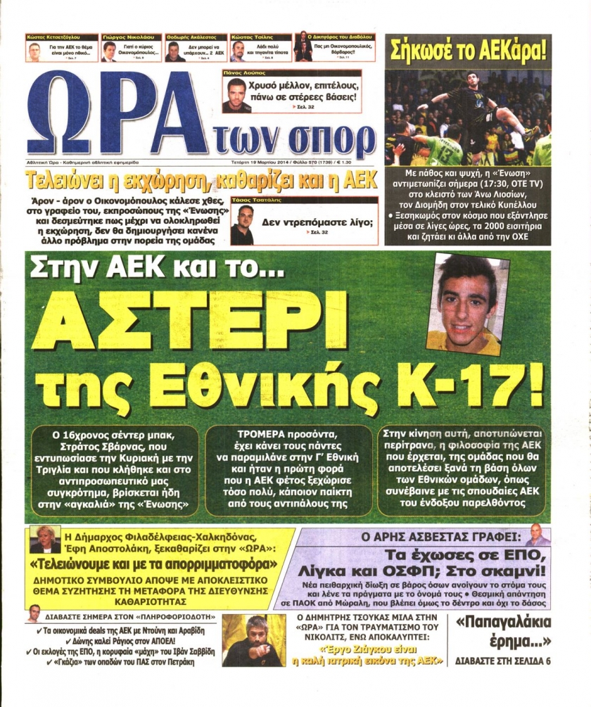 Οι αθλητικές εφημερίδες Enikos Newsroom 08:36, Τετάρτη 19 Μαρτίου 2014 Media Οι αθλητικές εφημερίδες Διαβάστε τα πρωτοσέλιδα των αθλητικών εφημερίδων: ΑΘΛΗΤΙΚΕΣ ΕΦΗΜΕΡΙΔΕΣ ΕΦΗΜΕΡΙΔΕΣ ΠΡΩΤΟΣΕΛΙΔΑ Μοιράσου το: σχολίασε κι εσύ (0 σχόλια) Ακολουθήστε το enikos.gr στο Google News και μάθετε πρώτοι όλες τις ειδήσεις Δείτε όλες τις τελευταίες ειδήσεις από την Ελλάδα και τον Κόσμο στο enikos.gr Ειδήσεις Ροή Ειδήσεων 5 ώρες πριν Εκτός ευρωομάδας ΣΥΡΙΖΑ ο Νίκος Παππάς μετά την επίθεση στον δημοσιογράφο Νίκο Γιαννόπουλο – Η μήνυση και οι νέες δηλώσεις 6 ώρες πριν «Αγριεύουν» οι αγρότες: «Δεν συντρέχει λόγος συνάντησης με τον πρωθυπουργό» – Ώρα αποφάσεων στη σύσκεψη της Πέμπτης 5 ώρες πριν Κυψέλη: Χωρίς την οικογένειά της δίπλα της απολογήθηκε η 16χρονη – «Της είχε επιτεθεί κάποιος για να την βιάσει, φοβήθηκε και κυκλοφορούσε με μαχαίρι» 5 ώρες πριν Politico: Το πρόβλημα της Ευρώπης δεν είναι το Βέλγιο αλλά ο Ντόναλντ Τραμπ 7 ώρες πριν Αλεξανδρούπολη: Πολυοργανική ανεπάρκεια λόγω υποσιτισμού η αιτία θανάτου του 3χρονου αγοριού 5 ώρες πριν Μυστήριο με τεράστιες κυκλικές πέτρες 200 κιλών – Ανακαλύφθηκαν τυχαία κατά τη διάρκεια οδικών έργων και κανείς δεν ξέρει από πού προέρχονται 6 ώρες πριν Ύπνος: Ειδικός εξηγεί τον πραγματικό λόγο που ξυπνάτε στις 4 τα ξημερώματα – Ο ρόλος των ορμονών και του κιρκάδιου ρυθμού 7 ώρες πριν Αριθμολογία: Οι άνθρωποι που έχουν γεννηθεί αυτές τις 4 ημερομηνίες, είναι τρυφεροί και αγαπούν ανιδιοτελώς 19 ώρες πριν 20 χρόνια τα Χριστούγεννα ξεκινούν στα Public με μεγάλη ποικιλία σε δώρα! 18 λεπτά πριν Αλ Τσαντίρι Νιουζ: «Λύγισε» ο Δημήτρης Λάλος για τον Δημήτρη Ήμελλο – «Τον μνημονεύω, να ‘ναι καλά εκεί που είναι» 33 λεπτά πριν GNTM: Με δάκρυα τον αποχαιρέτησε η Ηλιάνα Παπαγεωργίου πριν από τον ημιτελικό – «Αισθάνομαι πολύ παράξενα» 47 λεπτά πριν Αμερικανικά στρατεύματα στον Ισημερινό για «προσωρινή» επιχείρηση κατά των ναρκωτικών 1 ώρα πριν Βραζιλία: Το Κογκρέσο ενέκρινε σχέδιο νόμου για τη μείωση της ποινής του πρώην προέδρου Μπολσονάρου 1 ώρα πριν Ένταση στο περιφερειακό συμβούλιο Δυτικής Μακεδονίας: Φωνές, σπρωξιές και διακοπή – Δείτε βίντεο ENIKOS NETWORK Αϋπνία: Το κόλπο που θα σας βοηθήσει να κοιμηθείτε απόψε – Είναι απλό και έχει αποτέλεσμα 2,6 εκατομμύρια πολίτες έχουν ήδη εμβολιαστεί κατά της γρίπης ΕΛΣΤΑΤ: Τι δείχνουν τα νέα στοιχεία για τις ηλεκτρονικές παραγγελίες των επιχειρήσεων ΚΕΠΕ: Οι 3 διακριτές συμβολές των ΜμΕ και της μεταποίησης στην ελληνική οικονομία Χαρτογραφώντας το «σημείο χωρίς επιστροφή»: Για πρώτη φορά αποκαλύπτεται με λεπτομέρεια το ακανθώδες όριο της ατμόσφαιρας τ... Η Google καταργεί τη λειτουργία «dark web report» – Πώς θα μπορούν οι χρήστες να διαγράφουν τα δεδομένα τους περισσότερα 02:30 , Πέμπτη 18 Δεκεμβρίου 2025 Αλ Τσαντίρι Νιουζ: Η κόρη της Πάολα στο κοινό – Η ατάκα Λαζόπουλου που την έκανε να «κοκκινήσει» Γιορτινή διάθεση και ευχάριστες στιγμές γέμισε η αποψινή, τελευταία για το 2025, εκπομπή του «... 22:24 , Τετάρτη 17 Δεκεμβρίου 2025 Το Σπίτι Δίπλα Στο Ποτάμι: Σε κίνδυνο η υγεία του Απόστολου – Τι θα δούμε απόψε “Το Σπίτι Δίπλα στο Ποτάμι” ξετυλίγει το νήμα της ζωής των πέντε αδελφών με καταισ... 21:14 , Τετάρτη 17 Δεκεμβρίου 2025 Παιχνίδια Εκδίκησης: Θα καταφέρει ο Χρήστος να κλονίσει την εμπιστοσύνη της Μάγιας απέναντι στον Άγη; Τα «Παιχνίδια Εκδίκησης» έρχονται απόψε στις 22:30, στον Αντ1, με το τελευταίο επεισόδιο της χ... 20:57 , Τετάρτη 17 Δεκεμβρίου 2025 Άγιο