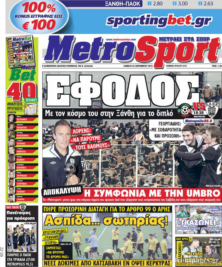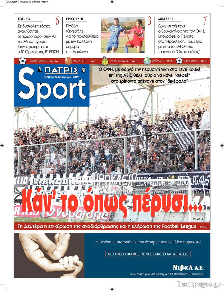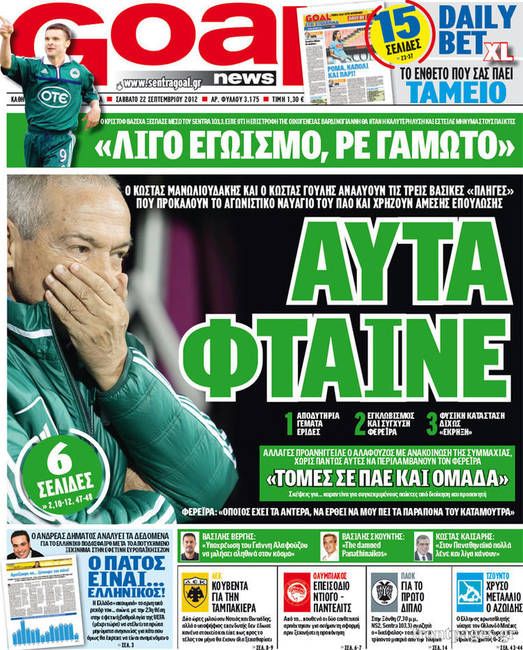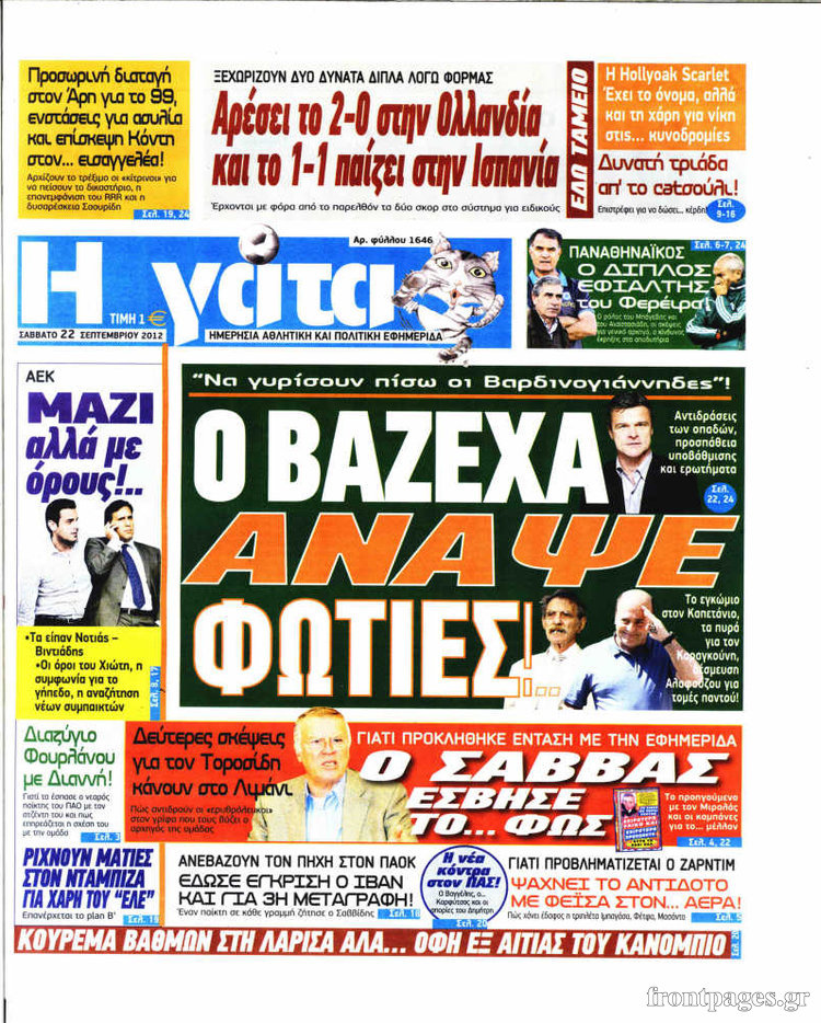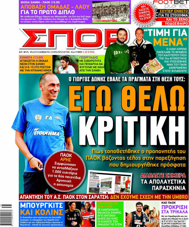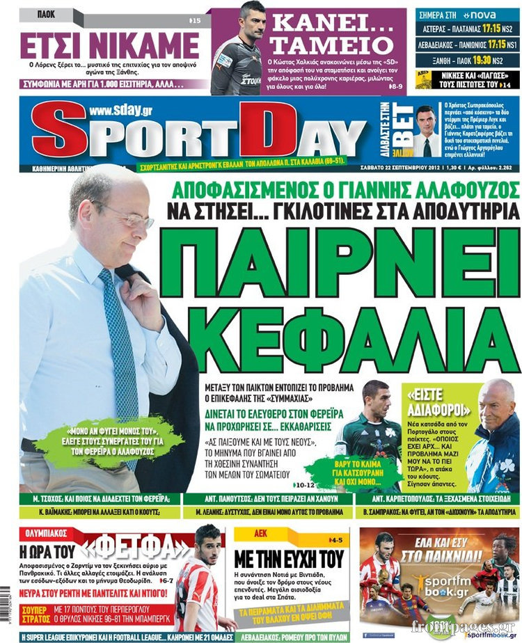 Τα σημερινά πρωτοσέλιδα των αθλητικών εφημερίδων.