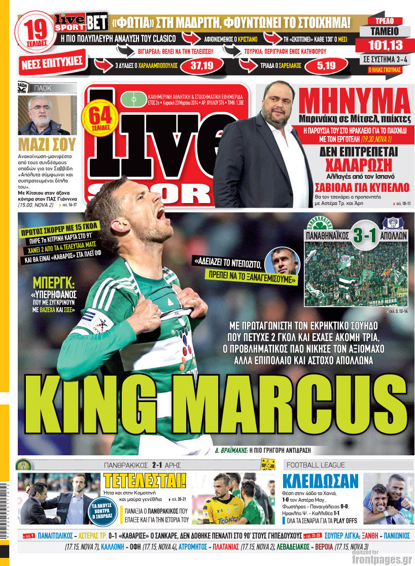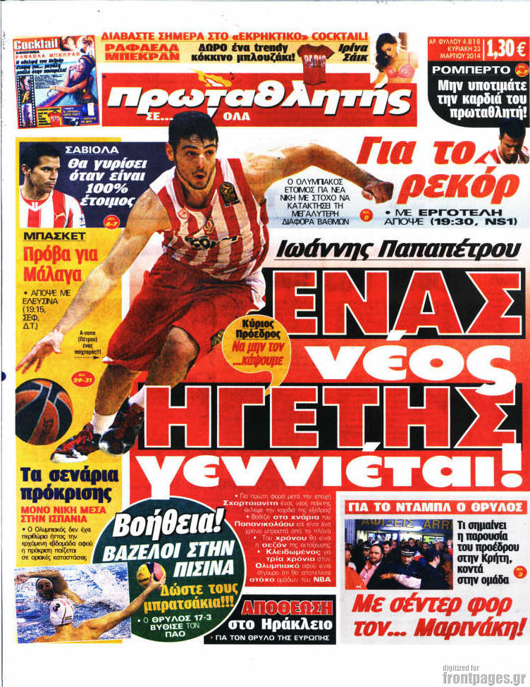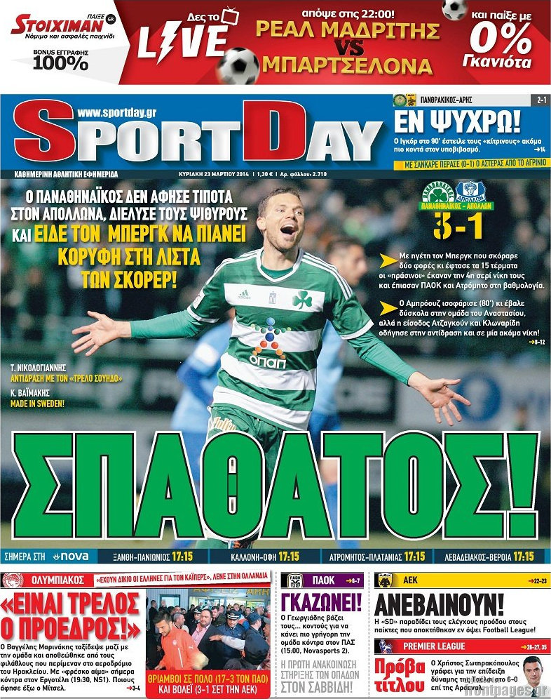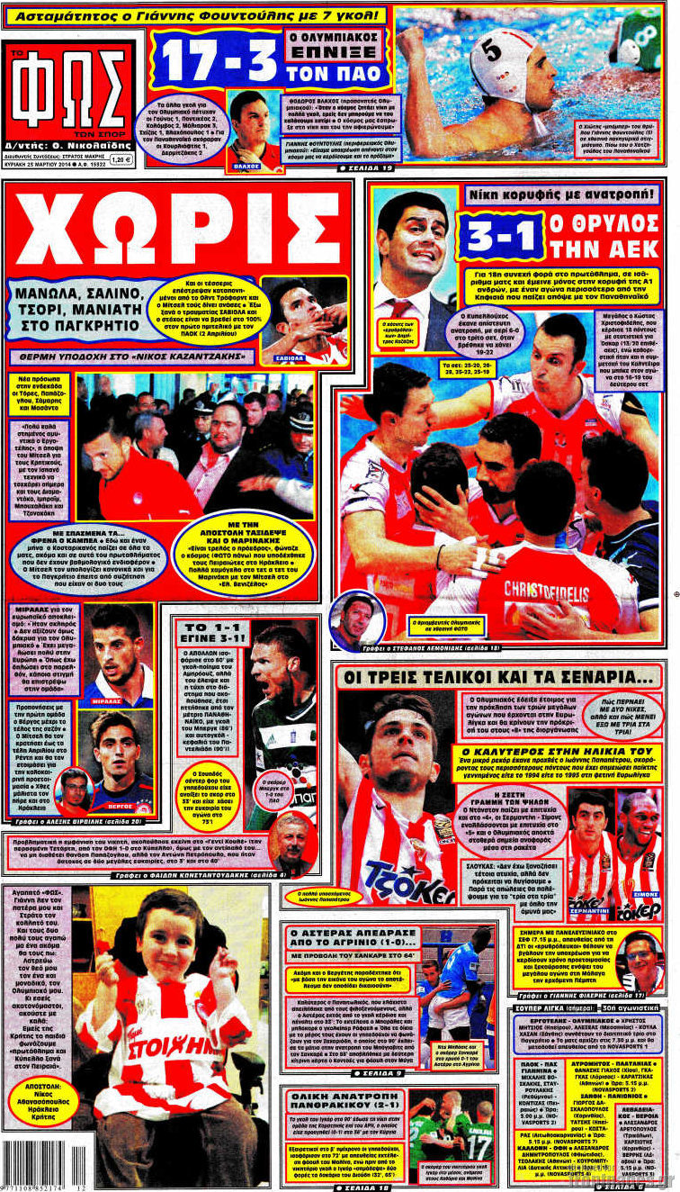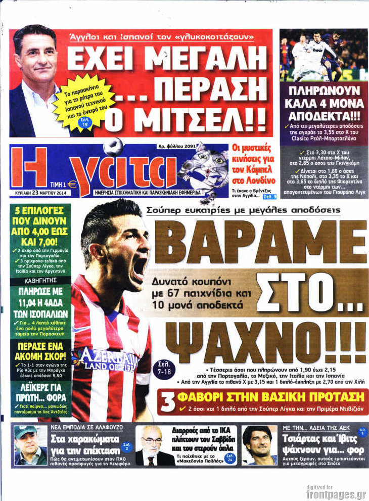 Οι αθλητικές εφημερίδες Enikos Newsroom 08:47, Κυριακή 23 Μαρτίου 2014 Media Οι αθλητικές εφημερίδες Διαβάστε τα πρωτοσέλιδα των αθλητικών εφημερίδων: ΑΘΛΗΤΙΚΕΣ ΕΦΗΜΕΡΙΔΕΣ ΠΡΩΤΟΣΕΛΙΔΑ Μοιράσου το: σχολίασε κι εσύ (0 σχόλια) Ακολουθήστε το enikos.gr στο Google News και μάθετε πρώτοι όλες τις ειδήσεις Δείτε όλες τις τελευταίες ειδήσεις από την Ελλάδα και τον Κόσμο στο enikos.gr Ειδήσεις Ροή Ειδήσεων 2 ώρες πριν Χριστούγεννα στα μπλόκα: Επιμένουν στις κινητοποιήσεις τους οι αγρότες – Ανοίγουν τα διόδια το Σαββατοκύριακο 2 ώρες πριν Ουκρανία: Η άνευ προηγουμένου επίθεση σε ρωσικό τάνκερ στη Μεσόγειο και το μήνυμα προς στον Πούτιν – Το «μακρύ χέρι» του Κιέβου 2 ώρες πριν Πούτιν: Τα μηνύματα σε Ευρώπη και ΝΑΤΟ από το μαραθώνιο «σόου» του – Η απαίτηση για «σεβασμό» και η ειρήνη «με τους όρους» της Μόσχας 3 ώρες πριν Τραμπ: Δεν αποκλείει την πιθανότητα ενός πολέμου στη Βενεζουέλα – «Ο Μαδούρο ξέρει καλύτερα από τον καθένα τι ακριβώς θέλω» 3 ώρες πριν Συνεχίζει να προκαλεί ο Μίτσκοσκι: «Για μένα το όνομα Μακεδονία είναι ιερό» 2 ώρες πριν Ανακαλύφθηκαν αρχαία χρυσά νομίσματα 2.200 ετών που απεικονίζουν τον θεό Απόλλωνα – Η άγνωστη σύνδεση με τον Φίλιππο Β΄ της Μακεδονίας 3 ώρες πριν Ύπνος: Μια κρυφή κατάσταση του εγκεφάλου πριν από τον ύπνο μπορεί να είναι το “κλειδί” για υψηλή ευφυΐα και δημιουργικότητα 4 ώρες πριν Αριθμολογία: Οι άνθρωποι που έχουν γεννηθεί αυτές τις 4 ημερομηνίες, συχνά παρεξηγούνται – «Η καλοσύνη τους κρύβει τεράστια δύναμη» 5 ώρες πριν Ξεχάστε το καθάρισμα το Σαββατοκύριακο: Ο «κανόνας των 20 λεπτών» που θα σας λύσει τα χέρια 16 λεπτά πριν Φαίη Σκορδά: «Παλιότερα τα κομπλιμέντα τα προσπερνούσα, τώρα τα έχω ανάγκη» 32 λεπτά πριν Βασίλης Σπανούλης: Δεν εμφανίστηκε ούτε ένας δημοσιογράφος στην συνέντευξη Τύπου – «Καλησπέρα στον… κανέναν», δείτε βίντεο 43 λεπτά πριν Πόλεμος στην Ουκρανία: Εφτά νεκροί από ρωσική πυραυλική επίθεση στο λιμάνι της Οδησσού 46 λεπτά πριν ΗΠΑ: Η κυβέρνηση του Ντόναλντ Τραμπ άρχισε να δημοσιοποιεί τα αρχεία Έπσταϊν 58 λεπτά πριν Σάμος: Άνοιξε το μπλόκο των αγροτών στον κόμβο Κοκκαρίου – Σε νέα συνεδρίαση θα καθορίσουν την στάση τους ENIKOS NETWORK Το ΕΚΑΒ τιμήθηκε από την Ακαδημία Αθηνών για τα 40 χρόνια προσφοράς του Έχετε πραγματικά μεγάλη καρδιά; 10 χαρακτηριστικά όσων έχουν καλοσύνη Αναστολή μέτρων αναγκαστικής εκτέλεσης για κτηνοτρόφους που πλήττονται από την ευλογιά των αιγοπροβάτων Πλήρης επάρκεια προϊόντων στις λαϊκές της Αττικής, παρά τις αγροτικές κινητοποιήσεις – Τι απαντούν οι πωλητές Χαρτογραφώντας το «σημείο χωρίς επιστροφή»: Για πρώτη φορά αποκαλύπτεται με λεπτομέρεια το ακανθώδες όριο της ατμόσφαιρας τ... Η Google καταργεί τη λειτουργία «dark web report» – Πώς θα μπορούν οι χρήστες να διαγράφουν τα δεδομένα τους περισσότερα 22:42 , Παρασκευή 19 Δεκεμβρίου 2025 Γιώργος Γιαννόπουλος για “Το σόι σου”: “Είναι ευτυχία και ευλογία αυτή η σειρά” «Είναι ευτυχία και ευλογία η συγκυρία αυτής της σειράς», θα πει ο Γιώργος Γιαννόπουλος -ο αγαπ... 20:37 , Παρασκευή 19 Δεκεμβρίου 2025 Don’t Forget The Lyrics: Η Έλλη Κοκκίνου υποδέχεται 4 παίκτες που θα κάνουν τα πάντα για να μη χάσουν ούτε… μισή λέξη από τους στίχους Το «Don’t Forget The Lyrics» επιστρέφει απόψε, Παρασκευή 19 Δεκεμβρίου, στις 21:00 με νέο επει... 19:31 , Παρασκευή 19 Δεκεμβρίου 2025 GNTM: Απόψε ο μεγάλος τελικός για τους 4 φιναλίστ Έπειτα από μήνες γεμάτους μόδα, δημιουργία και έντονες αναμετρήσεις, το GNTM 2025 κορυφώνεται,..