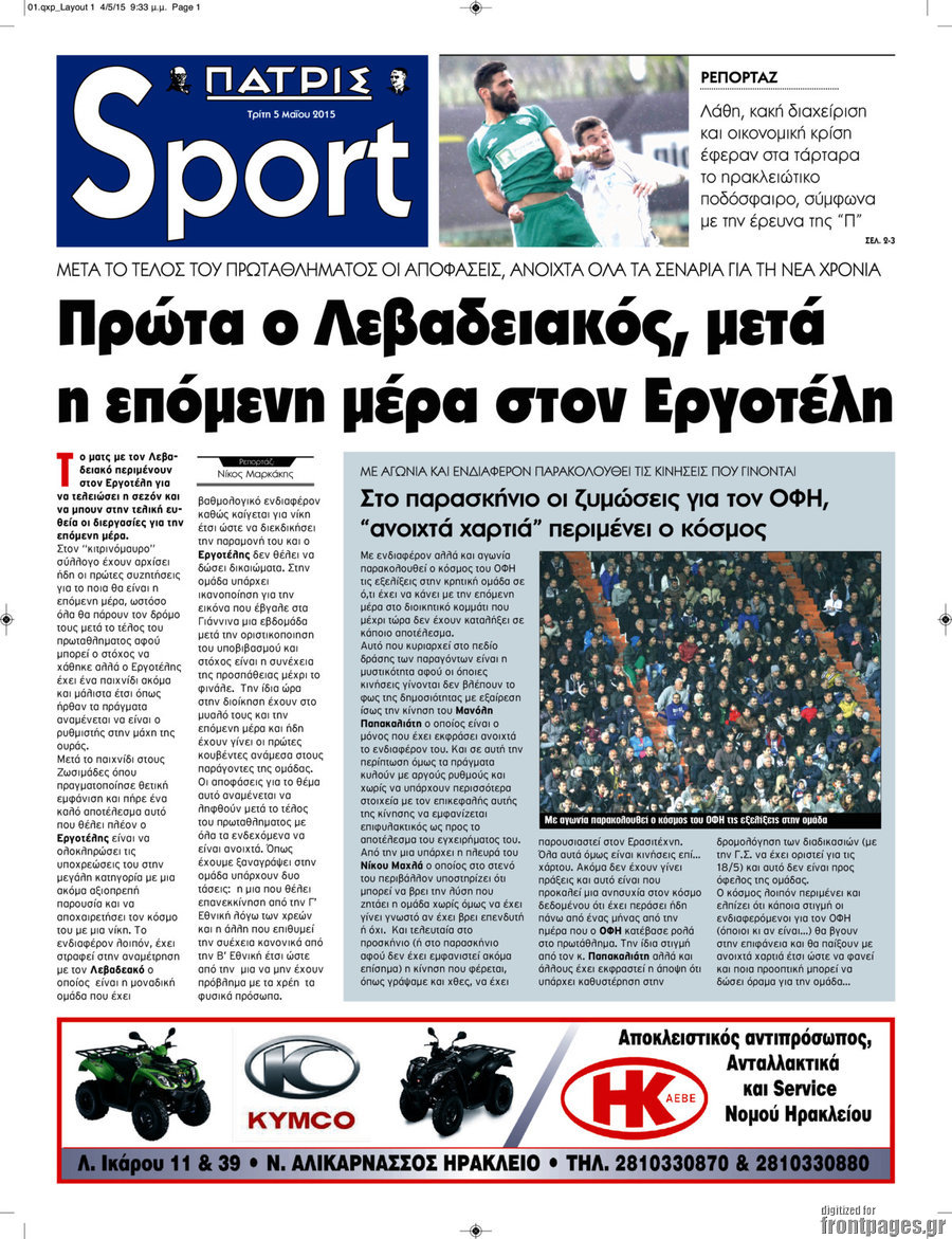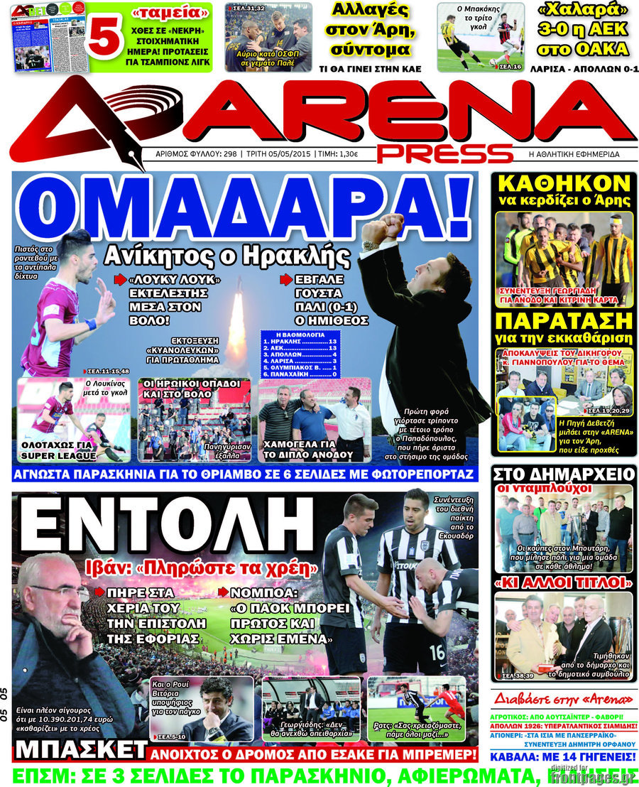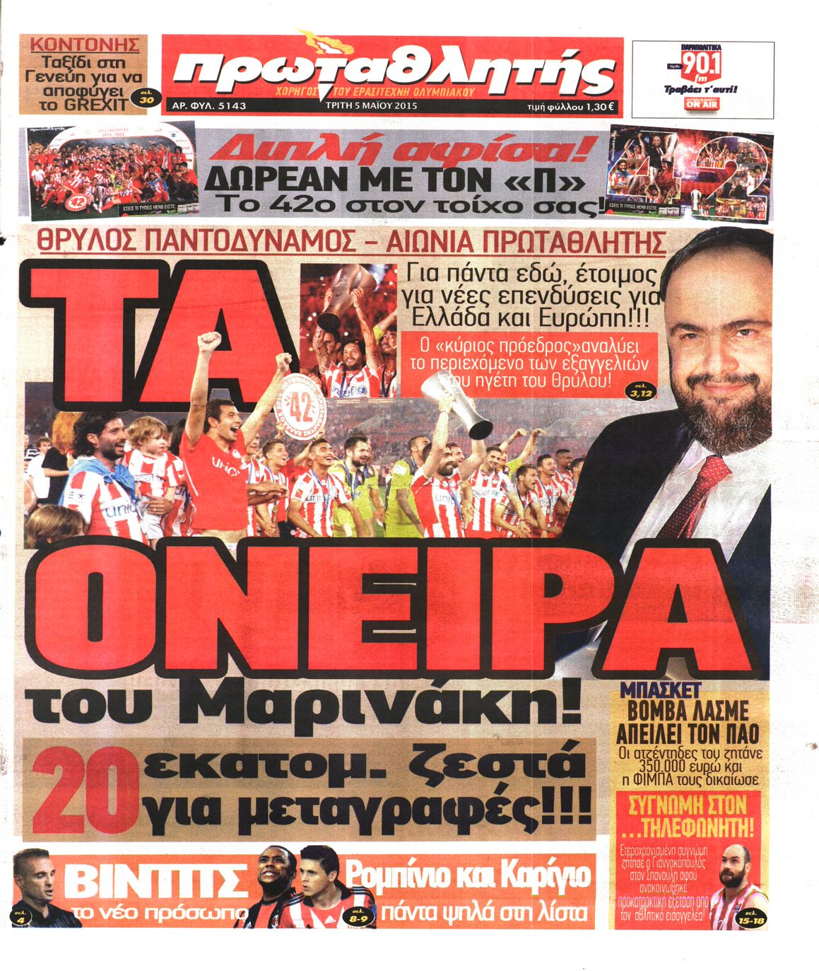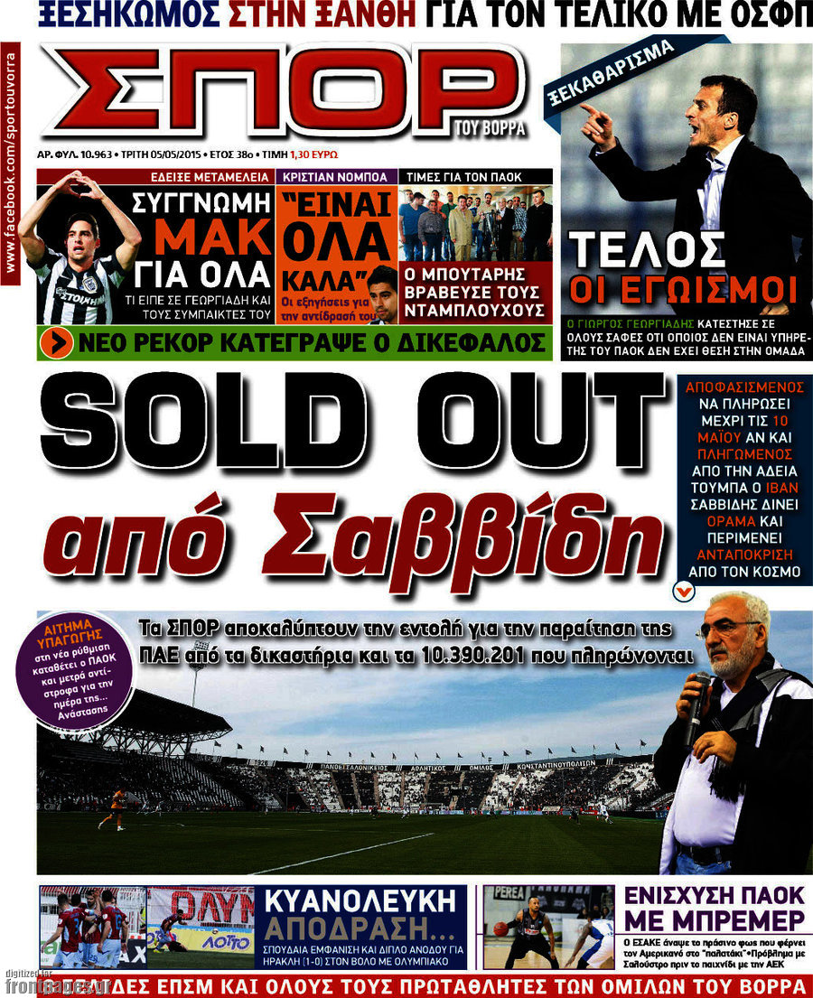 Οι αθλητικές εφημερίδες 5/5/2015 Enikos Newsroom 07:09, Τρίτη 05 Μαΐου 2015 Media Διαβάστε τα σημερινά πρωτοσέλιδα των αθλητικών εφημερίδων: ΑΘΛΗΤΙΚΕΣ ΕΦΗΜΕΡΙΔΕΣ ΠΡΩΤΟΣΕΛΙΔΑ Μοιράσου το: σχολίασε κι εσύ (0 σχόλια) Ακολουθήστε το enikos.gr στο Google News και μάθετε πρώτοι όλες τις ειδήσεις Δείτε όλες τις τελευταίες ειδήσεις από την Ελλάδα και τον Κόσμο στο enikos.gr Ειδήσεις Ροή Ειδήσεων 4 ώρες πριν Χριστούγεννα στα μπλόκα: Επιμένουν στις κινητοποιήσεις τους οι αγρότες – Ανοίγουν τα διόδια το Σαββατοκύριακο 4 ώρες πριν Ουκρανία: Η άνευ προηγουμένου επίθεση σε ρωσικό τάνκερ στη Μεσόγειο και το μήνυμα προς στον Πούτιν – Το «μακρύ χέρι» του Κιέβου 4 ώρες πριν Πούτιν: Τα μηνύματα σε Ευρώπη και ΝΑΤΟ από το μαραθώνιο «σόου» του – Η απαίτηση για «σεβασμό» και η ειρήνη «με τους όρους» της Μόσχας 5 ώρες πριν Τραμπ: Δεν αποκλείει την πιθανότητα ενός πολέμου στη Βενεζουέλα – «Ο Μαδούρο ξέρει καλύτερα από τον καθένα τι ακριβώς θέλω» 5 ώρες πριν Συνεχίζει να προκαλεί ο Μίτσκοσκι: «Για μένα το όνομα Μακεδονία είναι ιερό» 4 ώρες πριν Ανακαλύφθηκαν αρχαία χρυσά νομίσματα 2.200 ετών που απεικονίζουν τον θεό Απόλλωνα – Η άγνωστη σύνδεση με τον Φίλιππο Β΄ της Μακεδονίας 5 ώρες πριν Ύπνος: Μια κρυφή κατάσταση του εγκεφάλου πριν από τον ύπνο μπορεί να είναι το “κλειδί” για υψηλή ευφυΐα και δημιουργικότητα 6 ώρες πριν Αριθμολογία: Οι άνθρωποι που έχουν γεννηθεί αυτές τις 4 ημερομηνίες, συχνά παρεξηγούνται – «Η καλοσύνη τους κρύβει τεράστια δύναμη» 7 ώρες πριν Ξεχάστε το καθάρισμα το Σαββατοκύριακο: Ο «κανόνας των 20 λεπτών» που θα σας λύσει τα χέρια 8 λεπτά πριν Θεσσαλονίκη: Εξαφανίστηκε 13χρονος από χώρο φιλοξενίας ασυνόδευτων ανηλίκων στο Ωραιόκαστρο 19 λεπτά πριν Ντόναλντ Τραμπ: «Πολύ βαριά αντίποινα» στη Συρία – «Πλήττουμε πολύ δυνατά οχυρά του Ισλαμικού Κράτους» 33 λεπτά πριν Εξάρχεια: Ένταση με μολότοφ, χημικά και κρότου λάμψης 49 λεπτά πριν ΗΠΑ: Τραγωδία στην Αλαμπάμα – Σκότωσε την δημοσιογράφο σύζυγό του και αυτοκτόνησε μπροστά στον 3χρονο γιο τους 1 ώρα πριν Πρόταση γάμου στο ΣΕΦ κατά την διάρκεια του αγώνα Ολυμπιακός-Βιλερμπάν – Δείτε βίντεο ENIKOS NETWORK Το ΕΚΑΒ τιμήθηκε από την Ακαδημία Αθηνών για τα 40 χρόνια προσφοράς του Έχετε πραγματικά μεγάλη καρδιά; 10 χαρακτηριστικά όσων έχουν καλοσύνη Αναστολή μέτρων αναγκαστικής εκτέλεσης για κτηνοτρόφους που πλήττονται από την ευλογιά των αιγοπροβάτων Πλήρης επάρκεια προϊόντων στις λαϊκές της Αττικής, παρά τις αγροτικές κινητοποιήσεις – Τι απαντούν οι πωλητές Χαρτογραφώντας το «σημείο χωρίς επιστροφή»: Για πρώτη φορά αποκαλύπτεται με λεπτομέρεια το ακανθώδες όριο της ατμόσφαιρας τ... Η Google καταργεί τη λειτουργία «dark web report» – Πώς θα μπορούν οι χρήστες να διαγράφουν τα δεδομένα τους περισσότερα 22:42 , Παρασκευή 19 Δεκεμβρίου 2025 Γιώργος Γιαννόπουλος για “Το σόι σου”: “Είναι ευτυχία και ευλογία αυτή η σειρά” «Είναι ευτυχία και ευλογία η συγκυρία αυτής της σειράς», θα πει ο Γιώργος Γιαννόπουλος -ο αγαπ... 20:37 , Παρασκευή 19 Δεκεμβρίου 2025 Don’t Forget The Lyrics: Η Έλλη Κοκκίνου υποδέχεται 4 παίκτες που θα κάνουν τα πάντα για να μη χάσουν ούτε… μισή λέξη από τους στίχους Το «Don’t Forget The Lyrics» επιστρέφει απόψε, Παρασκευή 19 Δεκεμβρίου, στις 21:00 με νέο επει... 19:31 , Παρασκευή 19 Δεκεμβρίου 2025 GNTM: Απόψε ο μεγάλος τελικός για τους 4 φιναλίστ Έπειτα από μήνες γεμάτους μόδα, δημιουργία και έντονες αναμετρήσεις, το GNTM 2025 κορυφώνεται,... 18:11 , Παρασκευή 19 Δεκεμβρίου 2025 Το σόι σο