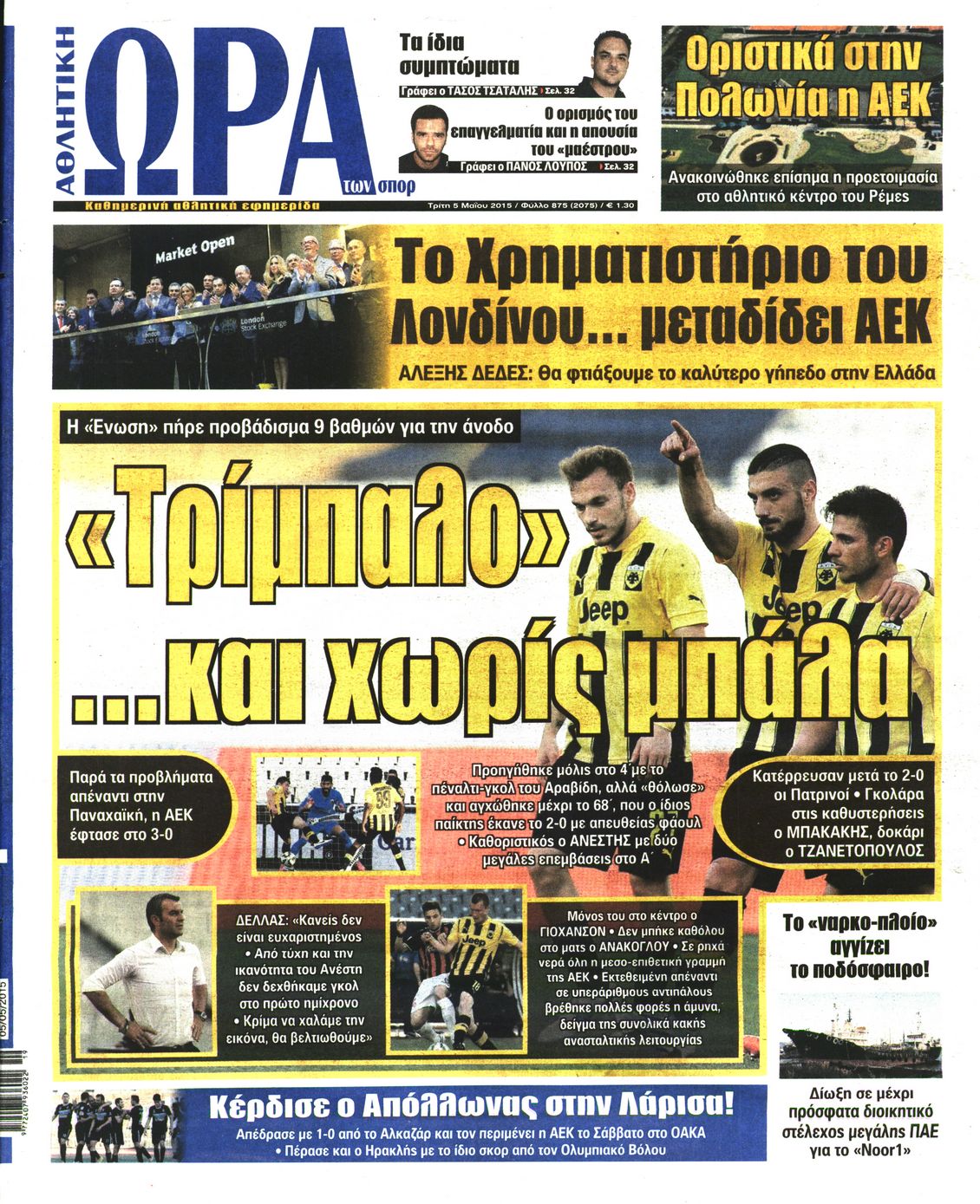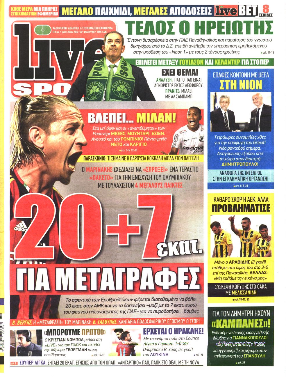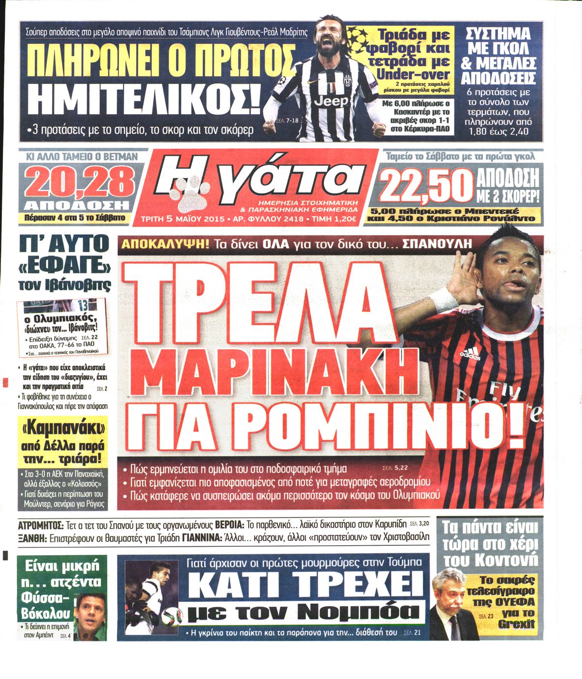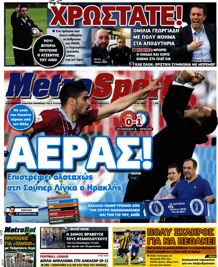 Οι αθλητικές εφημερίδες 5/5/2015 Enikos Newsroom 07:09, Τρίτη 05 Μαΐου 2015 Media Διαβάστε τα σημερινά πρωτοσέλιδα των αθλητικών εφημερίδων: ΑΘΛΗΤΙΚΕΣ ΕΦΗΜΕΡΙΔΕΣ ΠΡΩΤΟΣΕΛΙΔΑ Μοιράσου το: σχολίασε κι εσύ (0 σχόλια) Ακολουθήστε το enikos.gr στο Google News και μάθετε πρώτοι όλες τις ειδήσεις Δείτε όλες τις τελευταίες ειδήσεις από την Ελλάδα και τον Κόσμο στο enikos.gr Ειδήσεις Ροή Ειδήσεων 4 ώρες πριν Χριστούγεννα στα μπλόκα: Επιμένουν στις κινητοποιήσεις τους οι αγρότες – Ανοίγουν τα διόδια το Σαββατοκύριακο 4 ώρες πριν Ουκρανία: Η άνευ προηγουμένου επίθεση σε ρωσικό τάνκερ στη Μεσόγειο και το μήνυμα προς στον Πούτιν – Το «μακρύ χέρι» του Κιέβου 4 ώρες πριν Πούτιν: Τα μηνύματα σε Ευρώπη και ΝΑΤΟ από το μαραθώνιο «σόου» του – Η απαίτηση για «σεβασμό» και η ειρήνη «με τους όρους» της Μόσχας 5 ώρες πριν Τραμπ: Δεν αποκλείει την πιθανότητα ενός πολέμου στη Βενεζουέλα – «Ο Μαδούρο ξέρει καλύτερα από τον καθένα τι ακριβώς θέλω» 5 ώρες πριν Συνεχίζει να προκαλεί ο Μίτσκοσκι: «Για μένα το όνομα Μακεδονία είναι ιερό» 4 ώρες πριν Ανακαλύφθηκαν αρχαία χρυσά νομίσματα 2.200 ετών που απεικονίζουν τον θεό Απόλλωνα – Η άγνωστη σύνδεση με τον Φίλιππο Β΄ της Μακεδονίας 5 ώρες πριν Ύπνος: Μια κρυφή κατάσταση του εγκεφάλου πριν από τον ύπνο μπορεί να είναι το “κλειδί” για υψηλή ευφυΐα και δημιουργικότητα 6 ώρες πριν Αριθμολογία: Οι άνθρωποι που έχουν γεννηθεί αυτές τις 4 ημερομηνίες, συχνά παρεξηγούνται – «Η καλοσύνη τους κρύβει τεράστια δύναμη» 7 ώρες πριν Ξεχάστε το καθάρισμα το Σαββατοκύριακο: Ο «κανόνας των 20 λεπτών» που θα σας λύσει τα χέρια 8 λεπτά πριν Θεσσαλονίκη: Εξαφανίστηκε 13χρονος από χώρο φιλοξενίας ασυνόδευτων ανηλίκων στο Ωραιόκαστρο 19 λεπτά πριν Ντόναλντ Τραμπ: «Πολύ βαριά αντίποινα» στη Συρία – «Πλήττουμε πολύ δυνατά οχυρά του Ισλαμικού Κράτους» 33 λεπτά πριν Εξάρχεια: Ένταση με μολότοφ, χημικά και κρότου λάμψης 49 λεπτά πριν ΗΠΑ: Τραγωδία στην Αλαμπάμα – Σκότωσε την δημοσιογράφο σύζυγό του και αυτοκτόνησε μπροστά στον 3χρονο γιο τους 1 ώρα πριν Πρόταση γάμου στο ΣΕΦ κατά την διάρκεια του αγώνα Ολυμπιακός-Βιλερμπάν – Δείτε βίντεο ENIKOS NETWORK Το ΕΚΑΒ τιμήθηκε από την Ακαδημία Αθηνών για τα 40 χρόνια προσφοράς του Έχετε πραγματικά μεγάλη καρδιά; 10 χαρακτηριστικά όσων έχουν καλοσύνη Αναστολή μέτρων αναγκαστικής εκτέλεσης για κτηνοτρόφους που πλήττονται από την ευλογιά των αιγοπροβάτων Πλήρης επάρκεια προϊόντων στις λαϊκές της Αττικής, παρά τις αγροτικές κινητοποιήσεις – Τι απαντούν οι πωλητές Χαρτογραφώντας το «σημείο χωρίς επιστροφή»: Για πρώτη φορά αποκαλύπτεται με λεπτομέρεια το ακανθώδες όριο της ατμόσφαιρας τ... Η Google καταργεί τη λειτουργία «dark web report» – Πώς θα μπορούν οι χρήστες να διαγράφουν τα δεδομένα τους περισσότερα 22:42 , Παρασκευή 19 Δεκεμβρίου 2025 Γιώργος Γιαννόπουλος για “Το σόι σου”: “Είναι ευτυχία και ευλογία αυτή η σειρά” «Είναι ευτυχία και ευλογία η συγκυρία αυτής της σειράς», θα πει ο Γιώργος Γιαννόπουλος -ο αγαπ... 20:37 , Παρασκευή 19 Δεκεμβρίου 2025 Don’t Forget The Lyrics: Η Έλλη Κοκκίνου υποδέχεται 4 παίκτες που θα κάνουν τα πάντα για να μη χάσουν ούτε… μισή λέξη από τους στίχους Το «Don’t Forget The Lyrics» επιστρέφει απόψε, Παρασκευή 19 Δεκεμβρίου, στις 21:00 με νέο επει... 19:31 , Παρασκευή 19 Δεκεμβρίου 2025 GNTM: Απόψε ο μεγάλος τελικός για τους 4 φιναλίστ Έπειτα από μήνες γεμάτους μόδα, δημιουργία και έντονες αναμετρήσεις, το GNTM 2025 κορυφώνεται,... 18:11 , Παρασκευή 19 Δεκεμβρίου 2025 Το σόι σο