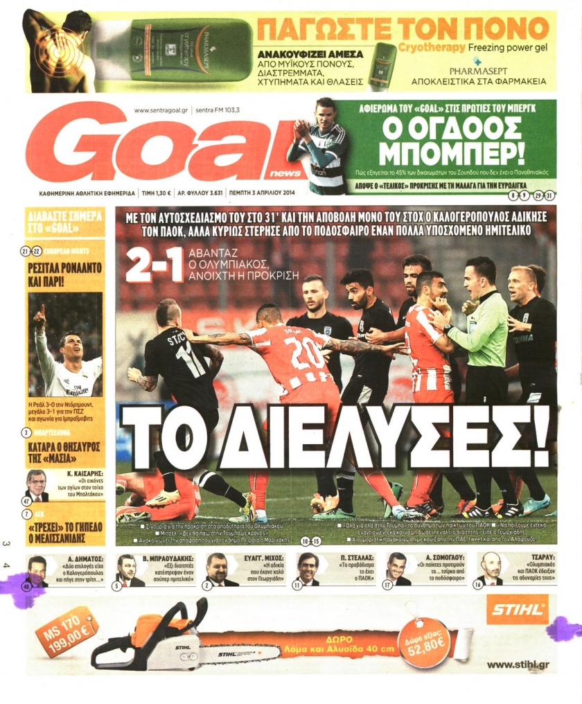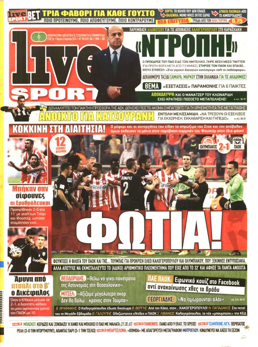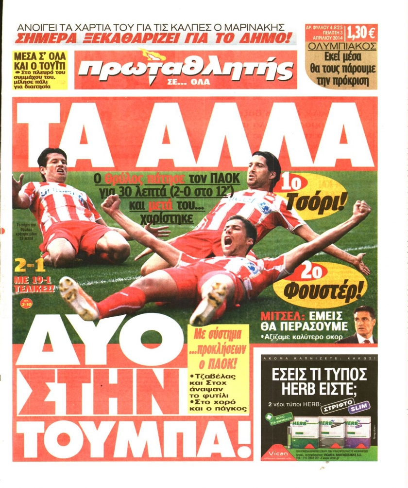 Οι αθλητικές εφημερίδες Enikos Newsroom 08:36, Πέμπτη 03 Απριλίου 2014 Media Οι αθλητικές εφημερίδες Διαβάστε τα πρωτοσέλιδα των αθλητικών εφημερίδων: ΑΘΛΗΤΙΚΕΣ ΕΦΗΜΕΡΙΔΕΣ ΕΦΗΜΕΡΙΔΕΣ ΠΡΩΤΟΣΕΛΙΔΑ Μοιράσου το: σχολίασε κι εσύ (0 σχόλια) Ακολουθήστε το enikos.gr στο Google News και μάθετε πρώτοι όλες τις ειδήσεις Δείτε όλες τις τελευταίες ειδήσεις από την Ελλάδα και τον Κόσμο στο enikos.gr Ειδήσεις Ροή Ειδήσεων 2 ώρες πριν Αυξάνουν την πίεση προς την κυβέρνηση οι αγρότες: Κλείνουν παρακαμπτήριους και ανοίγουν διόδια – Τι θα γίνει τις γιορτές 22 λεπτά πριν ΟΠΕΚΕΠΕ: Προφυλακιστέος ο φερόμενος αρχηγός και ο λογιστής της εγκληματικής οργάνωσης 1 ώρα πριν Φοινικούντα: Το Σάββατο απολογείται ο 30χρονος γιος γνωστού επιχειρηματία της Πλάκας που παραδόθηκε – Όσα είπε στους αστυνομικούς και ο ρόλος του στο έγκλημα 1 ώρα πριν Μπορεί ο Μαδούρο να αντέξει τον αποκλεισμό του Τραμπ; Τι θα χρειαστεί η Ουάσινγκτον για να τον ανατρέψει 2 ώρες πριν Πρίγκιπας Ουίλιαμ – Κέιτ: Η νέα οικογενειακή φωτογραφία για τις Χριστουγεννιάτικες κάρτες του 2025 2 ώρες πριν Ύπνος: Η απλή βραδινή ρουτίνα για να προστατεύσετε τα μαλλιά σας από το κρύο κατά τη διάρκεια του χειμώνα 3 ώρες πριν Manifesting: Πώς να συναντήσετε τον σύντροφο της ζωής σας, ανάλογα με τον μήνα γέννησής σας 2 ημέρες πριν 20 χρόνια τα Χριστούγεννα ξεκινούν στα Public με μεγάλη ποικιλία σε δώρα! 1 ώρα πριν Αρχαιολόγοι ανακάλυψαν ρωμαϊκά τεχνουργήματα από μια πόλη που δεν υπήρξε ποτέ – Τα τρία εντυπωσιακά κτίρια και ο αμφορέας με τις… σαρδέλες 2 λεπτά πριν ΑΕΚ – Κραϊόβα 3-2: Επική ανατροπή και πρόκριση στους «16» του Conference League η Ένωση 22 λεπτά πριν ΟΠΕΚΕΠΕ: Προφυλακιστέος ο φερόμενος αρχηγός και ο λογιστής της εγκληματικής οργάνωσης 33 λεπτά πριν Αθηνά Μαξίμου: Η τρυφερή ανάρτηση για τα γενέθλια του Αιμίλιου Χειλάκη – «Είναι η εκλεκτική συγγένειά μου, η επιλογή και η ευθύνη μου» 48 λεπτά πριν Παναθηναϊκός – Χάποελ Τελ Αβίβ 93-82: Με… φόρα από την Κωνσταντινούπολη 1 ώρα πριν Μπορεί ο Μαδούρο να αντέξει τον αποκλεισμό του Τραμπ; Τι θα χρειαστεί η Ουάσινγκτον για να τον ανατρέψει ENIKOS NETWORK Σε περίοδο αυξημένης δραστηριότητας η γρίπη στην Ελλάδα-Μέτρα προστασίας από τον ΕΟΔΥ Σκέφτεστε συνέχεια συζητήσεις που έχετε κάνει; Τι σημαίνει αυτό, σύμφωνα με ειδικό Στεγαστικό: Τι λέει η ΠΟΜΙΔΑ για τα νέα μέτρα που ανακοίνωσε ο Κυριάκος Μητσοτάκης Λαγκάρντ: Αισιόδοξη για την ανάπτυξη της Ευρωζώνης, αβέβαιη για τον πληθωρισμό Χαρτογραφώντας το «σημείο χωρίς επιστροφή»: Για πρώτη φορά αποκαλύπτεται με λεπτομέρεια το ακανθώδες όριο της ατμόσφαιρας τ... Η Google καταργεί τη λειτουργία «dark web report» – Πώς θα μπορούν οι χρήστες να διαγράφουν τα δεδομένα τους περισσότερα 17:45 , Πέμπτη 18 Δεκεμβρίου 2025 ROUK ZOUK: Εορταστικό επεισόδιο με καλεσμένους τους πρωταγωνιστές του «Γιατί ρε πατέρα» Το Σάββατο 20 Δεκεμβρίου στις 21:00, η Ζέτα Μακρυπούλια υποδέχεται εκλεκτούς ηθοποιούς που όλο... 17:20 , Πέμπτη 18 Δεκεμβρίου 2025 Άγιος έρωτας: Η Χριστίνα εξομολογείται στον πατέρα Νικόλαο, απόψε στις 21:00 στον Alpha Η Νότα αποφασίζει να εκδικηθεί τον Πέτρο και τον Στέφανο, για χάρη του Λούη, όμως τα πράγματα ... 16:50 , Πέμπτη 18 Δεκεμβρίου 2025 Να μ’ αγαπάς: Ζωή και Φωτεινή συμφιλιώνονται ως μάνα με κόρη, απόψε στις 20:00 Η ταυτότητα του Άγγελου αποκαλύπτεται στο νέο επεισόδιο της σειράς “Να μ’ αγαπάς... 15:52 , Πέμπτη 18 Δεκεμβρίου 2025 Το Σπίτι Δίπλα Στο Ποτάμι: Το καθηλωτικό τελευταίο επεισόδιο για το 2025 απόψε στις 22:30 Καθηλ