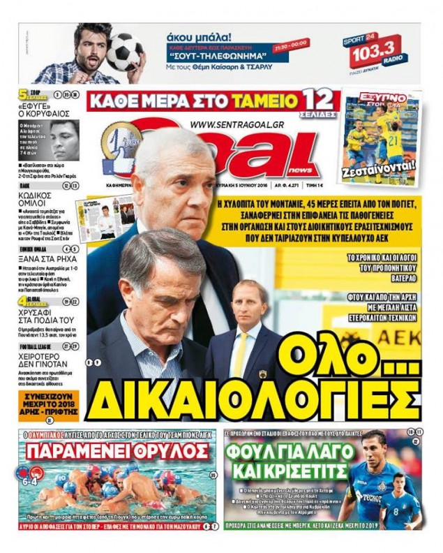 Οι αθλητικές εφημερίδες 5/6/2016 Enikos Newsroom 04:56, Κυριακή 05 Ιουνίου 2016 Media Διαβάστε τα σημερινά πρωτοσέλιδα των αθλητικών εφημερίδων: ΑΘΛΗΤΙΚΕΣ ΕΦΗΜΕΡΙΔΕΣ ΠΡΩΤΟΣΕΛΙΔΑ Μοιράσου το: σχολίασε κι εσύ (0 σχόλια) Ακολουθήστε το enikos.gr στο Google News και μάθετε πρώτοι όλες τις ειδήσεις Δείτε όλες τις τελευταίες ειδήσεις από την Ελλάδα και τον Κόσμο στο enikos.gr Ειδήσεις Ροή Ειδήσεων 3 ώρες πριν Αυξάνουν την πίεση προς την κυβέρνηση οι αγρότες: Κλείνουν παρακαμπτήριους και ανοίγουν διόδια – Τι θα γίνει τις γιορτές 1 ώρα πριν ΟΠΕΚΕΠΕ: Προφυλακιστέος ο φερόμενος αρχηγός και ο λογιστής της εγκληματικής οργάνωσης 2 ώρες πριν Φοινικούντα: Το Σάββατο απολογείται ο 30χρονος γιος γνωστού επιχειρηματία της Πλάκας που παραδόθηκε – Όσα είπε στους αστυνομικούς και ο ρόλος του στο έγκλημα 2 ώρες πριν Μπορεί ο Μαδούρο να αντέξει τον αποκλεισμό του Τραμπ; Τι θα χρειαστεί η Ουάσινγκτον για να τον ανατρέψει 4 ώρες πριν Πρίγκιπας Ουίλιαμ – Κέιτ: Η νέα οικογενειακή φωτογραφία για τις Χριστουγεννιάτικες κάρτες του 2025 3 ώρες πριν Ύπνος: Η απλή βραδινή ρουτίνα για να προστατεύσετε τα μαλλιά σας από το κρύο κατά τη διάρκεια του χειμώνα 4 ώρες πριν Manifesting: Πώς να συναντήσετε τον σύντροφο της ζωής σας, ανάλογα με τον μήνα γέννησής σας 2 ημέρες πριν 20 χρόνια τα Χριστούγεννα ξεκινούν στα Public με μεγάλη ποικιλία σε δώρα! 2 ώρες πριν Αρχαιολόγοι ανακάλυψαν ρωμαϊκά τεχνουργήματα από μια πόλη που δεν υπήρξε ποτέ – Τα τρία εντυπωσιακά κτίρια και ο αμφορέας με τις… σαρδέλες 2 λεπτά πριν Νέος πρέσβης της Μεγάλης Βρετανίας στις ΗΠΑ ο Κρίστιαν Τέρνερ 6 λεπτά πριν Conference League: Με Νόα, Ντρίτα, Άλκμααρ ή Τσέλιε στους «16» η ΑΕΚ 14 λεπτά πριν Conference League: Απευθείας στους «16» η ΑΕΚ Λάρνακας και η Ρακόβ των Σβάρνα και Κωνσταντόπουλου – Τα αποτελέσματα και η βαθμολογία, 3η η ΑΕΚ 24 λεπτά πριν Σε ομάδες που συνδέονται με το ρωσικό κράτος αποδίδει η Δανία δύο κυβερνοεπιθέσεις που δέχθηκε 39 λεπτά πριν Βαθμολογία UEFA: Η Πολωνία προσπέρασε την Ελλάδα ENIKOS NETWORK Σε περίοδο αυξημένης δραστηριότητας η γρίπη στην Ελλάδα-Μέτρα προστασίας από τον ΕΟΔΥ Σκέφτεστε συνέχεια συζητήσεις που έχετε κάνει; Τι σημαίνει αυτό, σύμφωνα με ειδικό Στεγαστικό: Τι λέει η ΠΟΜΙΔΑ για τα νέα μέτρα που ανακοίνωσε ο Κυριάκος Μητσοτάκης Λαγκάρντ: Αισιόδοξη για την ανάπτυξη της Ευρωζώνης, αβέβαιη για τον πληθωρισμό Χαρτογραφώντας το «σημείο χωρίς επιστροφή»: Για πρώτη φορά αποκαλύπτεται με λεπτομέρεια το ακανθώδες όριο της ατμόσφαιρας τ... Η Google καταργεί τη λειτουργία «dark web report» – Πώς θα μπορούν οι χρήστες να διαγράφουν τα δεδομένα τους περισσότερα 17:45 , Πέμπτη 18 Δεκεμβρίου 2025 ROUK ZOUK: Εορταστικό επεισόδιο με καλεσμένους τους πρωταγωνιστές του «Γιατί ρε πατέρα» Το Σάββατο 20 Δεκεμβρίου στις 21:00, η Ζέτα Μακρυπούλια υποδέχεται εκλεκτούς ηθοποιούς που όλο... 17:20 , Πέμπτη 18 Δεκεμβρίου 2025 Άγιος έρωτας: Η Χριστίνα εξομολογείται στον πατέρα Νικόλαο, απόψε στις 21:00 στον Alpha Η Νότα αποφασίζει να εκδικηθεί τον Πέτρο και τον Στέφανο, για χάρη του Λούη, όμως τα πράγματα ... 16:50 , Πέμπτη 18 Δεκεμβρίου 2025 Να μ’ αγαπάς: Ζωή και Φωτεινή συμφιλιώνονται ως μάνα με κόρη, απόψε στις 20:00 Η ταυτότητα του Άγγελου αποκαλύπτεται στο νέο επεισόδιο της σειράς “Να μ’ αγαπάς... 15:52 , Πέμπτη 18 Δεκεμβρίου 2025 Το Σπίτι Δίπλα Στο Ποτάμι: Το καθηλωτικό τελευταίο επεισόδιο για το 2025 απόψε στις 22:30 Καθηλώνει το σημερινό επεισόδιο της σειράς “Το Σπίτι Δίπλα Στο Ποτάμι” που έρχεται... ΤΕΛΕΥΤΑΙΕΣ ΕΙΔΗΣ