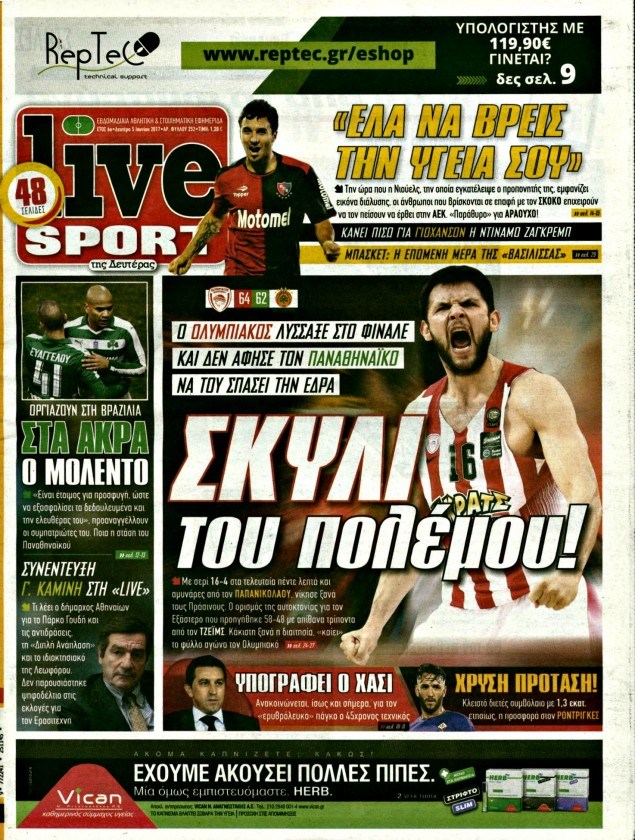Οι αθλητικές εφημερίδες 5/6/2017 Κώστας Τεό 06:46, Δευτέρα 05 Ιουνίου 2017 Media Διαβάστε τα σημερινά πρωτοσέλιδα των αθλητικών εφημερίδων: ΑΘΛΗΤΙΚΕΣ ΕΦΗΜΕΡΙΔΕΣ ΠΡΩΤΟΣΕΛΙΔΑ Μοιράσου το: σχολίασε κι εσύ (0 σχόλια) Ακολουθήστε το enikos.gr στο Google News και μάθετε πρώτοι όλες τις ειδήσεις Δείτε όλες τις τελευταίες ειδήσεις από την Ελλάδα και τον Κόσμο στο enikos.gr Ειδήσεις Ροή Ειδήσεων 1 ώρα πριν Ευρωπαϊκή Ένωση: Συμφωνία για δάνειο 90 δισ. ευρώ στην Ουκρανία τη διετία 2026-2027 6 ώρες πριν ΟΠΕΚΕΠΕ: Προφυλακιστέος ο φερόμενος αρχηγός και ο λογιστής της εγκληματικής οργάνωσης 7 ώρες πριν Αυξάνουν την πίεση προς την κυβέρνηση οι αγρότες: Κλείνουν παρακαμπτήριους και ανοίγουν διόδια – Τι θα γίνει τις γιορτές 7 ώρες πριν Φοινικούντα: Το Σάββατο απολογείται ο 30χρονος γιος γνωστού επιχειρηματία της Πλάκας που παραδόθηκε – Όσα είπε στους αστυνομικούς και ο ρόλος του στο έγκλημα 5 ώρες πριν ΑΕΚ – Κραϊόβα 3-2: Επική ανατροπή και πρόκριση στους «16» του Conference League η Ένωση 6 ώρες πριν Αρχαιολόγοι ανακάλυψαν ρωμαϊκά τεχνουργήματα από μια πόλη που δεν υπήρξε ποτέ – Τα τρία εντυπωσιακά κτίρια και ο αμφορέας με τις… σαρδέλες 7 ώρες πριν Ύπνος: Η απλή βραδινή ρουτίνα για να προστατεύσετε τα μαλλιά σας από το κρύο κατά τη διάρκεια του χειμώνα 8 ώρες πριν Manifesting: Πώς να συναντήσετε τον σύντροφο της ζωής σας, ανάλογα με τον μήνα γέννησής σας 2 ημέρες πριν 20 χρόνια τα Χριστούγεννα ξεκινούν στα Public με μεγάλη ποικιλία σε δώρα! 4 λεπτά πριν Εφημερεύοντα φαρμακεία σε Αθήνα και Θεσσαλονίκη (19/12) 11 λεπτά πριν Η TikTok στις ΗΠΑ πωλείται σε Oracle, Silver Lake και MGX – Οι λεπτομέρειες του «deal» 19 λεπτά πριν Αλεξάντερ Λουκασένκο: Η Λευκορωσία βρίσκεται κοντά στην αποκατάσταση των σχέσεών της με τις ΗΠΑ 34 λεπτά πριν Αυστραλία: Κήρυξε την Κυριακή (21/12) ημέρα εθνικού πένθους για τη φονική επίθεση στην παραλία Μπόνταϊ 44 λεπτά πριν Ρόδος: Δάσκαλος καράτε καταδικάστηκε για ασέλγεια σε ανήλικες αθλήτριες – Μαρτυρίες για αγγίγματα σε ευαίσθητα σημεία ENIKOS NETWORK Σε περίοδο αυξημένης δραστηριότητας η γρίπη στην Ελλάδα-Μέτρα προστασίας από τον ΕΟΔΥ Σκέφτεστε συνέχεια συζητήσεις που έχετε κάνει; Τι σημαίνει αυτό, σύμφωνα με ειδικό Στεγαστικό: Τι λέει η ΠΟΜΙΔΑ για τα νέα μέτρα που ανακοίνωσε ο Κυριάκος Μητσοτάκης Λαγκάρντ: Αισιόδοξη για την ανάπτυξη της Ευρωζώνης, αβέβαιη για τον πληθωρισμό Χαρτογραφώντας το «σημείο χωρίς επιστροφή»: Για πρώτη φορά αποκαλύπτεται με λεπτομέρεια το ακανθώδες όριο της ατμόσφαιρας τ... Η Google καταργεί τη λειτουργία «dark web report» – Πώς θα μπορούν οι χρήστες να διαγράφουν τα δεδομένα τους περισσότερα 02:50 , Παρασκευή 19 Δεκεμβρίου 2025 GNTM: «Κλείδωσαν» οι τέσσερις φιναλίστ – Μεγάλη ανατροπή στις τελευταίες αποχωρήσεις Για προτελευταία φορά εμφανίστηκαν στο πλατό του GNTM οι φιναλίστ του φετινού κύκλου, το βράδυ... 17:45 , Πέμπτη 18 Δεκεμβρίου 2025 ROUK ZOUK: Εορταστικό επεισόδιο με καλεσμένους τους πρωταγωνιστές του «Γιατί ρε πατέρα» Το Σάββατο 20 Δεκεμβρίου στις 21:00, η Ζέτα Μακρυπούλια υποδέχεται εκλεκτούς ηθοποιούς που όλο... 17:20 , Πέμπτη 18 Δεκεμβρίου 2025 Άγιος έρωτας: Η Χριστίνα εξομολογείται στον πατέρα Νικόλαο, απόψε στις 21:00 στον Alpha Η Νότα αποφασίζει να εκδικηθεί τον Πέτρο και τον Στέφανο, για χάρη του Λούη, όμως τα πράγματα ... 16:50 , Πέμπτη 18 Δεκεμβρίου 2025 Να μ’ αγαπάς: Ζωή και Φωτεινή συμφιλιώνονται ως μάνα με κόρη, απόψε στις 20:00 Η ταυτότητα του Άγγελου αποκαλύπτεται στο νέο επεισόδιο της σειράς “Να μ’ αγαπάς... ΤΕΛΕ