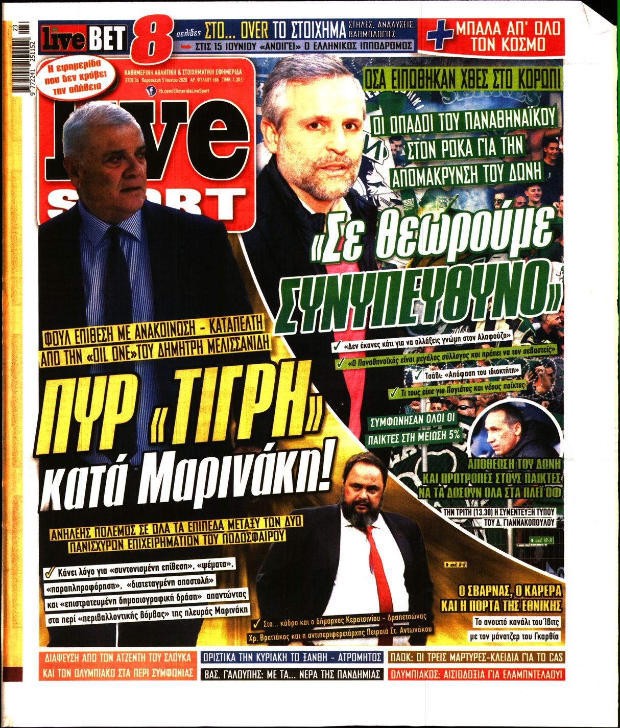 Οι αθλητικές εφημερίδες 5/6/2020 Διονύσης Νίκκας 06:42, Παρασκευή 05 Ιουνίου 2020 Media Διαβάστε τα πρωτοσέλιδα των αθλητικών εφημερίδων… ΑΘΛΗΤΙΚΕΣ ΕΦΗΜΕΡΙΔΕΣ Μοιράσου το: σχολίασε κι εσύ (0 σχόλια) Ακολουθήστε το enikos.gr στο Google News και μάθετε πρώτοι όλες τις ειδήσεις Δείτε όλες τις τελευταίες ειδήσεις από την Ελλάδα και τον Κόσμο στο enikos.gr Ειδήσεις Ροή Ειδήσεων 2 ώρες πριν Καιρός: Ισχυρές βροχές και καταιγίδες ανήμερα των Χριστουγέννων σε αρκετές περιοχές της χώρας – Πού θα είναι έντονα τα φαινόμενα 2 ώρες πριν Αποσύρονται τα Ticonderoga: Οι ΗΠΑ σχεδιάζουν θωρηκτά – Τα πρώτα μετά τον Β’ Παγκόσμιο Πόλεμο – ΦΩΤΟ 4 ώρες πριν Θεσσαλονίκη: Ισχυρή έκρηξη σε υποκατάστημα τράπεζας στον Εύοσμο – «Νιώσαμε ότι έγινε σεισμός» ΦΩΤΟ και ΒΙΝΤΕΟ 5 ώρες πριν Τουρκία: Τα δραματικά λεπτά πριν από τη συντριβή του Falcon-50, το σήμα «PAN-PAN» και η Ελληνίδα αεροσυνοδός – Σε ουδέτερη χώρα το μαύρο κουτί 2 ώρες πριν ΔΥΠΑ: Έρχεται αύξηση στο «ειδικό» επίδομα στήριξης για εργαζόμενους που έχασαν τη δουλειά τους – Πώς θα διαμορφωθεί και ποιους θα αφορά 4 ώρες πριν Τα ζώδια σήμερα, Πέμπτη 25 Δεκεμβρίου: Λέοντες, η συναισθηματική σας ένταση μεγαλώνει 4 ώρες πριν Hangover: Η τροφή που πρέπει να τρώτε πάντα πριν από το ποτό για να το αποφύγετε, σύμφωνα με γιατρό 4 ώρες πριν Οπτική ψευδαίσθηση: Μόνο 1 στους 5 ανθρώπους θα βρει το ζευγάρι των χιονονιφάδων σε 15 δευτερόλεπτα 1 ώρα πριν Εκκλησία 1.500 ετών ανακαλύφθηκε σε μέρος που δεν περίμενε κανείς – «Ήταν τεράστια έκπληξη» 3 λεπτά πριν Χριστίνα Παππά: Η τρυφερή ανάρτηση για την εγγονή της – «Κάθε φορά που την κοιτάζω, λάμπει όλος ο κόσμος…» 11 λεπτά πριν Ρωσικά βομβαρδιστικά πραγματοποίησαν «προγραμματισμένη» πτήση βόρεια της Σκανδιναβίας 19 λεπτά πριν Κρήτη: Νέα άφιξη μεταναστών στο νότιο Ηράκλειο ανήμερα των Χριστουγέννων – Διασώθηκαν 40 άνθρωποι, ανάμεσά τους και ανήλικα 28 λεπτά πριν «Xρυσό» χριστουγεννιάτικο δώρο για υπερτυχερό – Τίναξε την μπάνκα στον αέρα και κέρδισε 1,8 δισ. δολάρια 29 λεπτά πριν Χάρης Βαρθακούρης: Η οικογενειακή φωτογραφία με τους τρεις αδελφούς του – «Επιτέλους όλοι μαζί» ENIKOS NETWORK «5 ιατρικά θαύματα που μας συγκλόνισαν τα Χριστούγεννα» – Γιατροί και νοσηλευτές μοιράζονται την εμπειρία τους Πώς να φάτε έξυπνα τα Χριστούγεννα χωρίς να παχύνετε – Συμβουλές από διατροφολόγο e-ΕΦΚΑ και ΔΥΠΑ: Έρχεται νέο μπαράζ πληρωμών ΔΥΠΑ: Έρχεται αύξηση στο «ειδικό» επίδομα στήριξης για εργαζόμενους που έχασαν τη δουλειά τους – Πώς θα διαμορφωθεί και ποι... Ο Google Assistant θα παραμείνει λίγο περισσότερο για ορισμένους χρήστες Android Τεστ προσωπικότητας: Το βάζο που θα επιλέξετε αποκαλύπτει πώς λύνετε προβλήματα στη ζωή σας περισσότερα 07:05 , Πέμπτη 25 Δεκεμβρίου 2025 Την Κυριακή με τη Realnews: Δωροεπιταγή 10€ Την Κυριακή με τη Realnews: Δωροεπιταγή 10€ Δωροεπιταγή αξίας 10€ για αγορές άνω των 60€ από τ... 20:30 , Τετάρτη 24 Δεκεμβρίου 2025 Rouk Zouk: Όλα θα δούμε στο εορταστικό επεισόδιο απόψε Φέτος την Παραμονή των Χριστουγέννων η Ζέτα Μακρυπούλια και μια… εκρηκτική παρέα από την νέα κ... 16:12 , Τετάρτη 24 Δεκεμβρίου 2025 ALPHA: Παραμονή Χριστουγέννων με τον Κωνσταντίνο Αργυρό Ο Alpha παρουσιάζει απόψε σε πρώτη τηλεοπτική μετάδοση τη συναρπαστική και sold out εμφάνιση ... 15:51 , Τετάρτη 24 Δεκεμβρίου 2025 ‘Αγιος Έρωτας: Ο σεισμός που έκοψε την ανάσα – Δείτε τις συγκλονιστικές σκηνές Με έναν συγκλονιστικό τρόπο έκλεισε χθες βράδυ το τελευταίο επεισόδιο του 2025 της σειράς R... ΤΕΛΕΥΤΑΙΕΣ ΕΙΔΗΣΕΙΣ