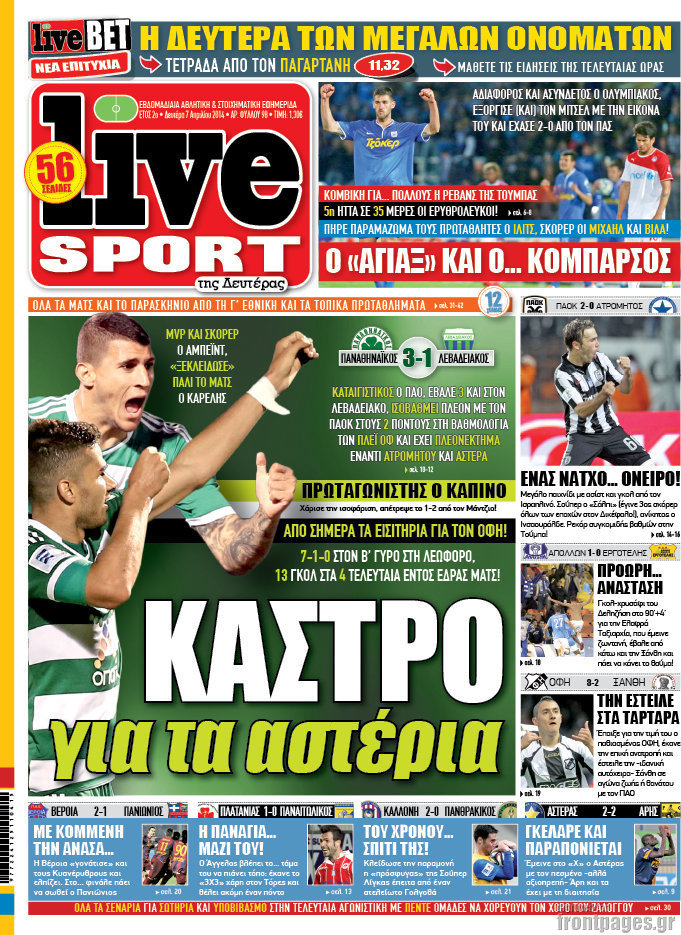 Οι αθλητικές εφημερίδες Enikos Newsroom 08:38, Δευτέρα 07 Απριλίου 2014 Media Οι αθλητικές εφημερίδες Διαβάστε τα πρωτοσέλιδα των αθλητικών εφημερίδων: ΑΘΛΗΤΙΚΕΣ ΕΦΗΜΕΡΙΔΕΣ ΕΦΗΜΕΡΙΔΕΣ ΠΡΩΤΟΣΕΛΙΔΑ Μοιράσου το: σχολίασε κι εσύ (0 σχόλια) Ακολουθήστε το enikos.gr στο Google News και μάθετε πρώτοι όλες τις ειδήσεις Δείτε όλες τις τελευταίες ειδήσεις από την Ελλάδα και τον Κόσμο στο enikos.gr Ειδήσεις Ροή Ειδήσεων 4 ώρες πριν Υπόθεση Έπσταϊν: Το Υπουργείο Δικαιοσύνης δημοσιοποίησε μια σειρά από εξαιρετικά επεξεργασμένα αρχεία – «Λείπουν τα πιο σημαντικά έγγραφα», λένε οι Δημοκρατικοί 57 λεπτά πριν Γιορτές με μπλόκα για τους αγρότες: Ανοίγουν διόδια και μοιράζουν προϊόντα στους ταξιδιώτες 1 ώρα πριν Εξαφάνιση 33χρονου γιατρού στην Κρήτη: «Άναψα τα φώτα, τρόμαξε και άρχισε να τρέχει στα χωράφια» – Η τελευταία διαδρομή και η μαρτυρία «κλειδί» 3 ώρες πριν Ο «χάρτης» με τις αυξήσεις και τις φοροελαφρύνσεις του 2026 – Ποιοι και πόσα κερδίζουν 1 ώρα πριν Τα αρχεία του Έπσταϊν αποκαλύπτουν φωτογραφία του έκπτωτου πρίγκιπα Άντριου – Είναι ξαπλωμένος στην αγκαλιά 5 γυναικών 1 ώρα πριν Μία νέα «χρυσή» περίοδος αρχίζει για 3 ζώδια από σήμερα – «Μία αναπάντεχη ευκαιρία οδηγεί στην επιτυχία» 6 ώρες πριν Αυγά: Πόσα μπορείτε να τρώτε την ημέρα με ασφάλεια για μέγιστη πρόσληψη πρωτεΐνης 3 ώρες πριν Αρχαιολόγοι ανακάλυψαν σε χωράφι απεικόνιση 600 ετών ενός Αγίου – Τα στοιχεία που δείχνουν ότι μαρτύρησε 2 ώρες πριν Αγχώνεται για το χριστουγεννιάτικο δώρο που πήρε στην πλούσια σύντροφό του – «Φοβάμαι πως θα το βρει φθηνιάρικο, φοράει βραχιόλια Cartier» 6 λεπτά πριν Τραγωδία στην άσφαλτο στα Χανιά: Νεκρός 37χρονος οδηγός ΙΧ – Τον βρήκαν ώρες μετά το τροχαίο 14 λεπτά πριν Τα Labubu «μετακομίζουν» στο Χόλιγουντ: Η Sony Pictures ετοιμάζει live-action ταινία με τον σκηνοθέτη του «Wonka» 22 λεπτά πριν Νέες ταυτότητες: Μεγάλη αναμονή για ραντεβού στην Αττική – Τέλος τα ταξίδια εκτός Ελλάδος από τον Αύγουστο για όσους δεν έχουν αλλάξει 30 λεπτά πριν Οι 7 φράσεις που δεν λένε ποτέ οι συναισθηματικά έξυπνοι άνθρωποι κατά τη διάρκεια ενός καβγά 33 λεπτά πριν Τηλεθέαση (19/12): Ανατροπές και πρωτιές στην πρωινή ζώνη ENIKOS NETWORK Είστε μόνιμα απρόσεκτοι; 3 σημάδια που δείχνουν ότι μπορεί να είναι σύμπτωμα πάθησης Πόσα κιλά παίρνουμε πραγματικά τα Χριστούγεννα, σύμφωνα με την επιστήμη – Πώς να το αποτρέψουμε; e-ΕΦΚΑ και ΔΥΠΑ: Έρχονται νέες πληρωμές έως τις 24 Δεκεμβρίου – Ποιοι πάνε ταμείο Επίδομα παιδιού: Τι αλλάζει από το 2026 – Το όφελος από τις φορολογικές ελαφρύνσεις Χαρτογραφώντας το «σημείο χωρίς επιστροφή»: Για πρώτη φορά αποκαλύπτεται με λεπτομέρεια το ακανθώδες όριο της ατμόσφαιρας τ... Η Google καταργεί τη λειτουργία «dark web report» – Πώς θα μπορούν οι χρήστες να διαγράφουν τα δεδομένα τους περισσότερα 09:30 , Σάββατο 20 Δεκεμβρίου 2025 «Porto Leone: Στη γειτονιά με τα κόκκινα φανάρια» – Ο Χρόνης αποκαλύπτει στην Αλεξάνδρα το μυστικό για το παιδί της Λένας Η μεγάλη δραματική σειρά του Apha «Porto Leone: Στη γειτονιά με τα κόκκινα φανάρια» μας μεταφέ... 08:14 , Σάββατο 20 Δεκεμβρίου 2025 Τρομεροί γονείς: Η Μαρία Καβογιάννη εισβάλλει στο σπίτι της οικογένειας Στεφανίδη Όσα θα δούμε στο νέο διπλό επεισόδιο της σειράς «Τρομεροί γονείς», σήμερα Σάββατο 20 Δεκεμβρίο... 05:48 , Σάββατο 20 Δεκεμβρίου 2025 Οι οικονομικές εφημερίδες 20/12/2025 Διαβάστε τα πρωτοσέλιδα από τις οικονομικές εφημερίδες, σήμερα 20/12/2025. 05:43 , Σάββατο 20 Δεκεμβρίου 2025 Οι αθλητικές εφημερίδες 20/12/2025 Διαβάσ