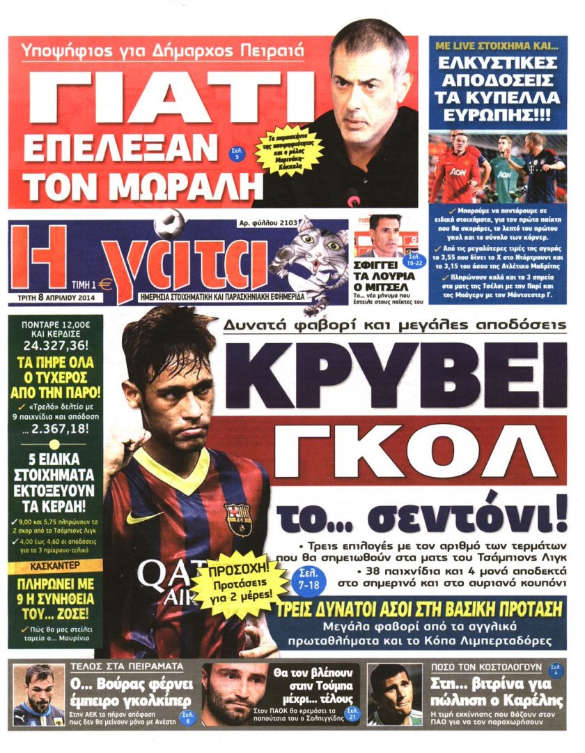 Οι αθλητικές εφημερίδες Enikos Newsroom 09:48, Τρίτη 08 Απριλίου 2014 Media Οι αθλητικές εφημερίδες Διαβάστε τα πρωτοσέλιδα των αθλητικών εφημερίδων: ΑΘΛΗΤΙΚΕΣ ΕΦΗΜΕΡΙΔΕΣ ΠΡΩΤΟΣΕΛΙΔΑ Μοιράσου το: σχολίασε κι εσύ (0 σχόλια) Ακολουθήστε το enikos.gr στο Google News και μάθετε πρώτοι όλες τις ειδήσεις Δείτε όλες τις τελευταίες ειδήσεις από την Ελλάδα και τον Κόσμο στο enikos.gr Ειδήσεις Ροή Ειδήσεων 2 ώρες πριν Αυξάνουν την πίεση προς την κυβέρνηση οι αγρότες: Κλείνουν παρακαμπτήριους και ανοίγουν διόδια – Τι θα γίνει τις γιορτές 47 λεπτά πριν ΟΠΕΚΕΠΕ: Προφυλακιστέος ο φερόμενος αρχηγός και ο λογιστής της εγκληματικής οργάνωσης 2 ώρες πριν Φοινικούντα: Το Σάββατο απολογείται ο 30χρονος γιος γνωστού επιχειρηματία της Πλάκας που παραδόθηκε – Όσα είπε στους αστυνομικούς και ο ρόλος του στο έγκλημα 1 ώρα πριν Μπορεί ο Μαδούρο να αντέξει τον αποκλεισμό του Τραμπ; Τι θα χρειαστεί η Ουάσινγκτον για να τον ανατρέψει 3 ώρες πριν Πρίγκιπας Ουίλιαμ – Κέιτ: Η νέα οικογενειακή φωτογραφία για τις Χριστουγεννιάτικες κάρτες του 2025 3 ώρες πριν Ύπνος: Η απλή βραδινή ρουτίνα για να προστατεύσετε τα μαλλιά σας από το κρύο κατά τη διάρκεια του χειμώνα 4 ώρες πριν Manifesting: Πώς να συναντήσετε τον σύντροφο της ζωής σας, ανάλογα με τον μήνα γέννησής σας 2 ημέρες πριν 20 χρόνια τα Χριστούγεννα ξεκινούν στα Public με μεγάλη ποικιλία σε δώρα! 2 ώρες πριν Αρχαιολόγοι ανακάλυψαν ρωμαϊκά τεχνουργήματα από μια πόλη που δεν υπήρξε ποτέ – Τα τρία εντυπωσιακά κτίρια και ο αμφορέας με τις… σαρδέλες 27 λεπτά πριν ΑΕΚ – Κραϊόβα 3-2: Επική ανατροπή και πρόκριση στους «16» του Conference League η Ένωση 47 λεπτά πριν ΟΠΕΚΕΠΕ: Προφυλακιστέος ο φερόμενος αρχηγός και ο λογιστής της εγκληματικής οργάνωσης 57 λεπτά πριν Αθηνά Μαξίμου: Η τρυφερή ανάρτηση για τα γενέθλια του Αιμίλιου Χειλάκη – «Είναι η εκλεκτική συγγένειά μου, η επιλογή και η ευθύνη μου» 1 ώρα πριν Παναθηναϊκός – Χάποελ Τελ Αβίβ 93-82: Με… φόρα από την Κωνσταντινούπολη 1 ώρα πριν Μπορεί ο Μαδούρο να αντέξει τον αποκλεισμό του Τραμπ; Τι θα χρειαστεί η Ουάσινγκτον για να τον ανατρέψει ENIKOS NETWORK Σε περίοδο αυξημένης δραστηριότητας η γρίπη στην Ελλάδα-Μέτρα προστασίας από τον ΕΟΔΥ Σκέφτεστε συνέχεια συζητήσεις που έχετε κάνει; Τι σημαίνει αυτό, σύμφωνα με ειδικό Στεγαστικό: Τι λέει η ΠΟΜΙΔΑ για τα νέα μέτρα που ανακοίνωσε ο Κυριάκος Μητσοτάκης Λαγκάρντ: Αισιόδοξη για την ανάπτυξη της Ευρωζώνης, αβέβαιη για τον πληθωρισμό Χαρτογραφώντας το «σημείο χωρίς επιστροφή»: Για πρώτη φορά αποκαλύπτεται με λεπτομέρεια το ακανθώδες όριο της ατμόσφαιρας τ... Η Google καταργεί τη λειτουργία «dark web report» – Πώς θα μπορούν οι χρήστες να διαγράφουν τα δεδομένα τους περισσότερα 17:45 , Πέμπτη 18 Δεκεμβρίου 2025 ROUK ZOUK: Εορταστικό επεισόδιο με καλεσμένους τους πρωταγωνιστές του «Γιατί ρε πατέρα» Το Σάββατο 20 Δεκεμβρίου στις 21:00, η Ζέτα Μακρυπούλια υποδέχεται εκλεκτούς ηθοποιούς που όλο... 17:20 , Πέμπτη 18 Δεκεμβρίου 2025 Άγιος έρωτας: Η Χριστίνα εξομολογείται στον πατέρα Νικόλαο, απόψε στις 21:00 στον Alpha Η Νότα αποφασίζει να εκδικηθεί τον Πέτρο και τον Στέφανο, για χάρη του Λούη, όμως τα πράγματα ... 16:50 , Πέμπτη 18 Δεκεμβρίου 2025 Να μ’ αγαπάς: Ζωή και Φωτεινή συμφιλιώνονται ως μάνα με κόρη, απόψε στις 20:00 Η ταυτότητα του Άγγελου αποκαλύπτεται στο νέο επεισόδιο της σειράς “Να μ’ αγαπάς... 15:52 , Πέμπτη 18 Δεκεμβρίου 2025 Το Σπίτι Δίπλα Στο Ποτάμι: Το καθηλωτικό τελευταίο επεισόδιο για το 2025 απόψε στις 22:30 Καθηλώνει το σημε