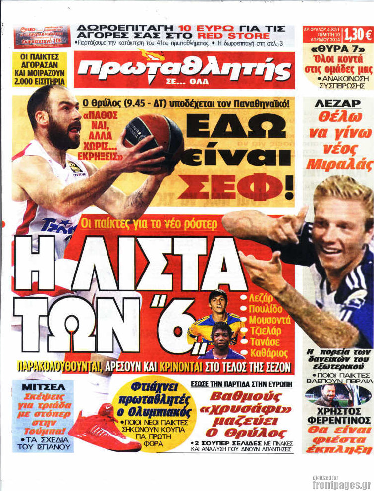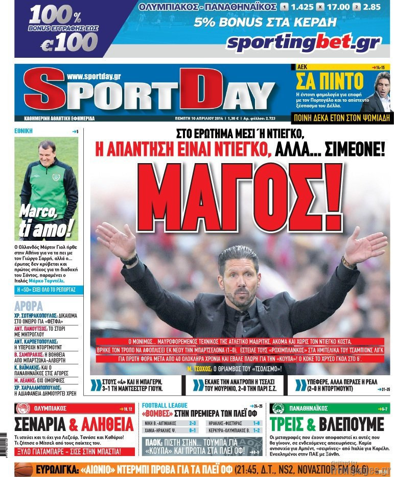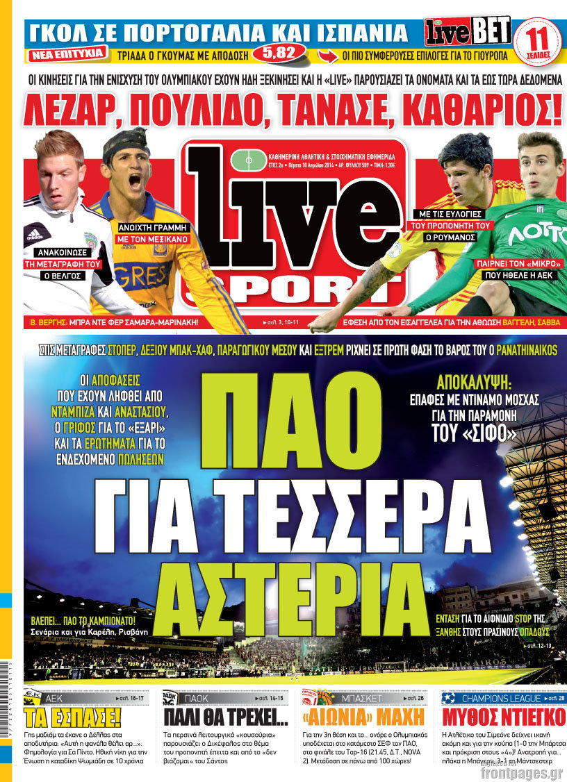 Οι αθλητικές εφημερίδες Enikos Newsroom 08:53, Πέμπτη 10 Απριλίου 2014 Media Οι αθλητικές εφημερίδες Διαβάστε τα πρωτοσέλιδα των αθλητικών εφημερίδων: ΑΘΛΗΤΙΚΕΣ ΕΦΗΜΕΡΙΔΕΣ ΕΦΗΜΕΡΙΔΕΣ ΠΡΩΤΟΣΕΛΙΔΑ Μοιράσου το: σχολίασε κι εσύ (0 σχόλια) Ακολουθήστε το enikos.gr στο Google News και μάθετε πρώτοι όλες τις ειδήσεις Δείτε όλες τις τελευταίες ειδήσεις από την Ελλάδα και τον Κόσμο στο enikos.gr Ειδήσεις Ροή Ειδήσεων 47 λεπτά πριν Ευρωπαϊκή Ένωση: Συμφωνία για δάνειο 90 δισ. ευρώ στην Ουκρανία τη διετία 2026-2027 5 ώρες πριν ΟΠΕΚΕΠΕ: Προφυλακιστέος ο φερόμενος αρχηγός και ο λογιστής της εγκληματικής οργάνωσης 6 ώρες πριν Αυξάνουν την πίεση προς την κυβέρνηση οι αγρότες: Κλείνουν παρακαμπτήριους και ανοίγουν διόδια – Τι θα γίνει τις γιορτές 6 ώρες πριν Φοινικούντα: Το Σάββατο απολογείται ο 30χρονος γιος γνωστού επιχειρηματία της Πλάκας που παραδόθηκε – Όσα είπε στους αστυνομικούς και ο ρόλος του στο έγκλημα 5 ώρες πριν ΑΕΚ – Κραϊόβα 3-2: Επική ανατροπή και πρόκριση στους «16» του Conference League η Ένωση 6 ώρες πριν Αρχαιολόγοι ανακάλυψαν ρωμαϊκά τεχνουργήματα από μια πόλη που δεν υπήρξε ποτέ – Τα τρία εντυπωσιακά κτίρια και ο αμφορέας με τις… σαρδέλες 7 ώρες πριν Ύπνος: Η απλή βραδινή ρουτίνα για να προστατεύσετε τα μαλλιά σας από το κρύο κατά τη διάρκεια του χειμώνα 8 ώρες πριν Manifesting: Πώς να συναντήσετε τον σύντροφο της ζωής σας, ανάλογα με τον μήνα γέννησής σας 2 ημέρες πριν 20 χρόνια τα Χριστούγεννα ξεκινούν στα Public με μεγάλη ποικιλία σε δώρα! 10 λεπτά πριν Αυστραλία: Κήρυξε την Κυριακή (21/12) ημέρα εθνικού πένθους για τη φονική επίθεση στην παραλία Μπόνταϊ 20 λεπτά πριν Ρόδος: Δάσκαλος καράτε καταδικάστηκε για ασέλγεια σε ανήλικες αθλήτριες – Μαρτυρίες για αγγίγματα σε ευαίσθητα σημεία 35 λεπτά πριν Γουατεμάλα: Εξαρθρώθηκε κύκλωμα διακίνησης μεταναστών προς τις ΗΠΑ – Συνελήφθησαν 14 άτομα 39 λεπτά πριν Βουλγαρία: Χιλιάδες πολίτες στους δρόμους κατά της απερχόμενης κυβέρνησης και της διαφθοράς 47 λεπτά πριν Ευρωπαϊκή Ένωση: Συμφωνία για δάνειο 90 δισ. ευρώ στην Ουκρανία τη διετία 2026-2027 ENIKOS NETWORK Σε περίοδο αυξημένης δραστηριότητας η γρίπη στην Ελλάδα-Μέτρα προστασίας από τον ΕΟΔΥ Σκέφτεστε συνέχεια συζητήσεις που έχετε κάνει; Τι σημαίνει αυτό, σύμφωνα με ειδικό Στεγαστικό: Τι λέει η ΠΟΜΙΔΑ για τα νέα μέτρα που ανακοίνωσε ο Κυριάκος Μητσοτάκης Λαγκάρντ: Αισιόδοξη για την ανάπτυξη της Ευρωζώνης, αβέβαιη για τον πληθωρισμό Χαρτογραφώντας το «σημείο χωρίς επιστροφή»: Για πρώτη φορά αποκαλύπτεται με λεπτομέρεια το ακανθώδες όριο της ατμόσφαιρας τ... Η Google καταργεί τη λειτουργία «dark web report» – Πώς θα μπορούν οι χρήστες να διαγράφουν τα δεδομένα τους περισσότερα 02:50 , Παρασκευή 19 Δεκεμβρίου 2025 GNTM: «Κλείδωσαν» οι τέσσερις φιναλίστ – Μεγάλη ανατροπή στις τελευταίες αποχωρήσεις Για προτελευταία φορά εμφανίστηκαν στο πλατό του GNTM οι φιναλίστ του φετινού κύκλου, το βράδυ... 17:45 , Πέμπτη 18 Δεκεμβρίου 2025 ROUK ZOUK: Εορταστικό επεισόδιο με καλεσμένους τους πρωταγωνιστές του «Γιατί ρε πατέρα» Το Σάββατο 20 Δεκεμβρίου στις 21:00, η Ζέτα Μακρυπούλια υποδέχεται εκλεκτούς ηθοποιούς που όλο... 17:20 , Πέμπτη 18 Δεκεμβρίου 2025 Άγιος έρωτας: Η Χριστίνα εξομολογείται στον πατέρα Νικόλαο, απόψε στις 21:00 στον Alpha Η Νότα αποφασίζει να εκδικηθεί τον Πέτρο και τον Στέφανο, για χάρη του Λούη, όμως τα πράγματα ... 16:50 , Πέμπτη 18 Δεκεμβρίου 2025 Να μ’ αγαπάς: Ζωή και Φωτεινή συμφιλιώνονται ως μάνα με κόρη, απόψε στις 20:00 Η ταυτότητα του Άγγελου 