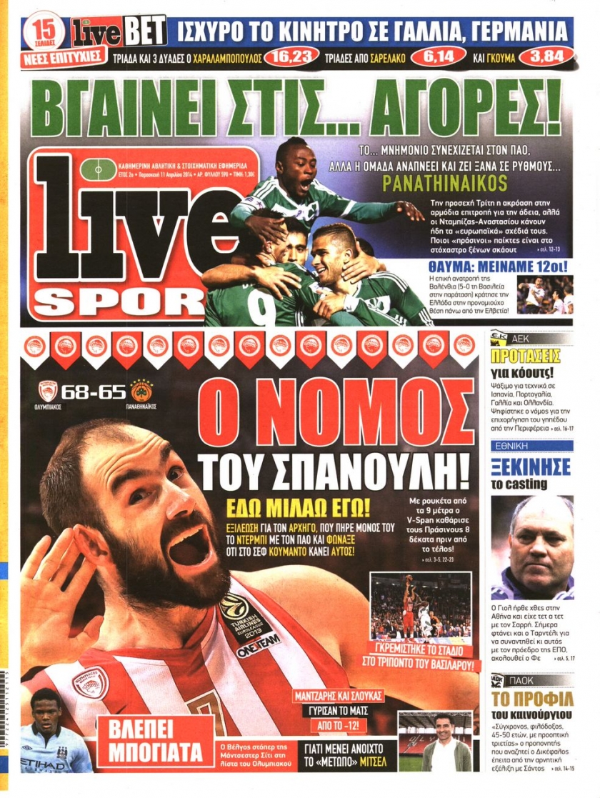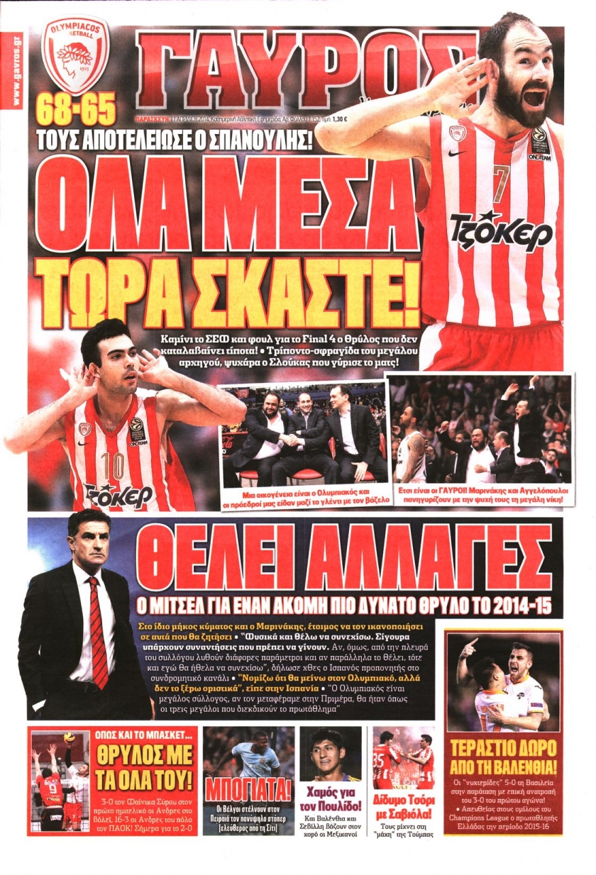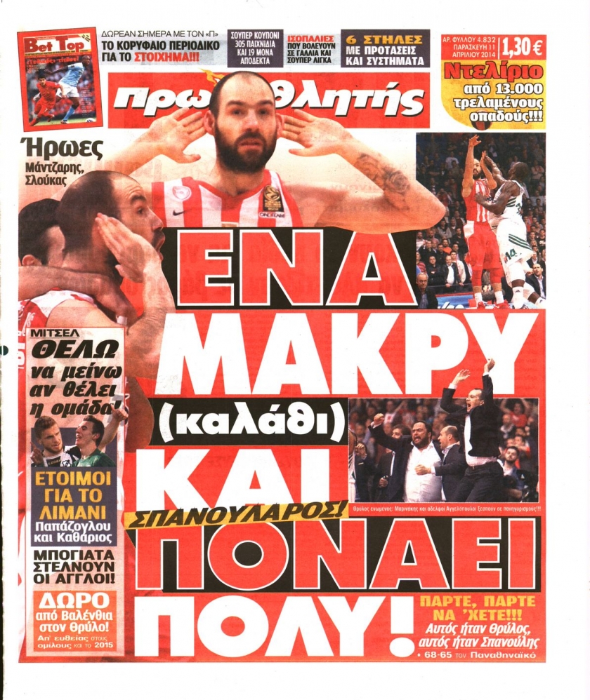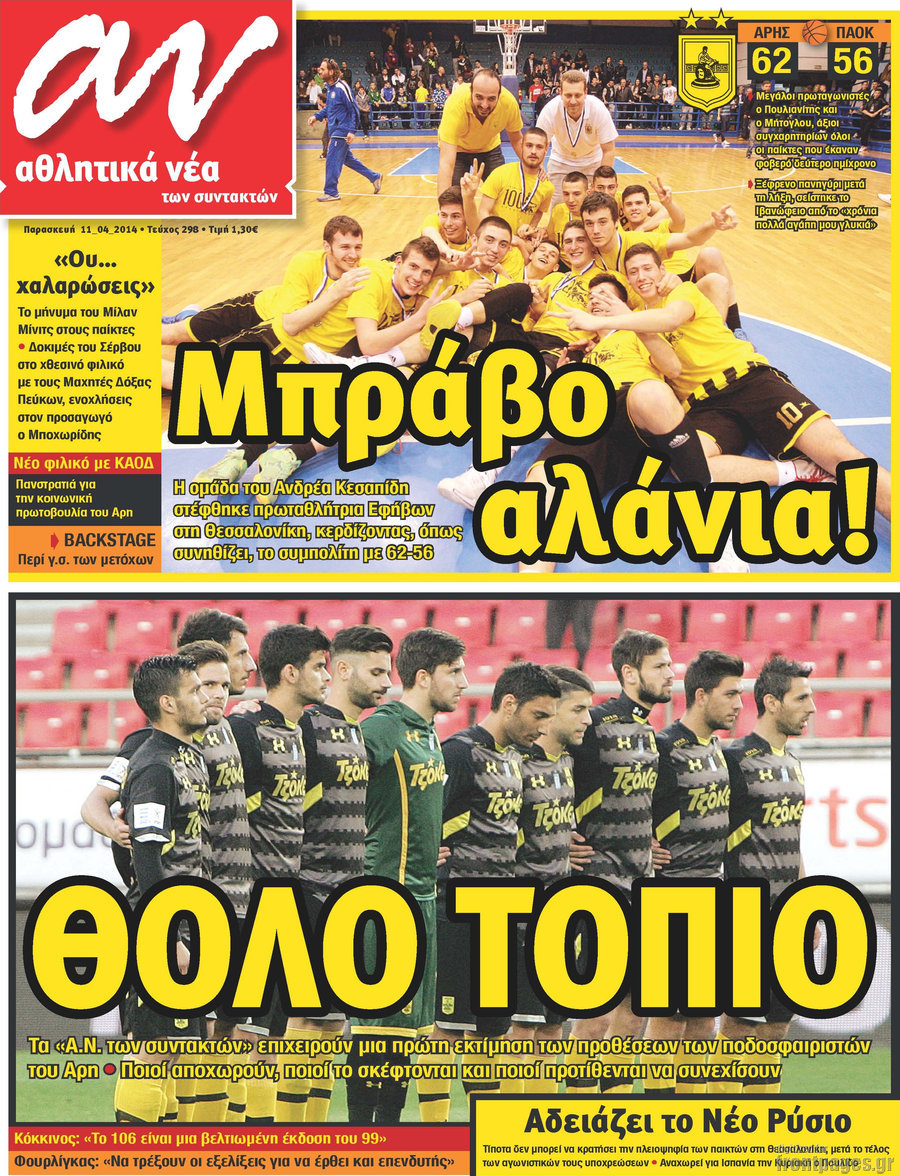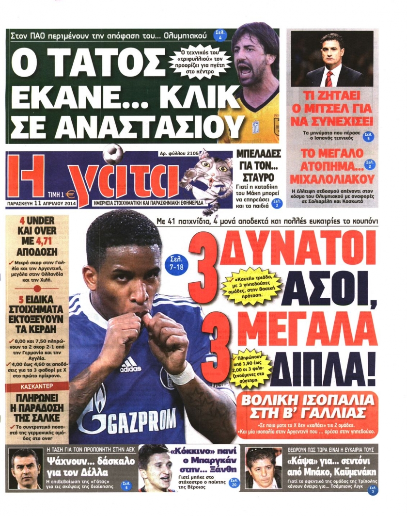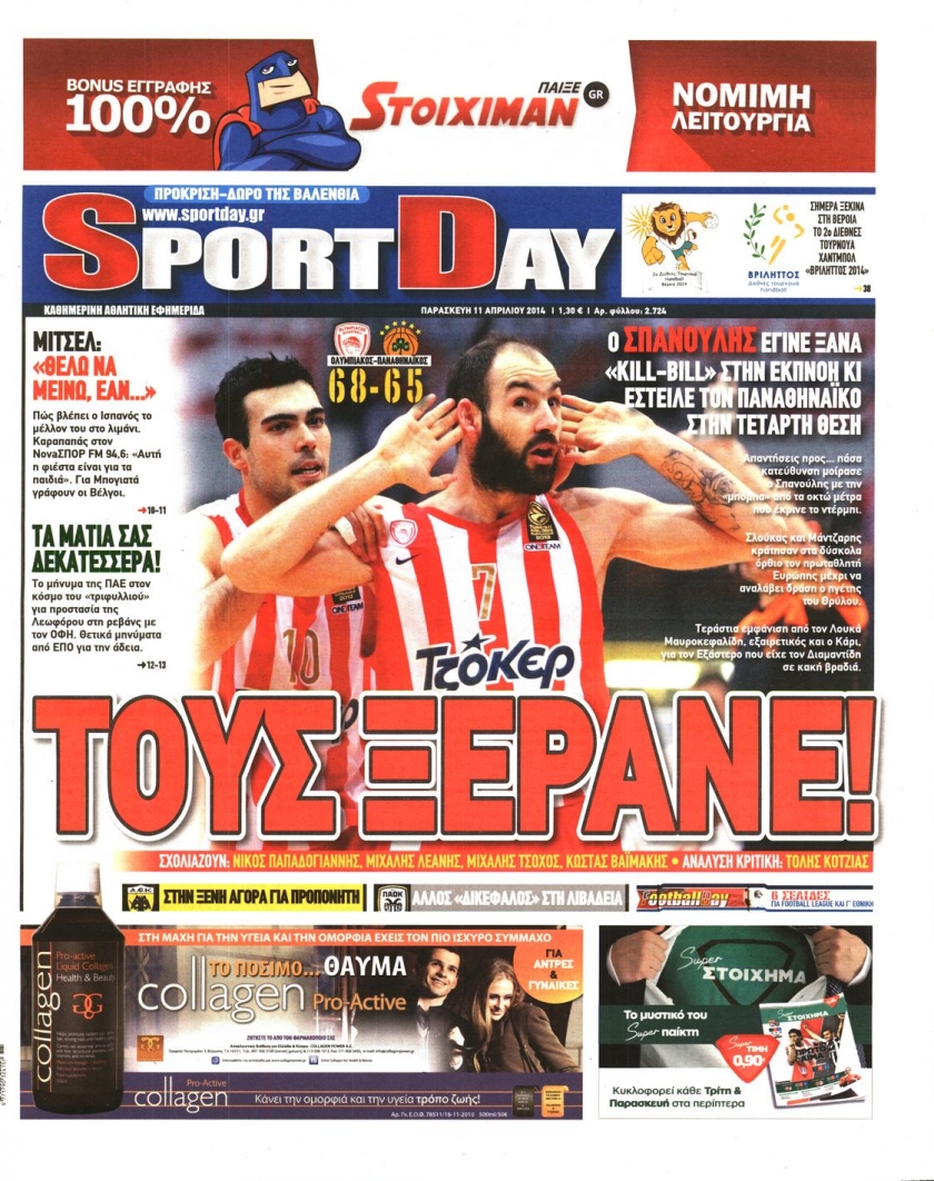 Οι αθλητικές εφημερίδες Enikos Newsroom 08:48, Παρασκευή 11 Απριλίου 2014 Media Οι αθλητικές εφημερίδες Διαβάστε τα πρωτοσέλιδα των αθλητικών εφημερίδων: ΑΘΛΗΤΙΚΕΣ ΕΦΗΜΕΡΙΔΕΣ ΕΦΗΜΕΡΙΔΕΣ ΠΡΩΤΟΣΕΛΙΔΑ Μοιράσου το: σχολίασε κι εσύ (0 σχόλια) Ακολουθήστε το enikos.gr στο Google News και μάθετε πρώτοι όλες τις ειδήσεις Δείτε όλες τις τελευταίες ειδήσεις από την Ελλάδα και τον Κόσμο στο enikos.gr Ειδήσεις Ροή Ειδήσεων 2 ώρες πριν Νίκος Παππάς: «Είχα λάθος αντίδραση στη δική του δράση-πρόκληση – Δεν θα αναλύσω σε τι κατάσταση ήταν ο δημοσιογράφος» 60 λεπτά πριν Αλεξανδρούπολη: Πολυοργανική ανεπάρκεια λόγω υποσιτισμού η αιτία θανάτου του 3χρονου αγοριού 2 ώρες πριν Δημοσκόπηση Pulse: Η διαφορά ΝΔ-ΠΑΣΟΚ – Με ποια κριτήρια θα ψηφίσουν οι πολίτες στις επόμενες εκλογές 2 ώρες πριν Αγρότες: Άνοιξαν τον μεθοριακό σταθμό του Προμαχώνα – Κανονικά περνούν τα φορτηγά 3 ώρες πριν Συγκλονιστικό βίντεο: Τρόμος για τουρίστες που σώθηκαν την τελευταία στιγμή από λεωφορείο που κατρακυλούσε σε φαράγγι 2 ώρες πριν Αριθμολογία: Οι άνθρωποι που έχουν γεννηθεί αυτές τις 4 ημερομηνίες, είναι τρυφεροί και αγαπούν ανιδιοτελώς 4 ώρες πριν Οι άνθρωποι που θυμούνται τα όνειρά τους, συνήθως μοιράζονται αυτά τα 6 σπάνια χαρακτηριστικά 3 ώρες πριν Καθρέφτες μπάνιου: Το απλό κόλπο με την οδοντόκρεμα για να μην θολώνουν 13 ώρες πριν 20 χρόνια τα Χριστούγεννα ξεκινούν στα Public με μεγάλη ποικιλία σε δώρα! 1 λεπτό πριν Ρούτε: Η μεγαλύτερη επιτυχία εξωτερικής πολιτικής του Τραμπ είναι η δέσμευση των χωρών του ΝΑΤΟ για τις αμυντικές δαπάνες 7 λεπτά πριν Το Σπίτι Δίπλα Στο Ποτάμι: Σε κίνδυνο η υγεία του Απόστολου – Τι θα δούμε απόψε 17 λεπτά πριν Νίκος Γιαννόπουλος για Νίκο Παππά: «Είναι επικίνδυνος, θα του κάνω ασφαλιστικά» – ΒΙΝΤΕΟ 21 λεπτά πριν ΟΠΕΚΕΠΕ – Παράνομες επιδοτήσεις: Ελεύθεροι με περιοριστικούς όρους ακόμη τρεις κατηγορούμενοι – Ανάμεσα τους και η σύζυγος του λογιστή 27 λεπτά πριν Συγγενείς θυμάτων τρομοκρατίας: «Ο Κουφοντίνας να μην πάρει με κρατικά χρήματα, αυτό που κάποτε “αγόραζε” με αίμα» ENIKOS NETWORK Αϋπνία: Το κόλπο που θα σας βοηθήσει να κοιμηθείτε απόψε – Είναι απλό και έχει αποτέλεσμα 2,6 εκατομμύρια πολίτες έχουν ήδη εμβολιαστεί κατά της γρίπης Χειμερινές εκπτώσεις: Πότε αρχίζουν και τι πρέπει να προσέξουν οι καταναλωτές ΑΑΔΕ: Καταβλήθηκε η τέταρτη δόση επιστροφής ΕΦΚ αγροτικού πετρελαίου – Οδηγίες για τη διόρθωση παραστατικών Χαρτογραφώντας το «σημείο χωρίς επιστροφή»: Για πρώτη φορά αποκαλύπτεται με λεπτομέρεια το ακανθώδες όριο της ατμόσφαιρας τ... Η Google καταργεί τη λειτουργία «dark web report» – Πώς θα μπορούν οι χρήστες να διαγράφουν τα δεδομένα τους περισσότερα 22:24 , Τετάρτη 17 Δεκεμβρίου 2025 Το Σπίτι Δίπλα Στο Ποτάμι: Σε κίνδυνο η υγεία του Απόστολου – Τι θα δούμε απόψε “Το Σπίτι Δίπλα στο Ποτάμι” ξετυλίγει το νήμα της ζωής των πέντε αδελφών με καταισ... 21:14 , Τετάρτη 17 Δεκεμβρίου 2025 Παιχνίδια Εκδίκησης: Θα καταφέρει ο Χρήστος να κλονίσει την εμπιστοσύνη της Μάγιας απέναντι στον Άγη; Τα «Παιχνίδια Εκδίκησης» έρχονται απόψε στις 22:30, στον Αντ1, με το τελευταίο επεισόδιο της χ... 20:57 , Τετάρτη 17 Δεκεμβρίου 2025 Άγιος Έρωτας: Η Χλόη καταθέτει εναντίον του πατέρα της και ο Χάρης αποκαλύπτει στον Κλεάνθη ότι δεν είναι ο βιολογικός του πατέρας. Γεμάτο αποκαλύψεις είναι το νέο επεισόδιο της σειράς “Άγιος Έρωτας” απόψε στις 21:... 20:15 , Τετάρτη 17 Δεκεμβρίου 2025 Η ανακοίνωση της ΕΣΗΕΑ για την επίθεση του Ευρωβουλ