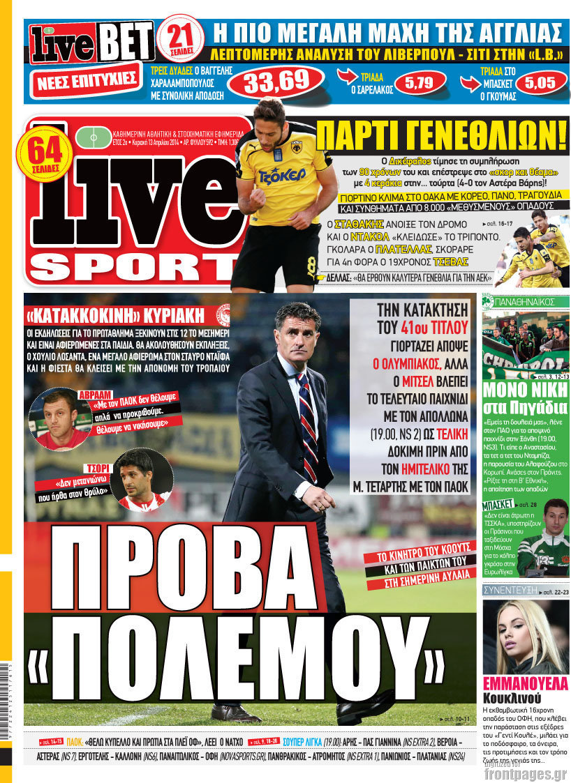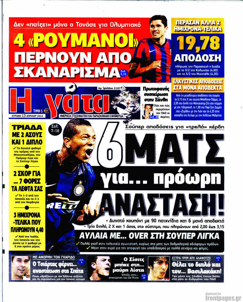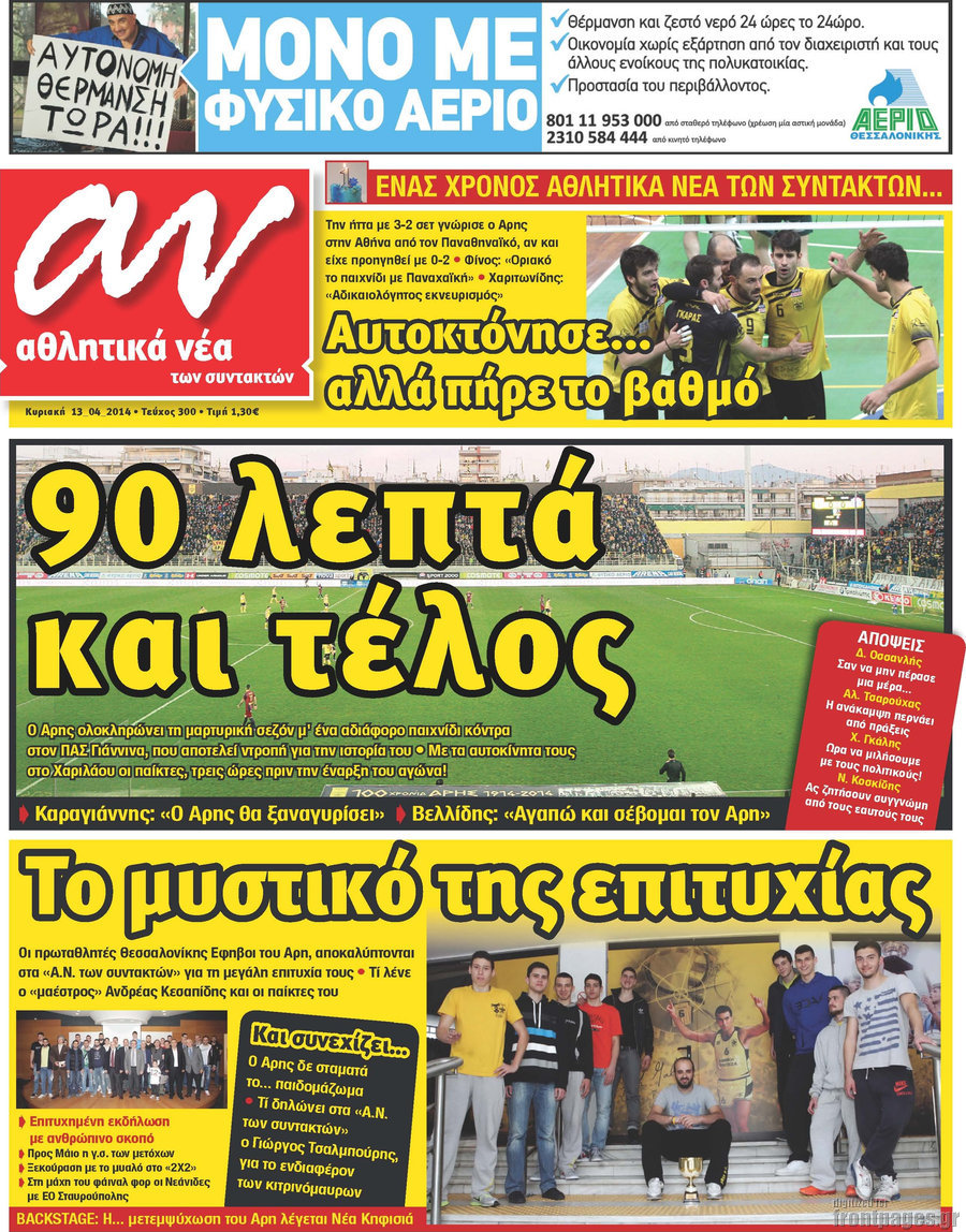Οι αθλητικές εφημερίδες Enikos Newsroom 08:11, Κυριακή 13 Απριλίου 2014 Media Οι αθλητικές εφημερίδες ΑΘΛΗΤΙΚΕΣ ΕΦΗΜΕΡΙΔΕΣ ΕΦΗΜΕΡΙΔΕΣ ΠΡΩΤΟΣΕΛΙΔΑ Μοιράσου το: σχολίασε κι εσύ (0 σχόλια) Ακολουθήστε το enikos.gr στο Google News και μάθετε πρώτοι όλες τις ειδήσεις Δείτε όλες τις τελευταίες ειδήσεις από την Ελλάδα και τον Κόσμο στο enikos.gr Ειδήσεις Ροή Ειδήσεων 54 λεπτά πριν Αυξάνουν την πίεση προς την κυβέρνηση οι αγρότες: Κλείνουν παρακαμπτήριους και ανοίγουν διόδια – Τι θα γίνει τις γιορτές 44 λεπτά πριν Φοινικούντα: Το Σάββατο απολογείται ο 30χρονος γιος γνωστού επιχειρηματία της Πλάκας που παραδόθηκε – Όσα είπε στους αστυνομικούς και ο ρόλος του στο έγκλημα 26 λεπτά πριν Μπορεί ο Μαδούρο να αντέξει τον αποκλεισμό του Τραμπ; Τι θα χρειαστεί η Ουάσινγκτον για να τον ανατρέψει 2 ώρες πριν Δημοσκόπηση Metron Analysis: Στις 10 μονάδες η διαφορά ΝΔ-ΠΑΣΟΚ, στην 3η θέση η Πλεύση Ελευθερίας – 8 στους 10 στηρίζουν τον αγώνα των αγροτών 2 ώρες πριν Πρίγκιπας Ουίλιαμ – Κέιτ: Η νέα οικογενειακή φωτογραφία για τις Χριστουγεννιάτικες κάρτες του 2025 2 ώρες πριν Ύπνος: Η απλή βραδινή ρουτίνα για να προστατεύσετε τα μαλλιά σας από το κρύο κατά τη διάρκεια του χειμώνα 2 ώρες πριν Manifesting: Πώς να συναντήσετε τον σύντροφο της ζωής σας, ανάλογα με τον μήνα γέννησής σας 2 ημέρες πριν 20 χρόνια τα Χριστούγεννα ξεκινούν στα Public με μεγάλη ποικιλία σε δώρα! 30 λεπτά πριν Αρχαιολόγοι ανακάλυψαν ρωμαϊκά τεχνουργήματα από μια πόλη που δεν υπήρξε ποτέ – Τα τρία εντυπωσιακά κτίρια και ο αμφορέας με τις… σαρδέλες 10 λεπτά πριν Παναθηναϊκός – Χάποελ Τελ Αβίβ 93-82: Με… φόρα από την Κωνσταντινούπολη 26 λεπτά πριν Μπορεί ο Μαδούρο να αντέξει τον αποκλεισμό του Τραμπ; Τι θα χρειαστεί η Ουάσινγκτον για να τον ανατρέψει 30 λεπτά πριν Αρχαιολόγοι ανακάλυψαν ρωμαϊκά τεχνουργήματα από μια πόλη που δεν υπήρξε ποτέ – Τα τρία εντυπωσιακά κτίρια και ο αμφορέας με τις… σαρδέλες 31 λεπτά πριν Στο ΟΑΚΑ για το «Παναθηναϊκός – Χάποελ» η Κίμπερλι Γκίλφοϊλ – ΦΩΤΟ 39 λεπτά πριν Ούρσουλα φον ντερ Λάιεν: Μετατίθεται για τον Ιανουάριο η υπογραφή της εμπορικής συμφωνίας «ΕΕ-MERCOSUR» ENIKOS NETWORK Σε περίοδο αυξημένης δραστηριότητας η γρίπη στην Ελλάδα-Μέτρα προστασίας από τον ΕΟΔΥ Σκέφτεστε συνέχεια συζητήσεις που έχετε κάνει; Τι σημαίνει αυτό, σύμφωνα με ειδικό Στεγαστικό: Τι λέει η ΠΟΜΙΔΑ για τα νέα μέτρα που ανακοίνωσε ο Κυριάκος Μητσοτάκης Λαγκάρντ: Αισιόδοξη για την ανάπτυξη της Ευρωζώνης, αβέβαιη για τον πληθωρισμό Χαρτογραφώντας το «σημείο χωρίς επιστροφή»: Για πρώτη φορά αποκαλύπτεται με λεπτομέρεια το ακανθώδες όριο της ατμόσφαιρας τ... Η Google καταργεί τη λειτουργία «dark web report» – Πώς θα μπορούν οι χρήστες να διαγράφουν τα δεδομένα τους περισσότερα 17:45 , Πέμπτη 18 Δεκεμβρίου 2025 ROUK ZOUK: Εορταστικό επεισόδιο με καλεσμένους τους πρωταγωνιστές του «Γιατί ρε πατέρα» Το Σάββατο 20 Δεκεμβρίου στις 21:00, η Ζέτα Μακρυπούλια υποδέχεται εκλεκτούς ηθοποιούς που όλο... 17:20 , Πέμπτη 18 Δεκεμβρίου 2025 Άγιος έρωτας: Η Χριστίνα εξομολογείται στον πατέρα Νικόλαο, απόψε στις 21:00 στον Alpha Η Νότα αποφασίζει να εκδικηθεί τον Πέτρο και τον Στέφανο, για χάρη του Λούη, όμως τα πράγματα ... 16:50 , Πέμπτη 18 Δεκεμβρίου 2025 Να μ’ αγαπάς: Ζωή και Φωτεινή συμφιλιώνονται ως μάνα με κόρη, απόψε στις 20:00 Η ταυτότητα του Άγγελου αποκαλύπτεται στο νέο επεισόδιο της σειράς “Να μ’ αγαπάς... 15:52 , Πέμπτη 18 Δεκεμβρίου 2025 Το Σπίτι Δίπλα Στο Ποτάμι: Το καθηλωτικό τελευταίο επεισόδιο για το 2025 από