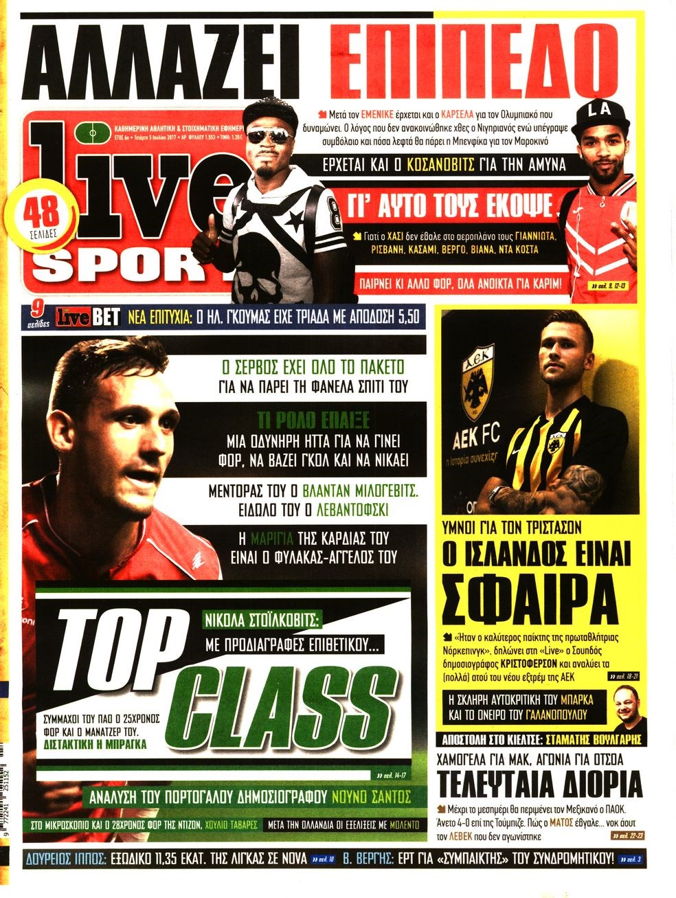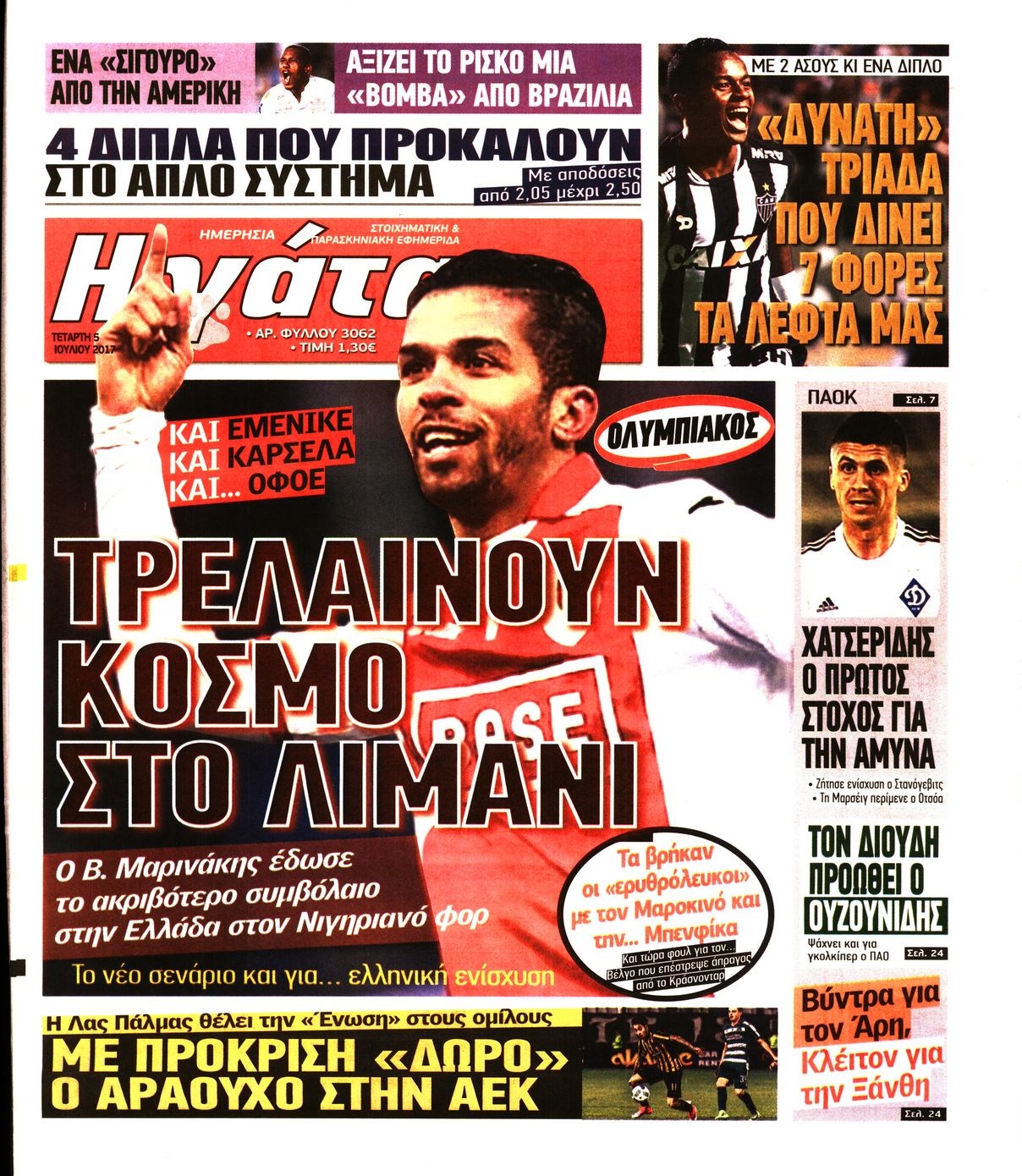 Οι αθλητικές εφημερίδες 5/7/2017 Enikos Newsroom 06:52, Τετάρτη 05 Ιουλίου 2017 Media Διαβάστε τα σημερινά πρωτοσέλιδα των αθλητικών εφημερίδων: ΑΘΛΗΤΙΚΕΣ ΕΦΗΜΕΡΙΔΕΣ ΠΡΩΤΟΣΕΛΙΔΑ Μοιράσου το: σχολίασε κι εσύ (0 σχόλια) Ακολουθήστε το enikos.gr στο Google News και μάθετε πρώτοι όλες τις ειδήσεις Δείτε όλες τις τελευταίες ειδήσεις από την Ελλάδα και τον Κόσμο στο enikos.gr Ειδήσεις Ροή Ειδήσεων 3 ώρες πριν Αγρότες: Πολύωροι αποκλεισμοί στα τελωνεία Προμαχώνα, Εξοχής, Ευζώνων και Νίκης – Κλείνουν τον κόμβο Φιλώτα οι παραγωγοί στη Δυτική Μακεδονία 3 ώρες πριν Νίκος Παππάς: Ζητώ συγγνώμη για αυτό το επεισόδιο – Δεν τον γρονθοκόπησα 2 ώρες πριν Πούτιν: Η Ουκρανία δεν είναι έτοιμη για ειρηνευτικές συνομιλίες – ο ρωσικός στρατός προελαύνει σε όλα τα μέτωπα 14 λεπτά πριν Θεσσαλονίκη: Άφησαν τα ανήλικα παιδιά τους να κοιμούνται στην αυλή – Κάτοικος ειδοποίησε το «Χαμόγελο του Παιδιού» 3 ώρες πριν Τρομακτικό βίντεο: Η στιγμή της έκρηξης στο τζετ που μετέφερε τον οδηγό του NASCAR, Γκρεγκ Μπιφλ και την οικογένειά του 4 ώρες πριν Αλλαγή σελίδας για 3 ζώδια – «Μία δύσκολη περίοδος φτάνει στο τέλος της» 2 ημέρες πριν 20 χρόνια τα Χριστούγεννα ξεκινούν στα Public με μεγάλη ποικιλία σε δώρα! 3 ώρες πριν Γεμάτος νεροχύτης; 5 σοβαρές ευθύνες που «φοβίζουν» όσους αφήνουν άπλυτα πιάτα 2 ώρες πριν Ειδικός μοιράζεται 6 κόλπα για να διατηρείστε σε φόρμα με πάνω από 40 ώρες εργασίας την εβδομάδα: «Προπονηθείτε πριν από τη δουλειά, όχι μετά» 4 λεπτά πριν Κοντογεώργης στον Realfm 97,8 για αγροτικές κινητοποιήσεις: Η κυβέρνηση λειτουργεί με λογική και με διάλογο που φέρνει λύσεις 8 λεπτά πριν Γιώργος Γιαννόπουλος: Πάντα έχω σχέση – Ψάχνω αγάπη και χιούμορ 13 λεπτά πριν Μεσολόγγι: Συνελήφθησαν δύο ανήλικοι για bullying σε 14χρονο – Τον ανάγκασαν να γονατίσει και τραβούσαν βίντεο 14 λεπτά πριν Θεσσαλονίκη: Άφησαν τα ανήλικα παιδιά τους να κοιμούνται στην αυλή – Κάτοικος ειδοποίησε το «Χαμόγελο του Παιδιού» 18 λεπτά πριν Μετρό και λεωφορεία του ΟΑΣΘ: Σε 24ωρη λειτουργία για τα Σάββατα των εορτών ENIKOS NETWORK Κίνδυνος παραπλάνησης από διαφημίσεις οδοντικών εμφυτευμάτων Καρκίνος του πνεύμονα: Έως 8.000 ζωές μπορούν να σωθούν με την έγκαιρη διάγνωση e-ΕΦΚΑ: Νέα παράταση της προθεσμίας υποβολής για τις ΑΠΔ – Ποιες επιχειρήσεις αφορά Αγορά πολυτελών κατοικιών: Αυτές είναι οι προτεραιότητες των αγοραστών – Σε ποιες περιοχές στρέφονται και τι επιλέγουν Χαρτογραφώντας το «σημείο χωρίς επιστροφή»: Για πρώτη φορά αποκαλύπτεται με λεπτομέρεια το ακανθώδες όριο της ατμόσφαιρας τ... Η Google καταργεί τη λειτουργία «dark web report» – Πώς θα μπορούν οι χρήστες να διαγράφουν τα δεδομένα τους περισσότερα 08:00 , Παρασκευή 19 Δεκεμβρίου 2025 Την Κυριακή με τη Realnews: Δωροεπιταγή 10€ Δωροεπιταγή αξίας 10€ για αγορές άνω των 60€ από τα πολυκαταστήματα FactoryOutlet H προσφορά ι... 05:48 , Παρασκευή 19 Δεκεμβρίου 2025 Οι οικονομικές εφημερίδες 19/12/2025 Διαβάστε τα πρωτοσέλιδα από τις οικονομικές εφημερίδες, σήμερα 19/12/2025. 05:43 , Παρασκευή 19 Δεκεμβρίου 2025 Οι αθλητικές εφημερίδες 19/12/2025 Διαβάστε τα πρωτοσέλιδα από τις αθλητικές εφημερίδες, σήμερα 19/12/2025. 05:38 , Παρασκευή 19 Δεκεμβρίου 2025 Οι πολιτικές εφημερίδες 19/12/2025 Διαβάστε τα πρωτοσέλιδα από τις πολιτικές εφημερίδες, σήμερα 19/12/2025. ΤΕΛΕΥΤΑΙΕΣ ΕΙΔΗΣΕΙΣ 4 λεπτά πριν Κοντογεώργης στον Realfm 97,8 για αγροτικές... 8 λεπτά πριν Γιώργος Γιαννόπουλος: Πάντα έχω σχέση – Ψάχνω αγάπη... 13 λεπτά πριν Μεσολόγγι: Συνελήφθησαν δύο ανήλικοι για bullying σε... 1