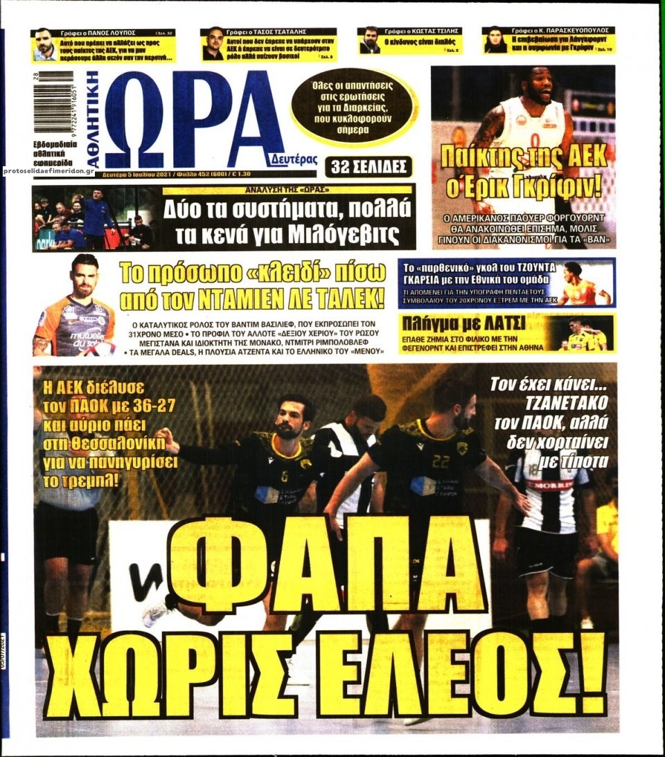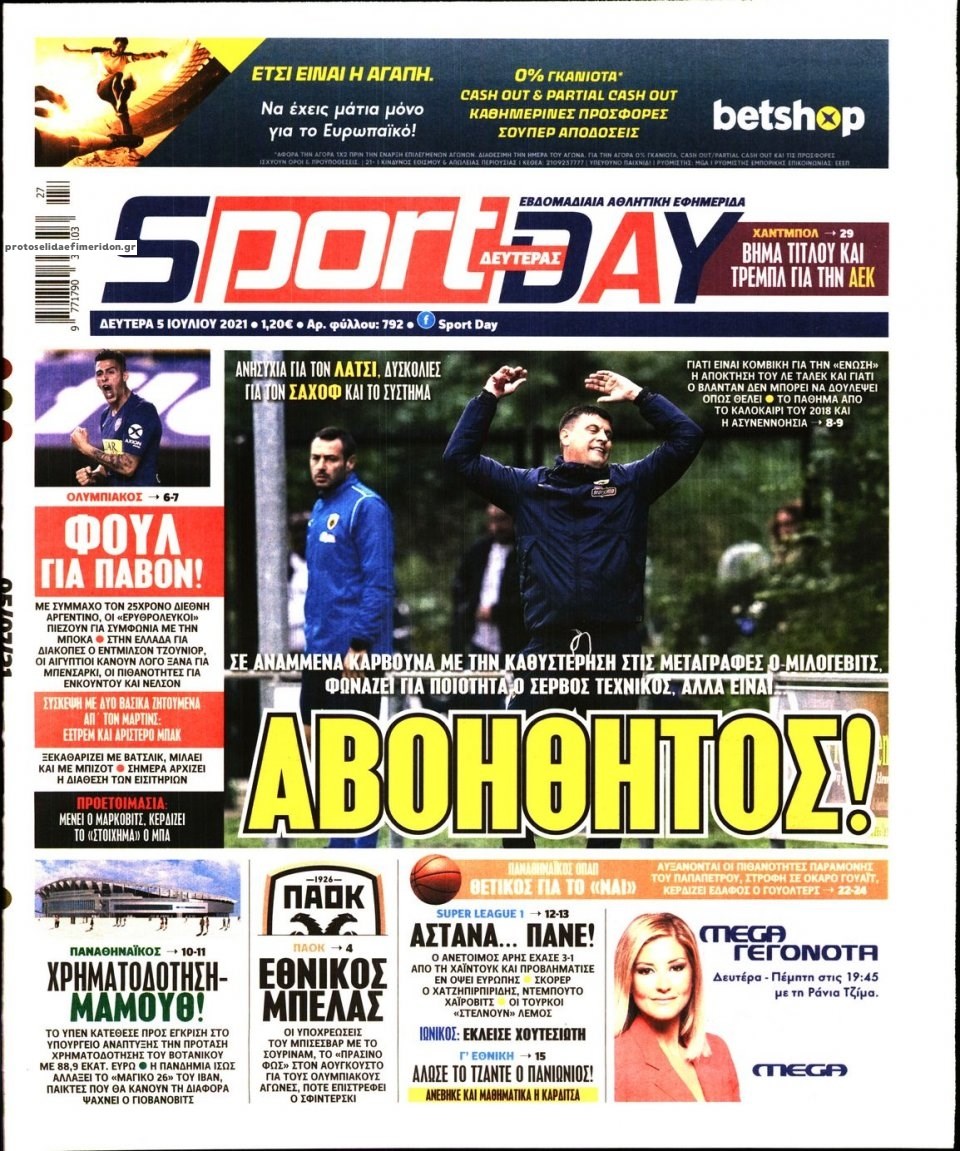 Οι αθλητικές εφημερίδες 5/7/2021 Σήφης Γαρυφαλάκης 06:22, Δευτέρα 05 Ιουλίου 2021 Media Διαβάστε τα πρωτοσέλιδα των αθλητικών εφημερίδων. ΑΘΛΗΤΙΚΕΣ ΕΦΗΜΕΡΙΔΕΣ ΕΦΗΜΕΡΙΔΕΣ ΠΡΩΤΟΣΕΛΙΔΑ ΠΡΩΤΟΣΕΛΙΔΑ ΕΦΗΜΕΡΙΔΩΝ Μοιράσου το: σχολίασε κι εσύ (0 σχόλια) Ακολουθήστε το enikos.gr στο Google News και μάθετε πρώτοι όλες τις ειδήσεις Δείτε όλες τις τελευταίες ειδήσεις από την Ελλάδα και τον Κόσμο στο enikos.gr Ειδήσεις Ροή Ειδήσεων 2 ώρες πριν Κυριάκος Μητσοτάκης: «Κάποιοι αγρότες δεν αισθάνονται την ανάγκη να διαφωνήσουν με τις προτάσεις της κυβέρνησης, η Ευρώπη στέκεται στο πλευρό της Ουκρανίας» 7 ώρες πριν ΟΠΕΚΕΠΕ: Προφυλακιστέος ο φερόμενος αρχηγός και ο λογιστής της εγκληματικής οργάνωσης 8 ώρες πριν Αυξάνουν την πίεση προς την κυβέρνηση οι αγρότες: Κλείνουν παρακαμπτήριους και ανοίγουν διόδια – Τι θα γίνει τις γιορτές 8 ώρες πριν Φοινικούντα: Το Σάββατο απολογείται ο 30χρονος γιος γνωστού επιχειρηματία της Πλάκας που παραδόθηκε – Όσα είπε στους αστυνομικούς και ο ρόλος του στο έγκλημα 7 ώρες πριν ΑΕΚ – Κραϊόβα 3-2: Επική ανατροπή και πρόκριση στους «16» του Conference League η Ένωση 8 ώρες πριν Αρχαιολόγοι ανακάλυψαν ρωμαϊκά τεχνουργήματα από μια πόλη που δεν υπήρξε ποτέ – Τα τρία εντυπωσιακά κτίρια και ο αμφορέας με τις… σαρδέλες 9 ώρες πριν Ύπνος: Η απλή βραδινή ρουτίνα για να προστατεύσετε τα μαλλιά σας από το κρύο κατά τη διάρκεια του χειμώνα 10 ώρες πριν Manifesting: Πώς να συναντήσετε τον σύντροφο της ζωής σας, ανάλογα με τον μήνα γέννησής σας 2 ημέρες πριν 20 χρόνια τα Χριστούγεννα ξεκινούν στα Public με μεγάλη ποικιλία σε δώρα! 6 λεπτά πριν ΔΕΔΔΗΕ: Διακοπές ρεύματος σήμερα (19/12) στην Αθήνα και σε άλλες 12 περιοχές της Αττικής 21 λεπτά πριν Φρίντριχ Μερτς: Χορήγηση άτοκου δανείου στην Ουκρανία συμφώνησαν τα κράτη – μέλη της ΕΕ 29 λεπτά πριν Απειλή για το Προϋπολογισμό τα ληξιπρόθεσμα χρέη των ιδιωτών προς την εφορία 29 λεπτά πριν Πέντε νεκροί σε πλήγματα των ΗΠΑ κατά δύο σκαφών που φέρεται να μετέφεραν ναρκωτικά στον Ανατολικό Ειρηνικό 37 λεπτά πριν ΕΥΔΑΠ: Αλλάζουν τα τιμολόγια του νερού ENIKOS NETWORK Μόνο όσοι σκανάρουν με ταχύτητα ΑΙ μπορούν να εντοπίσουν τον διαφορετικό αριθμό ανάμεσα στο πλέγμα των 68 και να λύσουν το ... Η τροφή του πόθου που μπορεί να ανακουφίσει από ενοχλήσεις στο στομάχι και από τα συμπτώματα του Raynaud Στεγαστικό: Τι λέει η ΠΟΜΙΔΑ για τα νέα μέτρα που ανακοίνωσε ο Κυριάκος Μητσοτάκης Λαγκάρντ: Αισιόδοξη για την ανάπτυξη της Ευρωζώνης, αβέβαιη για τον πληθωρισμό Χαρτογραφώντας το «σημείο χωρίς επιστροφή»: Για πρώτη φορά αποκαλύπτεται με λεπτομέρεια το ακανθώδες όριο της ατμόσφαιρας τ... Η Google καταργεί τη λειτουργία «dark web report» – Πώς θα μπορούν οι χρήστες να διαγράφουν τα δεδομένα τους περισσότερα 05:48 , Παρασκευή 19 Δεκεμβρίου 2025 Οι οικονομικές εφημερίδες 19/12/2025 Διαβάστε τα πρωτοσέλιδα από τις οικονομικές εφημερίδες, σήμερα 19/12/2025. 05:43 , Παρασκευή 19 Δεκεμβρίου 2025 Οι αθλητικές εφημερίδες 19/12/2025 Διαβάστε τα πρωτοσέλιδα από τις αθλητικές εφημερίδες, σήμερα 19/12/2025. 05:38 , Παρασκευή 19 Δεκεμβρίου 2025 Οι πολιτικές εφημερίδες 19/12/2025 Διαβάστε τα πρωτοσέλιδα από τις πολιτικές εφημερίδες, σήμερα 19/12/2025. 02:50 , Παρασκευή 19 Δεκεμβρίου 2025 GNTM: «Κλείδωσαν» οι τέσσερις φιναλίστ – Μεγάλη ανατροπή στις τελευταίες αποχωρήσεις Για προτελευταία φορά εμφανίστηκαν στο πλατό του GNTM οι φιναλίστ του φετινού κύκλου, το βράδυ... ΤΕΛΕΥΤΑΙΕΣ ΕΙΔΗΣΕΙΣ 6 λεπτά πριν ΔΕΔΔΗΕ: Διακοπές ρεύματος σήμερα (19/12) στην Αθήν