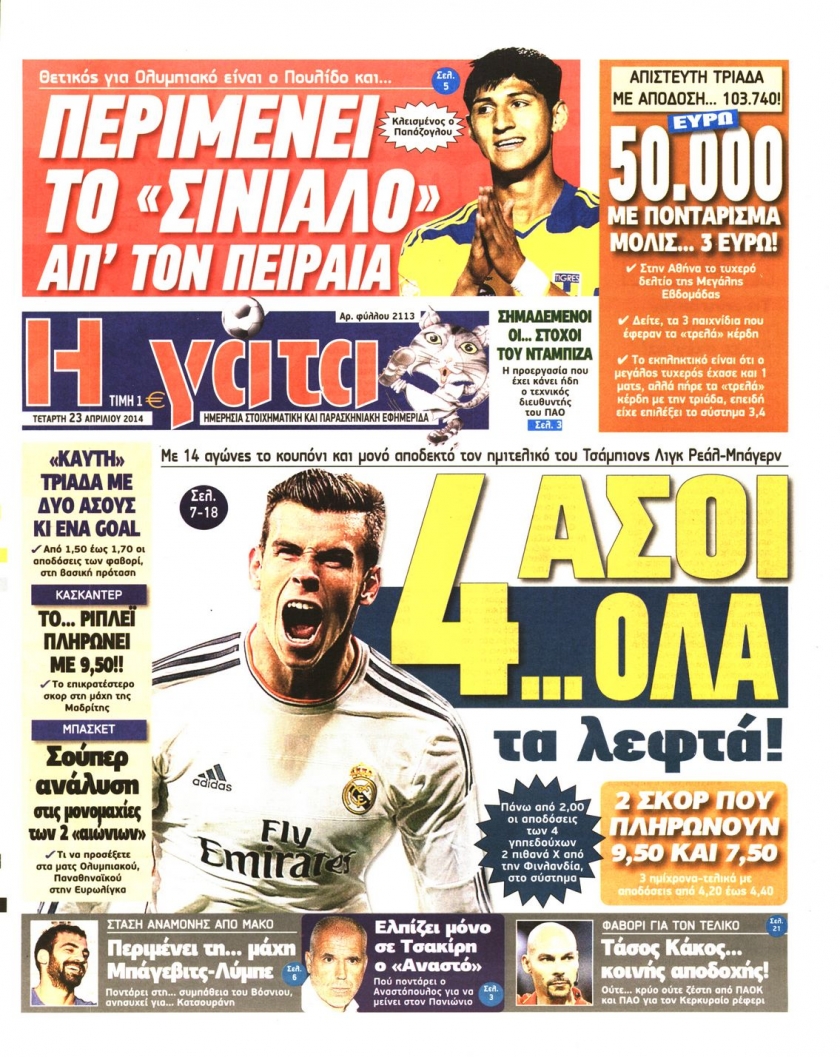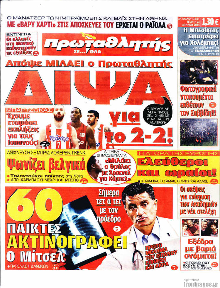 Οι αθλητικές εφημερίδες Enikos Newsroom 08:41, Τετάρτη 23 Απριλίου 2014 Media Οι αθλητικές εφημερίδες Διαβάστε τα πρωτοσέλιδα των αθλητικών εφημερίδων: ΑΘΛΗΤΙΚΕΣ ΕΦΗΜΕΡΙΔΕΣ ΕΦΗΜΕΡΙΔΕΣ ΠΡΩΤΟΣΕΛΙΔΑ Μοιράσου το: σχολίασε κι εσύ (0 σχόλια) Ακολουθήστε το enikos.gr στο Google News και μάθετε πρώτοι όλες τις ειδήσεις Δείτε όλες τις τελευταίες ειδήσεις από την Ελλάδα και τον Κόσμο στο enikos.gr Ειδήσεις Ροή Ειδήσεων 34 λεπτά πριν Εκτός ευρωομάδας ΣΥΡΙΖΑ ο Νίκος Παππάς μετά την επίθεση στον δημοσιογράφο Νίκο Γιαννόπουλο – Η μήνυση και οι νέες δηλώσεις 1 ώρα πριν «Αγριεύουν» οι αγρότες: «Δεν συντρέχει λόγος συνάντησης με τον πρωθυπουργό» – Ώρα αποφάσεων στη σύσκεψη της Πέμπτης 57 λεπτά πριν Κυψέλη: Χωρίς την οικογένειά της δίπλα της απολογήθηκε η 16χρονη – «Της είχε επιτεθεί κάποιος για να την βιάσει, φοβήθηκε και κυκλοφορούσε με μαχαίρι» 28 λεπτά πριν Politico: Το πρόβλημα της Ευρώπης δεν είναι το Βέλγιο αλλά ο Ντόναλντ Τραμπ 2 ώρες πριν Αλεξανδρούπολη: Πολυοργανική ανεπάρκεια λόγω υποσιτισμού η αιτία θανάτου του 3χρονου αγοριού 47 λεπτά πριν Μυστήριο με τεράστιες κυκλικές πέτρες 200 κιλών – Ανακαλύφθηκαν τυχαία κατά τη διάρκεια οδικών έργων και κανείς δεν ξέρει από πού προέρχονται 2 ώρες πριν Ύπνος: Ειδικός εξηγεί τον πραγματικό λόγο που ξυπνάτε στις 4 τα ξημερώματα – Ο ρόλος των ορμονών και του κιρκάδιου ρυθμού 3 ώρες πριν Αριθμολογία: Οι άνθρωποι που έχουν γεννηθεί αυτές τις 4 ημερομηνίες, είναι τρυφεροί και αγαπούν ανιδιοτελώς 14 ώρες πριν 20 χρόνια τα Χριστούγεννα ξεκινούν στα Public με μεγάλη ποικιλία σε δώρα! 28 λεπτά πριν Politico: Το πρόβλημα της Ευρώπης δεν είναι το Βέλγιο αλλά ο Ντόναλντ Τραμπ 34 λεπτά πριν Εκτός ευρωομάδας ΣΥΡΙΖΑ ο Νίκος Παππάς μετά την επίθεση στον δημοσιογράφο Νίκο Γιαννόπουλο – Η μήνυση και οι νέες δηλώσεις 34 λεπτά πριν Κύπελλο Ελλάδας: Η Μαρκό έστειλε τον ΠΑΟΚ στον Ολυμπιακό… μέσω Ατρόμητου 37 λεπτά πριν Άκης Σκέρτσος: Μήνυση και αγωγή κατά της Ζωής Κωνσταντοπούλου θα καταθέσει ο υπουργός Επικρατείας 47 λεπτά πριν Μυστήριο με τεράστιες κυκλικές πέτρες 200 κιλών – Ανακαλύφθηκαν τυχαία κατά τη διάρκεια οδικών έργων και κανείς δεν ξέρει από πού προέρχονται ENIKOS NETWORK Αϋπνία: Το κόλπο που θα σας βοηθήσει να κοιμηθείτε απόψε – Είναι απλό και έχει αποτέλεσμα 2,6 εκατομμύρια πολίτες έχουν ήδη εμβολιαστεί κατά της γρίπης ΕΛΣΤΑΤ: Τι δείχνουν τα νέα στοιχεία για τις ηλεκτρονικές παραγγελίες των επιχειρήσεων ΚΕΠΕ: Οι 3 διακριτές συμβολές των ΜμΕ και της μεταποίησης στην ελληνική οικονομία Χαρτογραφώντας το «σημείο χωρίς επιστροφή»: Για πρώτη φορά αποκαλύπτεται με λεπτομέρεια το ακανθώδες όριο της ατμόσφαιρας τ... Η Google καταργεί τη λειτουργία «dark web report» – Πώς θα μπορούν οι χρήστες να διαγράφουν τα δεδομένα τους περισσότερα 22:24 , Τετάρτη 17 Δεκεμβρίου 2025 Το Σπίτι Δίπλα Στο Ποτάμι: Σε κίνδυνο η υγεία του Απόστολου – Τι θα δούμε απόψε “Το Σπίτι Δίπλα στο Ποτάμι” ξετυλίγει το νήμα της ζωής των πέντε αδελφών με καταισ... 21:14 , Τετάρτη 17 Δεκεμβρίου 2025 Παιχνίδια Εκδίκησης: Θα καταφέρει ο Χρήστος να κλονίσει την εμπιστοσύνη της Μάγιας απέναντι στον Άγη; Τα «Παιχνίδια Εκδίκησης» έρχονται απόψε στις 22:30, στον Αντ1, με το τελευταίο επεισόδιο της χ... 20:57 , Τετάρτη 17 Δεκεμβρίου 2025 Άγιος Έρωτας: Η Χλόη καταθέτει εναντίον του πατέρα της και ο Χάρης αποκαλύπτει στον Κλεάνθη ότι δεν είναι ο βιολογικός του πατέρας. Γεμάτο αποκαλύψεις είναι το νέο επεισόδιο της σειράς “Άγιος Έρωτας” απόψε σ