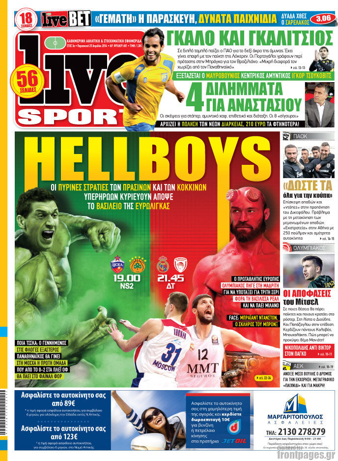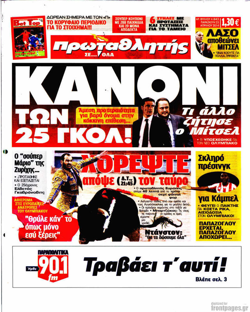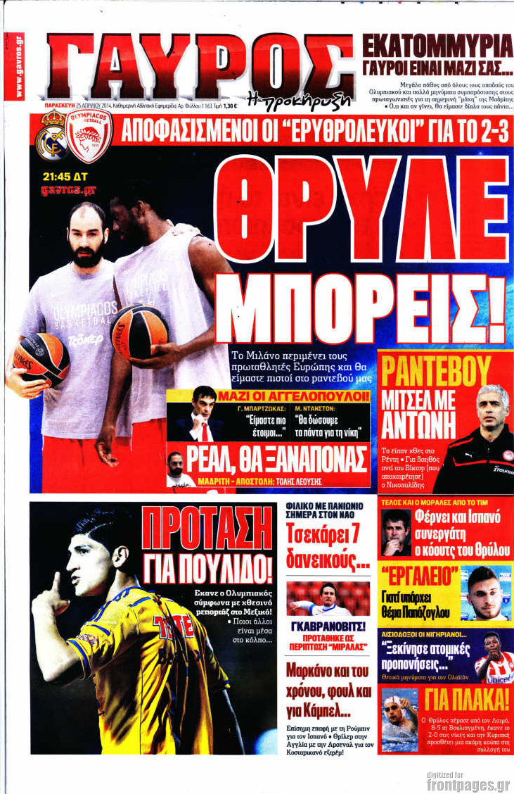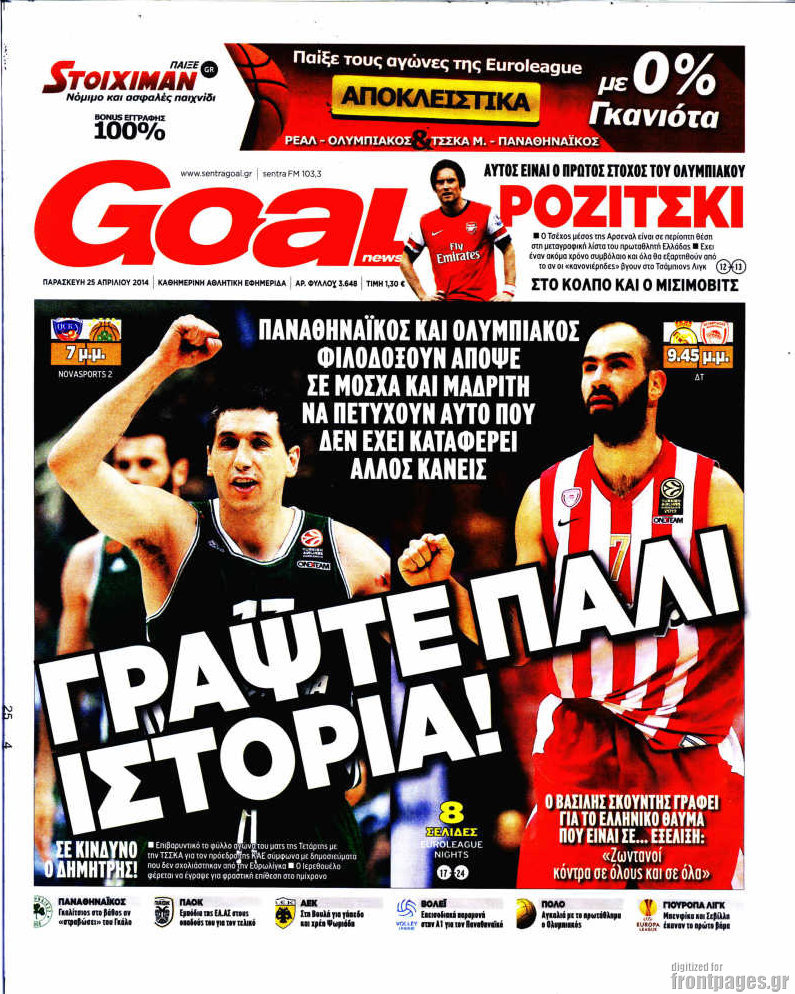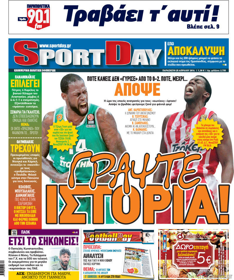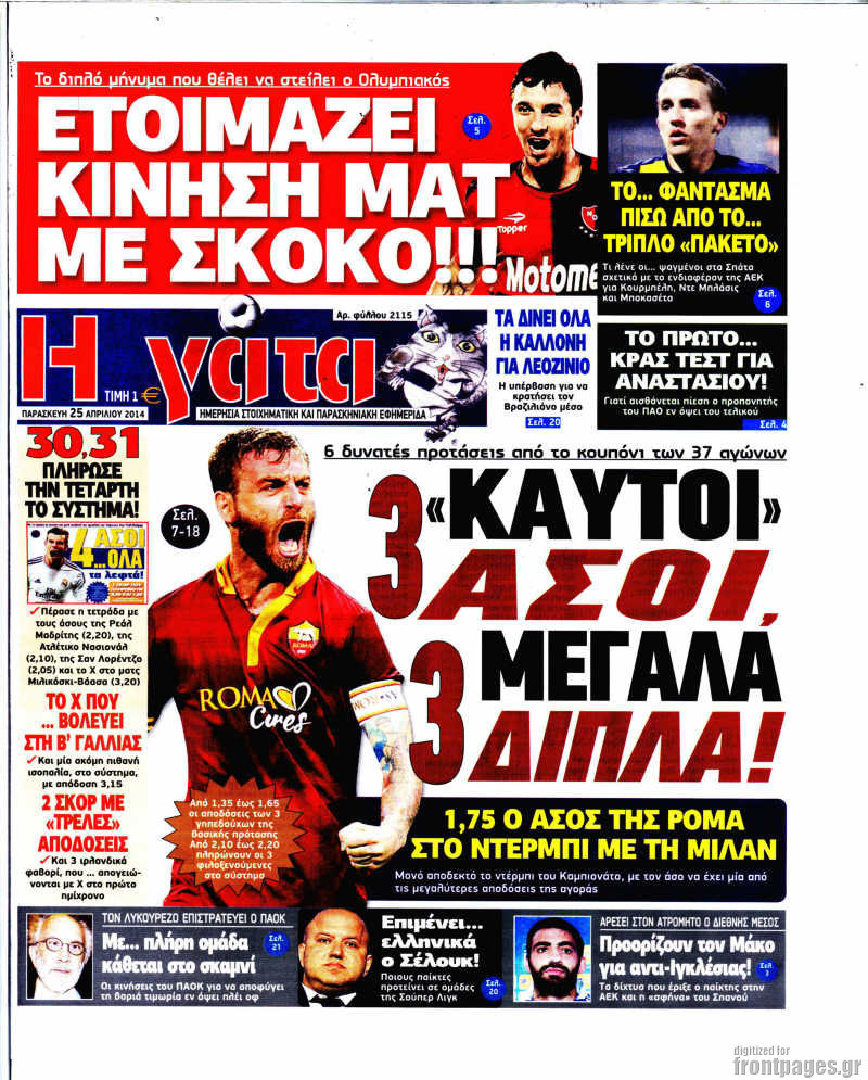 Οι αθλητικές εφημερίδες Enikos Newsroom 08:45, Παρασκευή 25 Απριλίου 2014 Media Οι αθλητικές εφημερίδες Διαβάστε τα πρωτοσέλιδα των αθλητικών εφημερίδων: ΑΘΛΗΤΙΚΕΣ ΕΦΗΜΕΡΙΔΕΣ ΕΦΗΜΕΡΙΔΕΣ ΠΡΩΤΟΣΕΛΙΔΑ Μοιράσου το: σχολίασε κι εσύ (0 σχόλια) Ακολουθήστε το enikos.gr στο Google News και μάθετε πρώτοι όλες τις ειδήσεις Δείτε όλες τις τελευταίες ειδήσεις από την Ελλάδα και τον Κόσμο στο enikos.gr Ειδήσεις Ροή Ειδήσεων 3 ώρες πριν Εκτός ευρωομάδας ΣΥΡΙΖΑ ο Νίκος Παππάς μετά την επίθεση στον δημοσιογράφο Νίκο Γιαννόπουλο – Η μήνυση και οι νέες δηλώσεις 4 ώρες πριν «Αγριεύουν» οι αγρότες: «Δεν συντρέχει λόγος συνάντησης με τον πρωθυπουργό» – Ώρα αποφάσεων στη σύσκεψη της Πέμπτης 4 ώρες πριν Κυψέλη: Χωρίς την οικογένειά της δίπλα της απολογήθηκε η 16χρονη – «Της είχε επιτεθεί κάποιος για να την βιάσει, φοβήθηκε και κυκλοφορούσε με μαχαίρι» 3 ώρες πριν Politico: Το πρόβλημα της Ευρώπης δεν είναι το Βέλγιο αλλά ο Ντόναλντ Τραμπ 5 ώρες πριν Αλεξανδρούπολη: Πολυοργανική ανεπάρκεια λόγω υποσιτισμού η αιτία θανάτου του 3χρονου αγοριού 3 ώρες πριν Μυστήριο με τεράστιες κυκλικές πέτρες 200 κιλών – Ανακαλύφθηκαν τυχαία κατά τη διάρκεια οδικών έργων και κανείς δεν ξέρει από πού προέρχονται 4 ώρες πριν Ύπνος: Ειδικός εξηγεί τον πραγματικό λόγο που ξυπνάτε στις 4 τα ξημερώματα – Ο ρόλος των ορμονών και του κιρκάδιου ρυθμού 5 ώρες πριν Αριθμολογία: Οι άνθρωποι που έχουν γεννηθεί αυτές τις 4 ημερομηνίες, είναι τρυφεροί και αγαπούν ανιδιοτελώς 17 ώρες πριν 20 χρόνια τα Χριστούγεννα ξεκινούν στα Public με μεγάλη ποικιλία σε δώρα! 10 λεπτά πριν Ρωσία: Ουκρανικές δυνάμεις έπληξαν πλοίο στο λιμάνι του Ροστόφ – Αναφορές για θύματα 26 λεπτά πριν Βρυξέλλες: Νυχτερινό… μπλόκο αγροτών μπροστά από το κτίριο της Ευρωπαϊκής Επιτροπής – Πάνω από 100 τρακτέρ απέκλεισαν την λεωφόρο 41 λεπτά πριν Euroleague: Απρόσμενη ήττα για την Μονακό του Βασίλη Σπανούλη – Η βαθμολογία μετά το τέλος της 16ης αγωνιστικής 57 λεπτά πριν Μουντιάλ 2026: Η νέα ταξιδιωτική απαγόρευση του Ντόναλντ Τραμπ πλήττει (και) τους οπαδούς Σενεγάλης – Ακτής Ελεφαντοστού 1 ώρα πριν Κυριάκος Μητσοτάκης: Στις Βρυξέλλες για την Σύνοδο Κορυφής ΕΕ και Δυτικών Βαλκανίων – Δείτε φωτογραφίες ENIKOS NETWORK Αϋπνία: Το κόλπο που θα σας βοηθήσει να κοιμηθείτε απόψε – Είναι απλό και έχει αποτέλεσμα 2,6 εκατομμύρια πολίτες έχουν ήδη εμβολιαστεί κατά της γρίπης ΕΛΣΤΑΤ: Τι δείχνουν τα νέα στοιχεία για τις ηλεκτρονικές παραγγελίες των επιχειρήσεων ΚΕΠΕ: Οι 3 διακριτές συμβολές των ΜμΕ και της μεταποίησης στην ελληνική οικονομία Χαρτογραφώντας το «σημείο χωρίς επιστροφή»: Για πρώτη φορά αποκαλύπτεται με λεπτομέρεια το ακανθώδες όριο της ατμόσφαιρας τ... Η Google καταργεί τη λειτουργία «dark web report» – Πώς θα μπορούν οι χρήστες να διαγράφουν τα δεδομένα τους περισσότερα 22:24 , Τετάρτη 17 Δεκεμβρίου 2025 Το Σπίτι Δίπλα Στο Ποτάμι: Σε κίνδυνο η υγεία του Απόστολου – Τι θα δούμε απόψε “Το Σπίτι Δίπλα στο Ποτάμι” ξετυλίγει το νήμα της ζωής των πέντε αδελφών με καταισ... 21:14 , Τετάρτη 17 Δεκεμβρίου 2025 Παιχνίδια Εκδίκησης: Θα καταφέρει ο Χρήστος να κλονίσει την εμπιστοσύνη της Μάγιας απέναντι στον Άγη; Τα «Παιχνίδια Εκδίκησης» έρχονται απόψε στις 22:30, στον Αντ1, με το τελευταίο επεισόδιο της χ... 20:57 , Τετάρτη 17 Δεκεμβρίου 2025 Άγιος Έρωτας: Η Χλόη καταθέτει εναντίον του πατέρα της και ο Χάρης αποκαλύπτει στον Κλεάνθη ότι δεν είναι ο βιολογικός του πατέρας. Γεμάτο αποκαλύψεις είναι το νέο επεισόδιο της